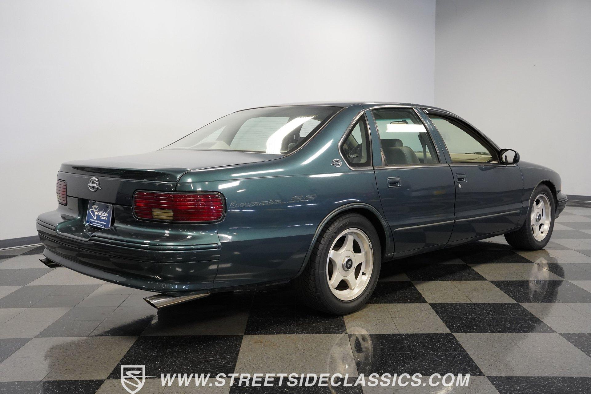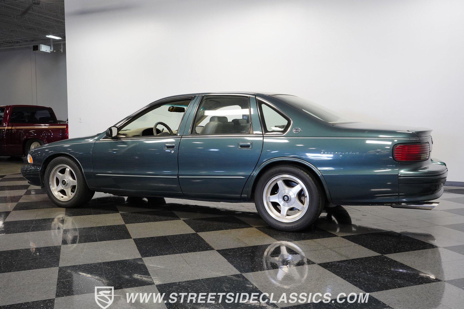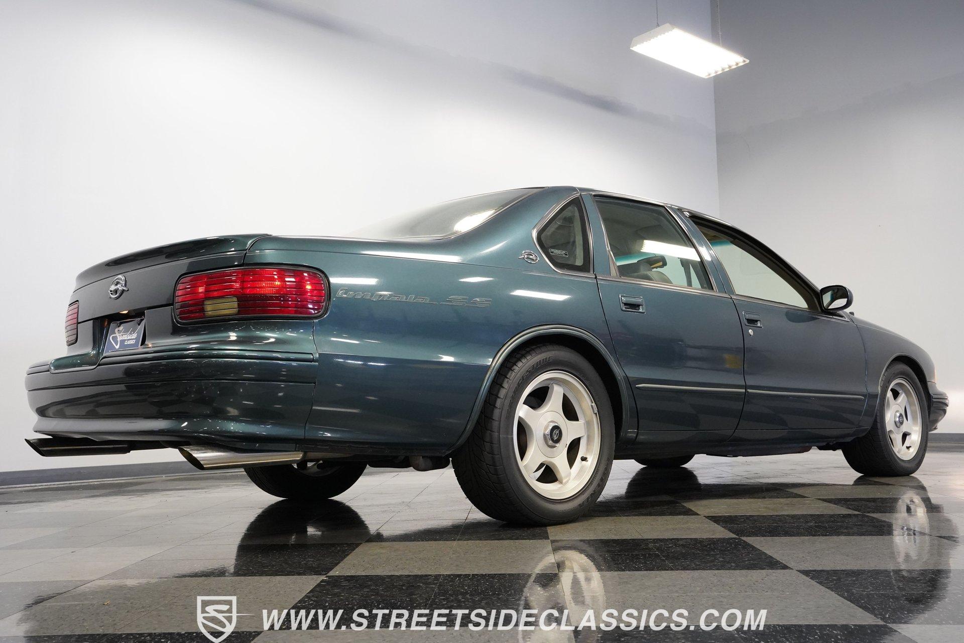 Although to the cynic, the seventh-generation Impala was simply a Caprice optioned with the 9C1 Police Package, what those naysayers don't seem to understand is that although there was no official "swagger" package, this 1995 Chevrolet Impala SS is far more than just the sum of its parts. With just 46,154 actual miles on its odometer, this Impala has had only one owner since new. Decked out in its original Dark Green Gray Metallic, which was by far the rarest color option for the seventh-gen, this SS shows off its de-chromed, blacked-out (technically greened-out in this case) look. With a subtle rear lip spoiler, dual chrome exhaust tips, and sportier five-spoke wheels, this Impala embodies what it means to wear a Super Sport badge. Inside, the sedan side of the sport sedan shines through with a comfortable leather interior featuring plush bucket seats separated by a center storage console. A padded and power-assisted steering wheel sits just in front of a five-pod gauge cluster, highlighted by a digital center speedometer/odometer. Easy-to-use analog HVAC controls sit just above the AM/FM/CD player, while a tasteful Impala SS logo plate is mounted in between the two, serving as a subtle reminder that this is no ordinary four-door. Power seats, locks, mirrors, and windows, along with air conditioning and cruise control, offer up all the modern amenities available just before the turn of the century. Under that big, swoopy hood, we find a healthy 5.7-liter LT1 V-8 engine. Differing from the LT1 found in the Corvette, the SS got iron cylinder heads mounted to a two-bolt main, and a more torque-oriented camshaft. When it was new, the Impala SS pumped out an underrated 260 horsepower and 330 pound-feet of torque which was routed through a 4L60E four-speed automatic transmission before being sent out to the factory ten-bolt rear where a set of 3.08:1 gears waited to transfer those ponies to the pavement via those aforementioned five-spoke wheels shod in 255/50ZR-17 Bridgestone rubber. HIGHLIGHTS: *One Owner Impala SS *46,154 Original Miles *Original Paint *Rare Dark Green Gray Metallic *LT1 V8 *4L60E Four Speed Auto *FlowMaster Exhaust *Power Disc Brakes *Power Steering *Power Windows *Power Seats *Power Locks *Power Mirrors *Digital Speedometer *Leather Interior *ABS *Remote Door Openers *Anti-Theft System Riding on a police car chassis that used a beefed-up suspension featuring DeCarbon, stiffer springs, and a big rear anti-roll bar, this 1995 Chevrolet Impala SS was capable of running from 0-60 mph in just 6.5 seconds, according to Car and Driver, which is very impressive for a two-ton machine. If you have been looking for a sleek and roomy car with a growl only a small block can make, then this modern muscle-sedan is the one for you. Don't wait, call today!