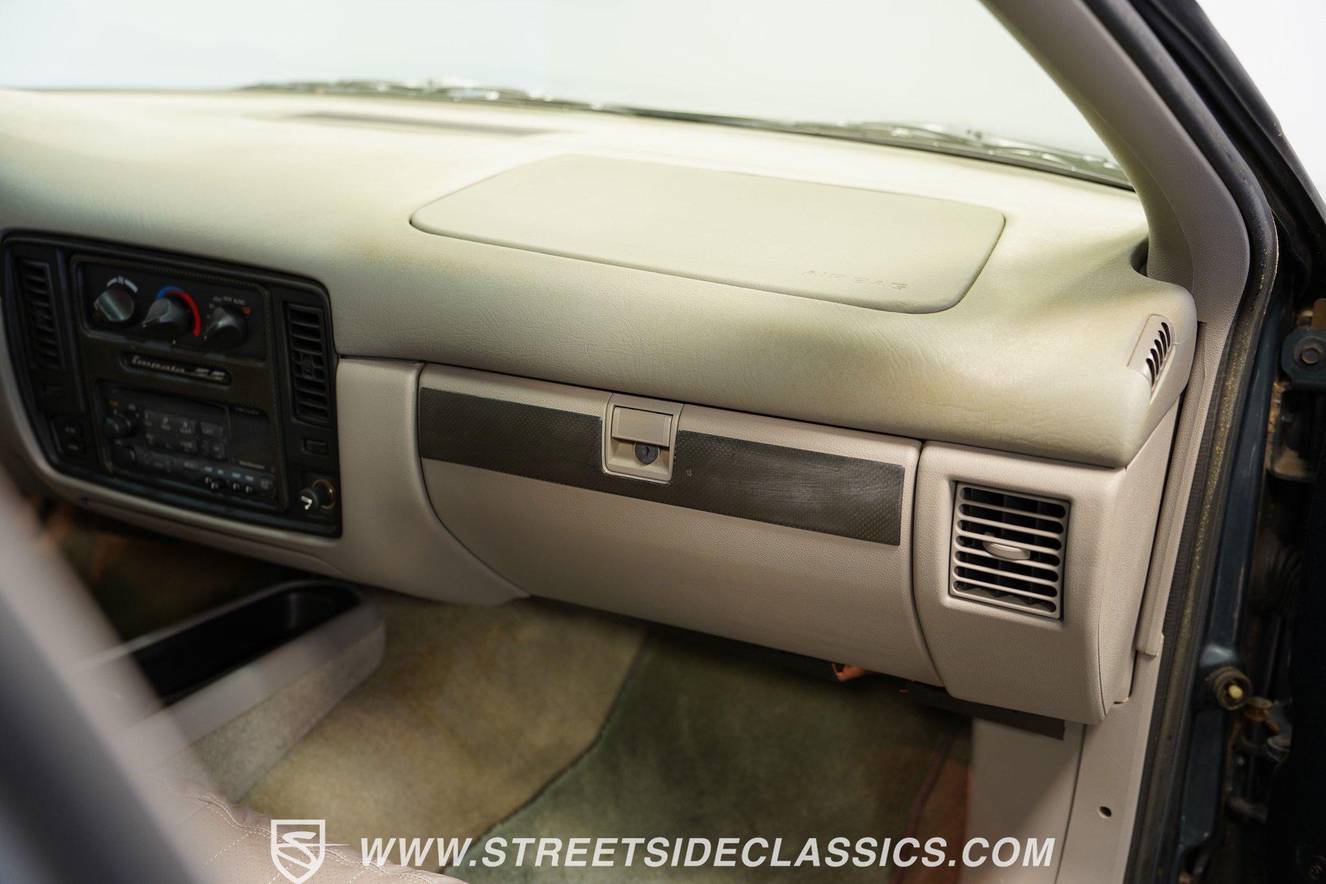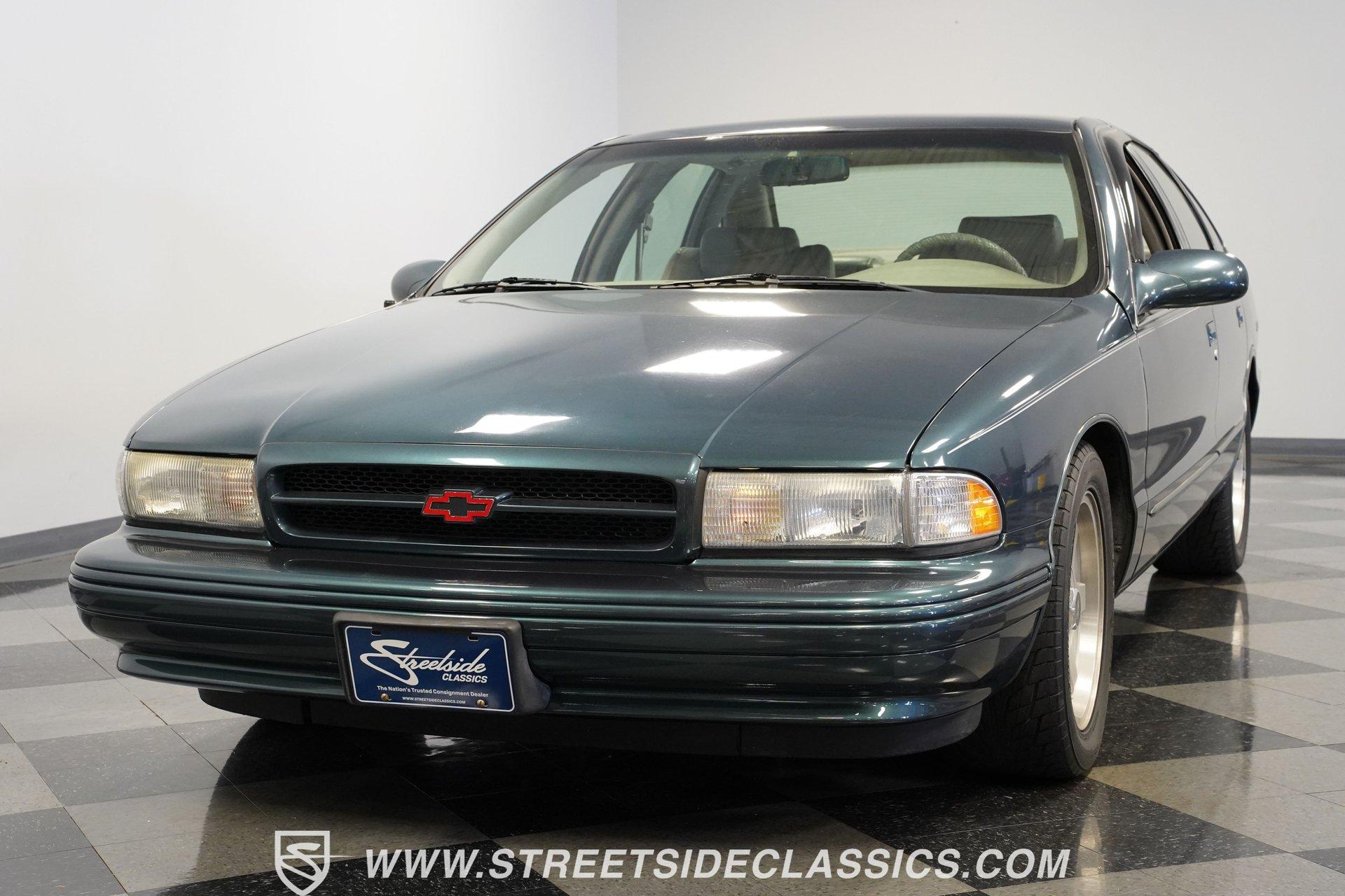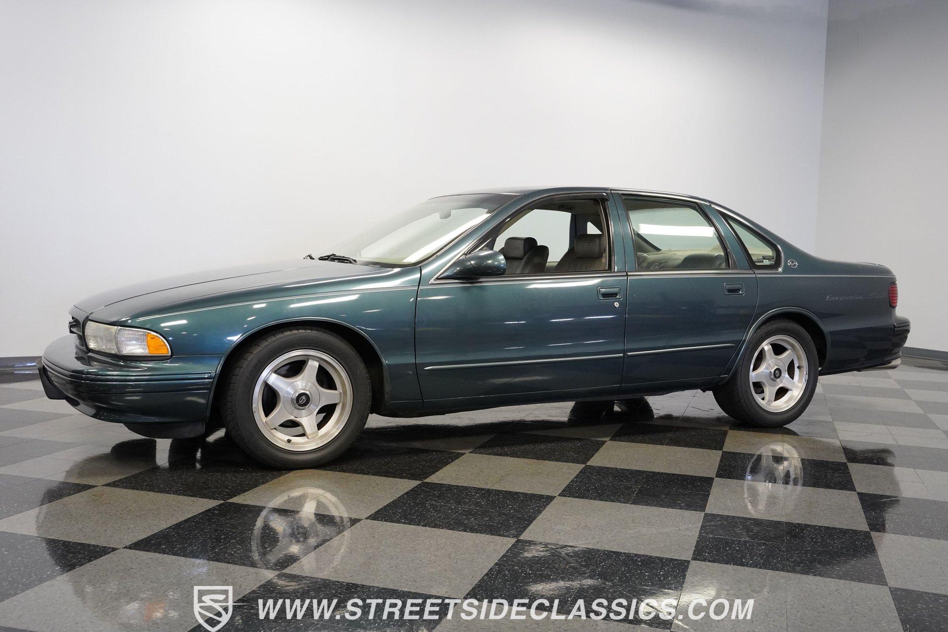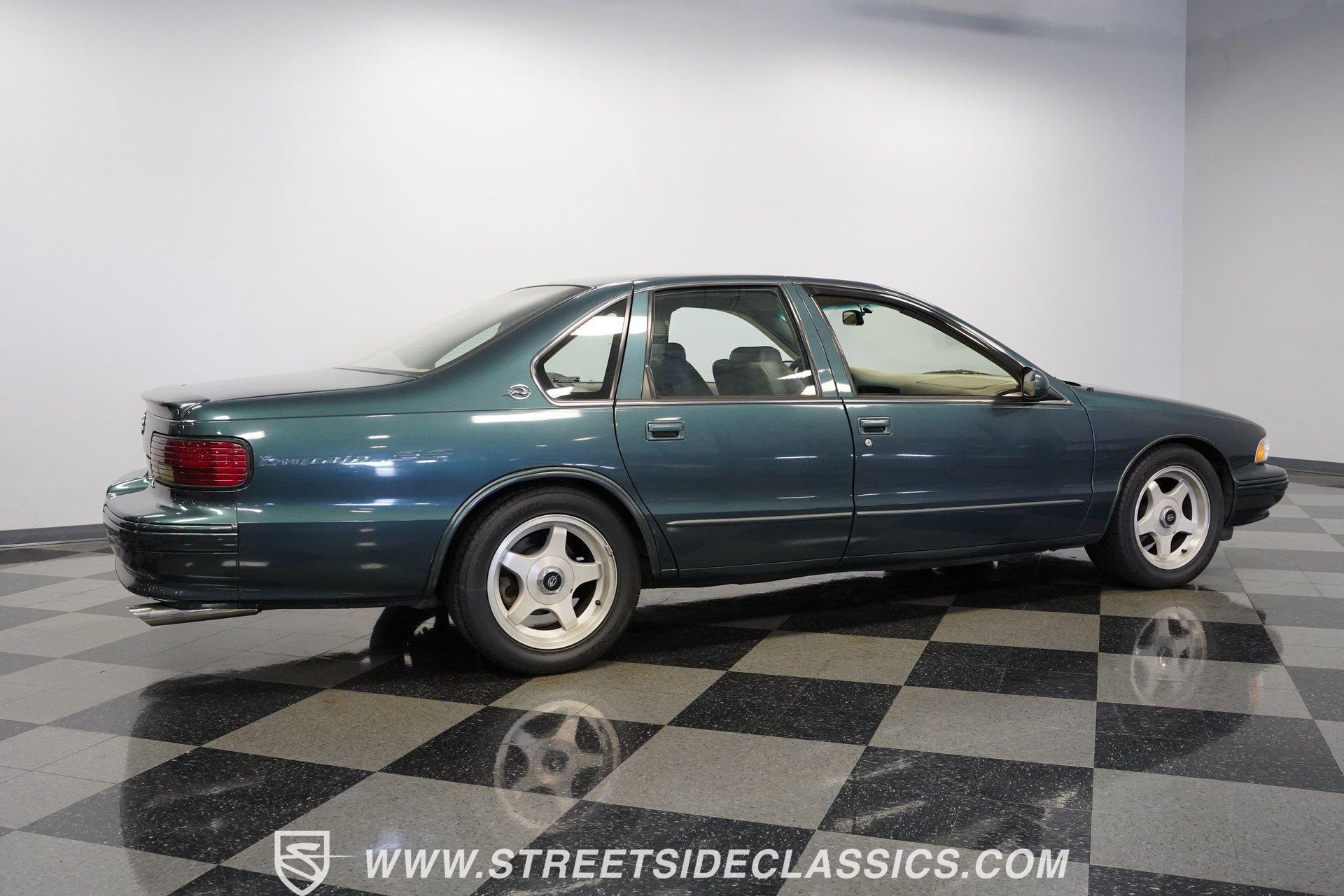 Although to the cynic, the seventh-generation Impala was simply a Caprice optioned with the 9C1 Police Package, what those naysayers don't seem to understand is that although there was no official "swagger" package, this 1995 Chevrolet Impala SS is far more than just the sum of its parts. With just 46,154 actual miles on its odometer, this Impala has had only one owner since new. Decked out in its original Dark Green Gray Metallic, which was by far the rarest color option for the seventh-gen, this SS shows off its de-chromed, blacked-out (technically greened-out in this case) look. With a subtle rear lip spoiler, dual chrome exhaust tips, and sportier five-spoke wheels, this Impala embodies what it means to wear a Super Sport badge. Inside, the sedan side of the sport sedan shines through with a comfortable leather interior featuring plush bucket seats separated by a center storage console. A padded and power-assisted steering wheel sits just in front of a five-pod gauge cluster, highlighted by a digital center speedometer/odometer. Easy-to-use analog HVAC controls sit just above the AM/FM/CD player, while a tasteful Impala SS logo plate is mounted in between the two, serving as a subtle reminder that this is no ordinary four-door. Power seats, locks, mirrors, and windows, along with air conditioning and cruise control, offer up all the modern amenities available just before the turn of the century. Under that big, swoopy hood, we find a healthy 5.7-liter LT1 V-8 engine. Differing from the LT1 found in the Corvette, the SS got iron cylinder heads mounted to a two-bolt main, and a more torque-oriented camshaft. When it was new, the Impala SS pumped out an underrated 260 horsepower and 330 pound-feet of torque which was routed through a 4L60E four-speed automatic transmission before being sent out to the factory ten-bolt rear where a set of 3.08:1 gears waited to transfer those ponies to the pavement via those aforementioned five-spoke wheels shod in 255/50ZR-17 Bridgestone rubber. HIGHLIGHTS: *One Owner Impala SS *46,154 Original Miles *Original Paint *Rare Dark Green Gray Metallic *LT1 V8 *4L60E Four Speed Auto *FlowMaster Exhaust *Power Disc Brakes *Power Steering *Power Windows *Power Seats *Power Locks *Power Mirrors *Digital Speedometer *Leather Interior *ABS *Remote Door Openers *Anti-Theft System Riding on a police car chassis that used a beefed-up suspension featuring DeCarbon, stiffer springs, and a big rear anti-roll bar, this 1995 Chevrolet Impala SS was capable of running from 0-60 mph in just 6.5 seconds, according to Car and Driver, which is very impressive for a two-ton machine. If you have been looking for a sleek and roomy car with a growl only a small block can make, then this modern muscle-sedan is the one for you. Don't wait, call today!