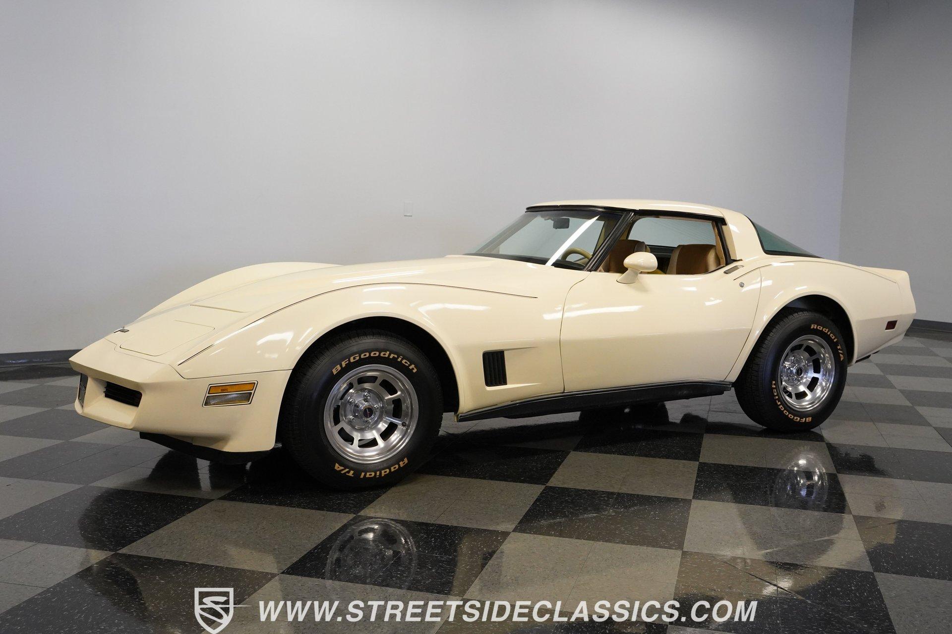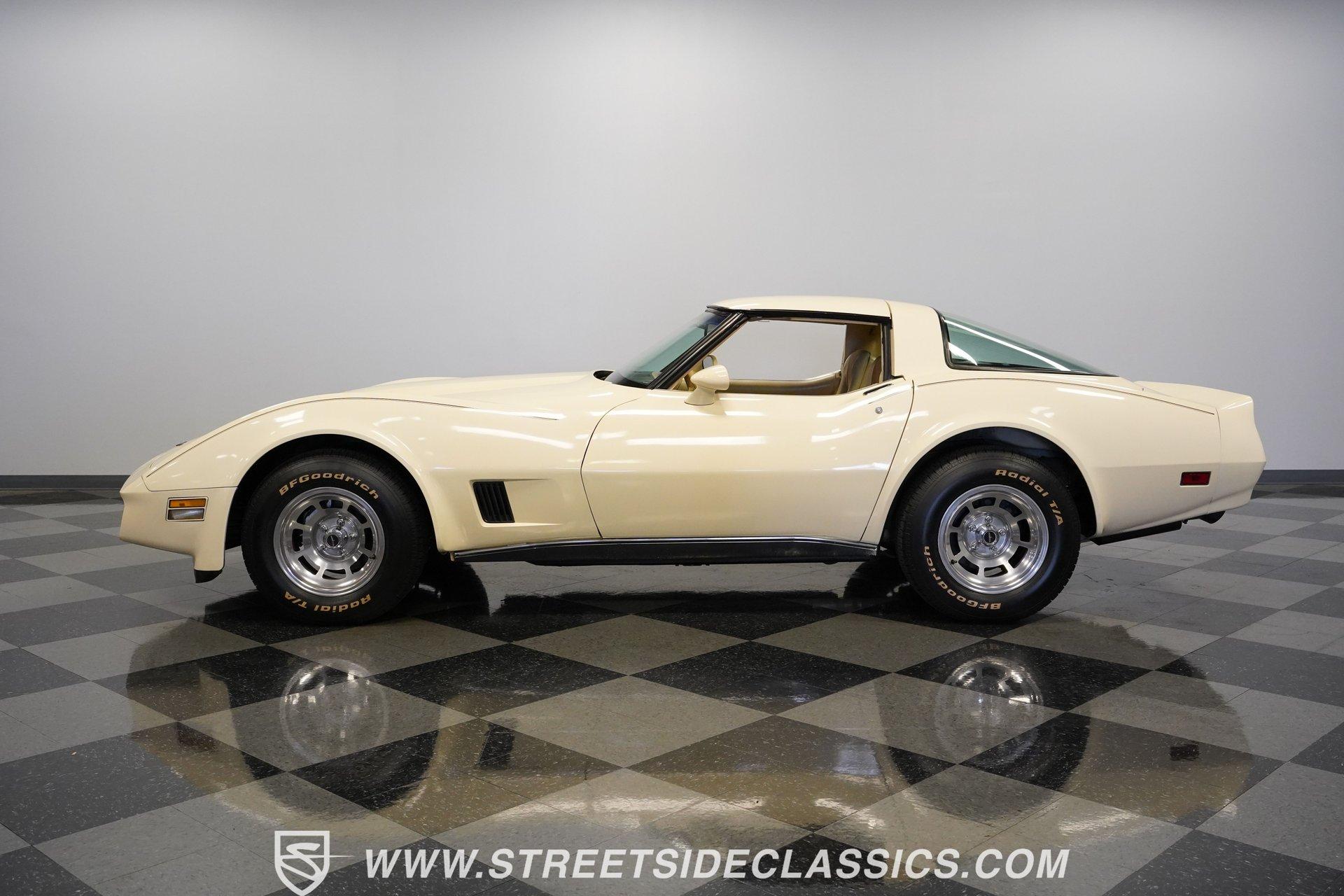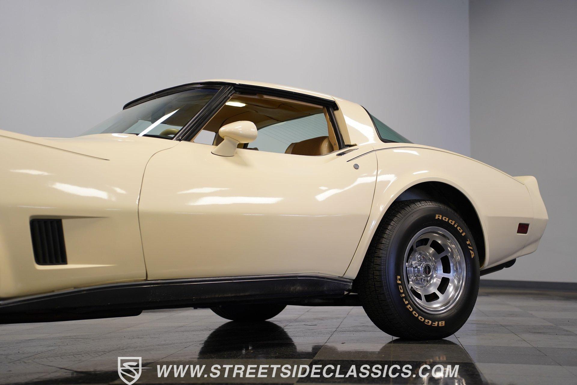 The C3 sits among the most loved generations of the Corvette. Its sinewy Coke bottle shape is unmistakable and turns heads anywhere it goes. Today, we have a magnificent example of a late-model C3 for you in this 1980 Chevrolet Corvette L48. With just 33,384 (believed) actual miles on its odometer, this car looks almost as good as the day it rolled off the assembly line. Decked out in its original Frost Beige color, the 1980 'Vette used lighter fiberglass body panels along with an aluminum differential and crossmember to provide a serious reduction in weight. Thankfully, the iconic T-tops are still intact and work wonderfully. Inside, we find a Doe Skin leather/vinyl/cloth interior featuring a set of supportive and comfortable bucket seats separated by a full-length center console, complete with dual cup holders. A small three-spoke, power-assisted, padded steering wheel sits in front of an 85 mph speedometer and a 7,000 rpm tachometer. The signature five-pod auxiliary gauge cluster sits atop the center stack, while an upgraded AM/FM radio equipped with Bluetooth takes place of the original unit without looking out of place. The sliding HVAC controls are easy to use, and the air conditioning blows cold whenever it gets too hot to enjoy open air driving. Under that classic front-hinged hood, we find a numbers-matching 350 cubic-inch L48 V-8 engine. Topped with a single four-barrel Rochester Quadrajet carburetor, this small block V-8 pumped out a respectable 190 horsepower at 4,400 rpm and 280 pound-feet of torque at 2,400 rpm when it was new. That power is routed through a TH350 three-speed automatic transmission before being transferred to the rear end via a 3.08-geared rearend, and then to the tarmac via a set of fifteen-inch alloy wheels wrapped in P225/70R-15 BFGoodrich tires. HIGHLIGHTS: *33,384 Believed Actual Miles *T Tops *Numbers Matching L48 *350 CID V8 *TH350 Three Speed Auto *Power Steering *Power Windows *Power Locks *AC *Leather *Power Brakes *Four Wheel Discs *Copy of Dealer Invoice *Maintenance Records *Owner's Manual *Original Warranty Card This 1980 Chevrolet Corvette L48 rides on an independent suspension at both the front and rear, while a set of vented four-wheel disc brakes that use 11.75-inch rotors clamped down on by single-piston calipers to scrub off speed at a moment's notice. Along with its ultra-low mileage, this C3 comes with a copy of its dealer invoice, owner's manual, maintenance records, receipts, and its original warranty card to provide all the provenance required for even the most discerning collector. So, whether you want a great-looking Corvette to enjoy on the weekends or a well-conditioned example of a late-model C3, this is the car you've been waiting for. Don't wait, call today!