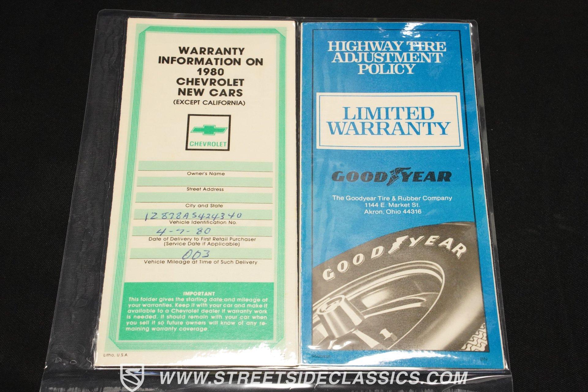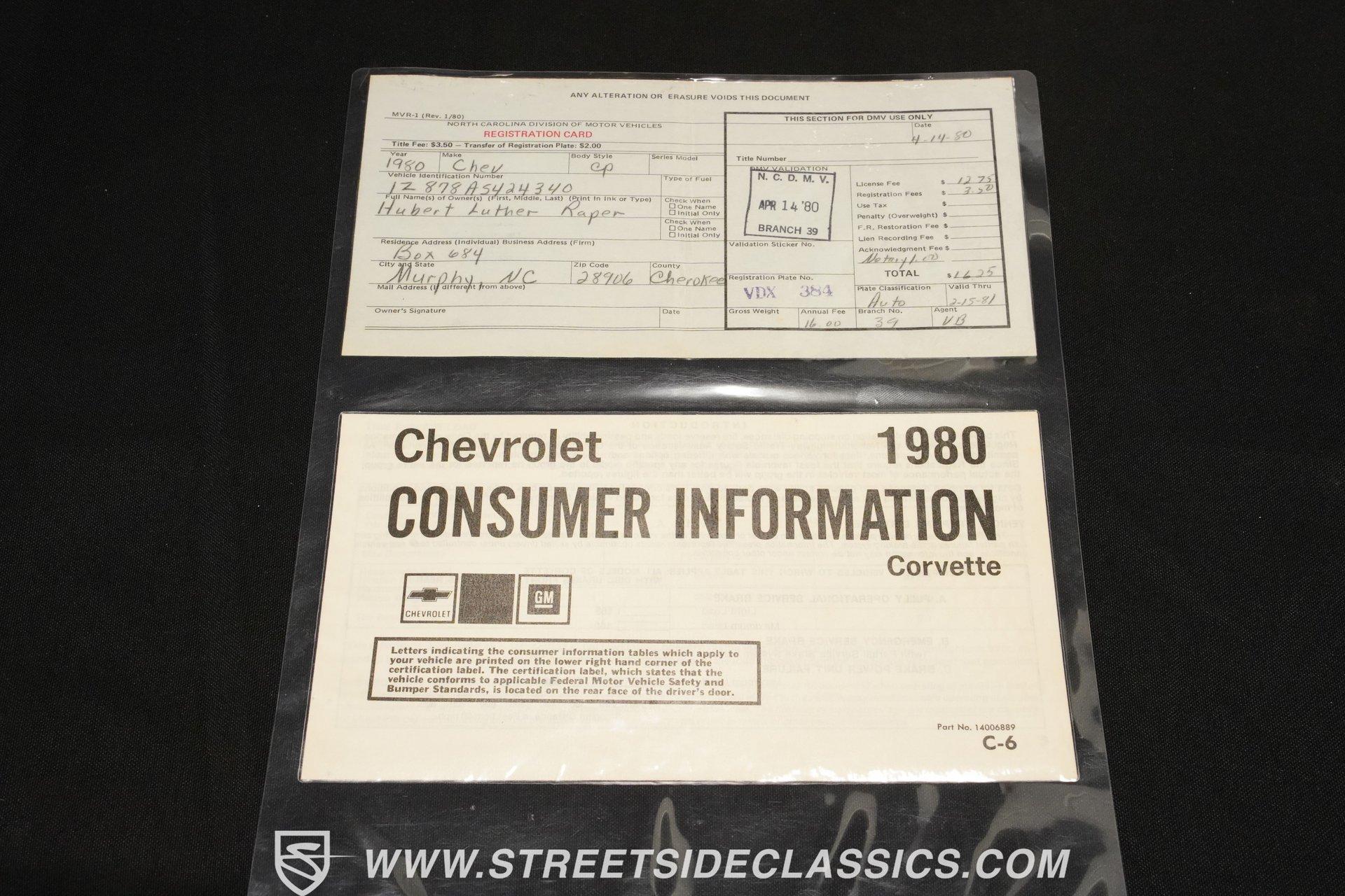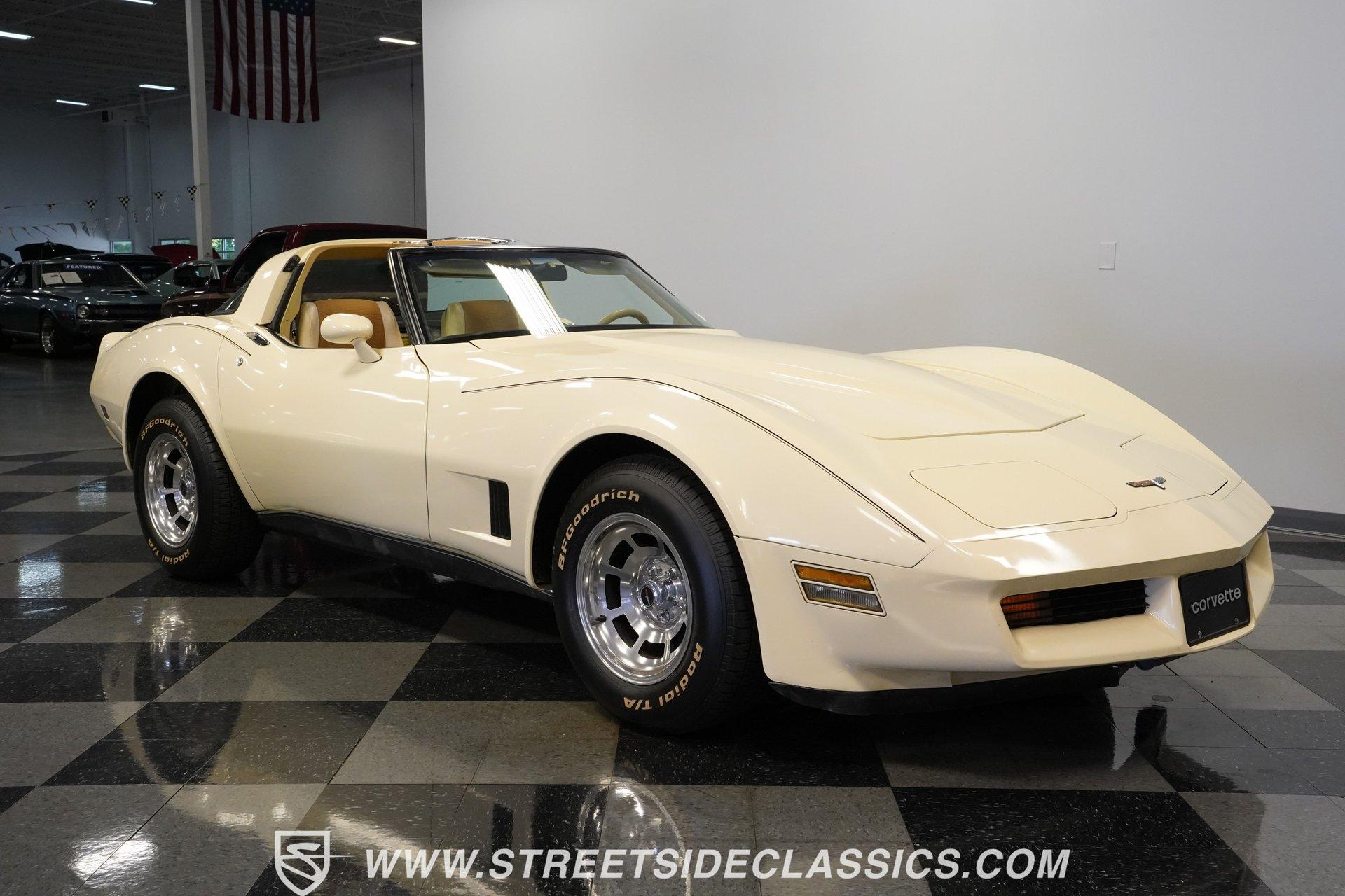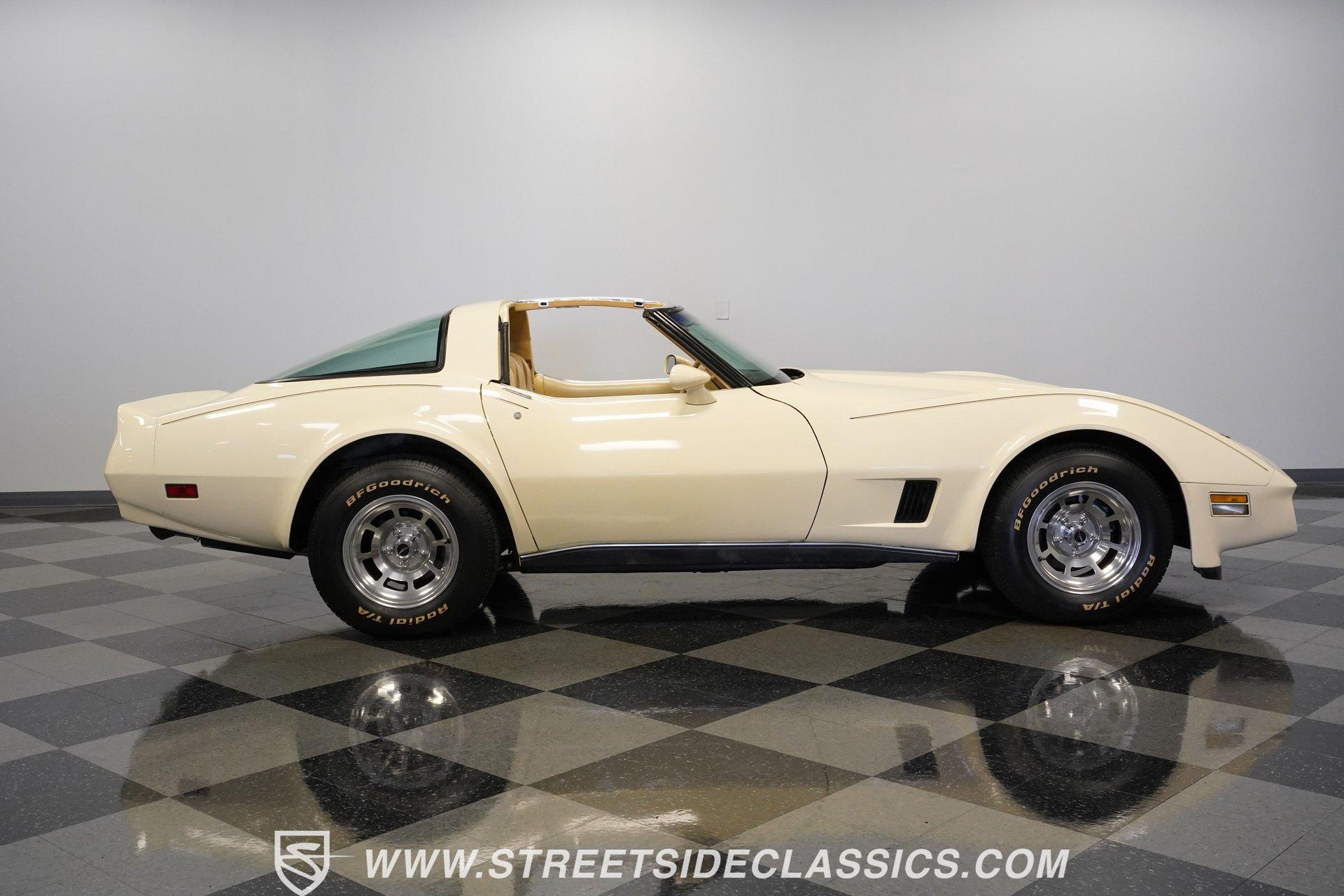 The C3 sits among the most loved generations of the Corvette. Its sinewy Coke bottle shape is unmistakable and turns heads anywhere it goes. Today, we have a magnificent example of a late-model C3 for you in this 1980 Chevrolet Corvette L48. With just 33,384 (believed) actual miles on its odometer, this car looks almost as good as the day it rolled off the assembly line. Decked out in its original Frost Beige color, the 1980 'Vette used lighter fiberglass body panels along with an aluminum differential and crossmember to provide a serious reduction in weight. Thankfully, the iconic T-tops are still intact and work wonderfully. Inside, we find a Doe Skin leather/vinyl/cloth interior featuring a set of supportive and comfortable bucket seats separated by a full-length center console, complete with dual cup holders. A small three-spoke, power-assisted, padded steering wheel sits in front of an 85 mph speedometer and a 7,000 rpm tachometer. The signature five-pod auxiliary gauge cluster sits atop the center stack, while an upgraded AM/FM radio equipped with Bluetooth takes place of the original unit without looking out of place. The sliding HVAC controls are easy to use, and the air conditioning blows cold whenever it gets too hot to enjoy open air driving. Under that classic front-hinged hood, we find a numbers-matching 350 cubic-inch L48 V-8 engine. Topped with a single four-barrel Rochester Quadrajet carburetor, this small block V-8 pumped out a respectable 190 horsepower at 4,400 rpm and 280 pound-feet of torque at 2,400 rpm when it was new. That power is routed through a TH350 three-speed automatic transmission before being transferred to the rear end via a 3.08-geared rearend, and then to the tarmac via a set of fifteen-inch alloy wheels wrapped in P225/70R-15 BFGoodrich tires. HIGHLIGHTS: *33,384 Believed Actual Miles *T Tops *Numbers Matching L48 *350 CID V8 *TH350 Three Speed Auto *Power Steering *Power Windows *Power Locks *AC *Leather *Power Brakes *Four Wheel Discs *Copy of Dealer Invoice *Maintenance Records *Owner's Manual *Original Warranty Card This 1980 Chevrolet Corvette L48 rides on an independent suspension at both the front and rear, while a set of vented four-wheel disc brakes that use 11.75-inch rotors clamped down on by single-piston calipers to scrub off speed at a moment's notice. Along with its ultra-low mileage, this C3 comes with a copy of its dealer invoice, owner's manual, maintenance records, receipts, and its original warranty card to provide all the provenance required for even the most discerning collector. So, whether you want a great-looking Corvette to enjoy on the weekends or a well-conditioned example of a late-model C3, this is the car you've been waiting for. Don't wait, call today!