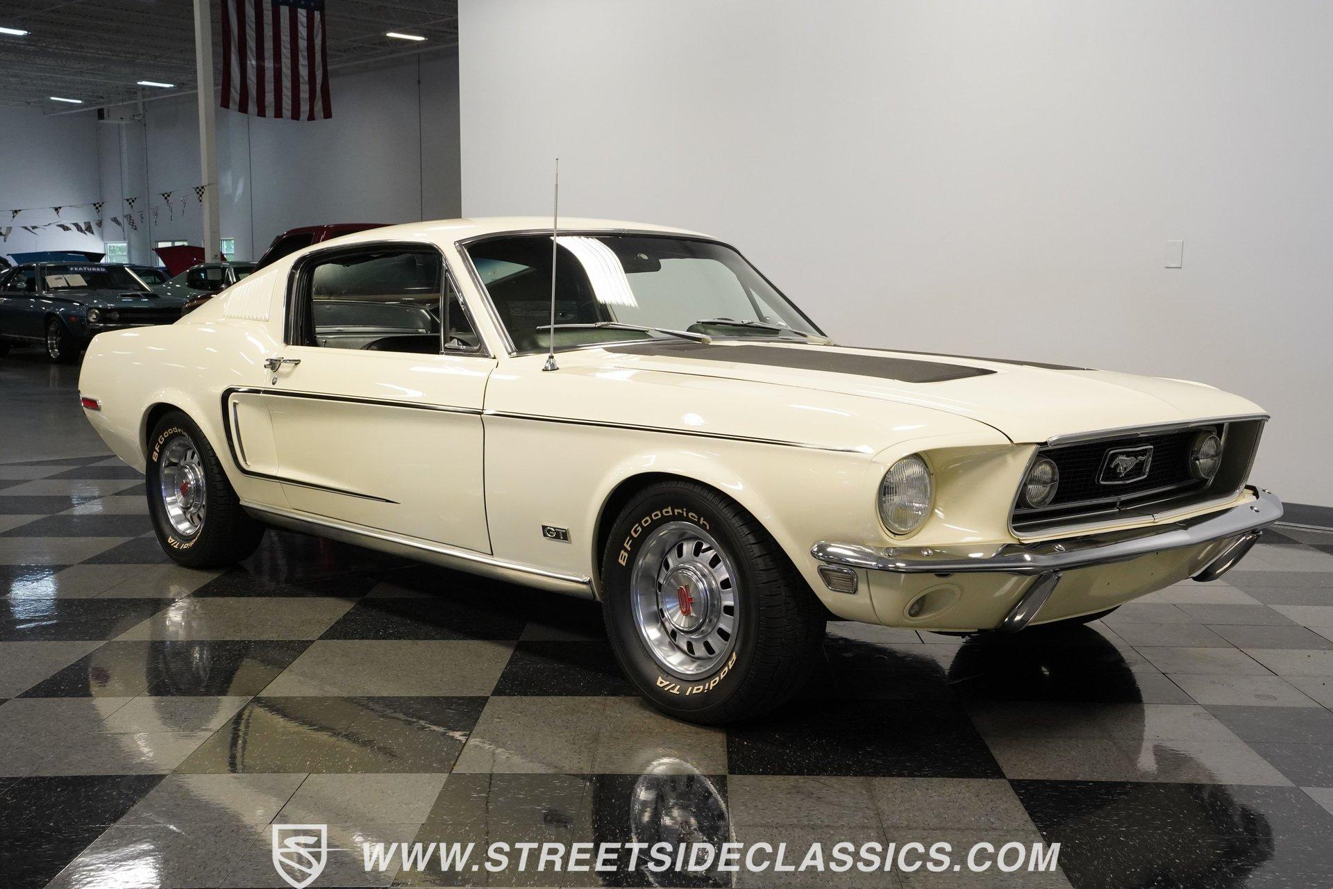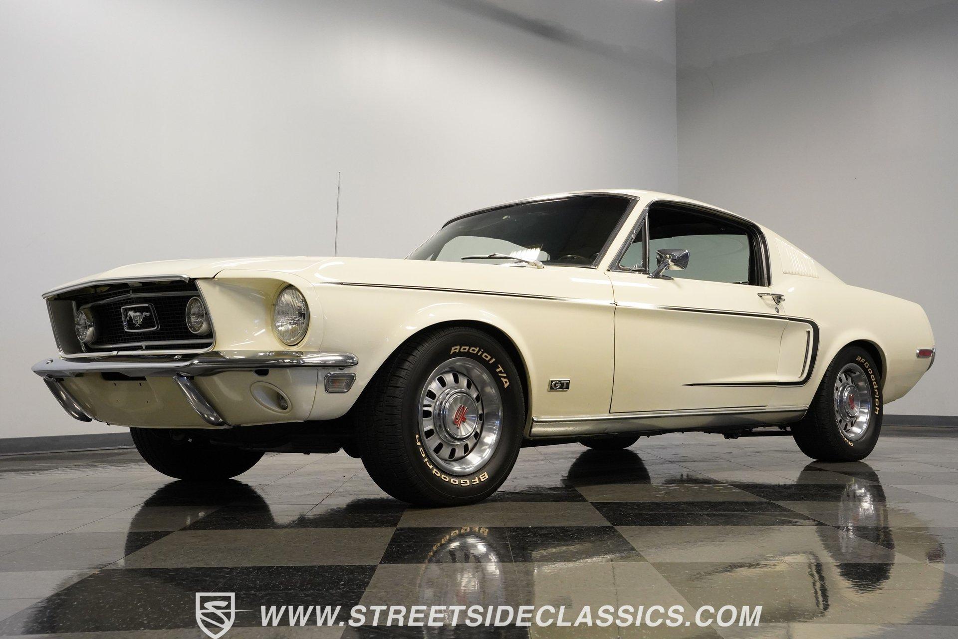 This 1968 Ford Mustang GT J Code Fastback, a true muscle car legend, roars with a Crisp White exterior that gleams under sunlight. The odometer shows just 52,620 and is believed to be original. This rare Mustang was maintained by the same family for four generations, and its outstanding condition reflects the great care it has received over the years. The fastback profile exudes raw power, accentuated by GT fog lights and side louvers that collectors love. Factory GT Mustang styled steel wheels provide a perfect blend of vintage aesthetics and muscle car flavor. The wheels are wrapped with P235/60R14 BF Goodrich Radial T/A tires that provide ample grip for this classic. The GT stripe kit adorns the sides, emphasizing the car's muscular lines. Inside, black vinyl bucket seats welcome you to a cockpit built for performance. The deluxe interior is a blend of restored and well-preserved original components. A floor shifter stands ready for action, connecting you directly to the 4-speed manual transmission. The fold-down rear seat adds versatility to this muscle car. The clean, uncluttered dashboard houses the original gauges, as well as a cool Stewart-Warner tachometer, and Planet Audio touchscreen radio offering a clear view of vital information as you unleash this pony car's power. Other interior amenities include modern air conditioning, upgraded sound system, factory overhead console, and an upgraded tilt steering column with wood-rimmed steering wheel. The 302 V8 engine, believed to be the original, is the beating force of this J Code Mustang. It is paired with a 4-speed manual transmission with a recently replaced clutch, allowing for full control of the car's substantial power. The Ford 9" rear end ensures that power is efficiently transferred to the pavement. The detailed engine bay features Holley Sniper EFI and gas tank, Aluminum Edelbrock intake, chrome open-element air cleaner, Cobra valve covers and an oversized finned aluminum oil pan. A dual exhaust system with Hooker headers and glass pack mufflers provides a throaty growl that announces this Mustang's presence. The upgraded electric-assisted power steering system, rear traction bars and upgraded front and rear sway bars offer easy maneuverability, while power front disc brakes provide confident stopping power. HIGHLIGHTS: 302 V8 Engine 4-Speed Manual Transmission Ford 9" Rear End Electric Assisted Power Steering Dual Exhaust Power Front Disc Brakes Hooker Headers GT Fog Lights GT Side Stripe Kit Cobra Valve Covers Factory GT Wheels BF Goodrich Radial T/A Tires Black Vinyl Bucket Seats Tilt Steering Column Fold-Down Rear Seat Air Conditioning Holley Sniper EFI Front Disc Brakes Upgraded Stereo with Bluetooth and Upgraded Speakers This 1968 Ford Mustang GT Fastback, with its potent J Code 302 V8, sleek fastback design, long term ownership and thoughtful upgrades, represents the pinnacle of American muscle. From its clean White exterior to its performance-oriented drivetrain, this Mustang is ready to enjoy. Call today!