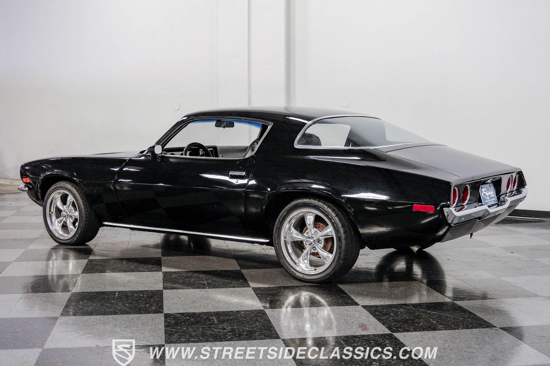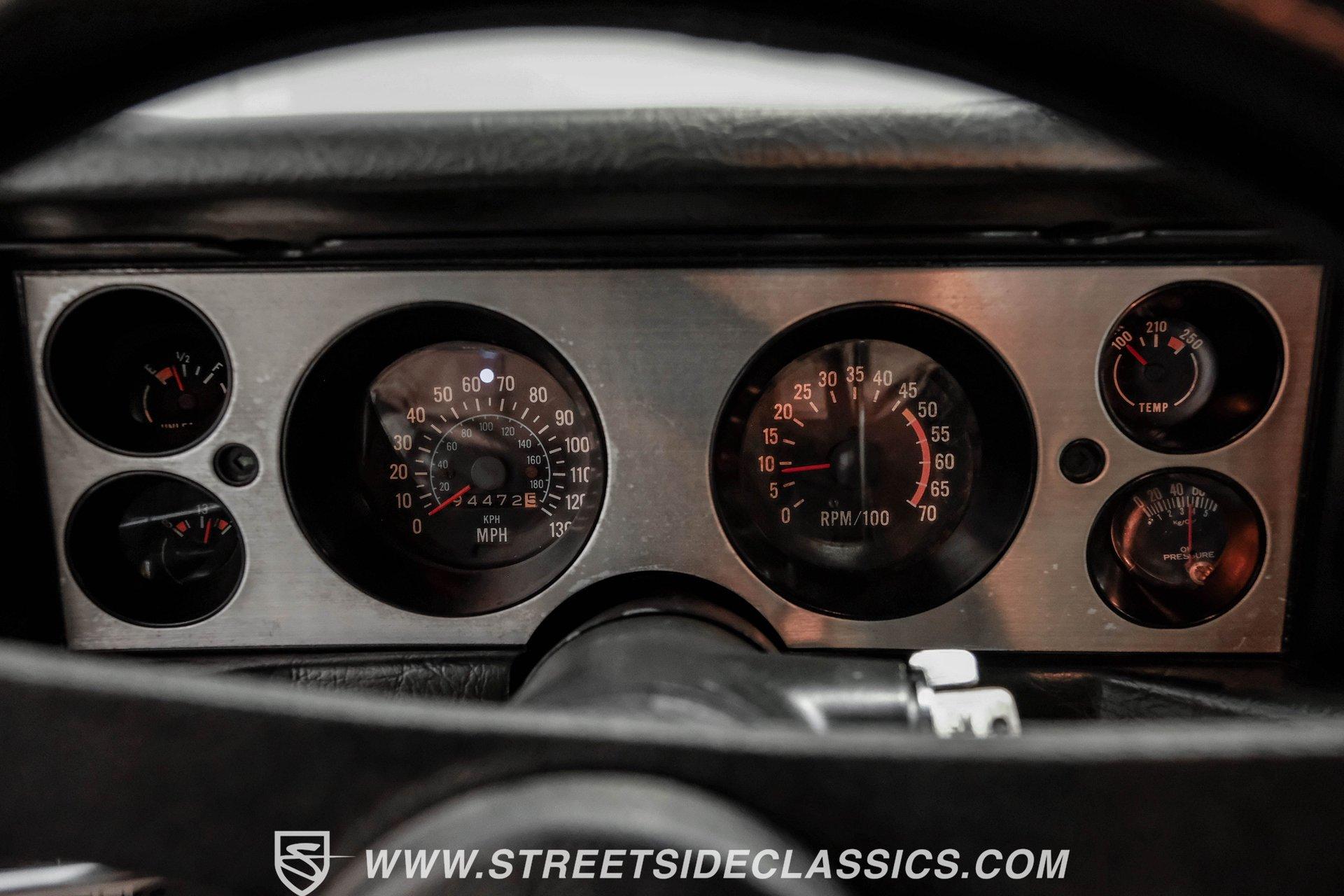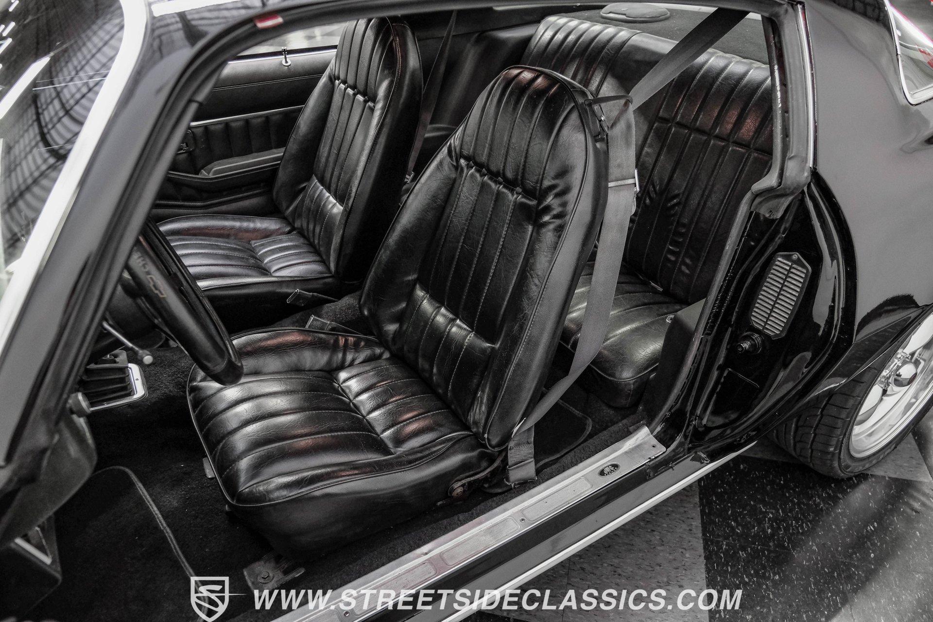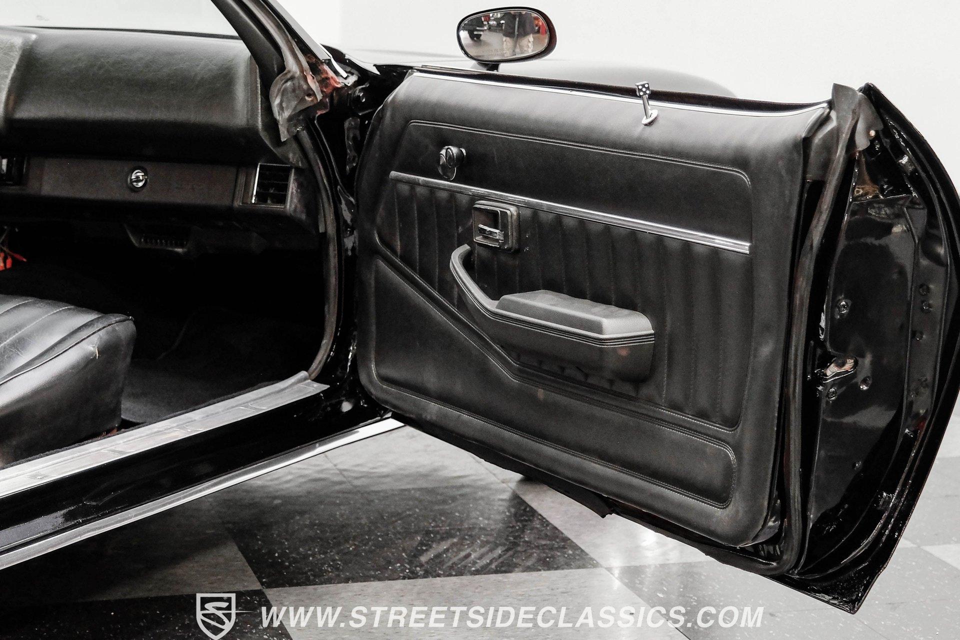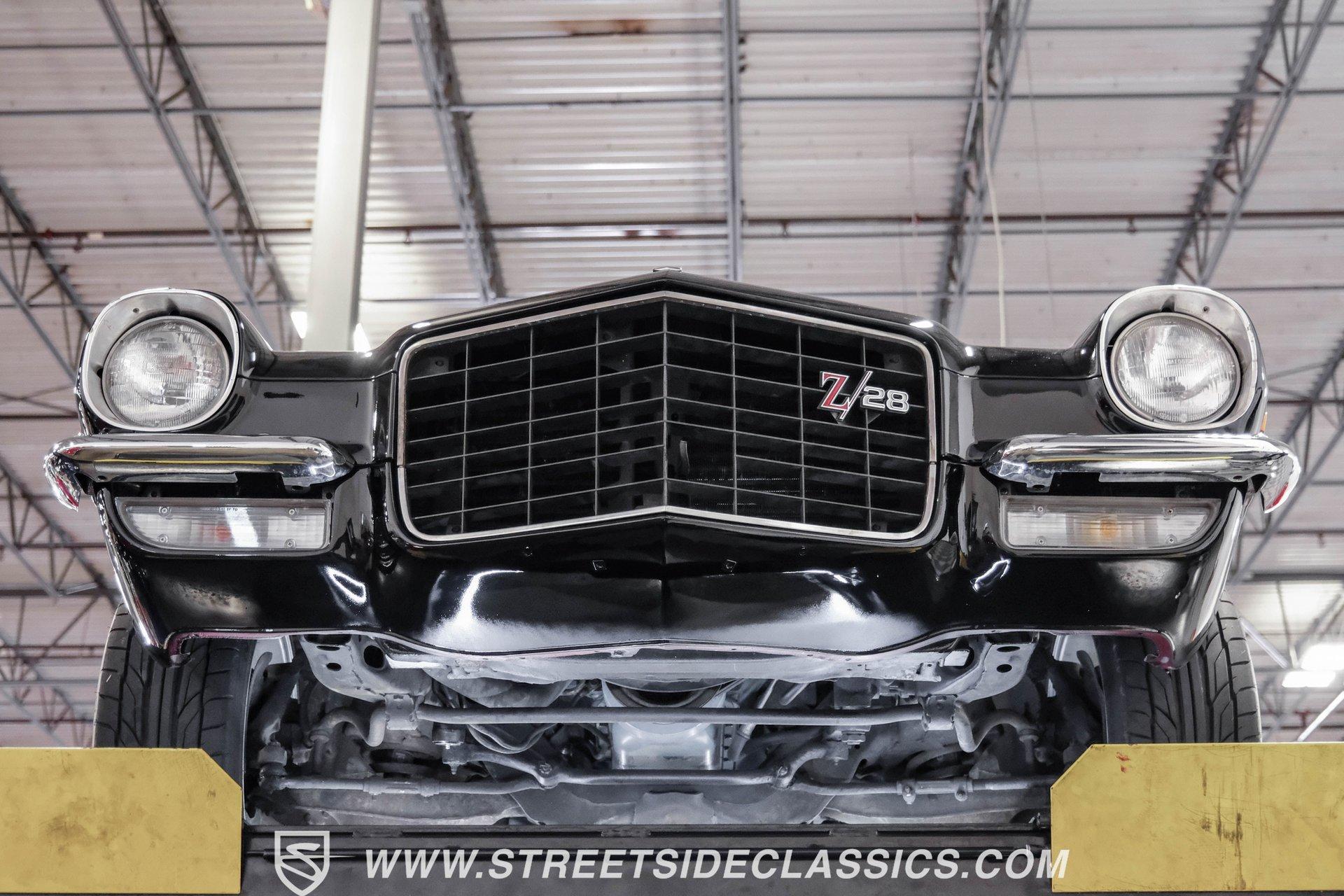 Converting the front clip and rear tail panel from an earlier second-generation model gives this 1979 Chevrolet Camaro Split Bumper Conversion the aggressive look of its predecessors. Black paint covers the transformed bodywork while gold decal stripes provide visual contrast across the surface. Chrome 17" Rev wheels fill the wheel wells, wrapped in 225/45ZR17 front and 255/40ZR17 rear Nitto tires. The conversion work includes both front and rear sections, creating the split bumper appearance that made the earlier Camaros so distinctive. Black vinyl bucket seats anchor the interior, complemented by matching door panels and a fresh headliner overhead. The floor-mounted shifter connects to the four-speed manual transmission, while an aftermarket Dual brand AM/FM/CD head unit with remote handles entertainment duties. Black carpet covers the floor, and the dashboard maintains its original configuration. Power steering assists with handling, and the interior reflects recent attention to detail with replaced components maintaining the factory appearance throughout the cabin. A 350 V8 engine provides motivation through the Quadrajet carburetor and aluminum intake manifold. Aftermarket Corvette valve covers dress up the engine bay, while the HEI distributor handles ignition duties. The four-speed manual transmission sends power through a 10-bolt rear axle. Power disc brakes handle stopping duties up front, with power drum brakes at the rear. An aluminum radiator manages cooling, and dual exhaust provides the soundtrack. Air shocks support the rear leaf springs, while coil springs and a sway bar handle front suspension duties. HIGHLIGHTS: 350 V8 Engine 4 Speed Manual Transmission Quadrajet Carburetor Aluminum Intake Manifold HEI Distributor Aftermarket Corvette Valve Covers Power Disc Front Brakes Dual Exhaust Aluminum Radiator 10 Bolt Rear Axle Air Shocks Rear Suspension Front Coil Springs With Sway Bar Black Paint With Gold Stripes Split Bumper Front Clip Conversion 17" Rev Wheels 225/45ZR17 Front, 255/40ZR17 Rear Nitto Tires Black Interior Floor Shifter Power Steering Dual Brand AM/FM/CD Head Unit With Remote Fresh Headliner Service Manuals Seatbelts Tilt Wheel Aggressive styling of earlier split bumper models and the solid foundation of a 1979 Chevrolet Camaro Split Bumper Conversion, this vehicle brings the right kind of muscle to the table. Call today!