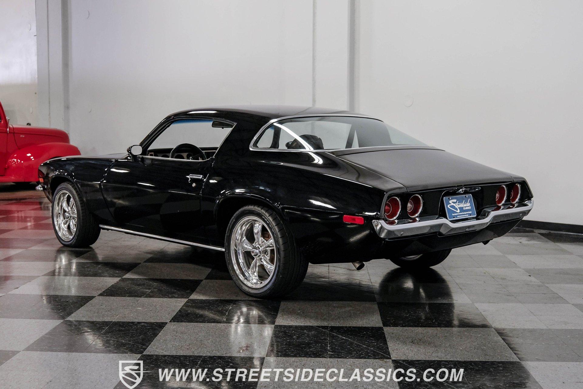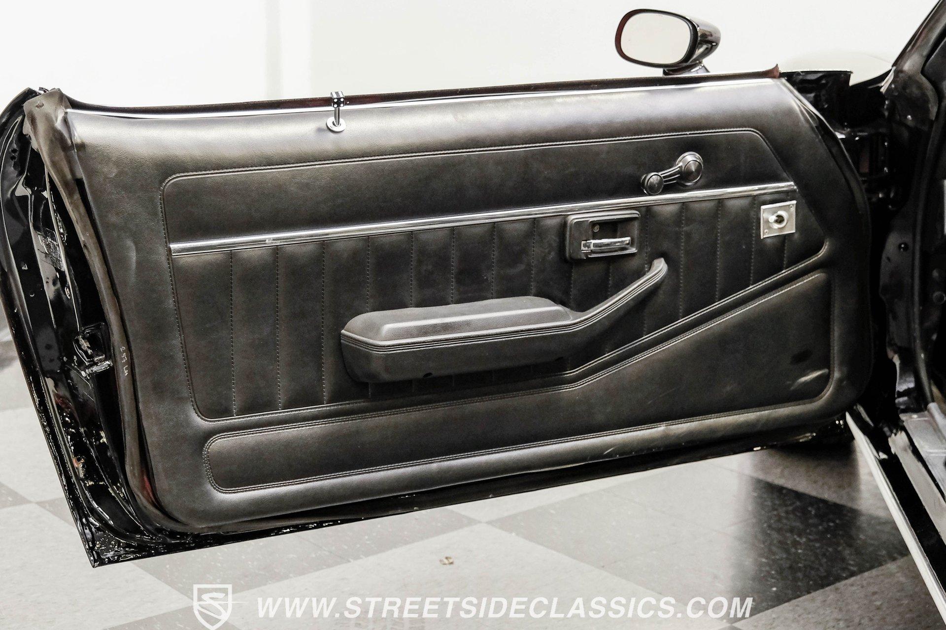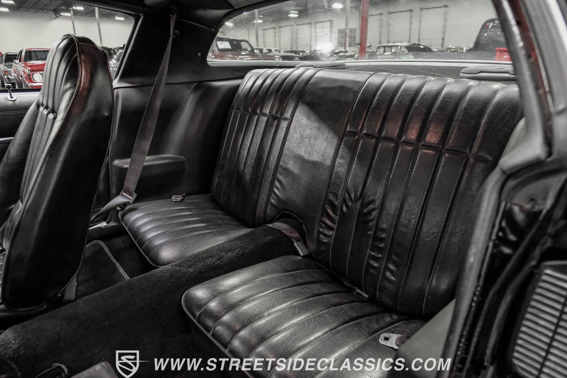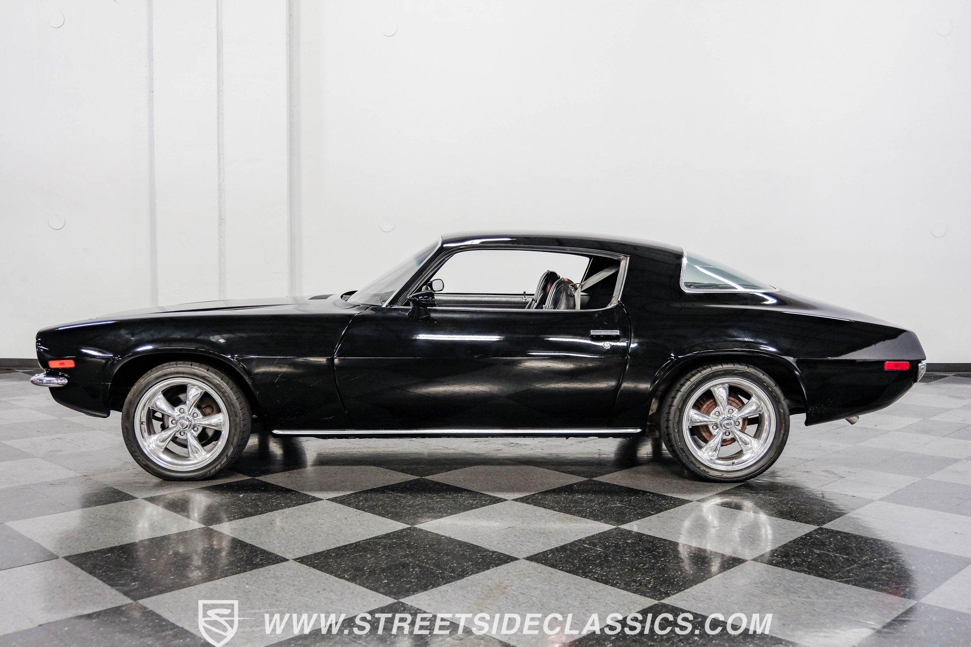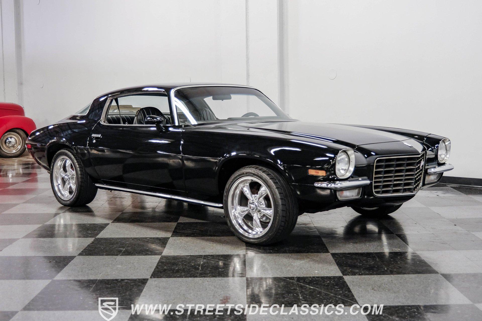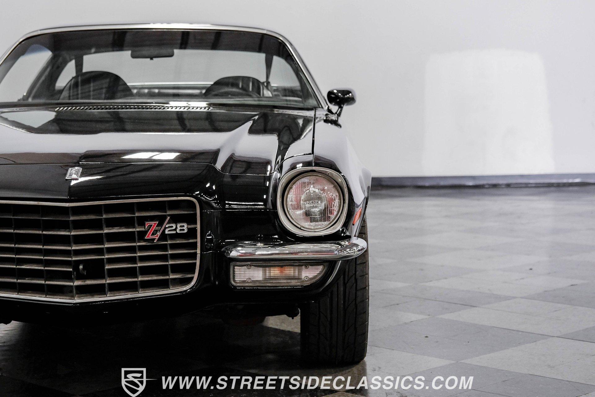 Converting the front clip and rear tail panel from an earlier second-generation model gives this 1979 Chevrolet Camaro Split Bumper Conversion the aggressive look of its predecessors. Black paint covers the transformed bodywork while gold decal stripes provide visual contrast across the surface. Chrome 17" Rev wheels fill the wheel wells, wrapped in 225/45ZR17 front and 255/40ZR17 rear Nitto tires. The conversion work includes both front and rear sections, creating the split bumper appearance that made the earlier Camaros so distinctive. Black vinyl bucket seats anchor the interior, complemented by matching door panels and a fresh headliner overhead. The floor-mounted shifter connects to the four-speed manual transmission, while an aftermarket Dual brand AM/FM/CD head unit with remote handles entertainment duties. Black carpet covers the floor, and the dashboard maintains its original configuration. Power steering assists with handling, and the interior reflects recent attention to detail with replaced components maintaining the factory appearance throughout the cabin. A 350 V8 engine provides motivation through the Quadrajet carburetor and aluminum intake manifold. Aftermarket Corvette valve covers dress up the engine bay, while the HEI distributor handles ignition duties. The four-speed manual transmission sends power through a 10-bolt rear axle. Power disc brakes handle stopping duties up front, with power drum brakes at the rear. An aluminum radiator manages cooling, and dual exhaust provides the soundtrack. Air shocks support the rear leaf springs, while coil springs and a sway bar handle front suspension duties. HIGHLIGHTS: 350 V8 Engine 4 Speed Manual Transmission Quadrajet Carburetor Aluminum Intake Manifold HEI Distributor Aftermarket Corvette Valve Covers Power Disc Front Brakes Dual Exhaust Aluminum Radiator 10 Bolt Rear Axle Air Shocks Rear Suspension Front Coil Springs With Sway Bar Black Paint With Gold Stripes Split Bumper Front Clip Conversion 17" Rev Wheels 225/45ZR17 Front, 255/40ZR17 Rear Nitto Tires Black Interior Floor Shifter Power Steering Dual Brand AM/FM/CD Head Unit With Remote Fresh Headliner Service Manuals Seatbelts Tilt Wheel Aggressive styling of earlier split bumper models and the solid foundation of a 1979 Chevrolet Camaro Split Bumper Conversion, this vehicle brings the right kind of muscle to the table. Call today!