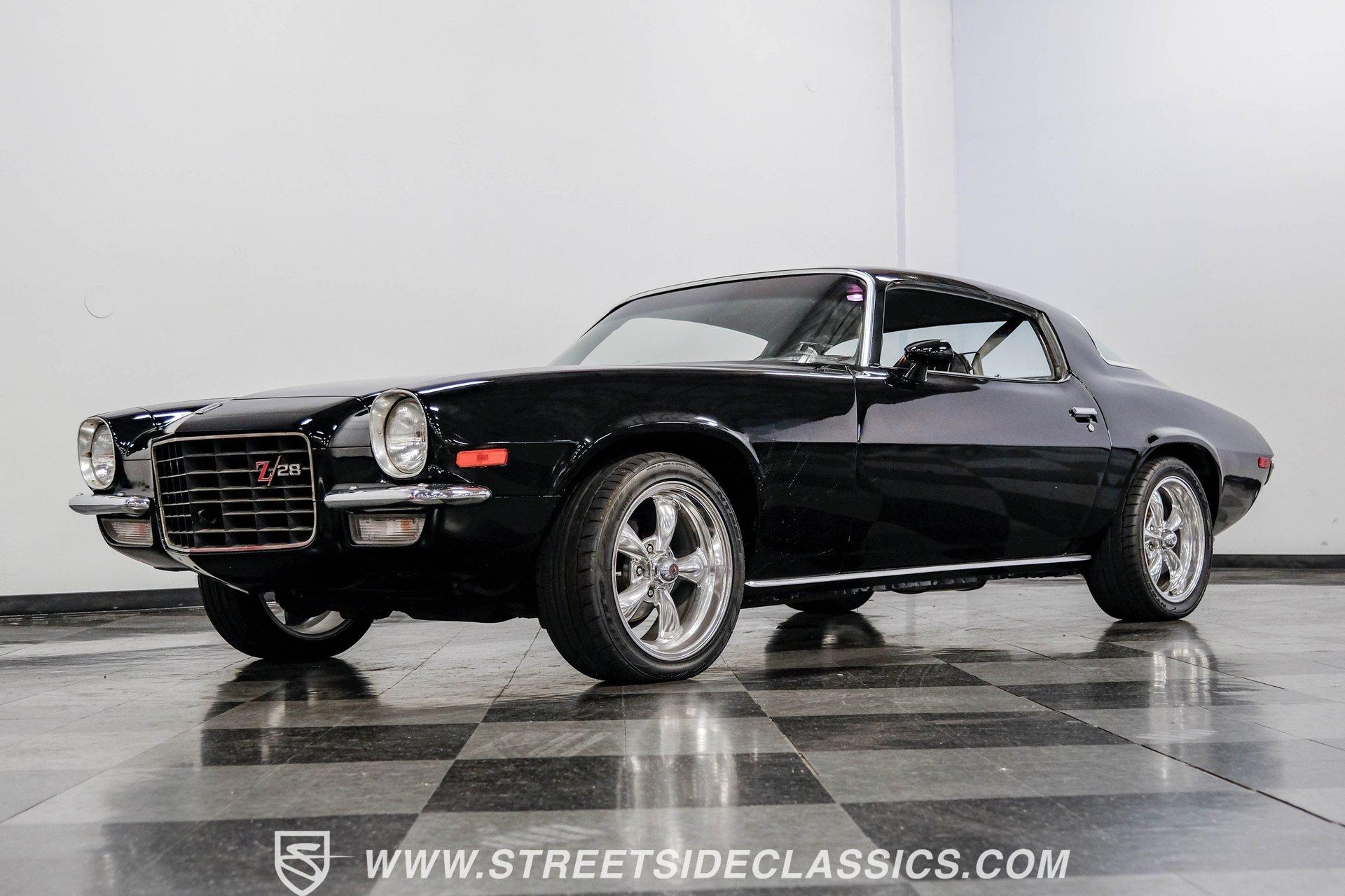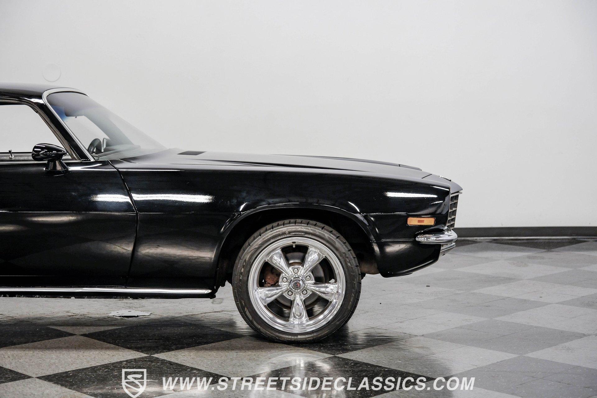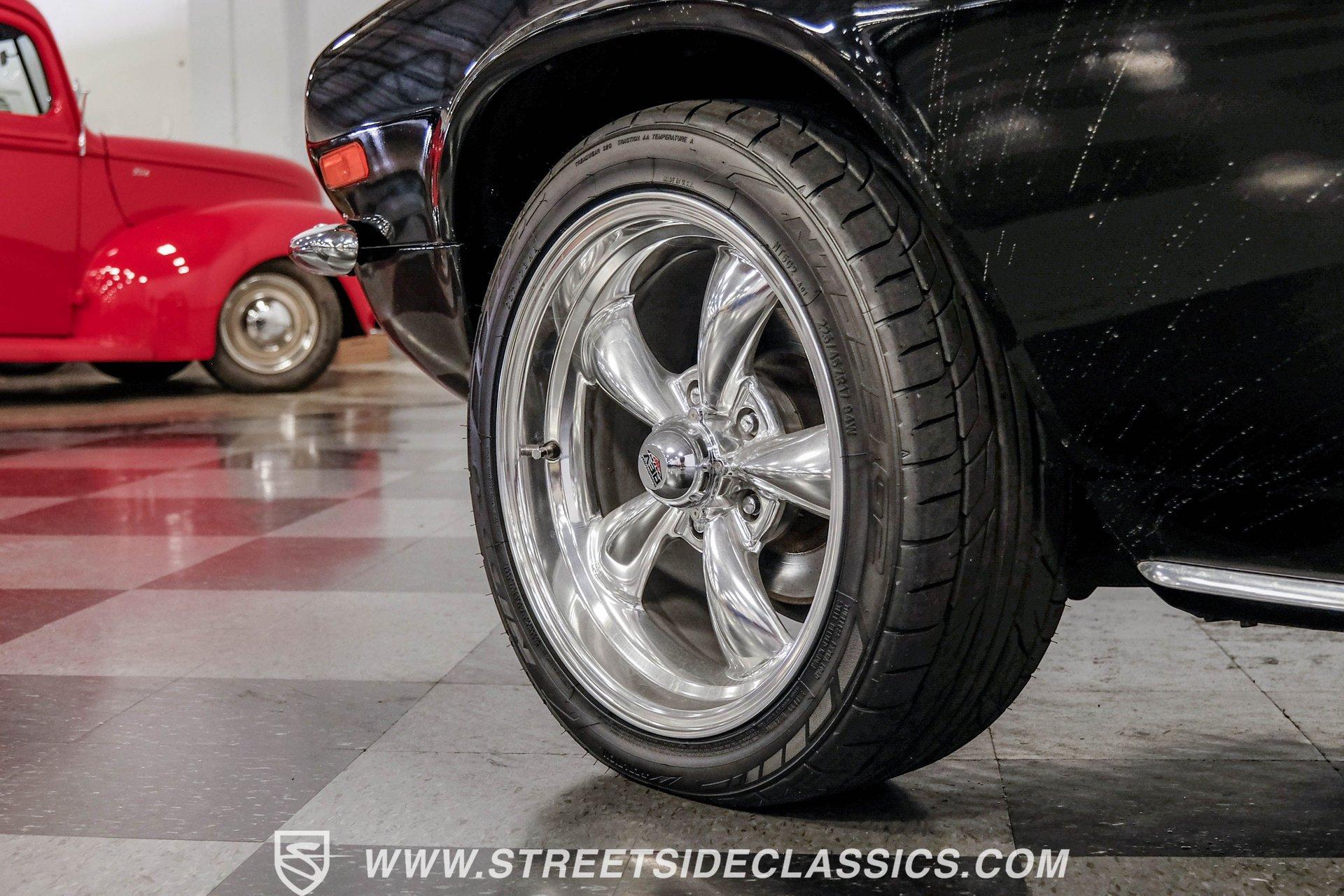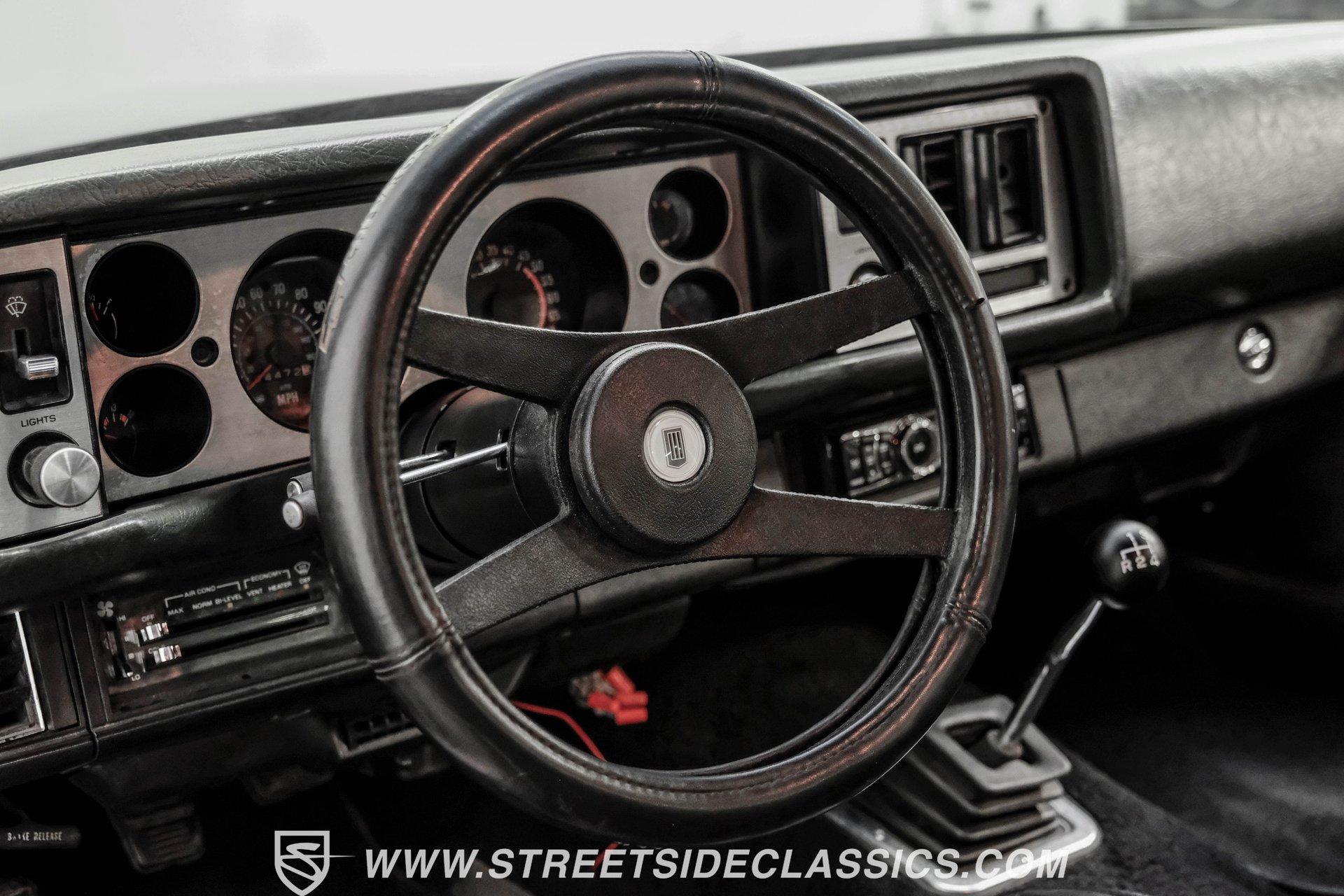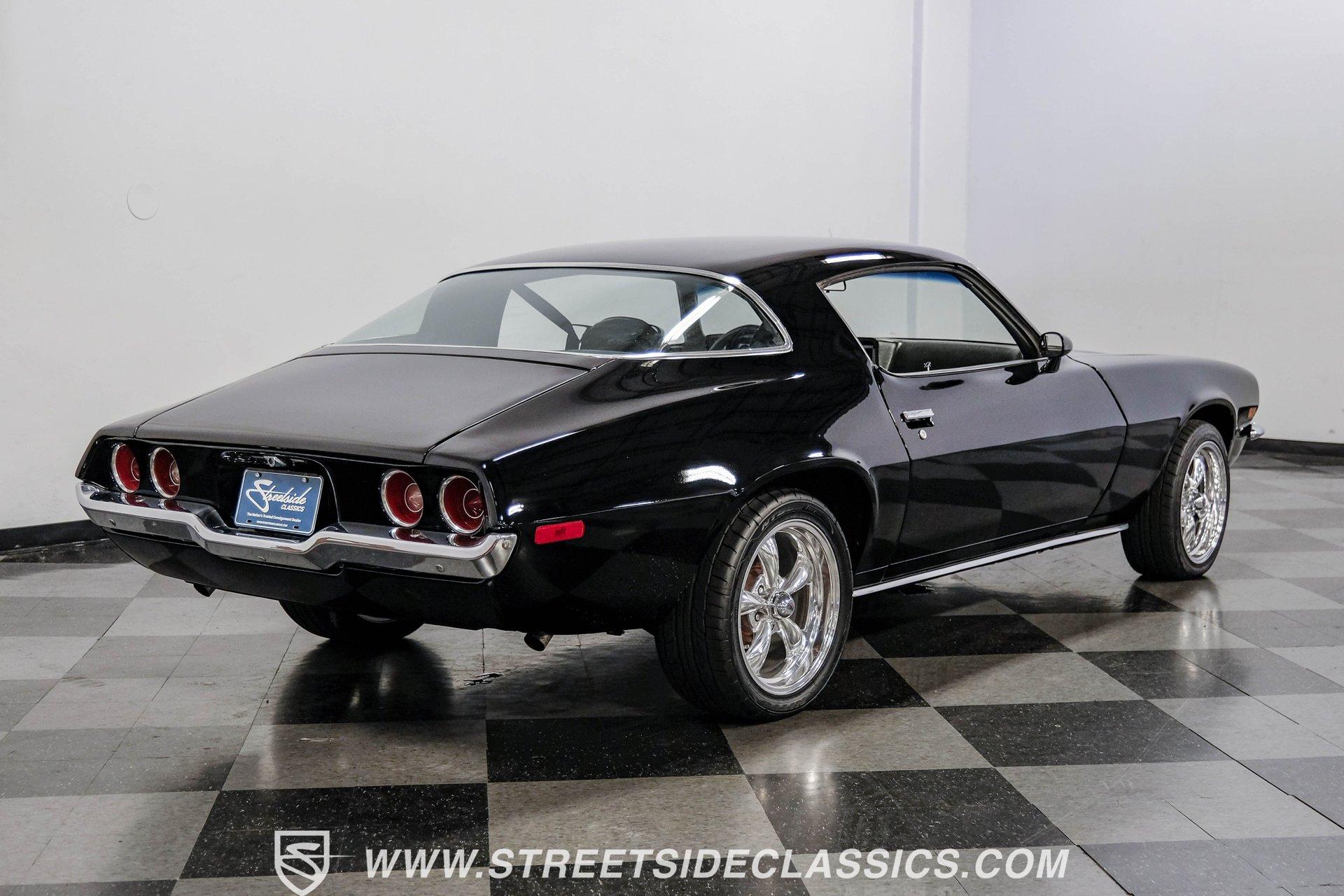 Converting the front clip and rear tail panel from an earlier second-generation model gives this 1979 Chevrolet Camaro Split Bumper Conversion the aggressive look of its predecessors. Black paint covers the transformed bodywork while gold decal stripes provide visual contrast across the surface. Chrome 17" Rev wheels fill the wheel wells, wrapped in 225/45ZR17 front and 255/40ZR17 rear Nitto tires. The conversion work includes both front and rear sections, creating the split bumper appearance that made the earlier Camaros so distinctive. Black vinyl bucket seats anchor the interior, complemented by matching door panels and a fresh headliner overhead. The floor-mounted shifter connects to the four-speed manual transmission, while an aftermarket Dual brand AM/FM/CD head unit with remote handles entertainment duties. Black carpet covers the floor, and the dashboard maintains its original configuration. Power steering assists with handling, and the interior reflects recent attention to detail with replaced components maintaining the factory appearance throughout the cabin. A 350 V8 engine provides motivation through the Quadrajet carburetor and aluminum intake manifold. Aftermarket Corvette valve covers dress up the engine bay, while the HEI distributor handles ignition duties. The four-speed manual transmission sends power through a 10-bolt rear axle. Power disc brakes handle stopping duties up front, with power drum brakes at the rear. An aluminum radiator manages cooling, and dual exhaust provides the soundtrack. Air shocks support the rear leaf springs, while coil springs and a sway bar handle front suspension duties. HIGHLIGHTS: 350 V8 Engine 4 Speed Manual Transmission Quadrajet Carburetor Aluminum Intake Manifold HEI Distributor Aftermarket Corvette Valve Covers Power Disc Front Brakes Dual Exhaust Aluminum Radiator 10 Bolt Rear Axle Air Shocks Rear Suspension Front Coil Springs With Sway Bar Black Paint With Gold Stripes Split Bumper Front Clip Conversion 17" Rev Wheels 225/45ZR17 Front, 255/40ZR17 Rear Nitto Tires Black Interior Floor Shifter Power Steering Dual Brand AM/FM/CD Head Unit With Remote Fresh Headliner Service Manuals Seatbelts Tilt Wheel Aggressive styling of earlier split bumper models and the solid foundation of a 1979 Chevrolet Camaro Split Bumper Conversion, this vehicle brings the right kind of muscle to the table. Call today!
