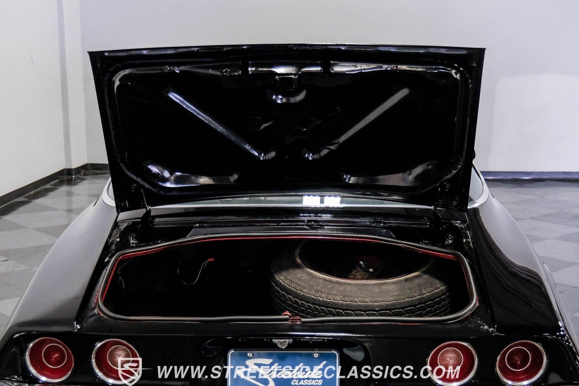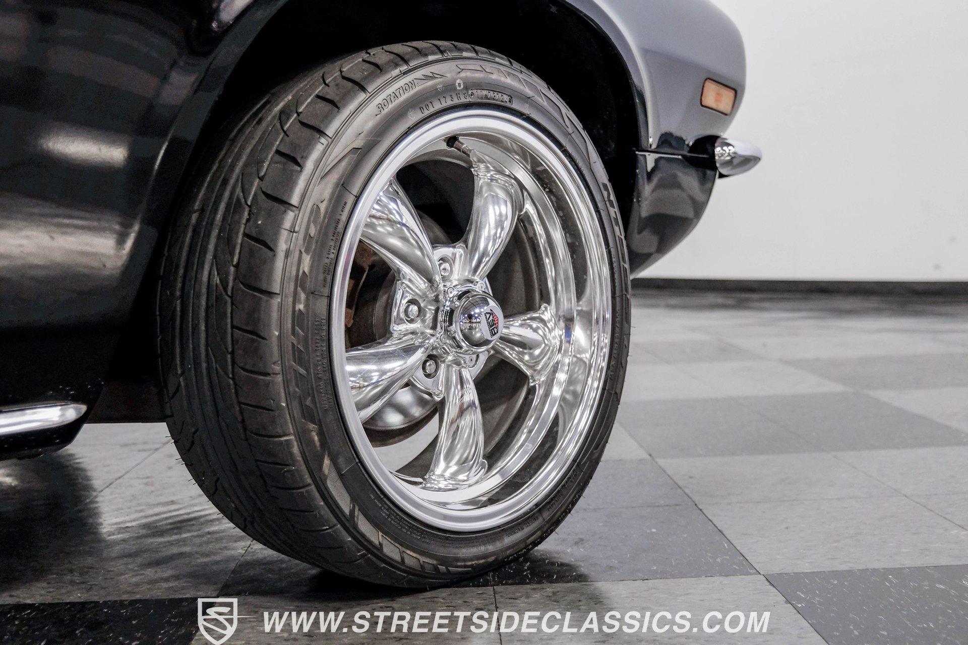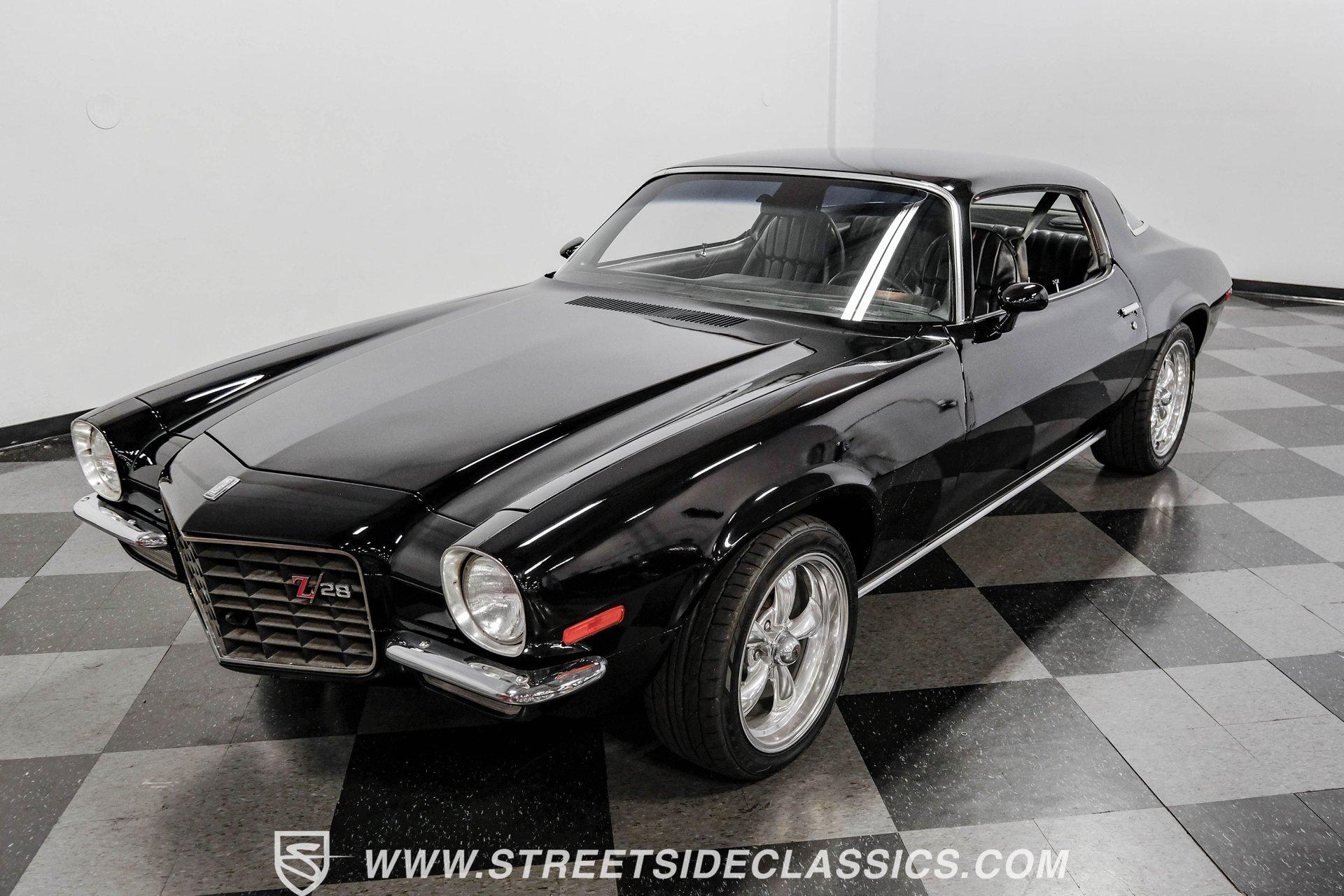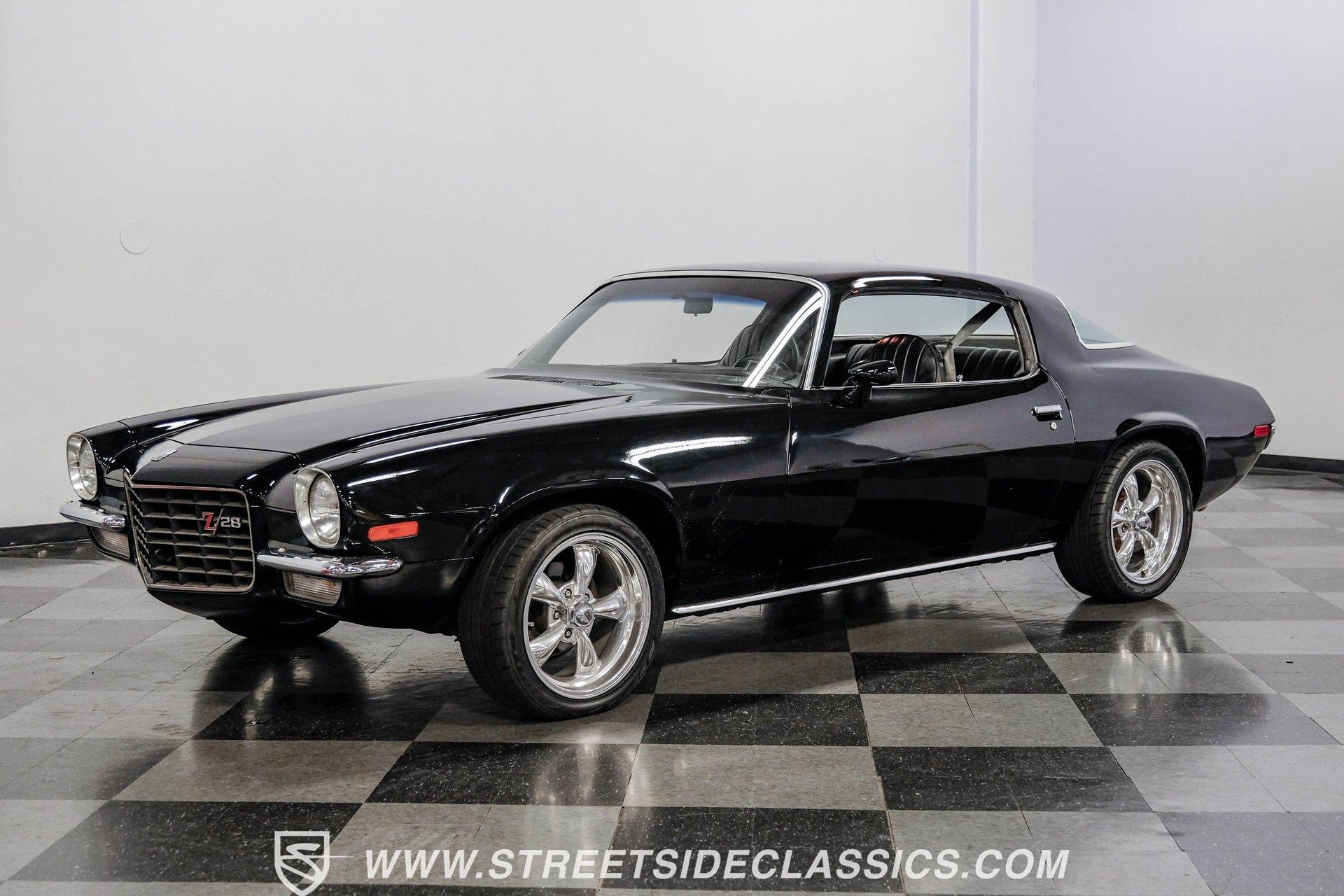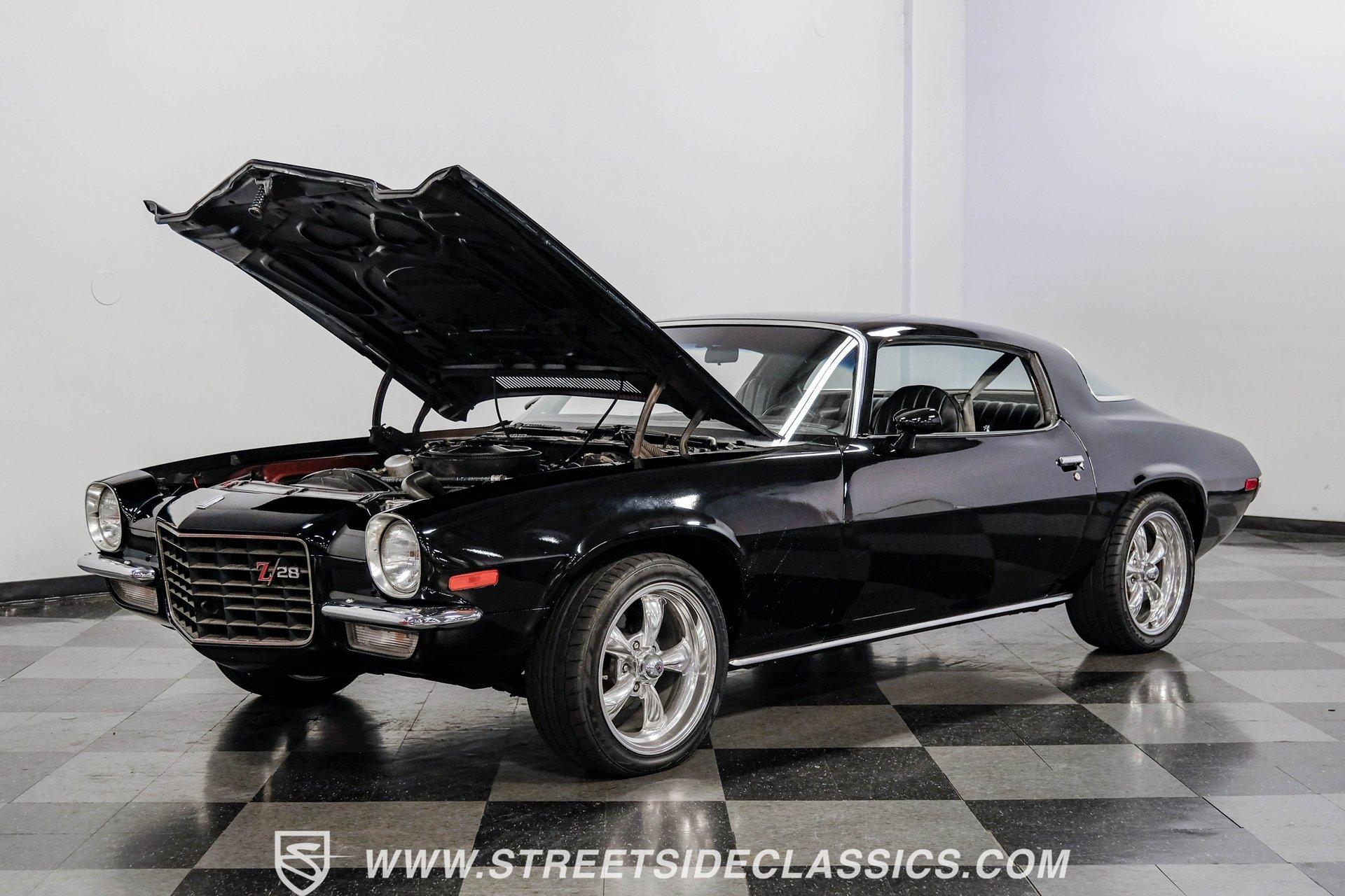 Converting the front clip and rear tail panel from an earlier second-generation model gives this 1979 Chevrolet Camaro Split Bumper Conversion the aggressive look of its predecessors. Black paint covers the transformed bodywork while gold decal stripes provide visual contrast across the surface. Chrome 17" Rev wheels fill the wheel wells, wrapped in 225/45ZR17 front and 255/40ZR17 rear Nitto tires. The conversion work includes both front and rear sections, creating the split bumper appearance that made the earlier Camaros so distinctive. Black vinyl bucket seats anchor the interior, complemented by matching door panels and a fresh headliner overhead. The floor-mounted shifter connects to the four-speed manual transmission, while an aftermarket Dual brand AM/FM/CD head unit with remote handles entertainment duties. Black carpet covers the floor, and the dashboard maintains its original configuration. Power steering assists with handling, and the interior reflects recent attention to detail with replaced components maintaining the factory appearance throughout the cabin. A 350 V8 engine provides motivation through the Quadrajet carburetor and aluminum intake manifold. Aftermarket Corvette valve covers dress up the engine bay, while the HEI distributor handles ignition duties. The four-speed manual transmission sends power through a 10-bolt rear axle. Power disc brakes handle stopping duties up front, with power drum brakes at the rear. An aluminum radiator manages cooling, and dual exhaust provides the soundtrack. Air shocks support the rear leaf springs, while coil springs and a sway bar handle front suspension duties. HIGHLIGHTS: 350 V8 Engine 4 Speed Manual Transmission Quadrajet Carburetor Aluminum Intake Manifold HEI Distributor Aftermarket Corvette Valve Covers Power Disc Front Brakes Dual Exhaust Aluminum Radiator 10 Bolt Rear Axle Air Shocks Rear Suspension Front Coil Springs With Sway Bar Black Paint With Gold Stripes Split Bumper Front Clip Conversion 17" Rev Wheels 225/45ZR17 Front, 255/40ZR17 Rear Nitto Tires Black Interior Floor Shifter Power Steering Dual Brand AM/FM/CD Head Unit With Remote Fresh Headliner Service Manuals Seatbelts Tilt Wheel Aggressive styling of earlier split bumper models and the solid foundation of a 1979 Chevrolet Camaro Split Bumper Conversion, this vehicle brings the right kind of muscle to the table. Call today!