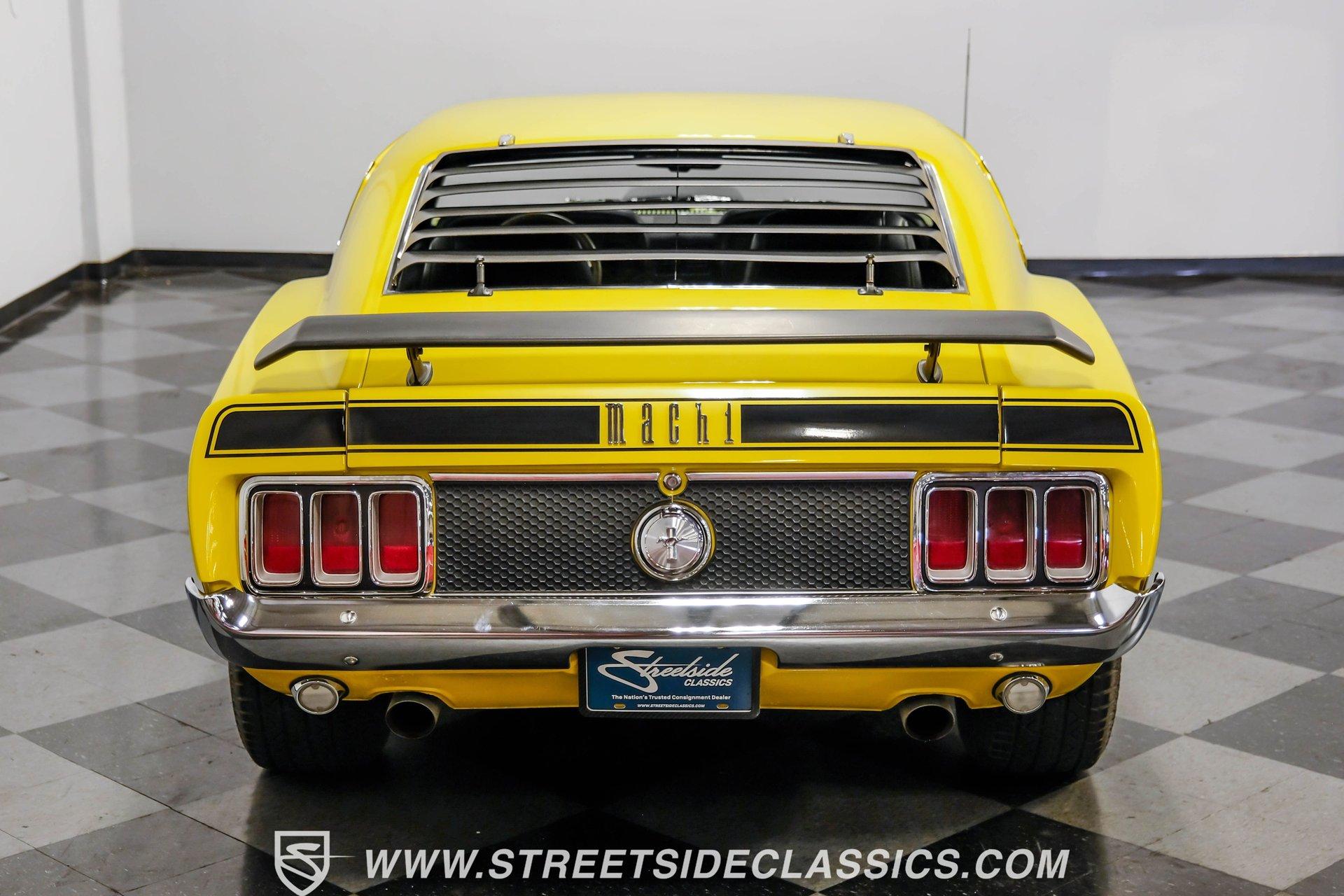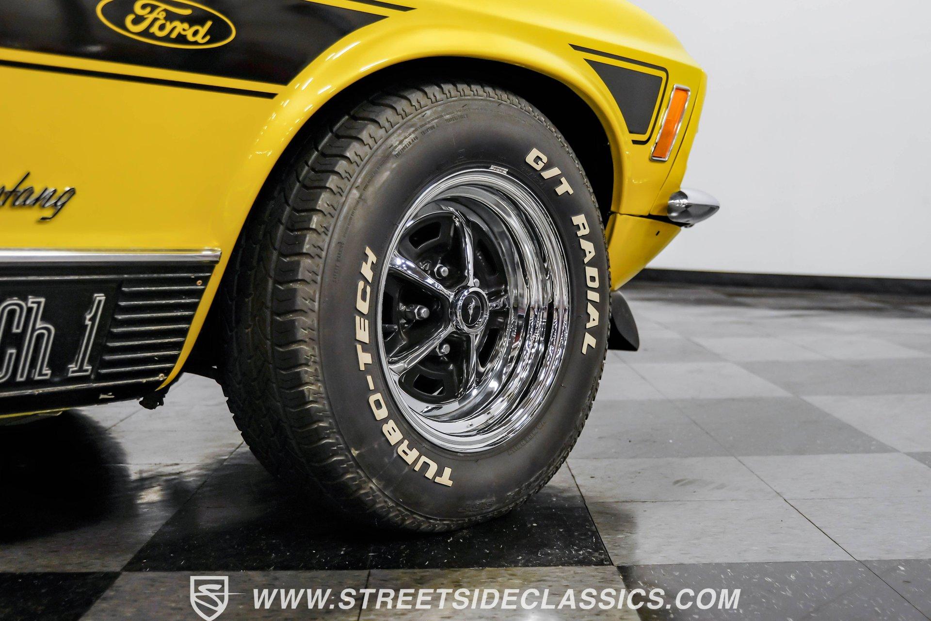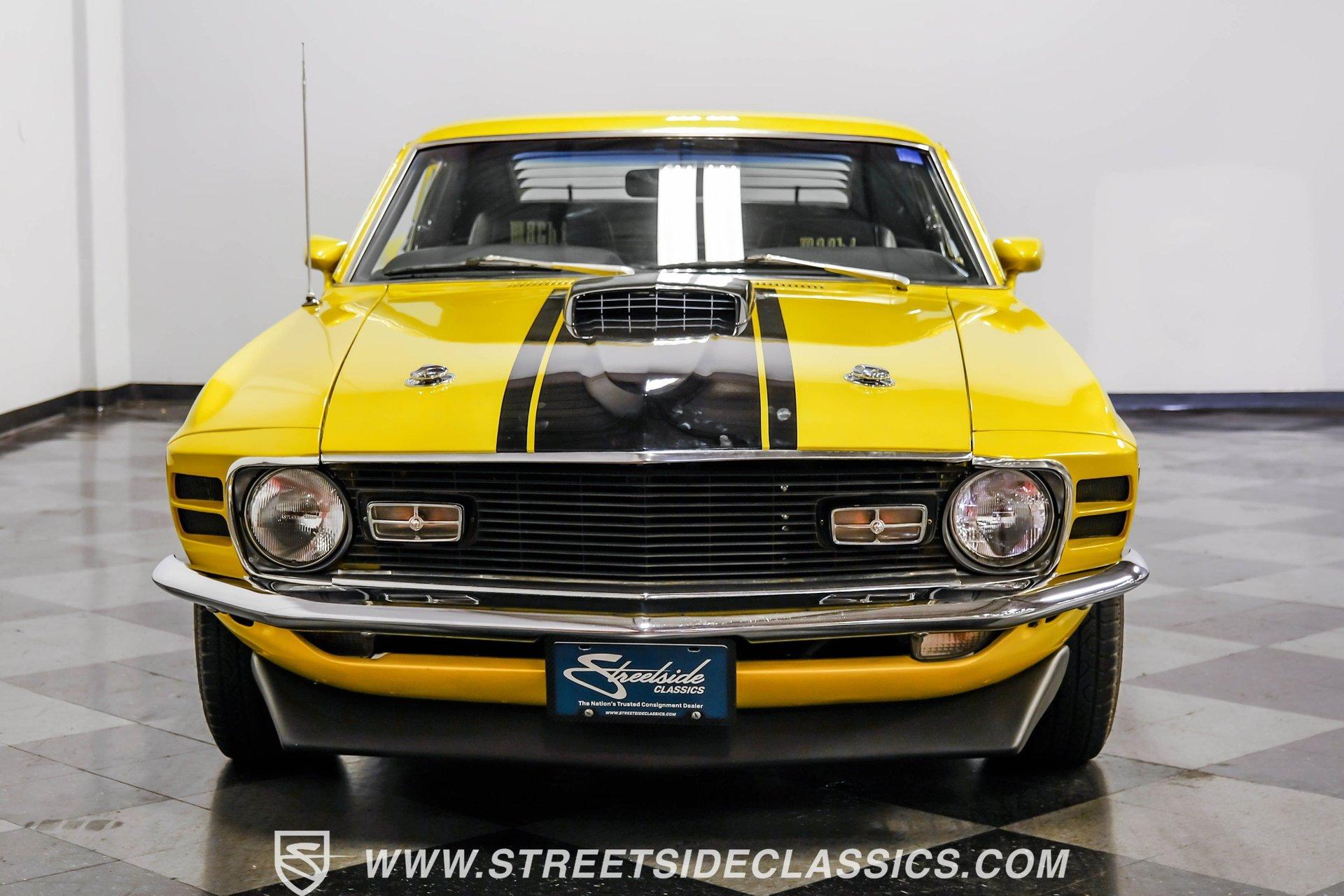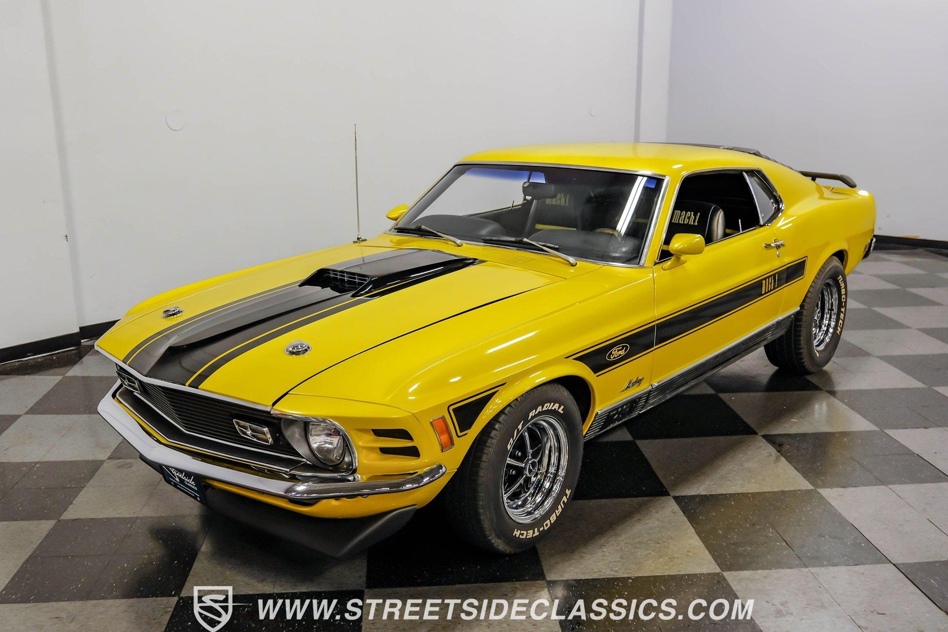 Finished just two years ago after a 15-year build, this 1970 Ford Mustang Mach 1 gleams in a custom yellow metallic finish that catches light from every angle. The iconic fastback silhouette features black accents strategically placed across the body – painted stripes on the hood with Twister Special decals along the sides and trunk. The aggressive stance is enhanced by 14-inch front and 15-inch rear Magnum 500 wheels wrapped in meaty 215/70R14 front and 275/60R15 rear tires. Additional exterior elements include the hood scoop, sleek rear window louvers, rear spoiler, and classic hood pins that add authentic muscle car character. Inside, the cabin has been completely revitalized with black vinyl bucket seats featuring vibrant yellow contrast stitching. The driver grips a classic wood steering wheel while viewing modern Dakota Digital analog-style gauges with integrated clock functions. Entertainment comes via a Retro Sound head unit with Bluetooth connectivity for wireless streaming. The custom center console houses a short-throw Hurst shifter alongside practical dual cup holders and a comfortable armrest. What appear to be manual window cranks actually control power windows – a clever blend of classic appearance with modern functionality. Mechanical excellence defines this Mach 1's performance credentials. The 302 V8 crate engine from ATK Performance in Grand Prairie, Texas shows just 2,197 miles of use since installation. FiTech electronic fuel injection feeds the V8, while the Borg Warner T5 5-speed manual transmission delivers precise gear changes. The front suspension features tubular A-arms with adjustable coil-overs and a sway bar, while the 9-inch rear end with posi-traction puts power to the pavement. An aluminum radiator with electric fan keeps temperatures in check, and the H-pipe dual exhaust with FlowMaster mufflers produces an authoritative exhaust note. HIGHLIGHTS: 302 V8 Crate Engine 5-Speed Manual Transmission (Borg Warner T5) FiTech Electronic Fuel Injection Tubular A-arms with Adjustable Coil-Overs Front Power Disc Brakes 9-inch Rear with Posi-Traction H-Pipe Dual Exhaust with FlowMaster Mufflers Aluminum Radiator with Electric Fan Custom Yellow Metallic Paint Painted Black Hood Stripes Twister Special Side and Trunk Decal Stripes 14" Front, 15" Rear Magnum 500 Wheels 215/70R14 Front, 275/60R15 Rear Tires Rear Window Louvers Rear Spoiler Hood Scoop Hood Hold Downs Black Interior with Yellow Stitching Bucket Seats with Custom Console Hurst Shifter Power Steering Dakota Digital Analog-Style Gauges with Clock Wood Grip Steering Wheel Retro Sound with Bluetooth Power Windows Sport Deck Rear Seat Marti Report FiTech Controller/Monitor Authentic muscle with modern upgrades make this 1970 Ford Mustang Mach 1 an exceptional driving machine. From its eye-catching yellow metallic paint to its powerful 302 V8 and driver-friendly 5-speed manual, this fastback brings together the best of classic styling with thoughtful performance enhancements. Call today!