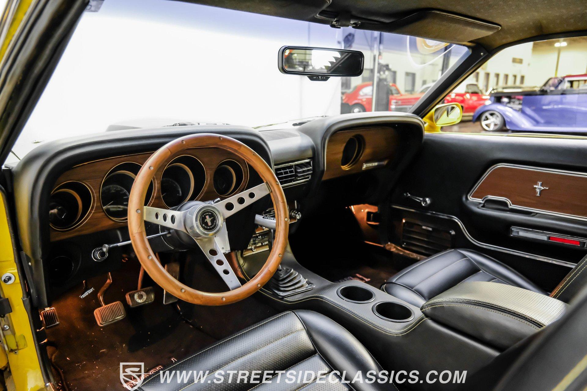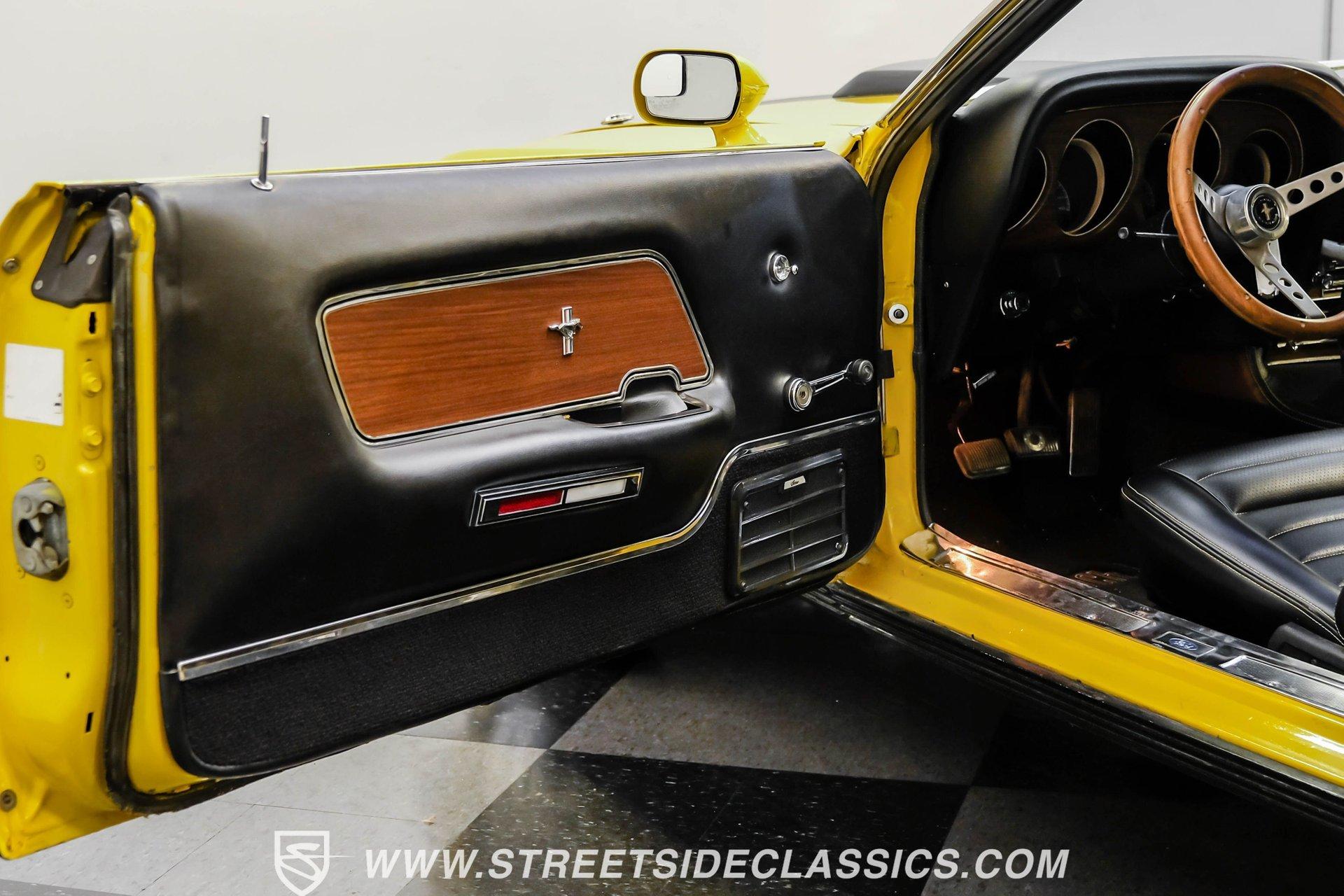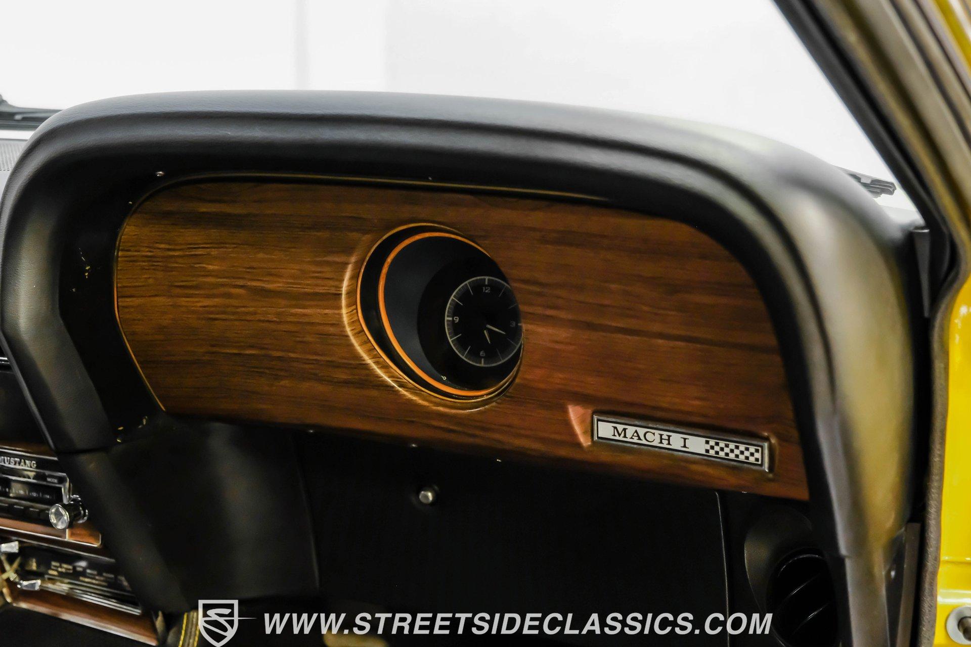 Finished just two years ago after a 15-year build, this 1970 Ford Mustang Mach 1 gleams in a custom yellow metallic finish that catches light from every angle. The iconic fastback silhouette features black accents strategically placed across the body – painted stripes on the hood with Twister Special decals along the sides and trunk. The aggressive stance is enhanced by 14-inch front and 15-inch rear Magnum 500 wheels wrapped in meaty 215/70R14 front and 275/60R15 rear tires. Additional exterior elements include the hood scoop, sleek rear window louvers, rear spoiler, and classic hood pins that add authentic muscle car character. Inside, the cabin has been completely revitalized with black vinyl bucket seats featuring vibrant yellow contrast stitching. The driver grips a classic wood steering wheel while viewing modern Dakota Digital analog-style gauges with integrated clock functions. Entertainment comes via a Retro Sound head unit with Bluetooth connectivity for wireless streaming. The custom center console houses a short-throw Hurst shifter alongside practical dual cup holders and a comfortable armrest. What appear to be manual window cranks actually control power windows – a clever blend of classic appearance with modern functionality. Mechanical excellence defines this Mach 1's performance credentials. The 302 V8 crate engine from ATK Performance in Grand Prairie, Texas shows just 2,197 miles of use since installation. FiTech electronic fuel injection feeds the V8, while the Borg Warner T5 5-speed manual transmission delivers precise gear changes. The front suspension features tubular A-arms with adjustable coil-overs and a sway bar, while the 9-inch rear end with posi-traction puts power to the pavement. An aluminum radiator with electric fan keeps temperatures in check, and the H-pipe dual exhaust with FlowMaster mufflers produces an authoritative exhaust note. HIGHLIGHTS: 302 V8 Crate Engine 5-Speed Manual Transmission (Borg Warner T5) FiTech Electronic Fuel Injection Tubular A-arms with Adjustable Coil-Overs Front Power Disc Brakes 9-inch Rear with Posi-Traction H-Pipe Dual Exhaust with FlowMaster Mufflers Aluminum Radiator with Electric Fan Custom Yellow Metallic Paint Painted Black Hood Stripes Twister Special Side and Trunk Decal Stripes 14" Front, 15" Rear Magnum 500 Wheels 215/70R14 Front, 275/60R15 Rear Tires Rear Window Louvers Rear Spoiler Hood Scoop Hood Hold Downs Black Interior with Yellow Stitching Bucket Seats with Custom Console Hurst Shifter Power Steering Dakota Digital Analog-Style Gauges with Clock Wood Grip Steering Wheel Retro Sound with Bluetooth Power Windows Sport Deck Rear Seat Marti Report FiTech Controller/Monitor Authentic muscle with modern upgrades make this 1970 Ford Mustang Mach 1 an exceptional driving machine. From its eye-catching yellow metallic paint to its powerful 302 V8 and driver-friendly 5-speed manual, this fastback brings together the best of classic styling with thoughtful performance enhancements. Call today!