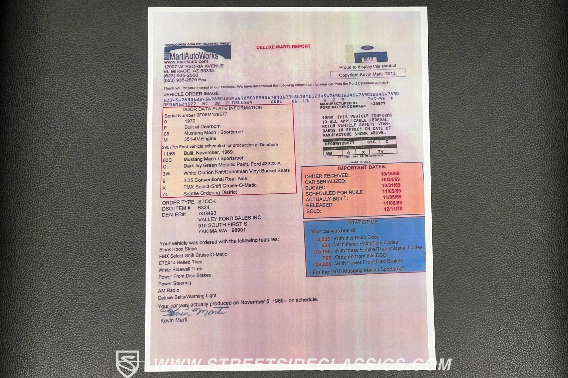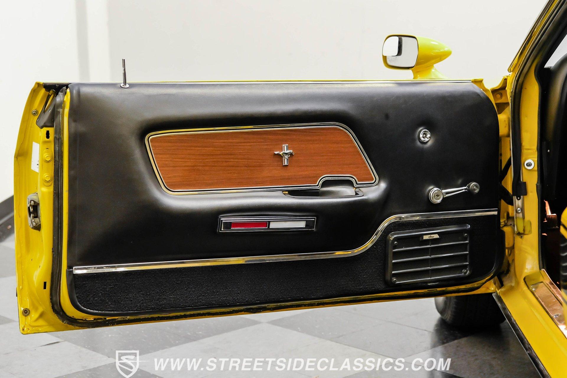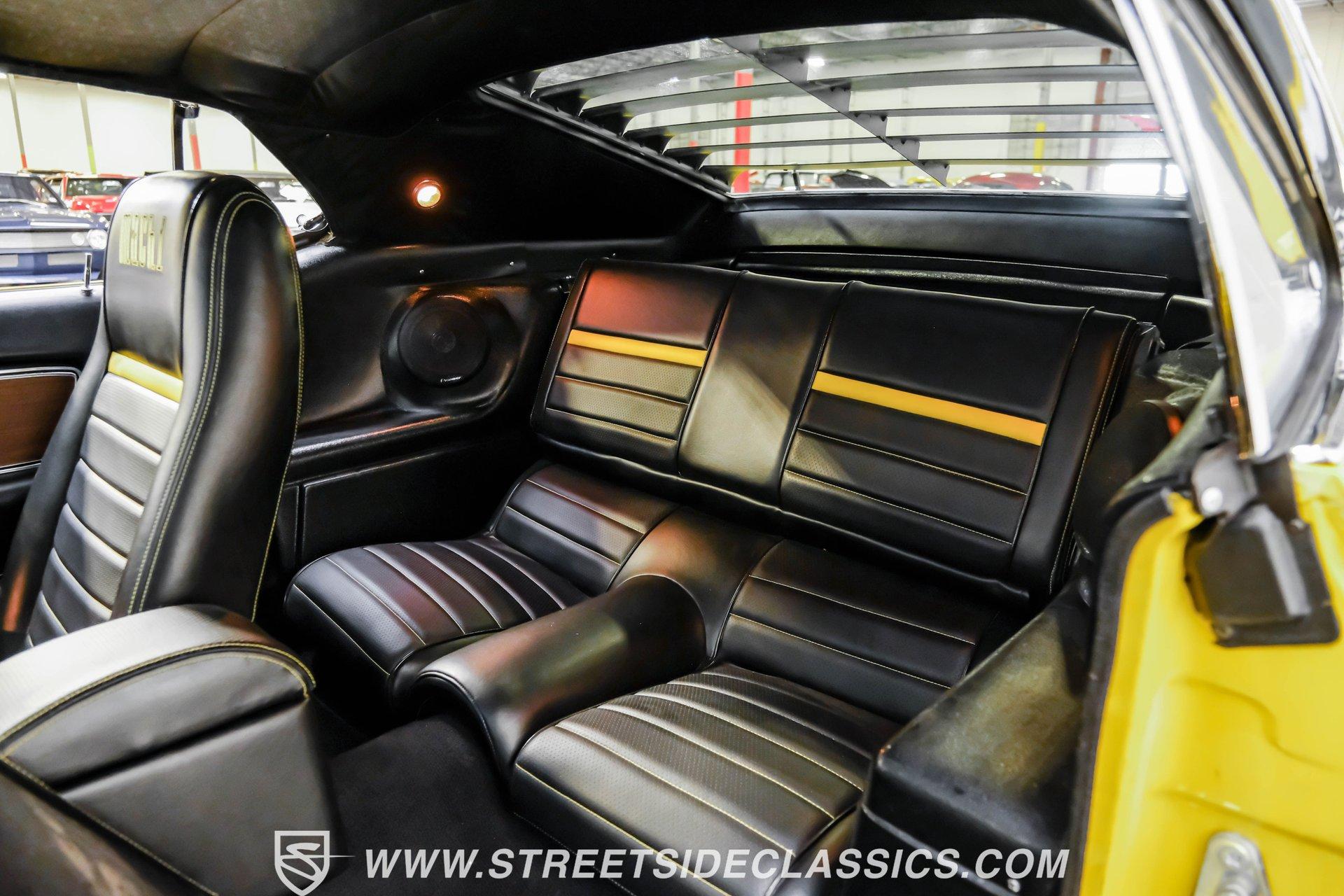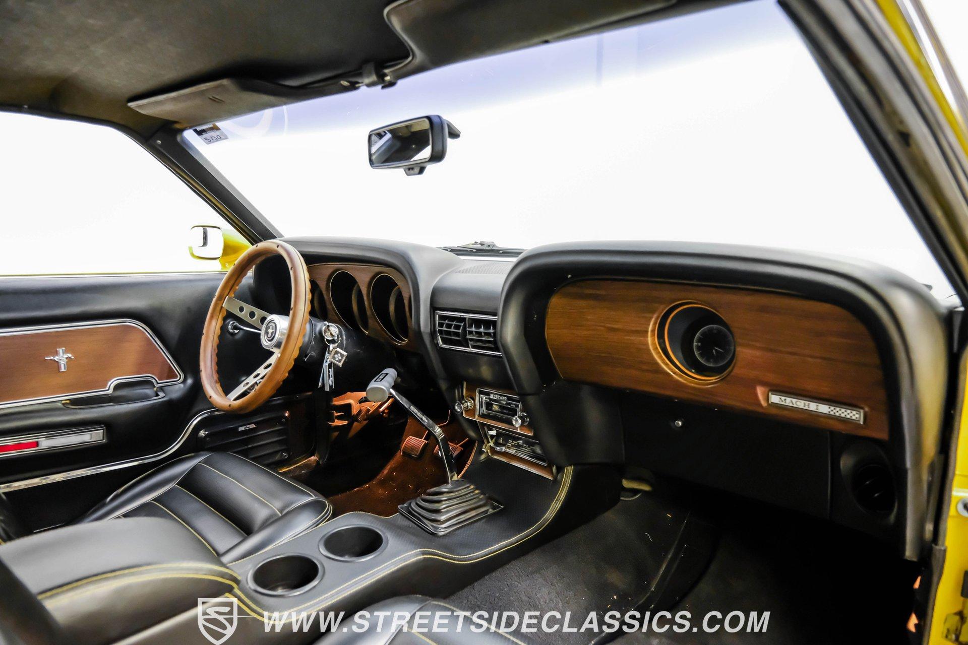 Finished just two years ago after a 15-year build, this 1970 Ford Mustang Mach 1 gleams in a custom yellow metallic finish that catches light from every angle. The iconic fastback silhouette features black accents strategically placed across the body – painted stripes on the hood with Twister Special decals along the sides and trunk. The aggressive stance is enhanced by 14-inch front and 15-inch rear Magnum 500 wheels wrapped in meaty 215/70R14 front and 275/60R15 rear tires. Additional exterior elements include the hood scoop, sleek rear window louvers, rear spoiler, and classic hood pins that add authentic muscle car character. Inside, the cabin has been completely revitalized with black vinyl bucket seats featuring vibrant yellow contrast stitching. The driver grips a classic wood steering wheel while viewing modern Dakota Digital analog-style gauges with integrated clock functions. Entertainment comes via a Retro Sound head unit with Bluetooth connectivity for wireless streaming. The custom center console houses a short-throw Hurst shifter alongside practical dual cup holders and a comfortable armrest. What appear to be manual window cranks actually control power windows – a clever blend of classic appearance with modern functionality. Mechanical excellence defines this Mach 1's performance credentials. The 302 V8 crate engine from ATK Performance in Grand Prairie, Texas shows just 2,197 miles of use since installation. FiTech electronic fuel injection feeds the V8, while the Borg Warner T5 5-speed manual transmission delivers precise gear changes. The front suspension features tubular A-arms with adjustable coil-overs and a sway bar, while the 9-inch rear end with posi-traction puts power to the pavement. An aluminum radiator with electric fan keeps temperatures in check, and the H-pipe dual exhaust with FlowMaster mufflers produces an authoritative exhaust note. HIGHLIGHTS: 302 V8 Crate Engine 5-Speed Manual Transmission (Borg Warner T5) FiTech Electronic Fuel Injection Tubular A-arms with Adjustable Coil-Overs Front Power Disc Brakes 9-inch Rear with Posi-Traction H-Pipe Dual Exhaust with FlowMaster Mufflers Aluminum Radiator with Electric Fan Custom Yellow Metallic Paint Painted Black Hood Stripes Twister Special Side and Trunk Decal Stripes 14" Front, 15" Rear Magnum 500 Wheels 215/70R14 Front, 275/60R15 Rear Tires Rear Window Louvers Rear Spoiler Hood Scoop Hood Hold Downs Black Interior with Yellow Stitching Bucket Seats with Custom Console Hurst Shifter Power Steering Dakota Digital Analog-Style Gauges with Clock Wood Grip Steering Wheel Retro Sound with Bluetooth Power Windows Sport Deck Rear Seat Marti Report FiTech Controller/Monitor Authentic muscle with modern upgrades make this 1970 Ford Mustang Mach 1 an exceptional driving machine. From its eye-catching yellow metallic paint to its powerful 302 V8 and driver-friendly 5-speed manual, this fastback brings together the best of classic styling with thoughtful performance enhancements. Call today!
