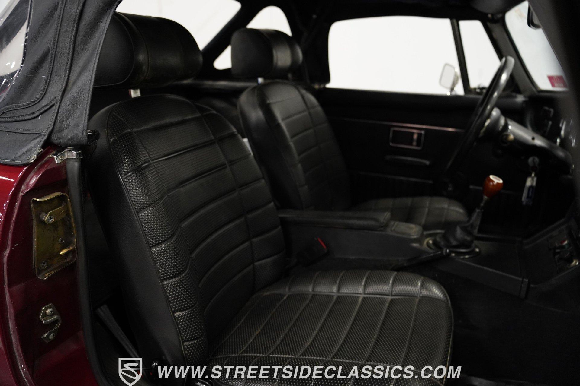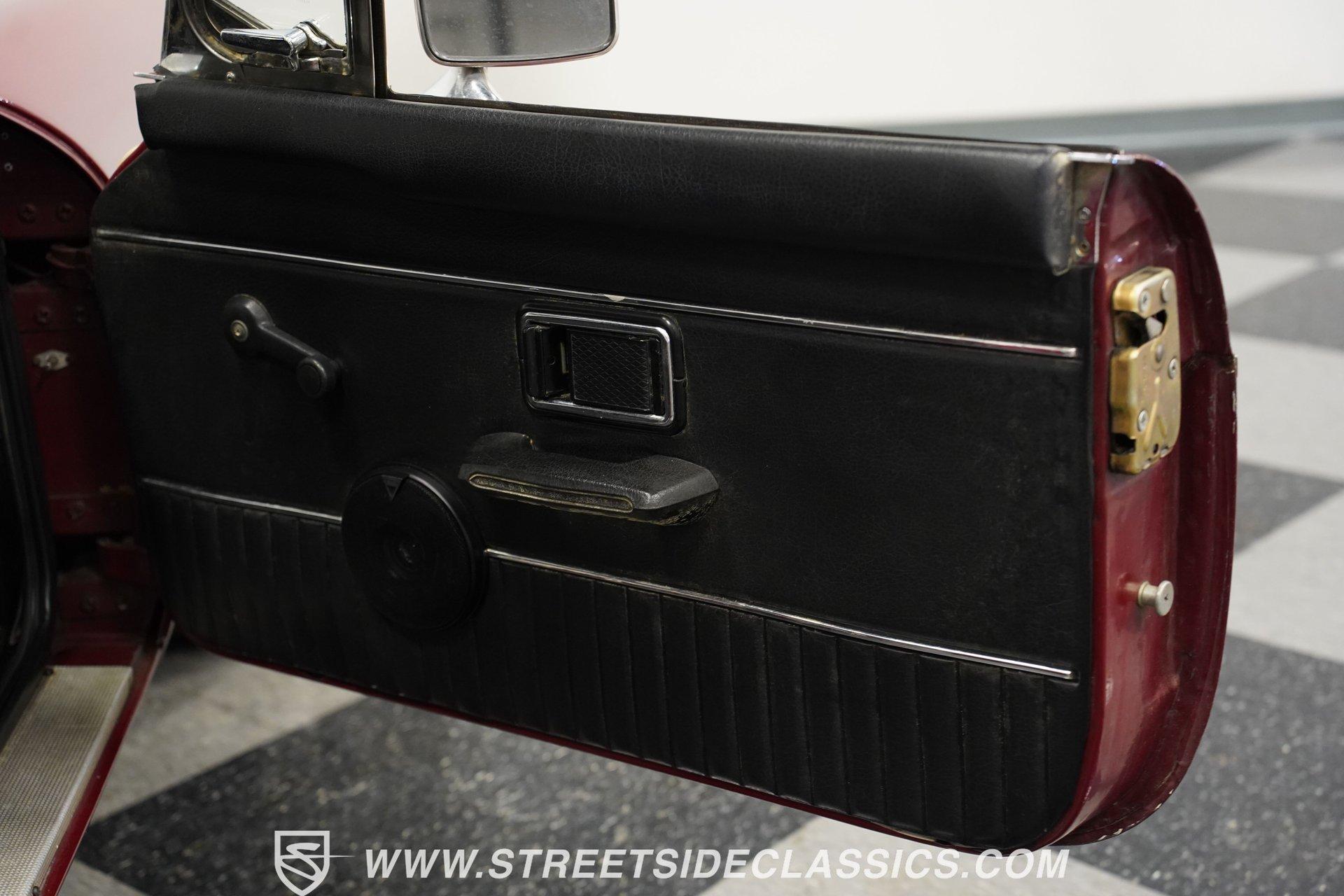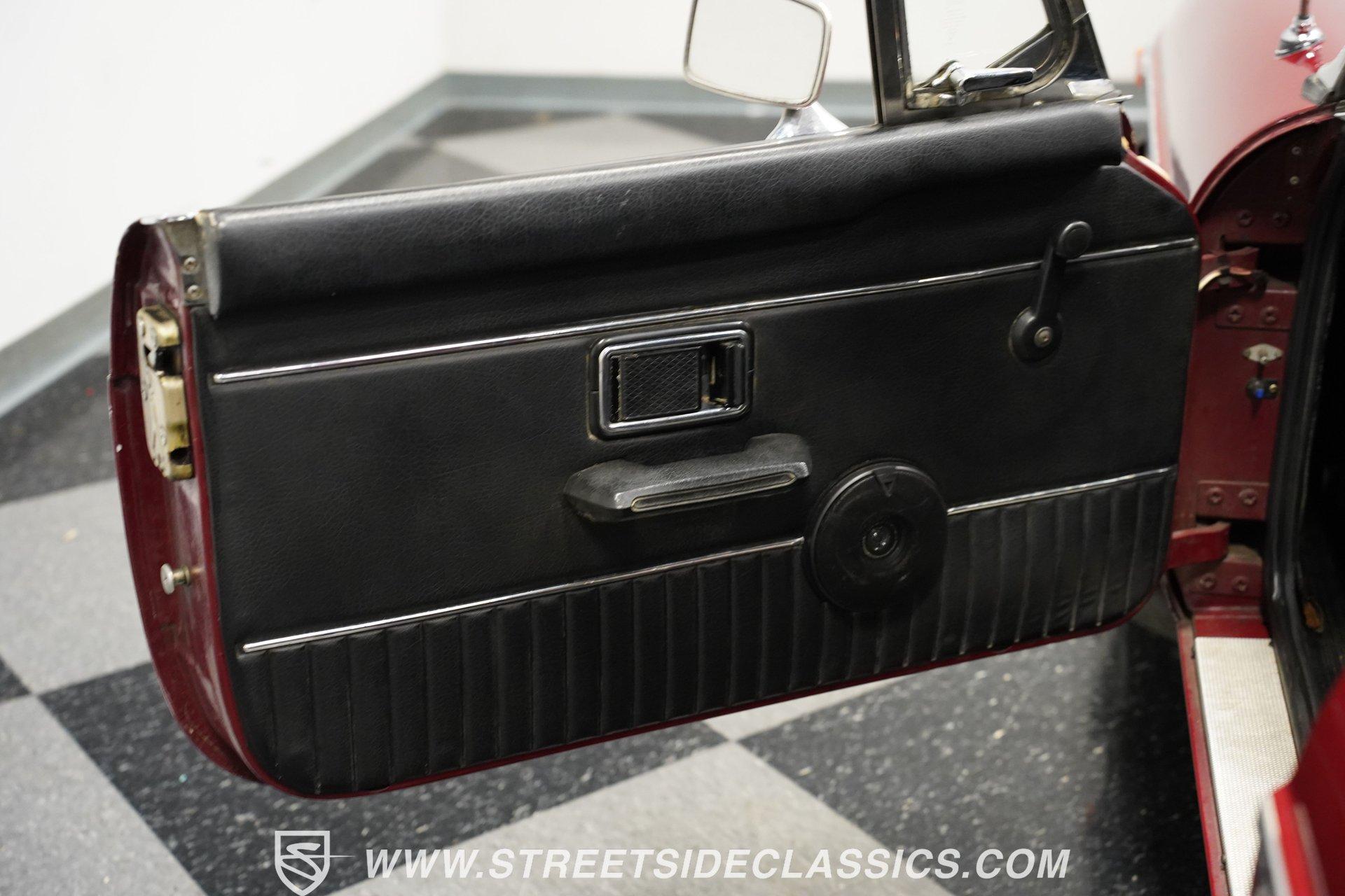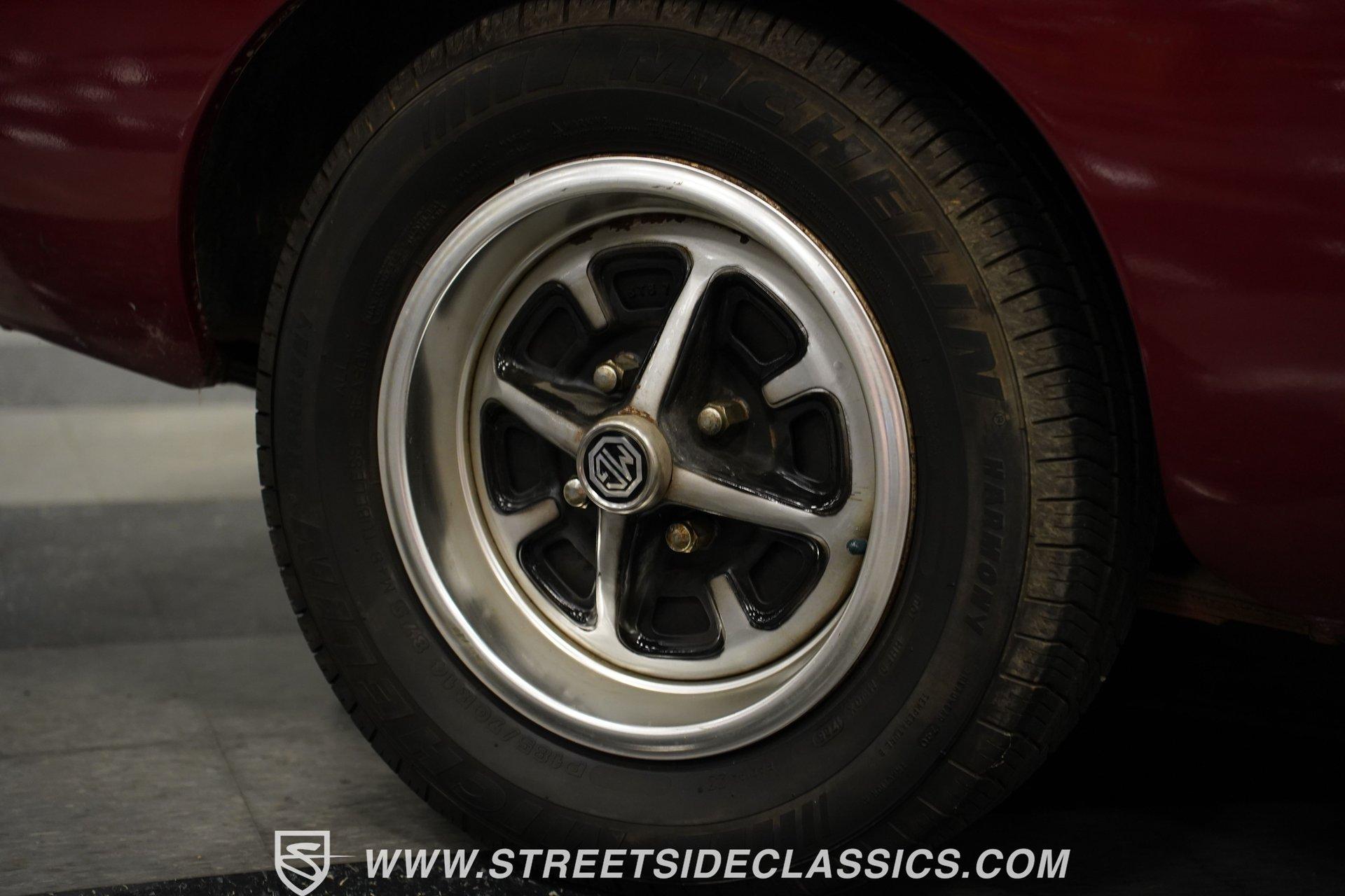 A genuine one-owner British classic, the 1976 MG MGB wears its Damask Red finish with distinction. Short overhangs and compact proportions give away its sporting intentions immediately. The black vinyl convertible top provides quick access to open-air motoring while maintaining a clean look when in place. Rolling on 14" wheels with P185/70R14 tires, this roadster maintains the authentic stance MG enthusiasts appreciate, with nothing extra added and nothing important left out. Black vinyl covers the interior surfaces, creating a straightforward cabin focused on driving. The dual bucket seats provide good support during cornering, while a center console houses the manual shifter for direct gear selection. An aftermarket AM/FM cassette player upgrades the audio capabilities beyond what came from the factory. The simple yet effective gauge layout provides all necessary information without distraction, keeping your attention where it belongs-on the road ahead. An original 1798 CC inline four-cylinder engine rests between the front wheels, upgraded with a Weber carburetor and Pierce intake for improved performance. The four-speed manual transmission puts full control in your hands for maximum enjoyment on winding roads. Power disc brakes handle stopping duties with efficiency. The single exhaust with factory muffler and shorty manifold completes the mechanical package, all maintained properly throughout the car's life to keep everything running as intended. HIGHLIGHTS: 1798 CC Inline Four-Cylinder Engine 4 Speed Manual Transmission Weber Carburetor Pierce Intake Power Disc Brakes Single Exhaust Shorty Manifold Factory Muffler Damask Red Paint Black Vinyl Convertible Top Plastic Rear Window 14" Wheels In P185/70R14 Tires Black Interior With Bucket Seats Console Shifter Center Console AM/FM Cassette Player Seatbelts Original Warranty Card Owner's Manual Service Manuals One Owner Since New From Knoxville since day one, this 1976 MG MGB offers pure roadster simplicity with its original 1798 CC engine, Weber carburetor upgrade, and manual-shift driving experience that keeps you connected to the road. A perfect addition to any garage that values authentic motoring. Call today!