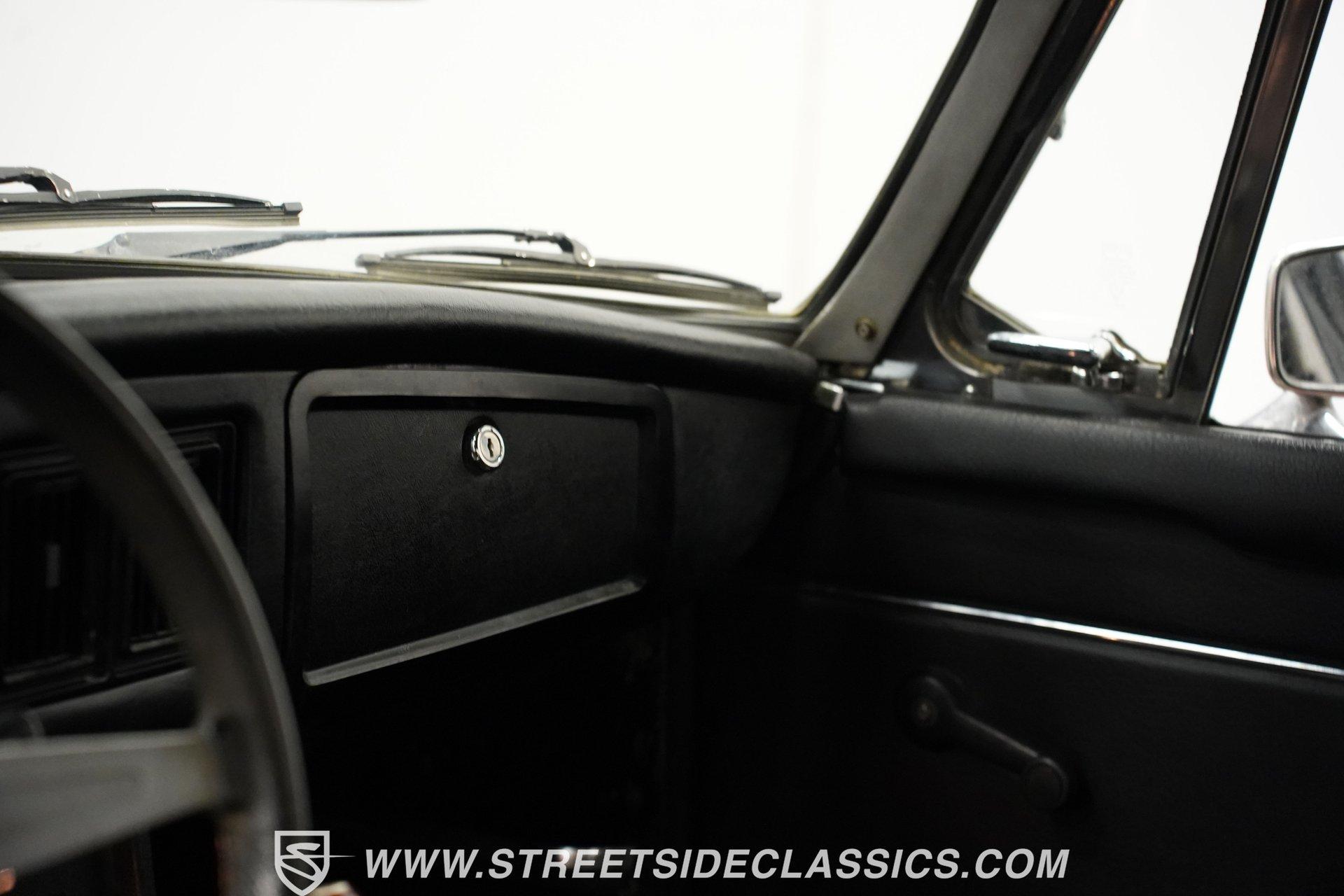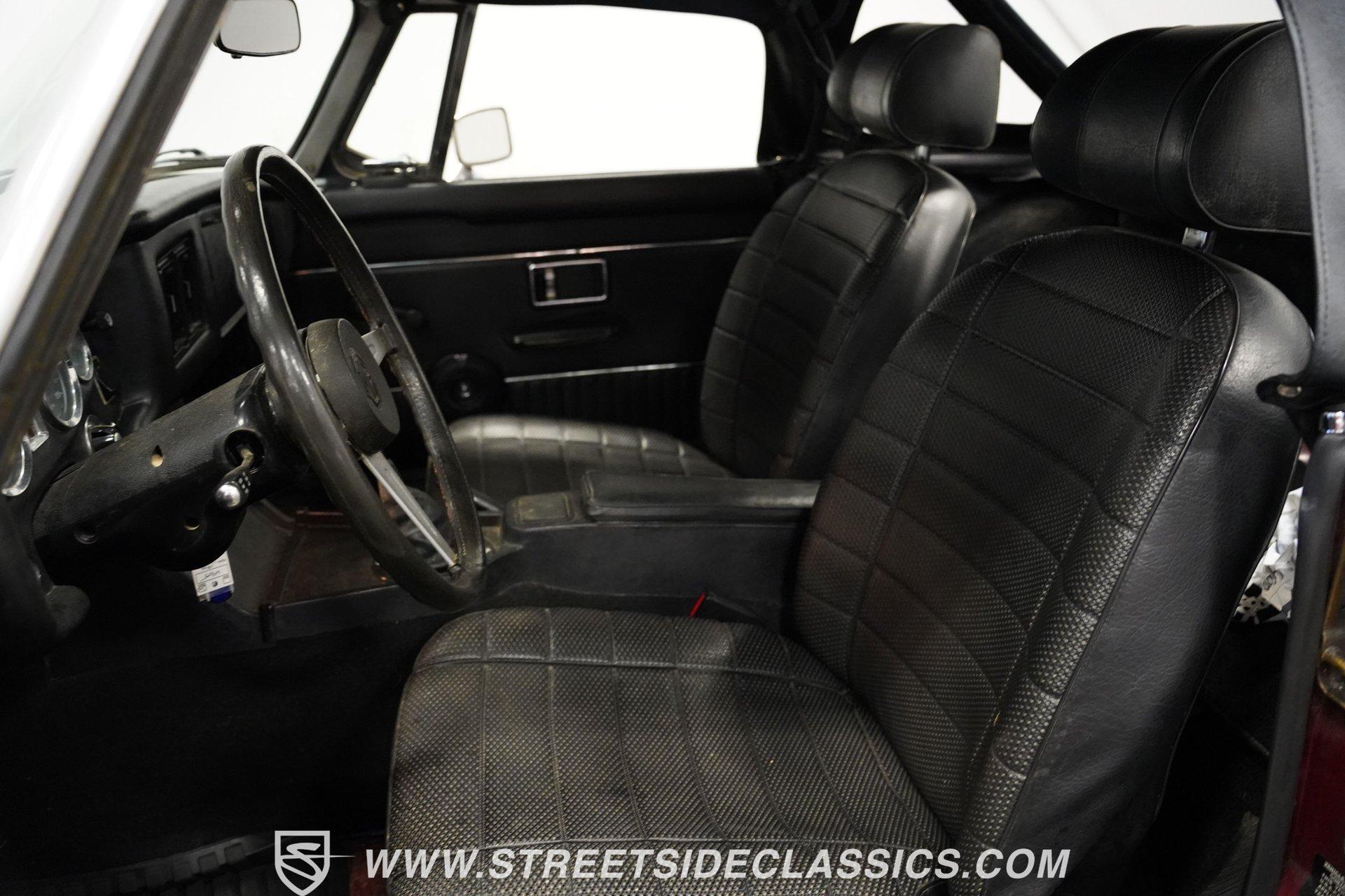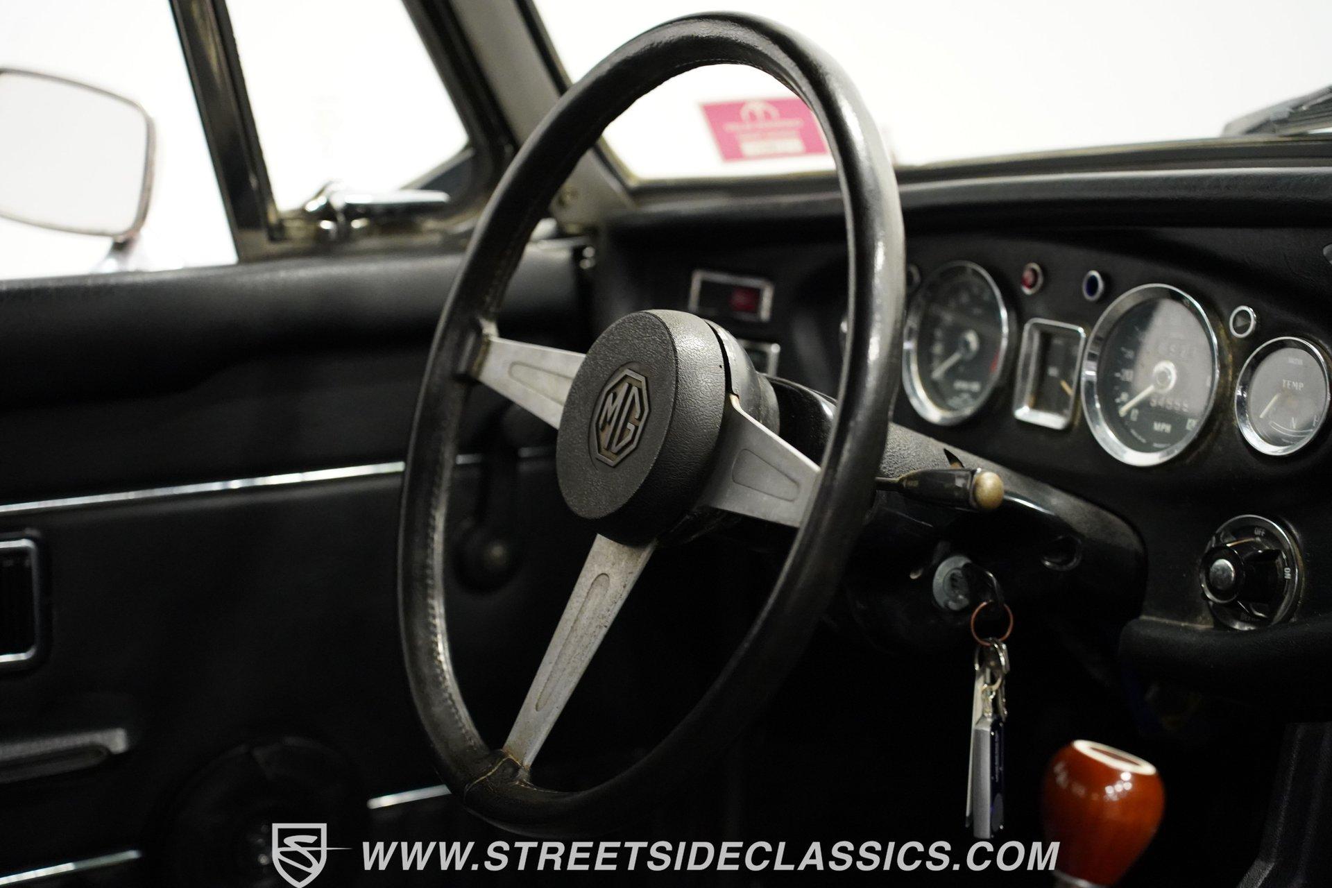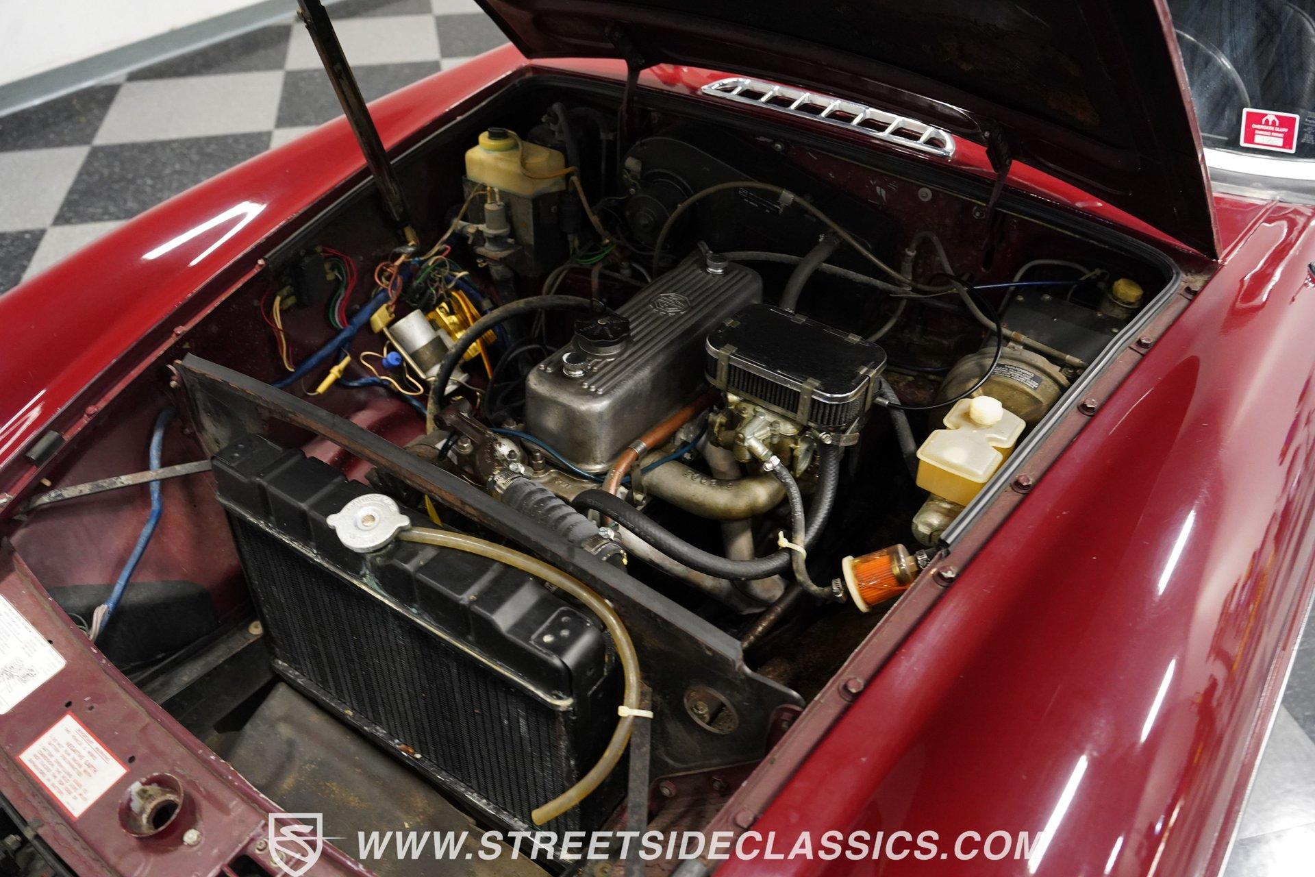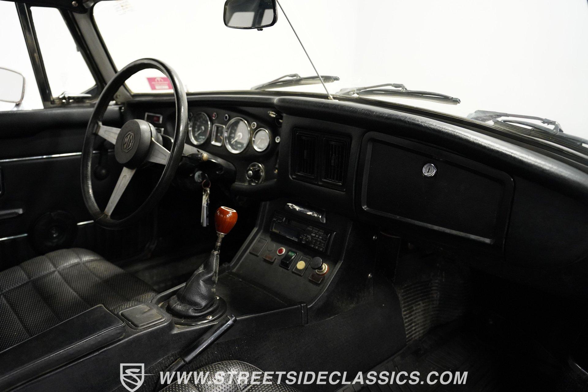 A genuine one-owner British classic, the 1976 MG MGB wears its Damask Red finish with distinction. Short overhangs and compact proportions give away its sporting intentions immediately. The black vinyl convertible top provides quick access to open-air motoring while maintaining a clean look when in place. Rolling on 14" wheels with P185/70R14 tires, this roadster maintains the authentic stance MG enthusiasts appreciate, with nothing extra added and nothing important left out. Black vinyl covers the interior surfaces, creating a straightforward cabin focused on driving. The dual bucket seats provide good support during cornering, while a center console houses the manual shifter for direct gear selection. An aftermarket AM/FM cassette player upgrades the audio capabilities beyond what came from the factory. The simple yet effective gauge layout provides all necessary information without distraction, keeping your attention where it belongs-on the road ahead. An original 1798 CC inline four-cylinder engine rests between the front wheels, upgraded with a Weber carburetor and Pierce intake for improved performance. The four-speed manual transmission puts full control in your hands for maximum enjoyment on winding roads. Power disc brakes handle stopping duties with efficiency. The single exhaust with factory muffler and shorty manifold completes the mechanical package, all maintained properly throughout the car's life to keep everything running as intended. HIGHLIGHTS: 1798 CC Inline Four-Cylinder Engine 4 Speed Manual Transmission Weber Carburetor Pierce Intake Power Disc Brakes Single Exhaust Shorty Manifold Factory Muffler Damask Red Paint Black Vinyl Convertible Top Plastic Rear Window 14" Wheels In P185/70R14 Tires Black Interior With Bucket Seats Console Shifter Center Console AM/FM Cassette Player Seatbelts Original Warranty Card Owner's Manual Service Manuals One Owner Since New From Knoxville since day one, this 1976 MG MGB offers pure roadster simplicity with its original 1798 CC engine, Weber carburetor upgrade, and manual-shift driving experience that keeps you connected to the road. A perfect addition to any garage that values authentic motoring. Call today!