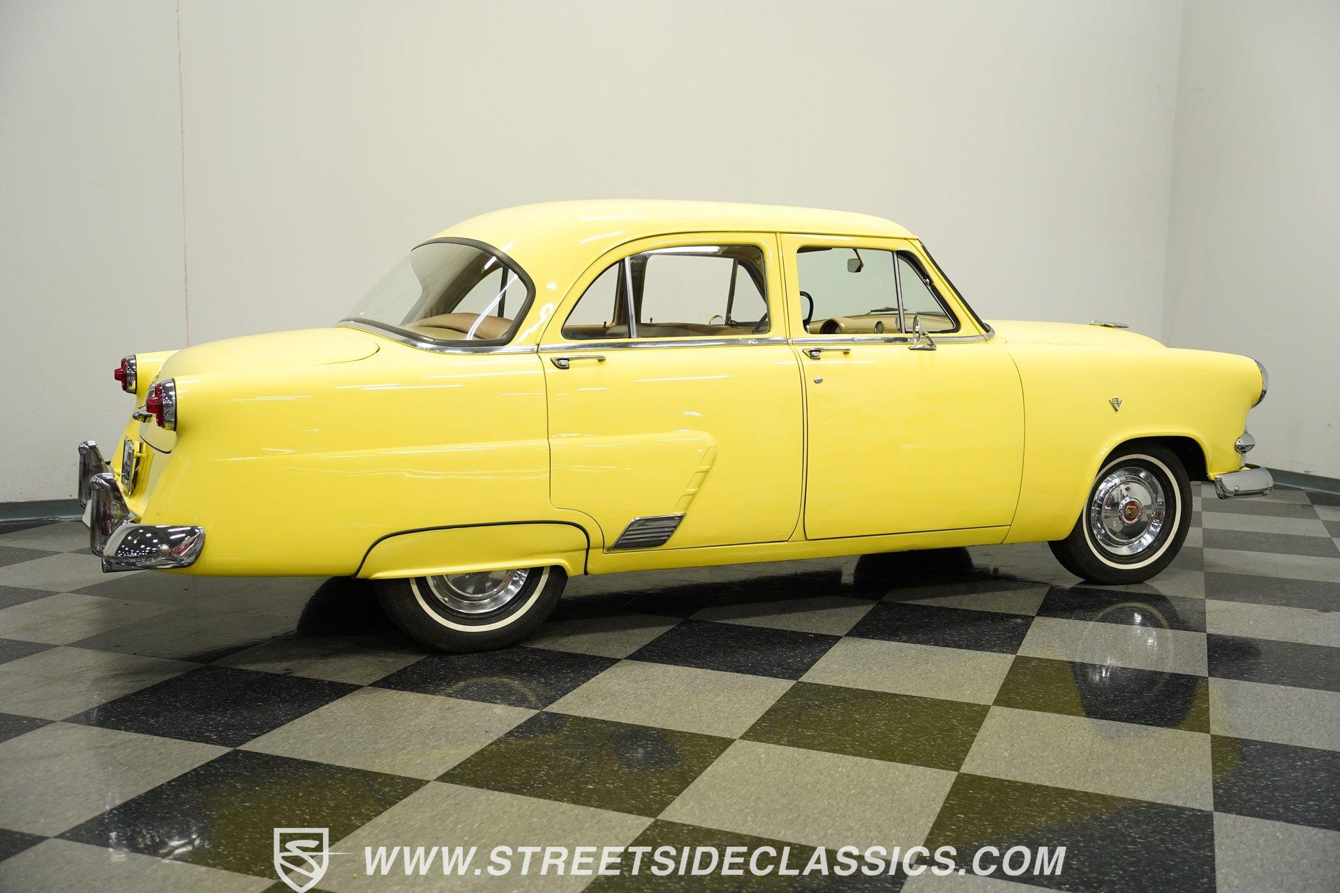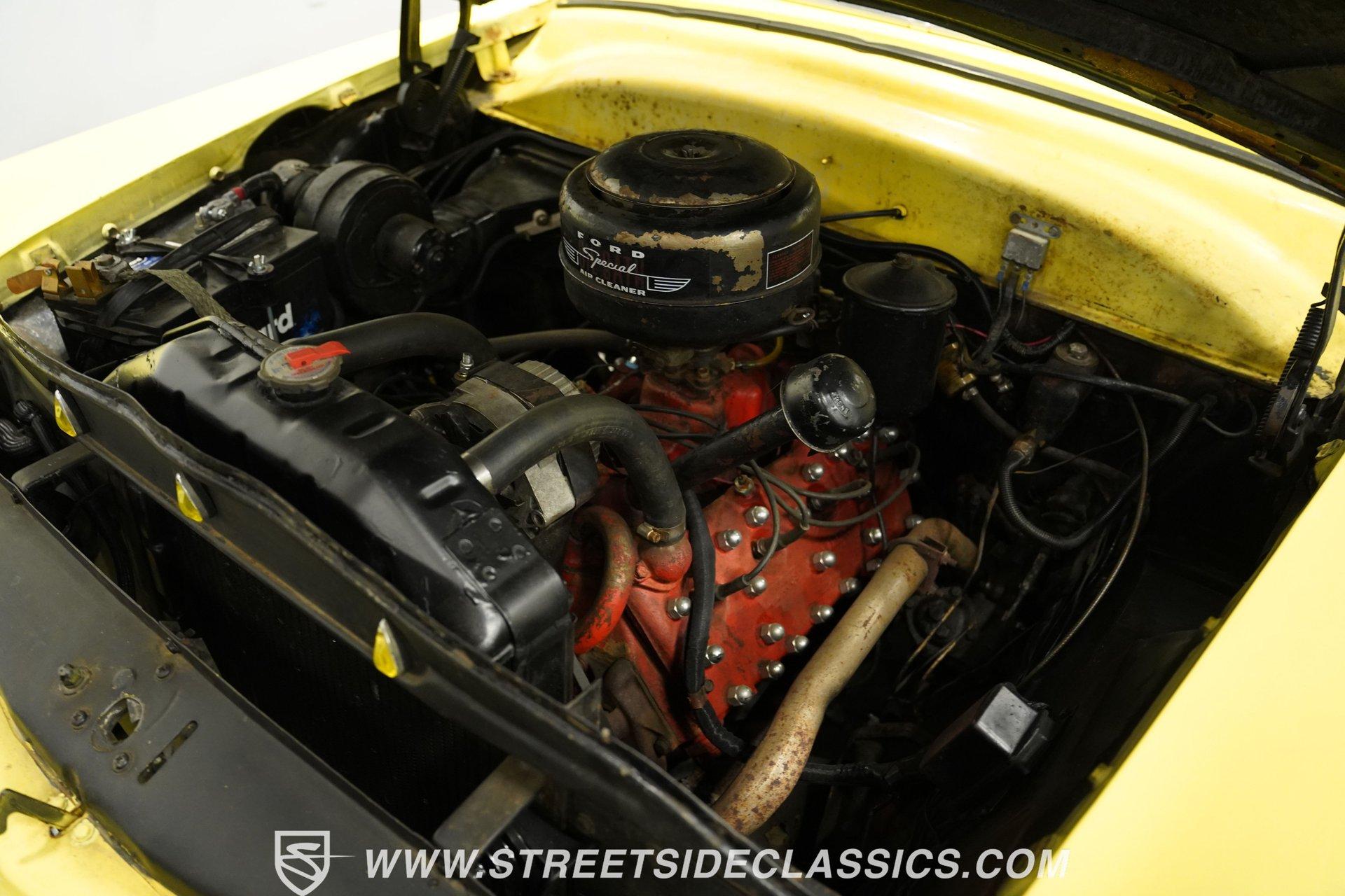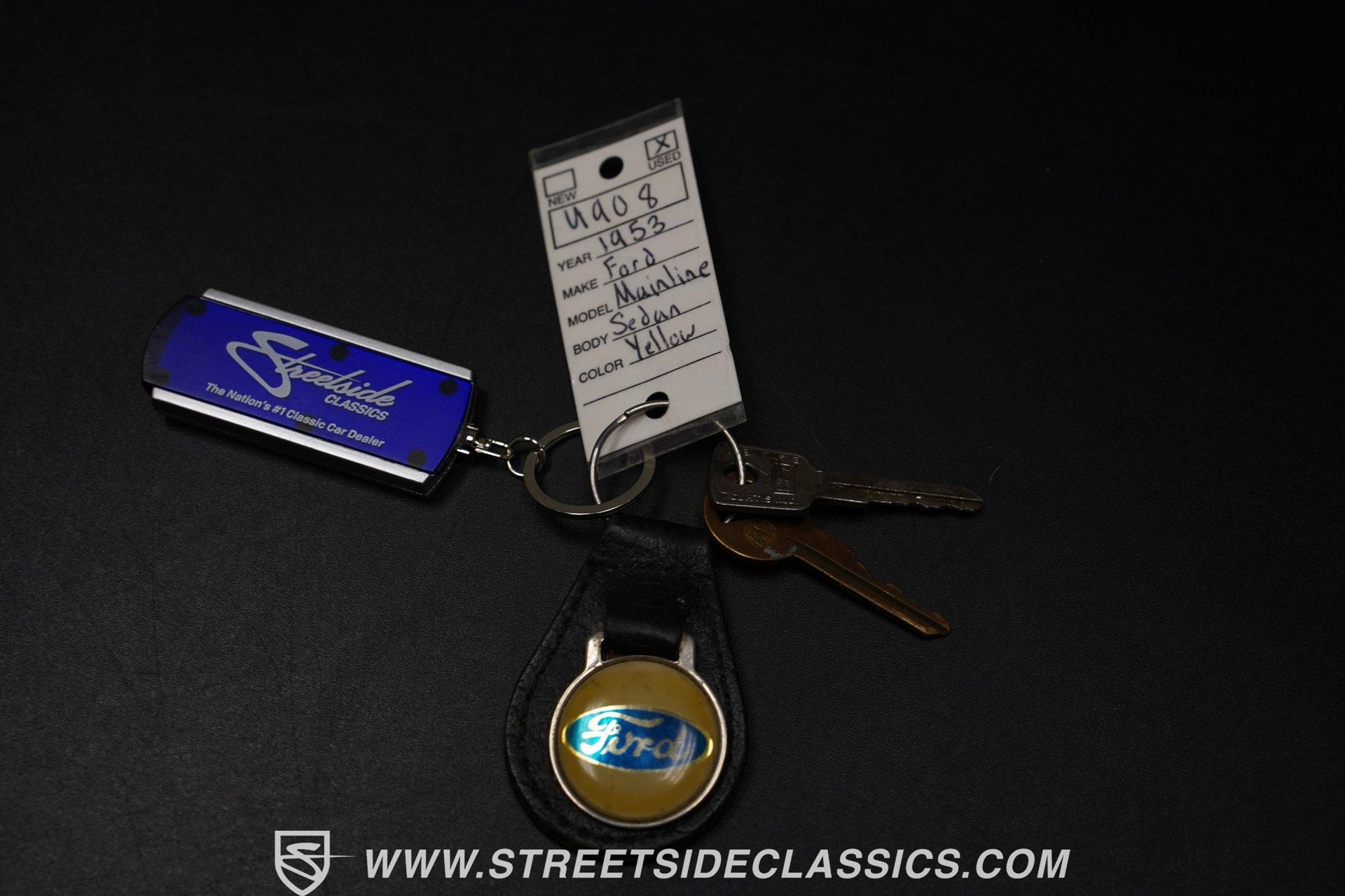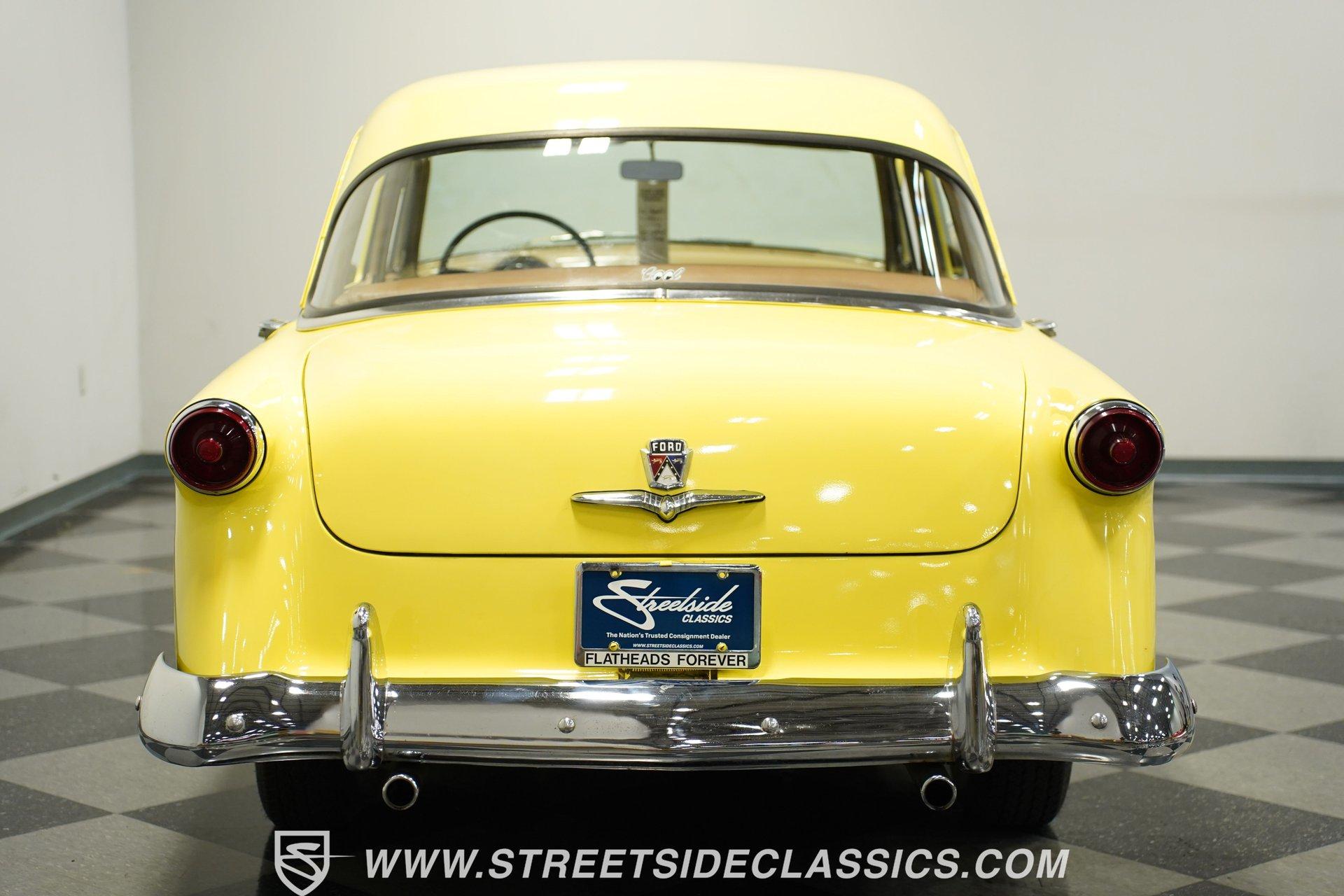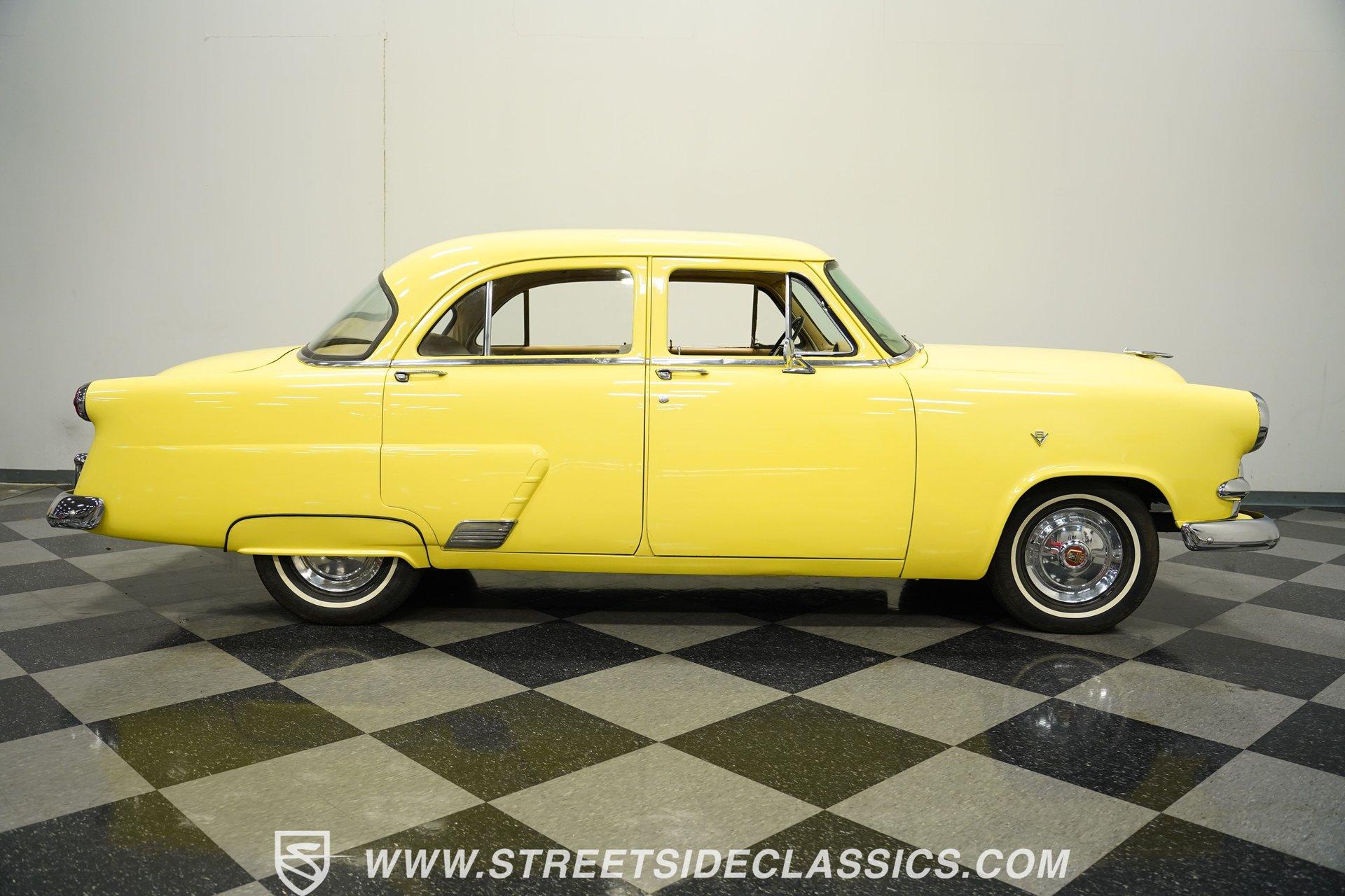Yellow paint covers this 1953 Ford Mainline Fordor from a full repaint job. Chrome brightwork appears throughout, including bumpers, headlight assemblies, mirrors, and door handles. New rubber seals fit all glass for improved weather protection. Rolling stock consists of 15-inch steel wheels with chrome hubcaps, wrapped in P205/75R15 front and P205/70R15 rear radial tires. Tan vinyl with cloth inserts upholsters both front and rear bench seats. A special 50th anniversary Ford horn center cap adds historical significance. An updated turn signal assembly pairs with upgraded gauges showing temperature, oil pressure, and voltage. The factory AM radio remains installed. Simple controls and a clean layout provide an authentic driving environment from an earlier automotive period. A 239 Flathead V8 powers this Ford and connects to a three-speed manual transmission with column shift. Electrical upgrades include a 12V conversion and battery cut-off switch for improved starting and safety. Manual steering and drum brakes maintain original handling characteristics. A dual exhaust system produces the distinctive Flathead V8 sound while stock suspension keeps the ride quality authentic. HIGHLIGHTS: 239 Flathead V8 Engine 3-Speed Manual Transmission 12V Electrical Conversion Battery Cut-Off Switch Manual Steering Drum Brakes Dual Exhaust System Stock Suspension Yellow Exterior Paint 15" Steel Wheels With Chrome Hubcaps P205/75R15 Front, P205/70R15 Rear Tires Fresh Rubber Seals Around Glass Refreshed Chrome Brightwork Tan Interior With Front Bench Seat Rear Bench Seat AM Radio Upgraded Gauges (Temperature, Oil Pressure, Voltage) Updated Turn Signal Assembly 50th Anniversary Horn Center Cap Ford produced this Mainline Fordor during their 50th anniversary year, making it historically notable. The Flathead V8, manual transmission, and four-door layout allow for an authentic American driving adventure with room for family and friends. Call today!