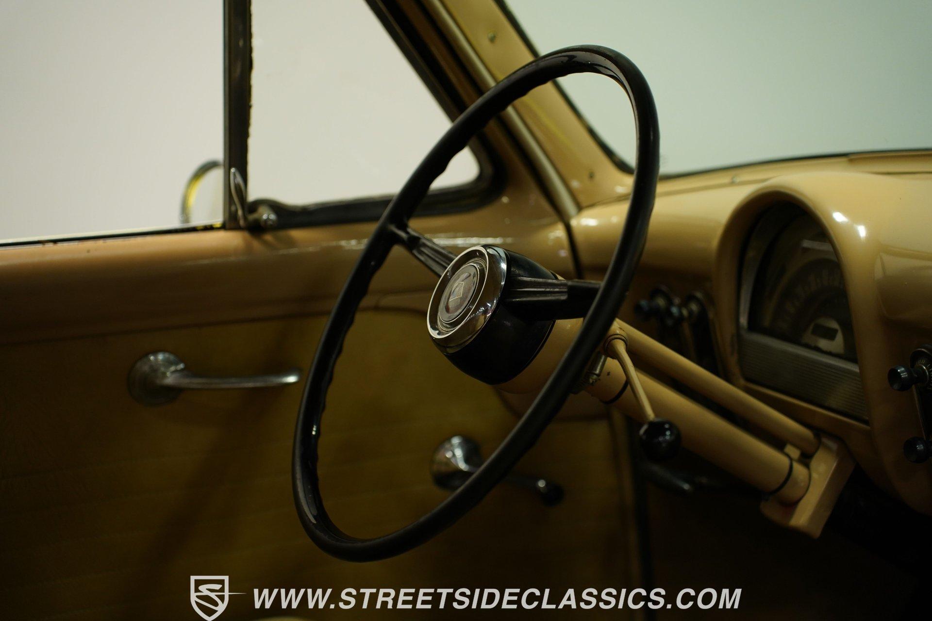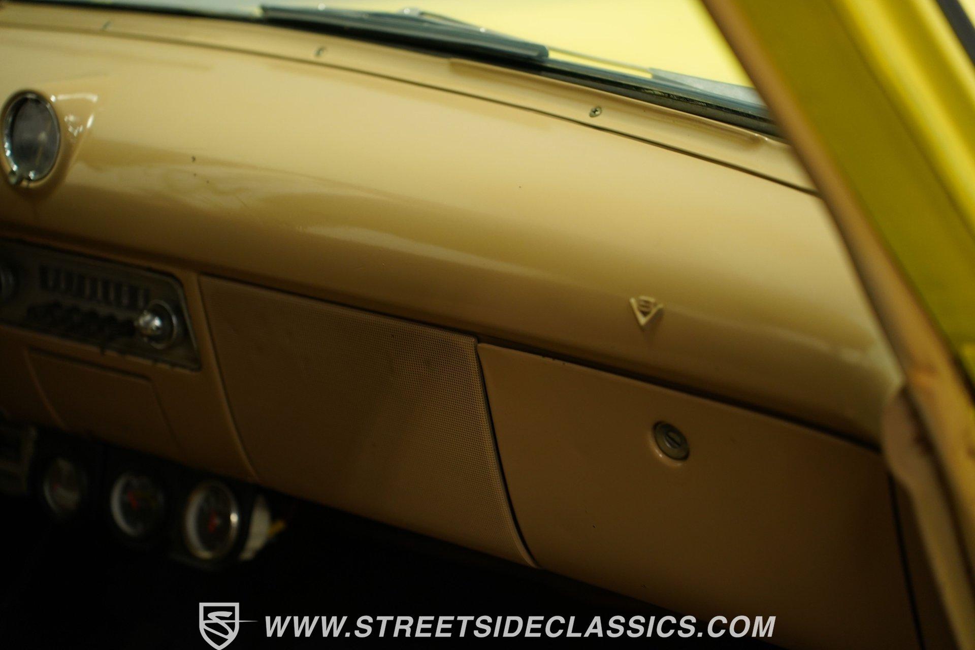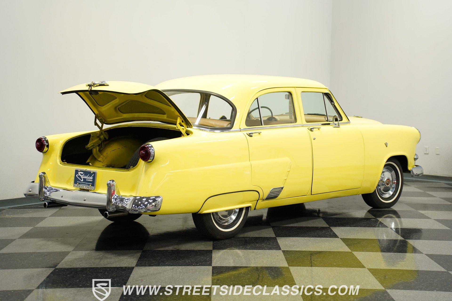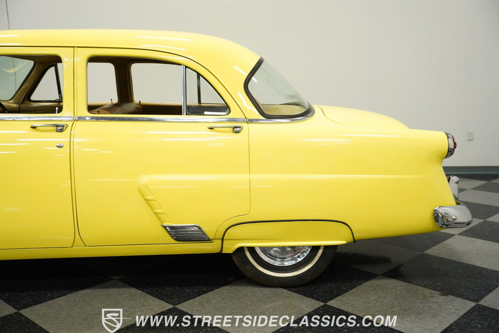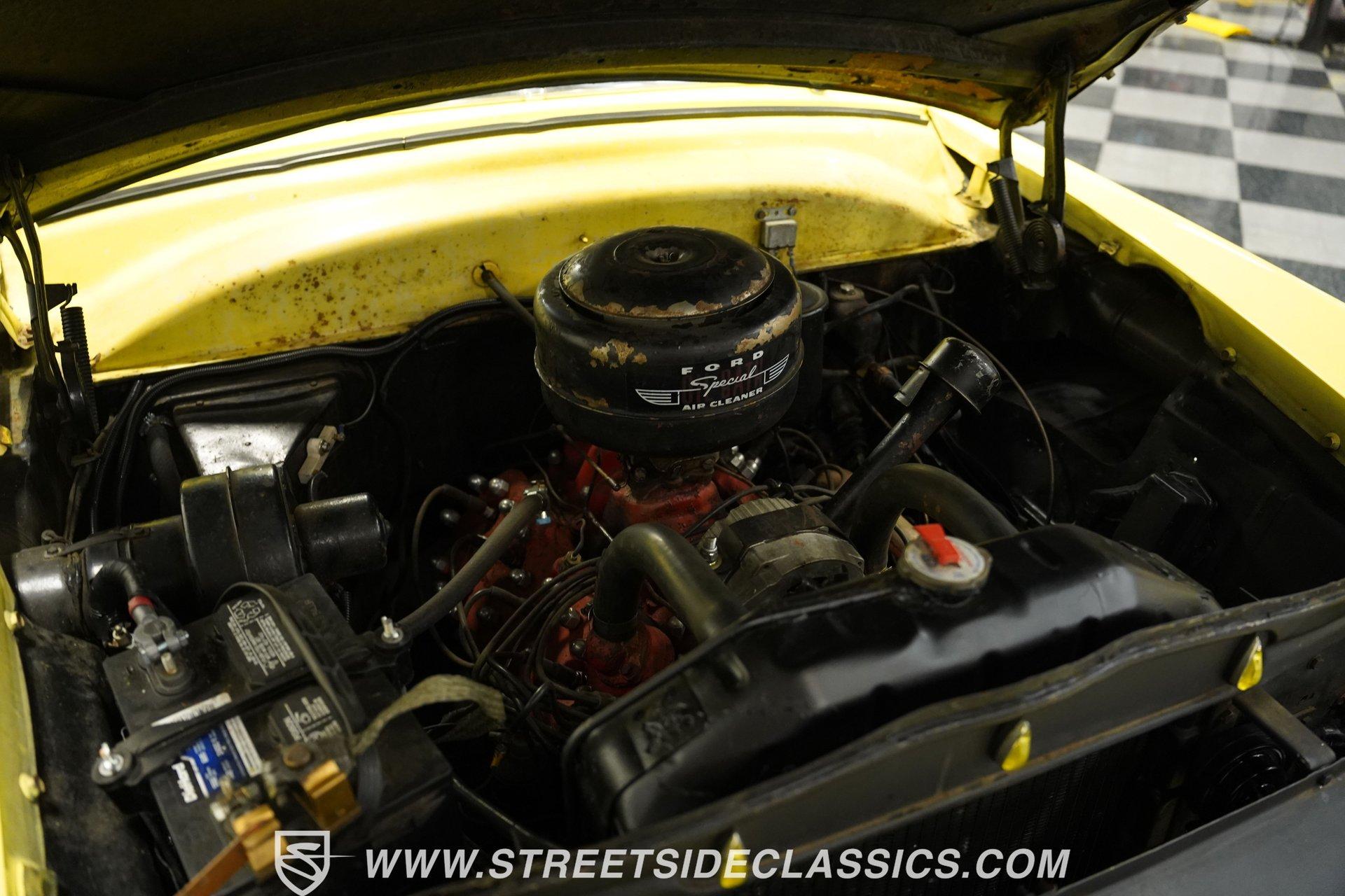 Yellow paint covers this 1953 Ford Mainline Fordor from a full repaint job. Chrome brightwork appears throughout, including bumpers, headlight assemblies, mirrors, and door handles. New rubber seals fit all glass for improved weather protection. Rolling stock consists of 15-inch steel wheels with chrome hubcaps, wrapped in P205/75R15 front and P205/70R15 rear radial tires. Tan vinyl with cloth inserts upholsters both front and rear bench seats. A special 50th anniversary Ford horn center cap adds historical significance. An updated turn signal assembly pairs with upgraded gauges showing temperature, oil pressure, and voltage. The factory AM radio remains installed. Simple controls and a clean layout provide an authentic driving environment from an earlier automotive period. A 239 Flathead V8 powers this Ford and connects to a three-speed manual transmission with column shift. Electrical upgrades include a 12V conversion and battery cut-off switch for improved starting and safety. Manual steering and drum brakes maintain original handling characteristics. A dual exhaust system produces the distinctive Flathead V8 sound while stock suspension keeps the ride quality authentic. HIGHLIGHTS: 239 Flathead V8 Engine 3-Speed Manual Transmission 12V Electrical Conversion Battery Cut-Off Switch Manual Steering Drum Brakes Dual Exhaust System Stock Suspension Yellow Exterior Paint 15" Steel Wheels With Chrome Hubcaps P205/75R15 Front, P205/70R15 Rear Tires Fresh Rubber Seals Around Glass Refreshed Chrome Brightwork Tan Interior With Front Bench Seat Rear Bench Seat AM Radio Upgraded Gauges (Temperature, Oil Pressure, Voltage) Updated Turn Signal Assembly 50th Anniversary Horn Center Cap Ford produced this Mainline Fordor during their 50th anniversary year, making it historically notable. The Flathead V8, manual transmission, and four-door layout allow for an authentic American driving adventure with room for family and friends. Call today!