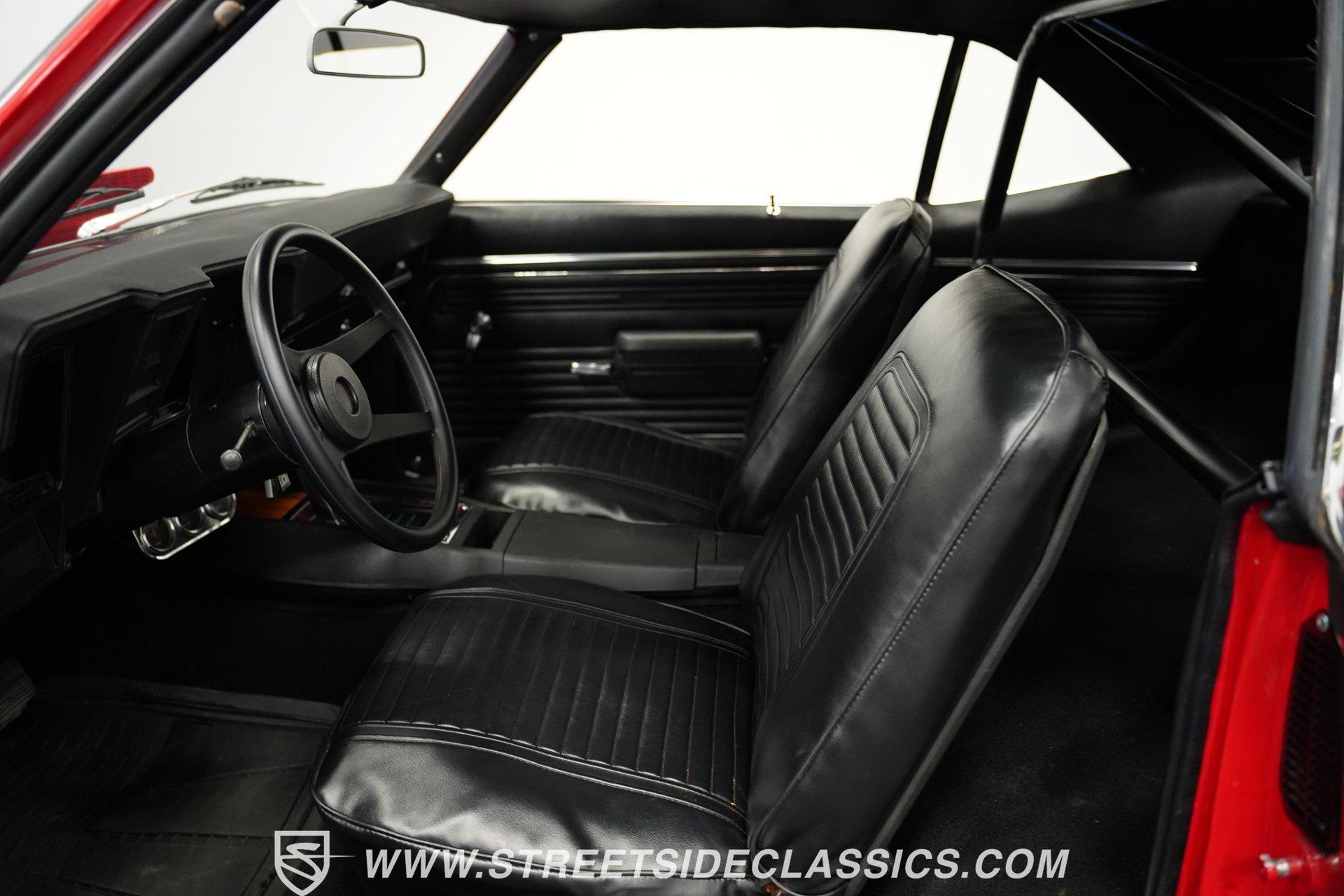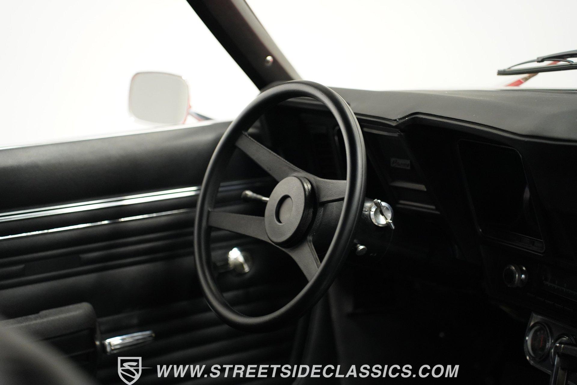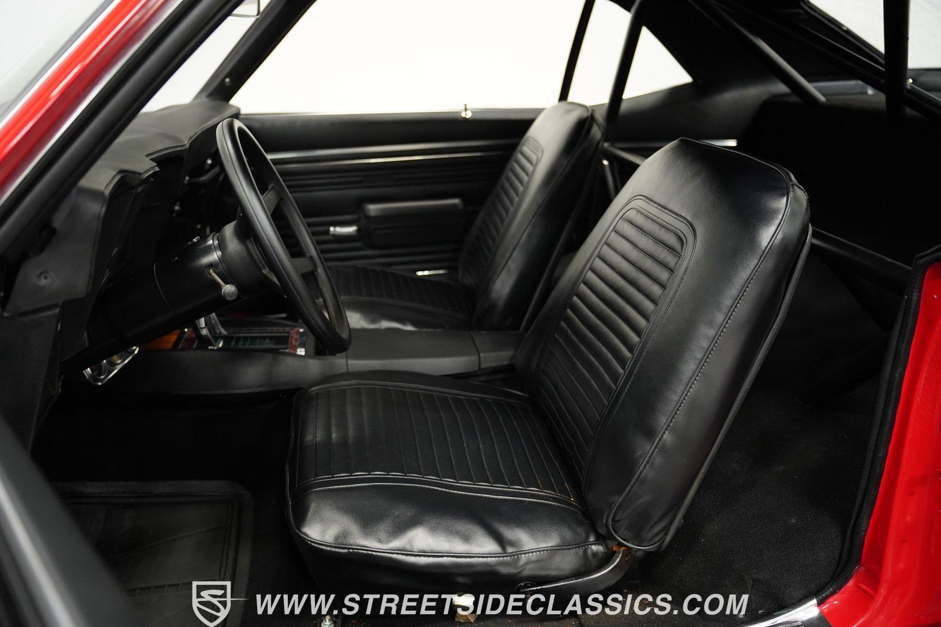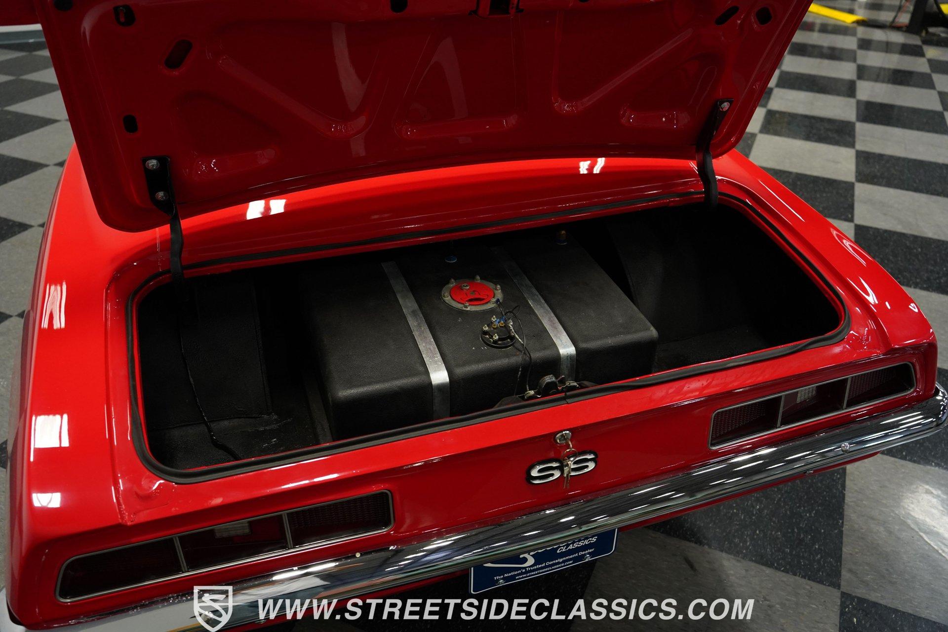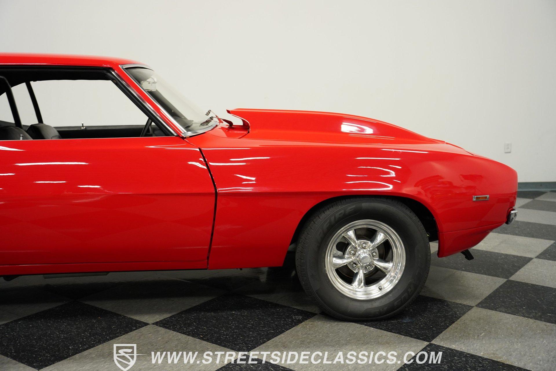 There's no denying that muscle cars are, by their very definition, vehicles that are faster than your average commuter car. But, when you take an already quick car, and turn it into a purpose-built drag racer like this 1969 Chevrolet Camaro ProStreet, you have a seriously impressive hot rod on your hands. Fully repainted in an unmistakable Bolero Red, this modded first-gen sports a massive cowl-induction hood, mini-tubbed rear, and visible roll cage to signal to the world that this car is going to be a problem for anyone brave enough to line up next to it. Inside, we find a recently refreshed black vinyl interior. A center console separates dual bucket seats, while a no-frills four-spoke steering wheel sits in front of what feels like an underprepared 120 mph speedometer. A triplet of auxiliary gauges is located just below the AM radio's head unit, while the passenger has a sturdy expletive handle that will undoubtedly get plenty of use. The back seat has been deleted in favor of the half cage, and the trunk is now home to a large fuel cell. Under that imposing hood, we find a massive 454 cubic-inch V-8 engine. Freshly painted and likely sporting new seals, this big block is topped with an aluminum intake manifold, which is fed by a single four-barrel carburetor. Spent gases are expelled through a set of long tube headers before being ushered out by way of a dual exhaust system. Power is routed through a TH350 three-speed automatic transmission equipped with a high stall converter that sends those ponies through a Ford nine-inch rear end. That power is sent to the tarmac via a set of polished American Racing Torq Thrust wheels shod in big P275/60R-15 Starfire rubber. At the same time, a narrower set of 205/75R-15 tires handles steering duties up front. *Drag Car *454 V8 *Four Barrel Carb *Aluminum Intake *Long Tubes *Dual Exhaust *Ford 9 Inch Rear *Mini Tub *Modified Frame *Subframe Connectors *Tubular A-Arms *QA1 Coilovers *Roll Cage *Fuel Cell *American Racing Wheels *Disc Brakes *Fast Car This 1969 Chevrolet Camaro ProStreet rides on a modified, back-halved frame and floors that allow for a three-link conversion and mini tub. Up front, tubular A-arms are utilized, while a set of subframe connectors increases rigidity. QA1 coilovers are set at all four corners, while unassisted disc brakes are prepared to scrub off speed as soon as that quarter-mile is up. A first-generation Camaro will always be considered a fast car by almost any standard, but this purpose-built racecar will shove you back into your seat like no factory car ever could. Don't wait, call today!