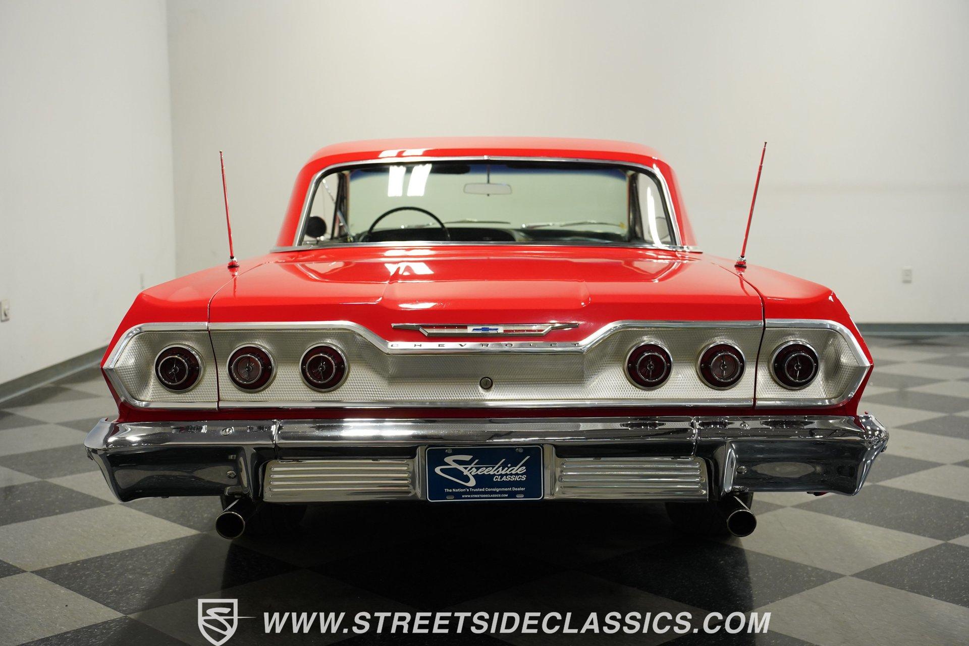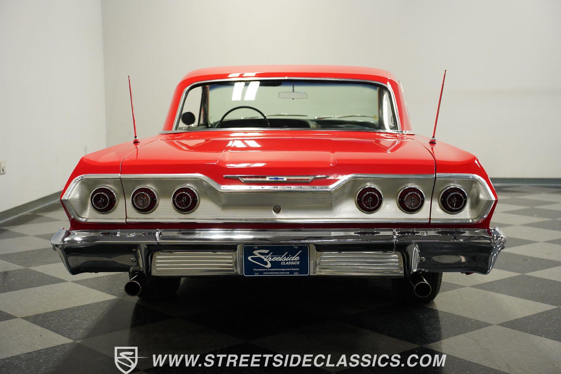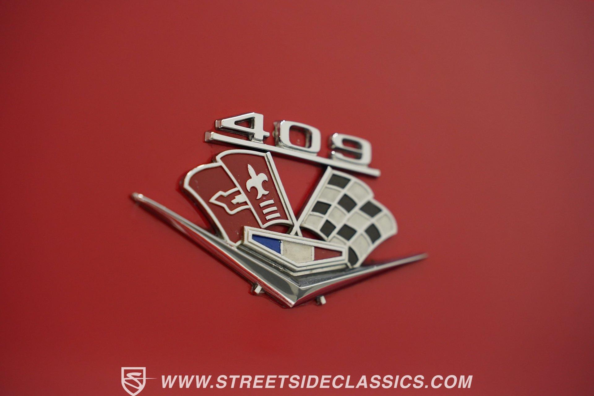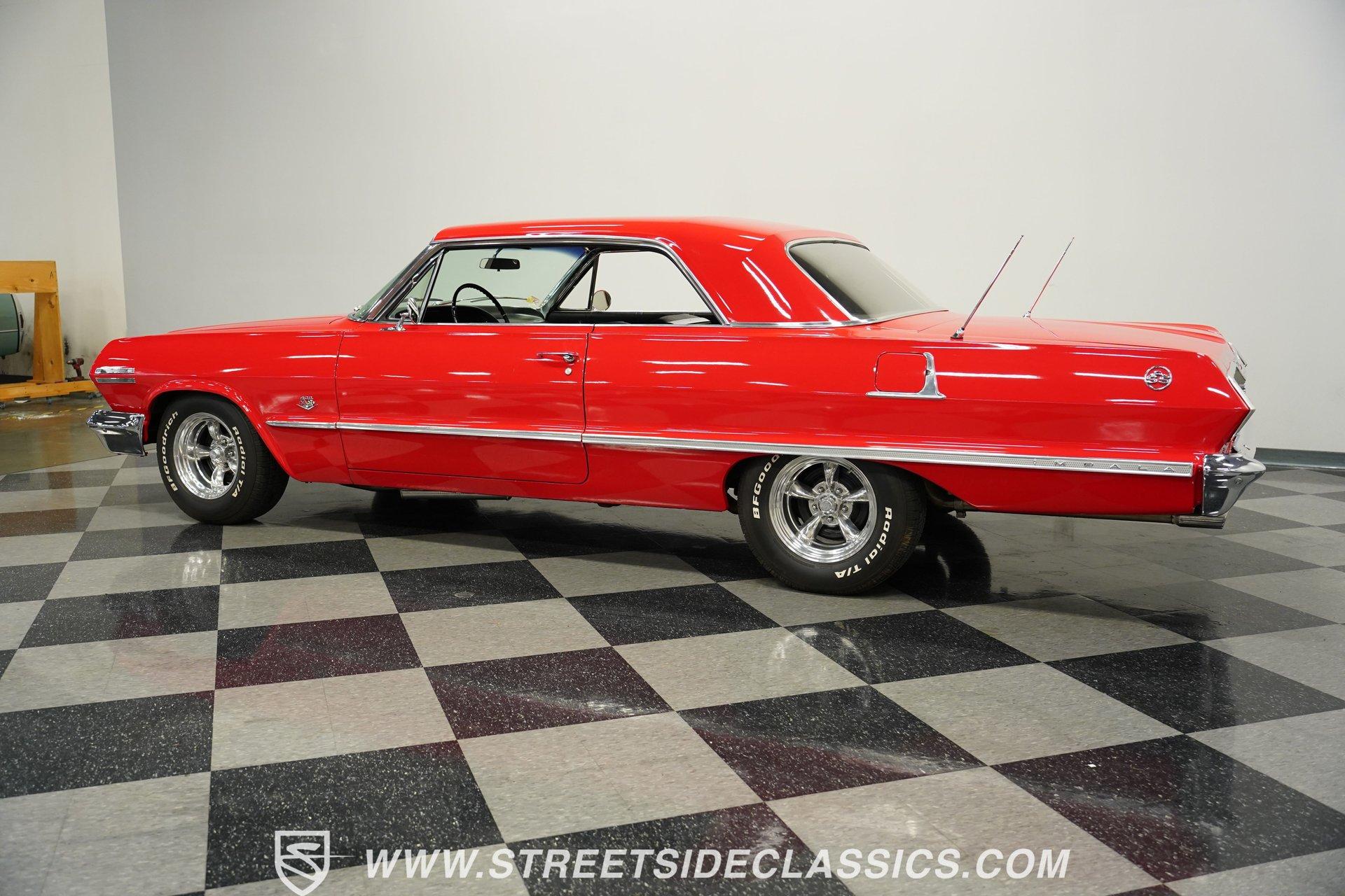 For the Beach Boys to write a hit song about an engine, it had to be a special motor attached to a special kind of car. This numbers-matching 1963 Chevrolet Impala SS 409, decked out in a fabulous full bright red repaint, stretches out over its two-door coupe configuration, showcasing its straight lines, shimmering chrome, and dual-triplet taillight arrangement. Inside, we find a mostly stock restored black vinyl interior. A center console separates the dual bucket seats, while the old-school two-spoke, power-assisted steering wheel is contrasted by the upgraded, cool-blue-hued Dakota Digital dashboard, featuring an 8,000 rpm tachometer and a 160 mph speedometer. Offset to the passenger side of the car is a quartet of matching auxiliary gauges, separated by a centrally-located digital speedometer to complete the look. A Retrosound AM/FM uses a digital display, while the sliding HVAC controls ensure at least some of this Impala's interior stays in the 1960s. Under that expansive hood, we find out what all the fuss is about. Centered inside a very clean engine bay sits a numbers-matching 409 cubic-inch V-8 engine. Part of Chevy's famous W-series big block motor family, this 409 has been painted old-school orange, with plenty of chrome accents. Topped with a single four-barrel Edelbrock carburetor, spent gases are expelled via a true-dual exhaust setup capped off with a set of chrome exhaust tips. Power is routed through a 700R4 four-speed automatic transmission before heading out to the factory-style rear end that transfers those ponies to the pavement through a set of beautiful, polished five-spoke American Racing Torq Thrust wheels shod in P235/70R-15 BF Goodrich radials. *Numbers Matching 409 *Edelbrock Four Barrel *700R4 Four Speed Auto *Power Brakes *American Racing Wheels *Dual Exhaust *Power Steering *Tilt Column *Dakota Digital Dashboard *Retrosound Radio *Kick Panel Speakers This 1963 Chevrolet Impala SS 409 rides on a traditional coil and shock suspension, accompanied by an old-school live axle rear, while power-assisted brakes help rein in speed whenever called upon. So, if owning a 409-powered Impala has been on your bucket list and you've saved your pennies and saved your dimes, then maybe it's time you buy a (not quite) brand new 409! Don't wait, call today!