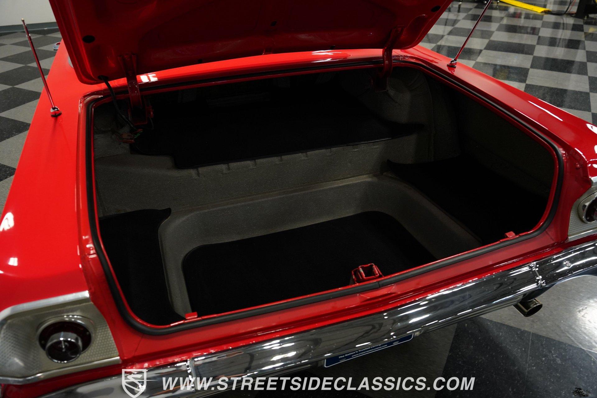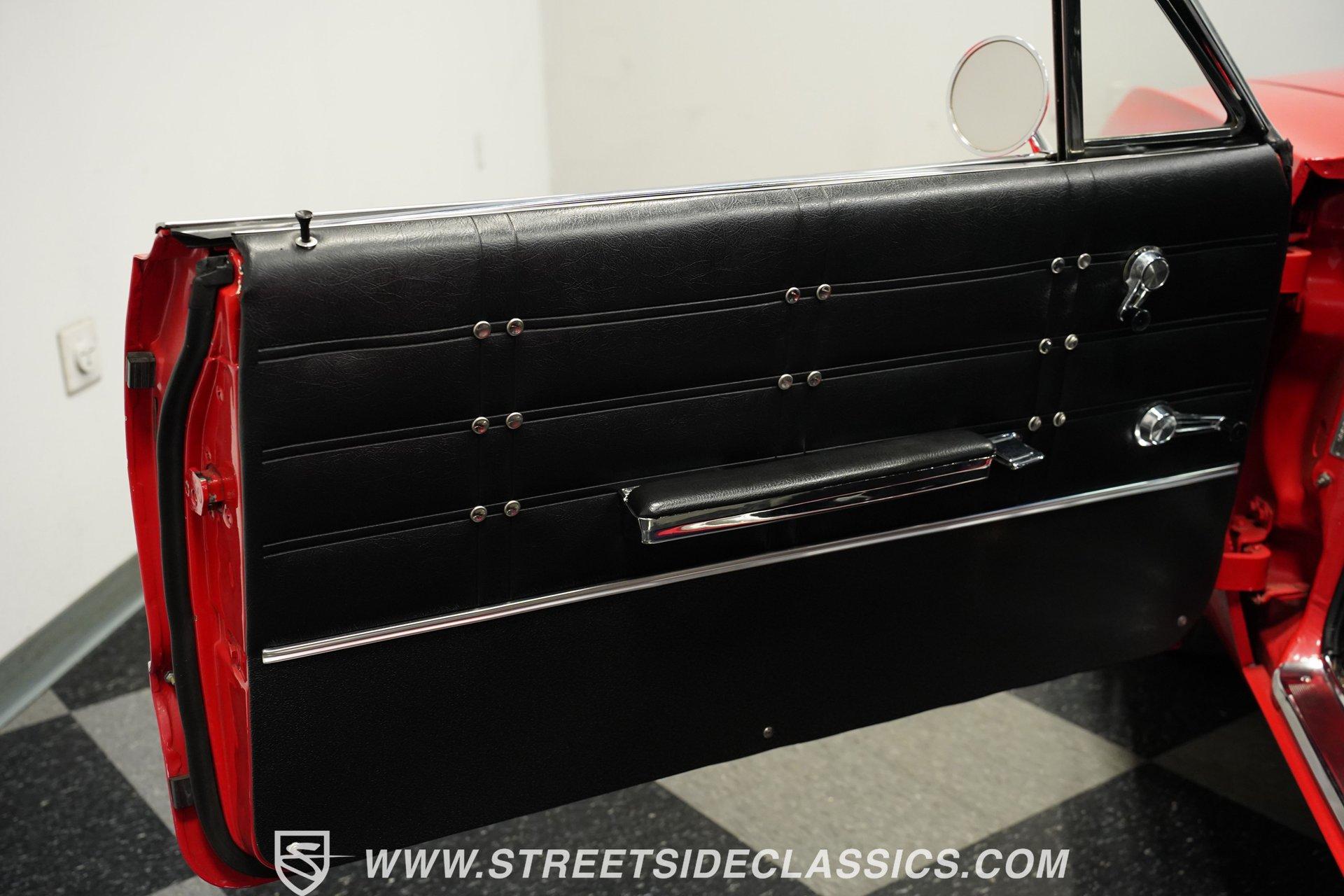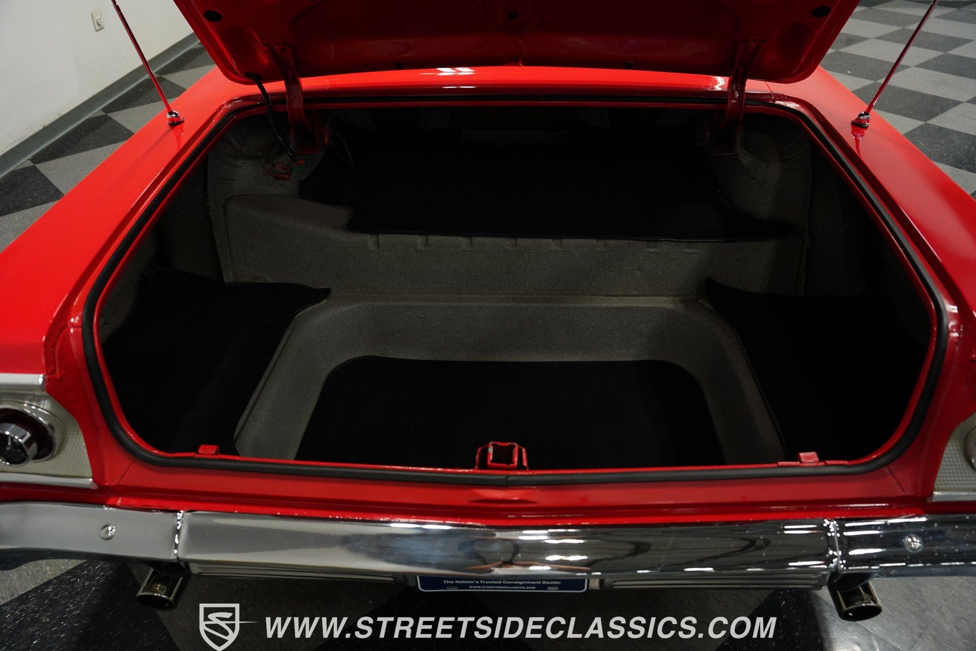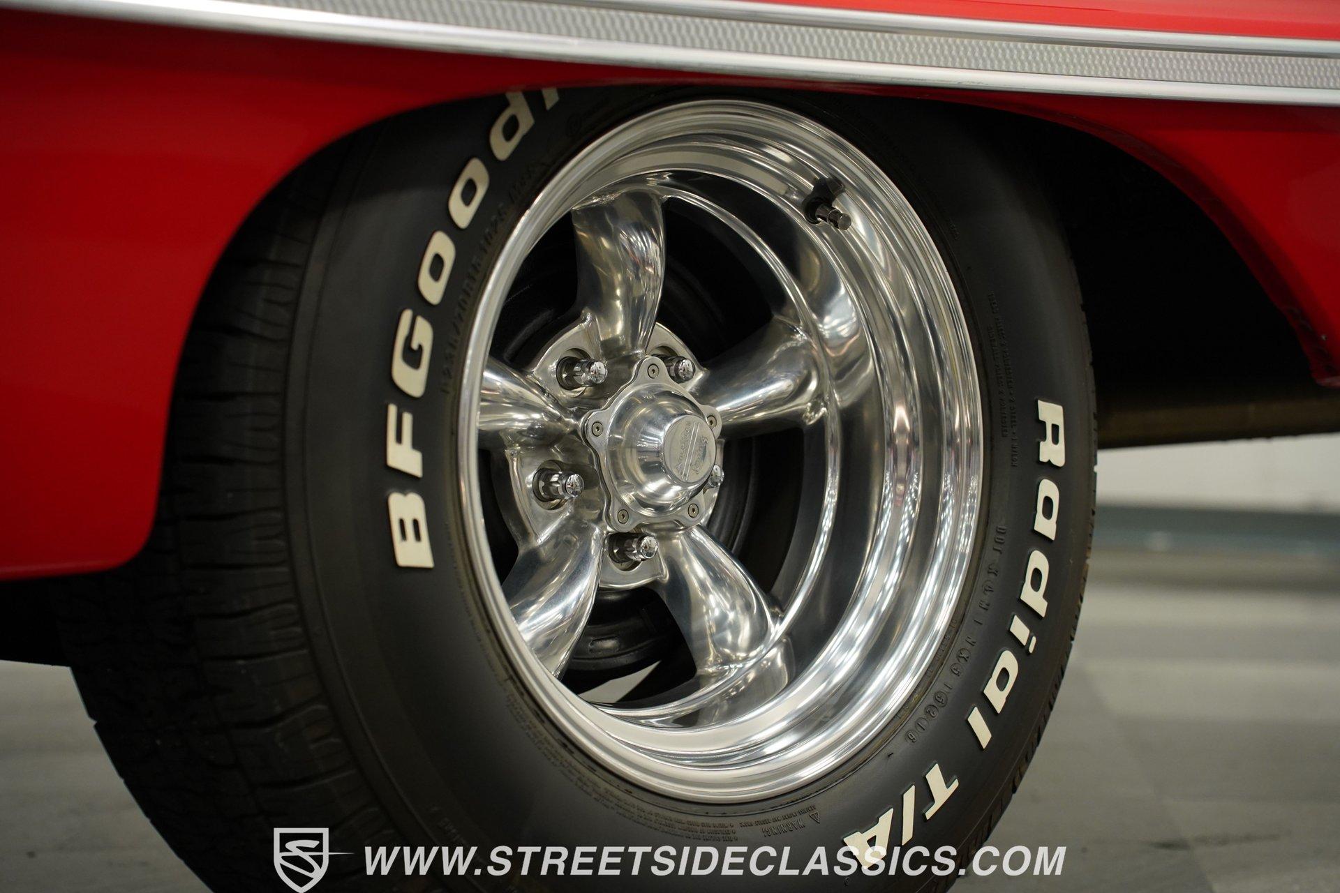 For the Beach Boys to write a hit song about an engine, it had to be a special motor attached to a special kind of car. This numbers-matching 1963 Chevrolet Impala SS 409, decked out in a fabulous full bright red repaint, stretches out over its two-door coupe configuration, showcasing its straight lines, shimmering chrome, and dual-triplet taillight arrangement. Inside, we find a mostly stock restored black vinyl interior. A center console separates the dual bucket seats, while the old-school two-spoke, power-assisted steering wheel is contrasted by the upgraded, cool-blue-hued Dakota Digital dashboard, featuring an 8,000 rpm tachometer and a 160 mph speedometer. Offset to the passenger side of the car is a quartet of matching auxiliary gauges, separated by a centrally-located digital speedometer to complete the look. A Retrosound AM/FM uses a digital display, while the sliding HVAC controls ensure at least some of this Impala's interior stays in the 1960s. Under that expansive hood, we find out what all the fuss is about. Centered inside a very clean engine bay sits a numbers-matching 409 cubic-inch V-8 engine. Part of Chevy's famous W-series big block motor family, this 409 has been painted old-school orange, with plenty of chrome accents. Topped with a single four-barrel Edelbrock carburetor, spent gases are expelled via a true-dual exhaust setup capped off with a set of chrome exhaust tips. Power is routed through a 700R4 four-speed automatic transmission before heading out to the factory-style rear end that transfers those ponies to the pavement through a set of beautiful, polished five-spoke American Racing Torq Thrust wheels shod in P235/70R-15 BF Goodrich radials. *Numbers Matching 409 *Edelbrock Four Barrel *700R4 Four Speed Auto *Power Brakes *American Racing Wheels *Dual Exhaust *Power Steering *Tilt Column *Dakota Digital Dashboard *Retrosound Radio *Kick Panel Speakers This 1963 Chevrolet Impala SS 409 rides on a traditional coil and shock suspension, accompanied by an old-school live axle rear, while power-assisted brakes help rein in speed whenever called upon. So, if owning a 409-powered Impala has been on your bucket list and you've saved your pennies and saved your dimes, then maybe it's time you buy a (not quite) brand new 409! Don't wait, call today!
