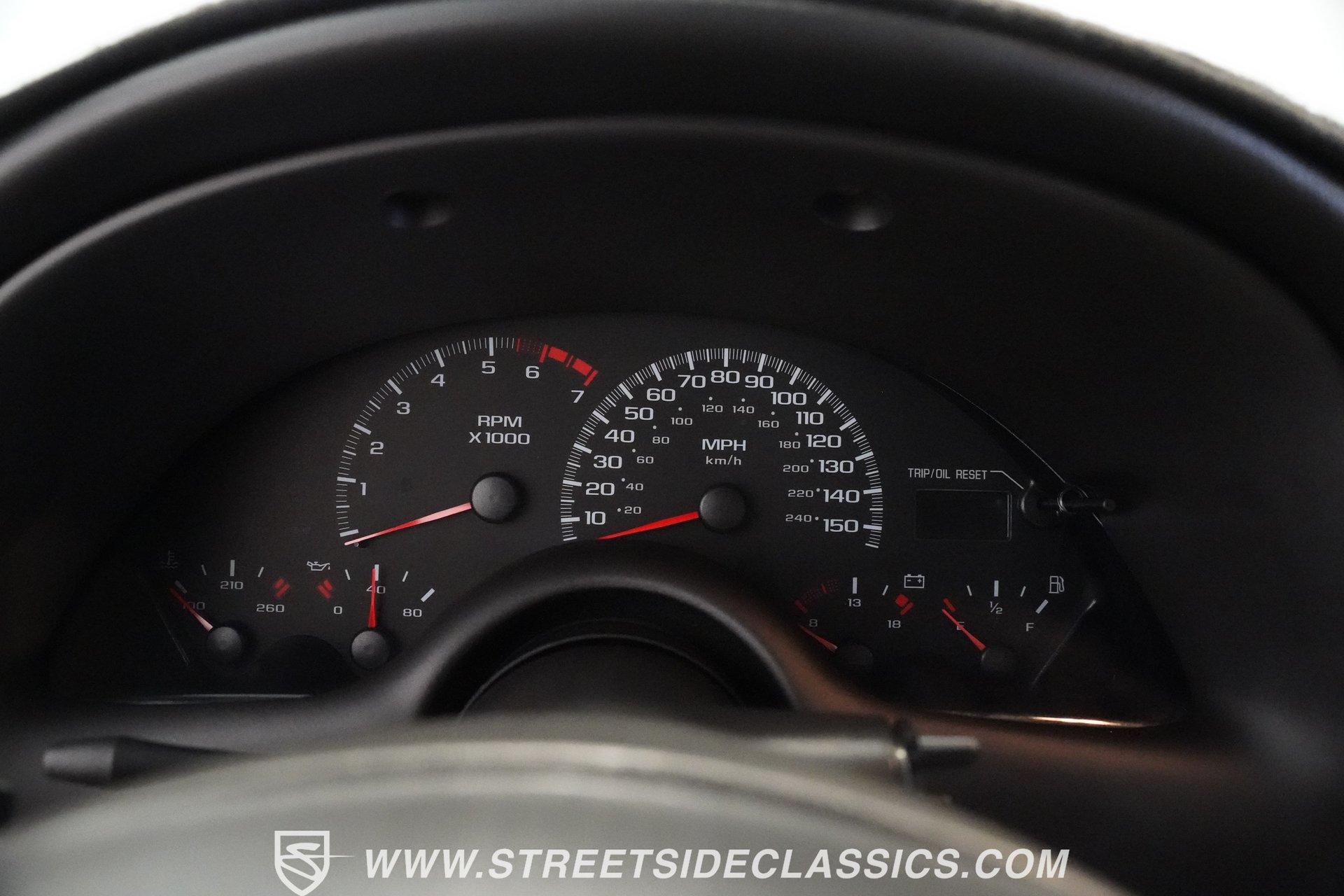 If you're browsing our site, odds are you are probably looking for a car that is either fast, rare, collectible, or just good-looking. But, what if you could find a vehicle that is all of those things in one package? This 2001 Chevrolet Camaro Z28 B4C arrives with its original paint and body panels, boasting just 25,590 actual miles on its odometer, and still looks fantastic. Generally accepted as a de-badged Z/28, the B4C package is also known as the Special Service Package (SSP) or simply the Police Package. Created as a no-frills performance car, the B4C Camaros were made to be driven hard. Inside this hardtop body, we find a minimalist, mostly stock interior decked out in Pewter cloth. A long center storage console separates dual bucket seats, while a set of buckets sits in back, able to be folded down to dramatically expand cargo area if and when it is needed. A four-spoke padded steering wheel sits in front of a six-pod analog gauge cluster, featuring a bit 7,000 rpm tachometer and 150 mph speedometer, each flanked by a pair of auxiliary gauges on either side. Along with power windows, locks, mirrors, and air conditioning, this Camaro was also equipped with the available eight-speaker AM/FM/CD Monsoon stereo system, completing the amenities of this stripped-down Z/28. Under the hood, we find a numbers-matching 5.7-liter LS1 V-8 engine, which has often been referred to as nearly bulletproof, but in this case, it takes on an entirely different context that shouldn't be taken literally. The B4C package added heavy-duty cooling and electrical systems, including a higher-capacity battery and matching alternator. Automatic-equipped cars like this one also come with oil and transmission coolers. From the factory, this motor produced a legitimate 310 horsepower and 340 pound-feet of torque. That power is funneled through a numbers-matching 4L60E four-speed automatic transmission before being sent to the 3.23-gear, ten-bolt rear end. Those ponies are transferred to the pavement via a set of ten-spoke 16-inch stock alloy wheels shod in 245/50R-16 Goodyear Eagle RSA tires that look to be original to the car. *Numbers Matching LS1 V8 *Numbers Matching 4L60E Auto *25,590 Actual Miles *Hardtop *Original Arctic White Paint *One of 47 Ever Made *Heavy Duty Cooling *Heavy Duty Electrical System *Heavy Duty Suspension *Four Wheel Discs *Power Brakes *Power Steering *Power Locks *Power Mirrors *Power Windows *AC *Eight Speaker Monsoon Stereo *CD Player *Dyno Sheet This 2001 Chevrolet Camaro Z28 B4C rides on an upgraded heavy-duty suspension that included beefier shocks and springs, oversized front and rear sway bars, and heavy-duty bushings to go along with four-wheel power disc brakes to allow this Camaro to be able to turn and stop just as well as it can sprint in a straight line. Fun, fast, and visually appealing, this B4C-equipped Z/28 is one of just 279 produced for 2001 with an automatic transmission. To make this car even more special, it is one of only 47 units made with an auto and painted in Arctic White. So, if you're looking for a car that has everything you came here for all-in-one package, you might be surprised to find out that package has a name – B4C. Don't wait, call today! Coincidentally enough, that package is the B4C
