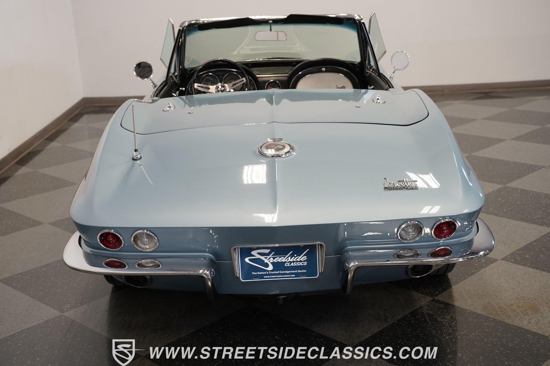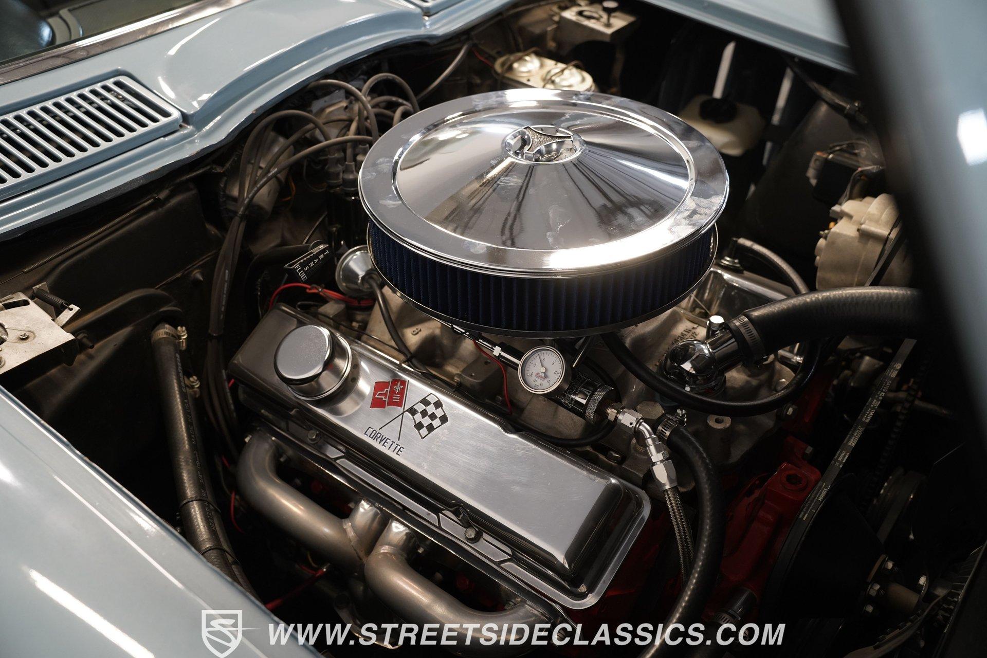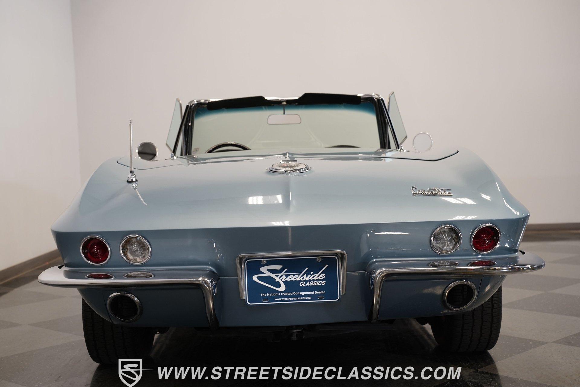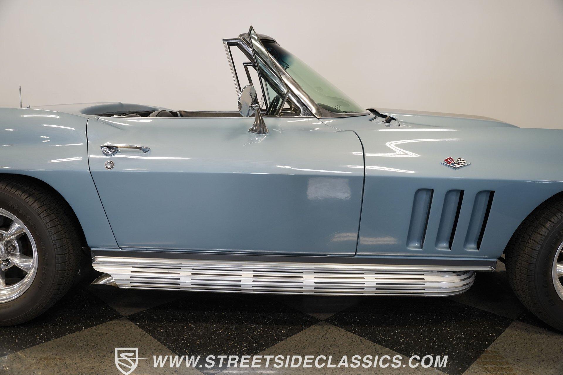 Outfitted with a 1967 big block hood and finished in Laguna Blue, this 1966 Chevrolet Corvette Convertible carries the right kind of attitude. The white canvas convertible top sets off the body color cleanly, while a black stripe draws a crisp line across the hood and deck. Aluminum American Racing 15-inch wheels hold to the pavement with 225/60R15 BFG Radial T/A tires. The stance is low and level, with side pipes stretching beneath the doors. Inside, this vehicle sticks to its black vinyl roots with bucket seats, matching door panels, and a clean black dash. A center console anchors the space, with a shifter showing a 5-speed pattern sticker-though what lies beneath tells a different story. Trim code 418 confirms its stock style approach, and a classic AM/FM radio rounds things out. Power steering makes life easier, and everything stays on theme. A 350 cubic inch V8 sits under the 1967-style hood, topped with a Holley Brawler 4-barrel carb on a Weiand intake. The shorty headers feed into those unmistakable side pipes. Backing the small block is a 700R4 4-speed automatic transmission. Independent suspension front and rear with mono leafs helps keep things civilized, while four-wheel disc brakes manage the stopping. The aluminum radiator sits up front to keep temps in check. HIGHLIGHTS 350 V8 Engine Holley Brawler 4-Barrel Carburetor Weiand Intake Manifold 700R4 4-Speed Automatic Transmission Aluminum Radiator McJacks Shorty Headers Side Pipe Exhaust Four-Wheel Disc Brakes Laguna Blue Paint 1967 Big Block Hood White Canvas Convertible Top 15" American Racing Aluminum Wheels 225/60R15 BFG Radial T/A Tires Black Interior With Bucket Seats Center Console With 5-Speed Pattern Sticker Power Steering AM/FM Radio This 1966 Chevrolet Corvette Convertible blends classic looks with tasteful upgrades and a small block that's ready to move. A factory feel with a few surprises beneath the skin makes it a car worth grabbing while it's available. Call today!