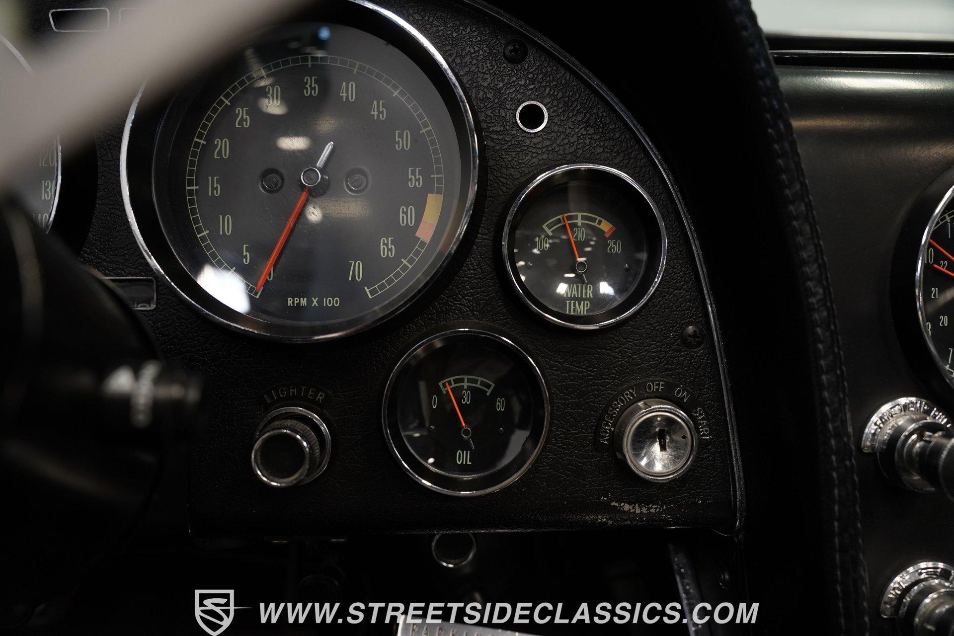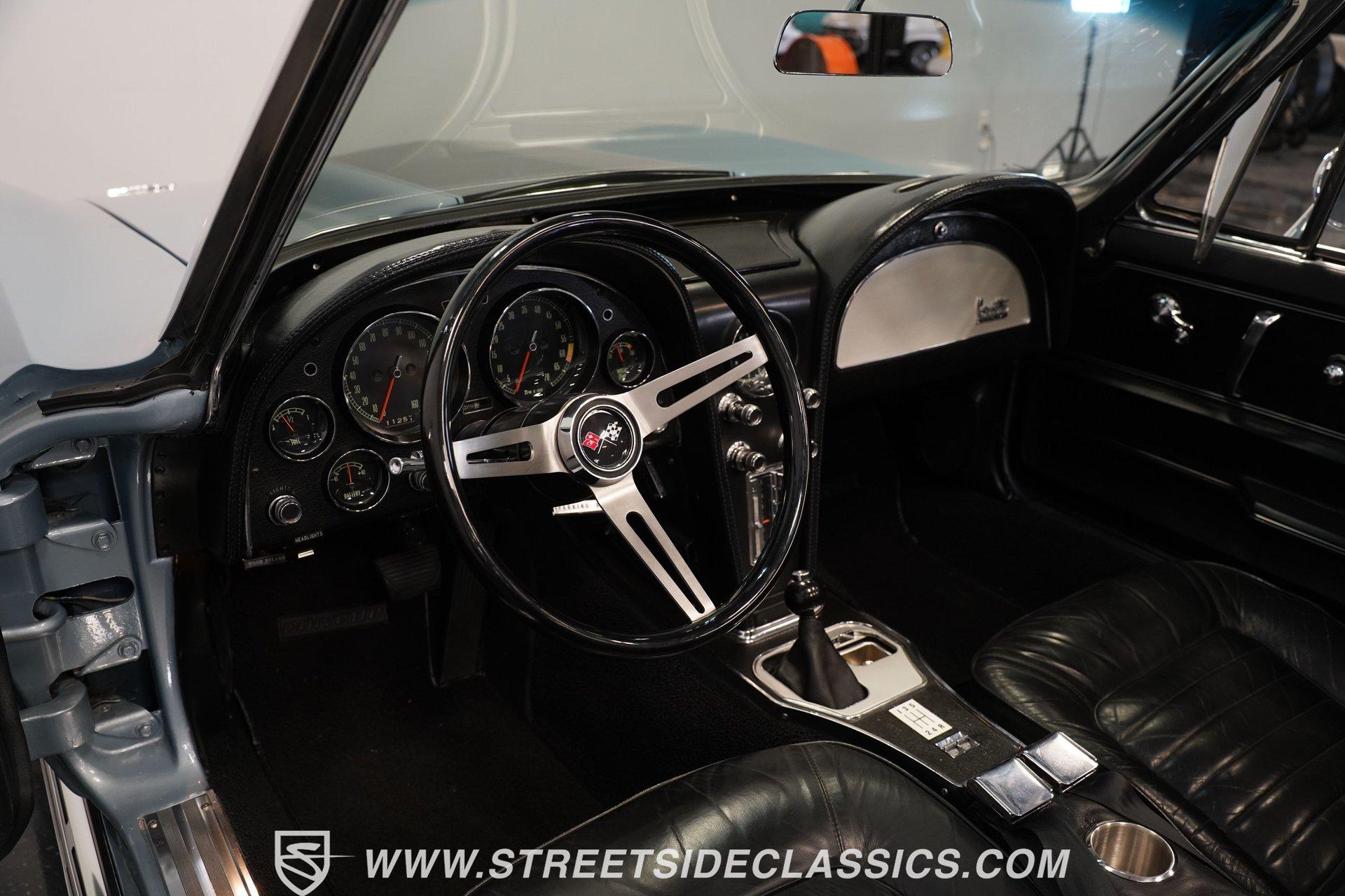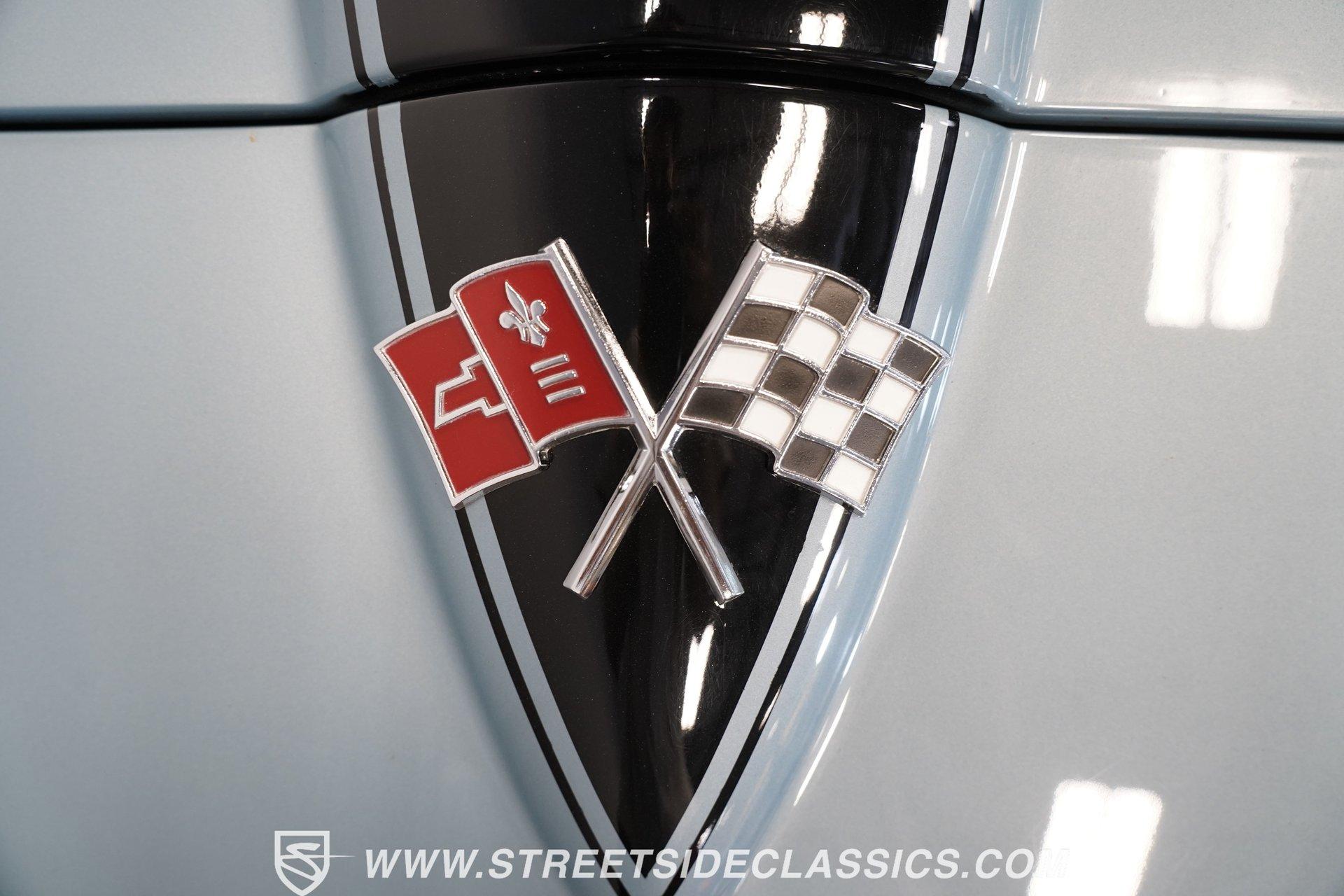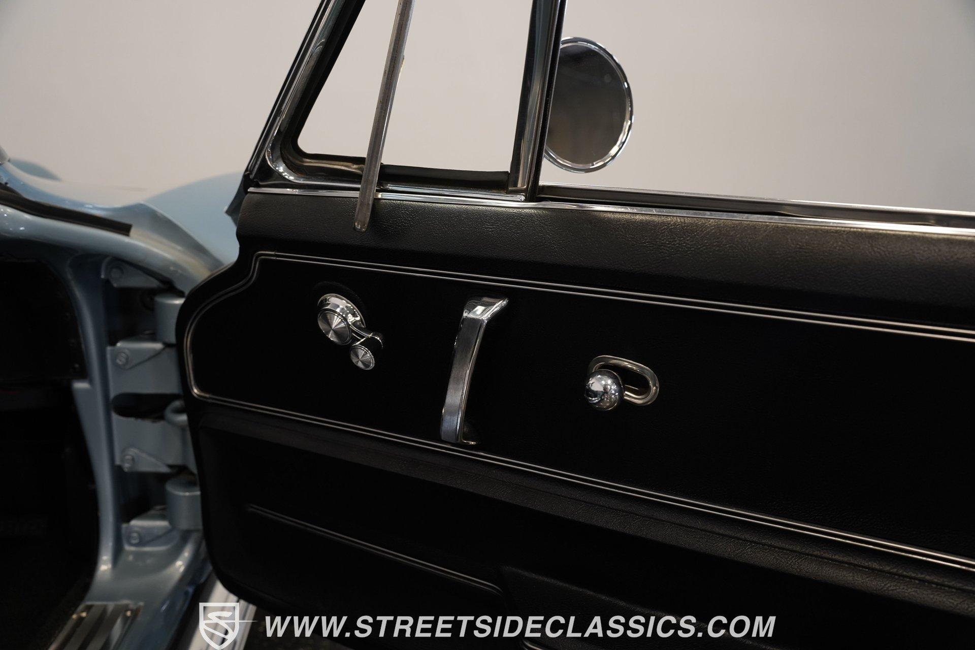 Outfitted with a 1967 big block hood and finished in Laguna Blue, this 1966 Chevrolet Corvette Convertible carries the right kind of attitude. The white canvas convertible top sets off the body color cleanly, while a black stripe draws a crisp line across the hood and deck. Aluminum American Racing 15-inch wheels hold to the pavement with 225/60R15 BFG Radial T/A tires. The stance is low and level, with side pipes stretching beneath the doors. Inside, this vehicle sticks to its black vinyl roots with bucket seats, matching door panels, and a clean black dash. A center console anchors the space, with a shifter showing a 5-speed pattern sticker-though what lies beneath tells a different story. Trim code 418 confirms its stock style approach, and a classic AM/FM radio rounds things out. Power steering makes life easier, and everything stays on theme. A 350 cubic inch V8 sits under the 1967-style hood, topped with a Holley Brawler 4-barrel carb on a Weiand intake. The shorty headers feed into those unmistakable side pipes. Backing the small block is a 700R4 4-speed automatic transmission. Independent suspension front and rear with mono leafs helps keep things civilized, while four-wheel disc brakes manage the stopping. The aluminum radiator sits up front to keep temps in check. HIGHLIGHTS 350 V8 Engine Holley Brawler 4-Barrel Carburetor Weiand Intake Manifold 700R4 4-Speed Automatic Transmission Aluminum Radiator McJacks Shorty Headers Side Pipe Exhaust Four-Wheel Disc Brakes Laguna Blue Paint 1967 Big Block Hood White Canvas Convertible Top 15" American Racing Aluminum Wheels 225/60R15 BFG Radial T/A Tires Black Interior With Bucket Seats Center Console With 5-Speed Pattern Sticker Power Steering AM/FM Radio This 1966 Chevrolet Corvette Convertible blends classic looks with tasteful upgrades and a small block that's ready to move. A factory feel with a few surprises beneath the skin makes it a car worth grabbing while it's available. Call today!