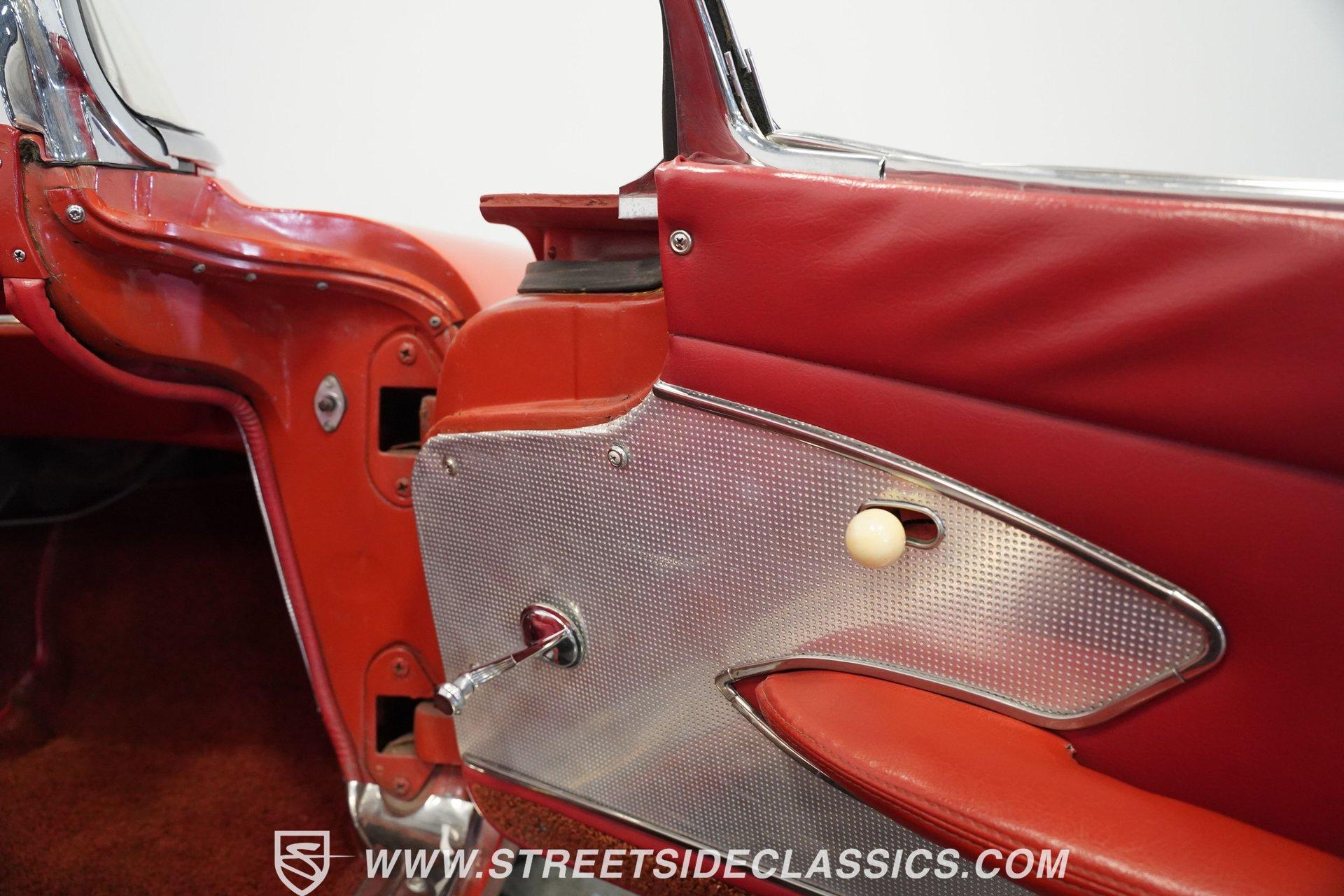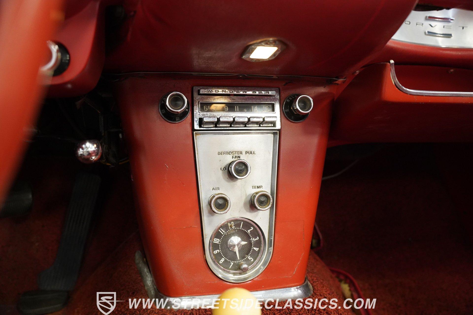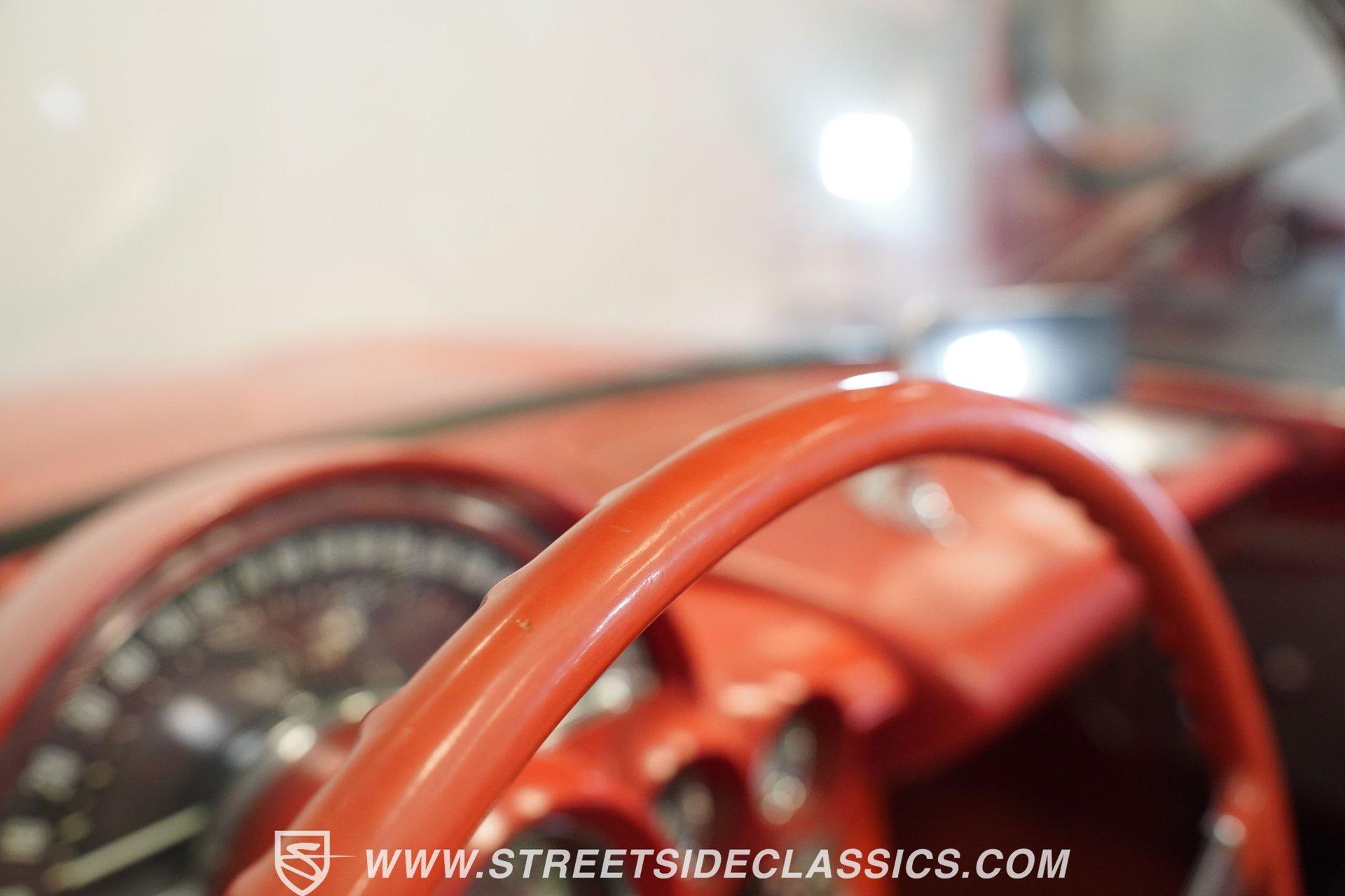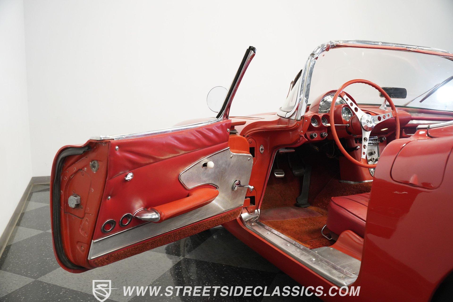 In the eight generations of the Corvette, determining which cars are the most collectible usually revolves around firsts and lasts. Generally speaking, a 'Vette that is the first to introduce something or the last to say goodbye to some aspect of Chevy's flagship tends to resonate with enthusiasts everywhere. This particular 1960 Chevrolet Corvette, fully repainted in eye-catching Roman Red, with its white canvas top and removable body-color hard top, is a stellar example of a first-generation car. With its numbers-matching engine, the 1960 model is the final year before the Corvette changed over to its quad-taillight setup, making it a noteworthy C1. Inside, we find a clean, stock-looking red interior. Dual bucket seats offer an expansive view of the fast-approaching road ahead for both the driver and passenger. A three-spoke, red-rimmed steering wheel sits in front of a classic six-pod C1 dashboard, featuring a large, half-moon 160 mph speedometer and a 7,000-rpm tachometer positioned front and center for the driver, flanked by a pair of auxiliary gauges on either side. Although non-functional at check-in, the original Wonderbar AM radio still looks plenty cool sitting above the three HVAC knobs and big analog clock. The passenger gets a red expletive-bar with a Corvette logo just beyond it. Under that signature front-hinged hood, we find a numbers-matching 283 cubic-inch V-8 engine. Topped with a set of dual-quad Carter carburetors sitting on a factory intake manifold feed that vintage small block, while a dual exhaust sends spent gases out through a set of factory-style replacement mufflers to allow this 'Vette to sound just the way it did three-quarters of a century ago. Those 270 advertised horsepower are routed through a Borg Warner T10 four-speed manual transmission before being sent out to a GM 55p drop-out style rear end, which transfers power to the pavement via a set of fifteen-inch red steel wheels, complete with Corvette hubcaps, shod in BFG Silvertown white-wall tires. *Numbers Matching 283 V8 *270 Advertised Horsepower *Dual Quad Carter Carbs *Borg Warner T10 *Four On The Floor *Drop Out Rear End *Steel Wheels *White Wall Tires *Full Roman Red Repaint *Removable Hardtop *Clean Factory Interior *Final Year Fender Mounted Tailights Riding on a suspension consisting of an independent setup in front and a solid axle/leaf spring rear configuration out back, this 1960 Chevrolet Corvette shares, along with all other C1's, the distinction of having a solid axle rear and drum brakes before the C2 came along with an independent rear and disc brakes in 1963 and 1965, respectively. If you've always wanted to join the vaunted Corvette Club, this 1960 model comes with the notoriety of being the first generation of this heralded line, and the last 'Vette to offer fender-mounted taillights. Don't wait, call today!