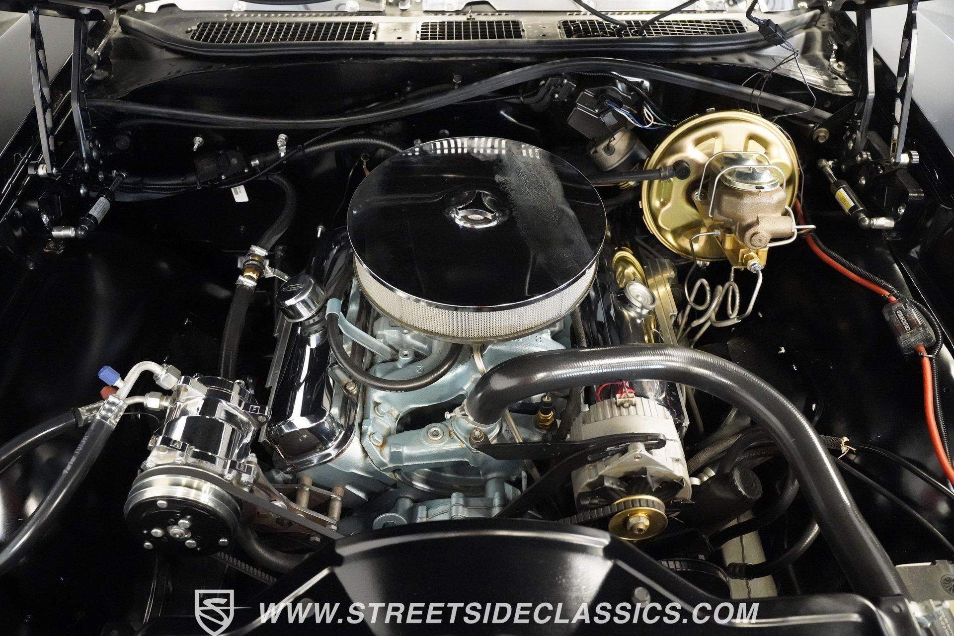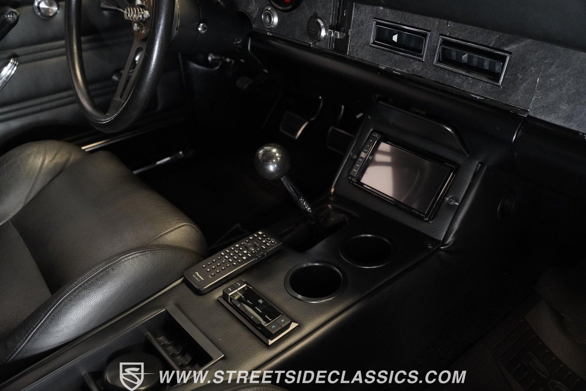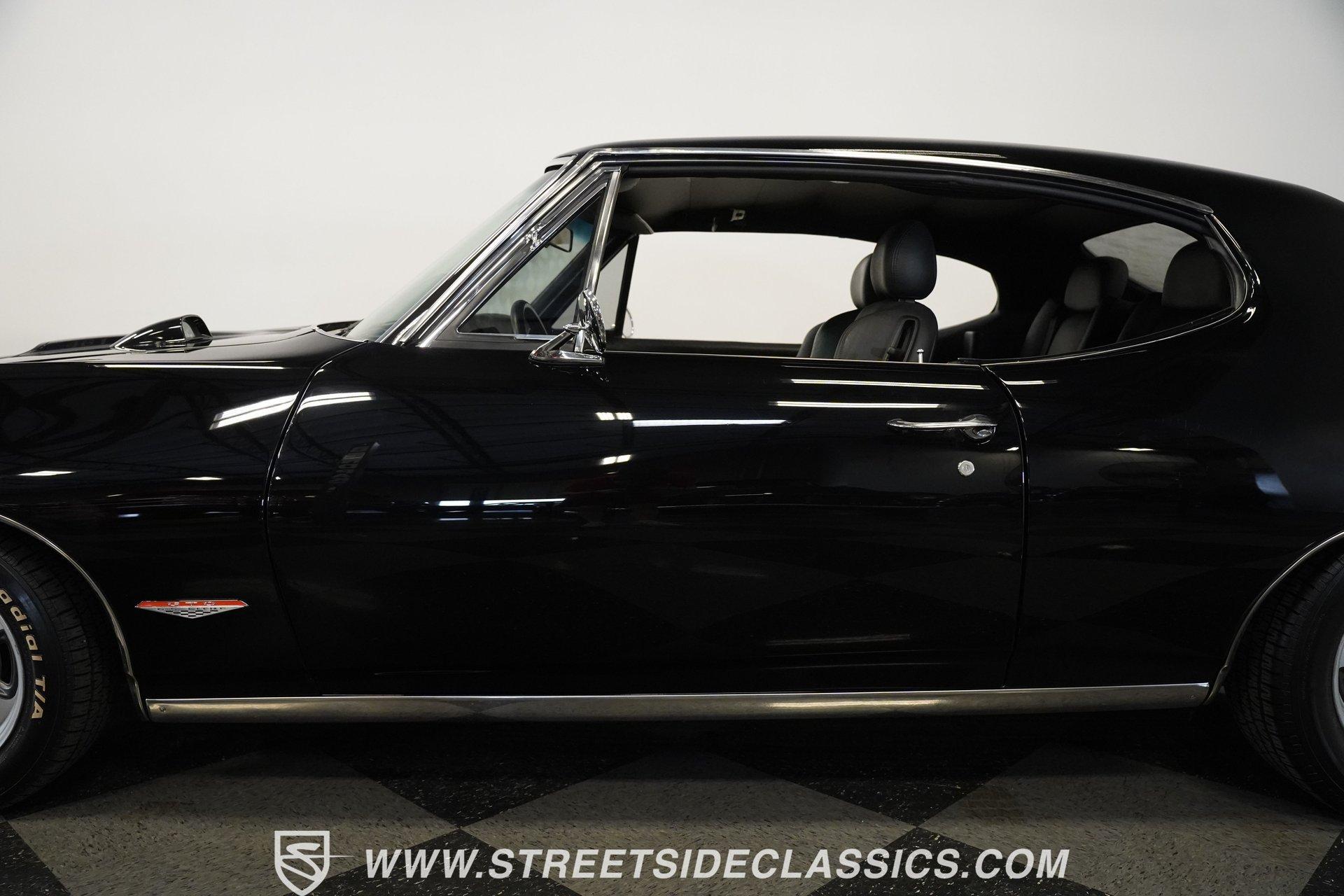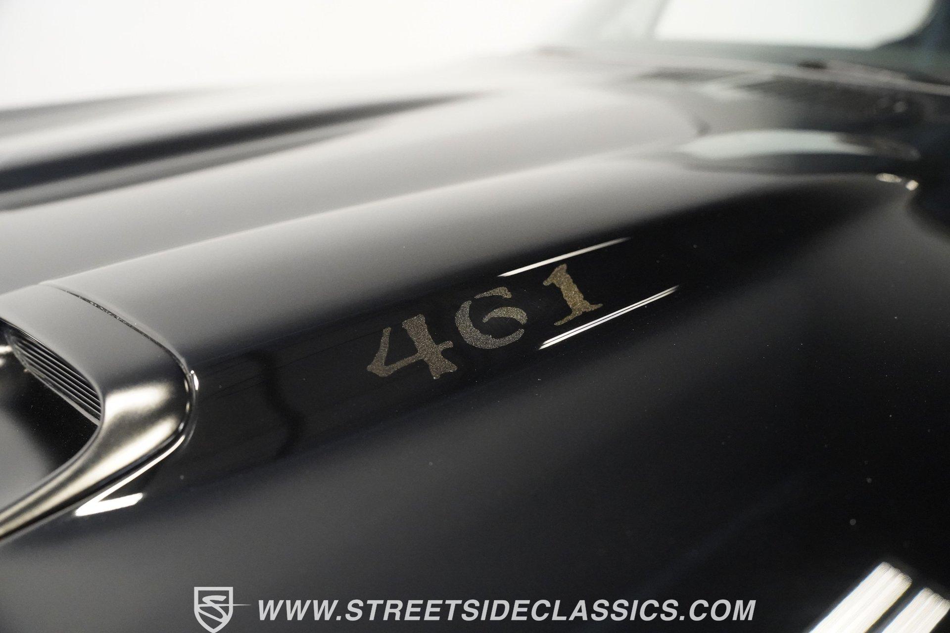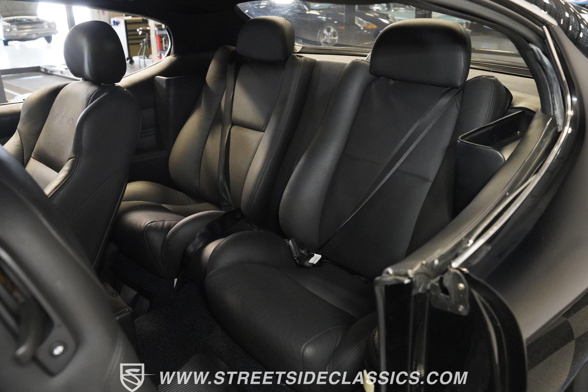 This 1968 Pontiac GTO, all muscle finished in a deep black that seems to stretch into infinity, asserts its dominance with more than just its color. Its distinctive hood, crowned with dual scoops and a hood tach, as well as a Judge style rear wing ad to the excitement. Perched on 15-inch Pontiac Rally ll wheels that anchor it firmly to the asphalt, its road presence is undeniable. The car's stance is aggressive, with BF Goodrich Radial T/A front tires sized at 205/60R15 and wider rear tires at 235/60R15, ensuring that every bit of power is translated directly to the road. This GTO makes an entrance with the unmistakable allure of American muscle. The interior, a sea of classic black, envelops you in an ambiance of vintage luxury. Luxurious leather bucket seats sourced from a late-model GTO offer a front-row seat to the road ahead, while the rear passengers enjoy the comfort of another pair of leather trimmed bucket seats. A custom console with cup holders houses JBL sound with Bluetooth controls and a Hurst shifter before sweeping up to house a Pioneer touchscreen infotainment center with remote. The custom dash face is fitted with a full set of red analog gauges by Speed Hut and a Vintage Air air conditioning system keeps the cabin cool. Underneath the hood lies the soul of the beast: a Pontiac XW code 400 V8 engine that has been bored to 461 cubic inches for enhanced for performance. The detailed engine bay is highlighted by factory-style chrome valve covers and a chrome open-element air cleaner. Power is sent to the rear wheels via a Borg-Warner T-10 4-speed manual transmission. Exhaust rumbles back through an X-pipe and dual Quiet Flow mufflers. Handling capabilities have been greatly improved with Hotchkis lowering springs, Hotchkis rear sway bar and trailing arms, a beefy front sway bar and power assisted disc brakes with drilled and slotted rotors on all four corners.