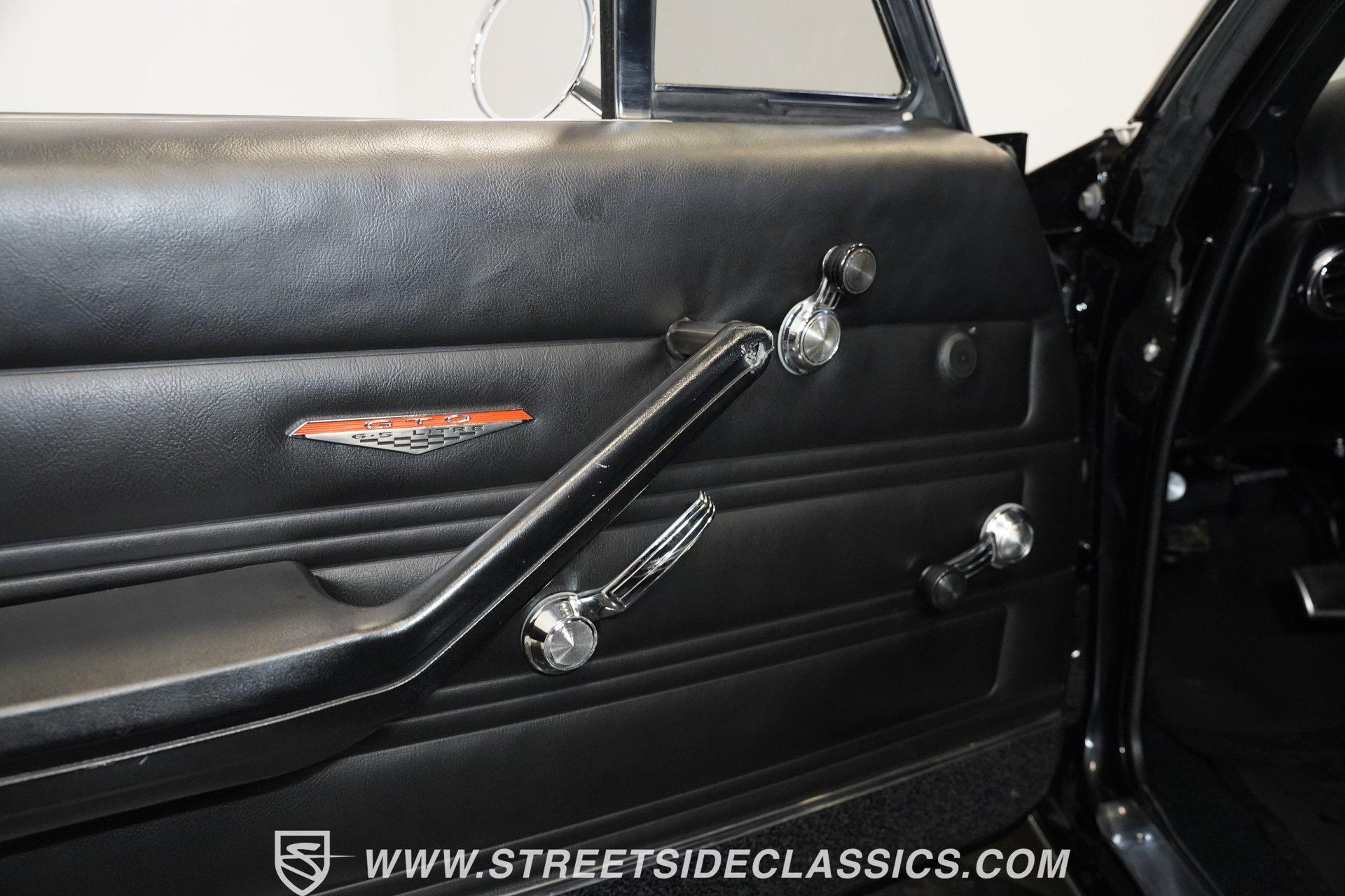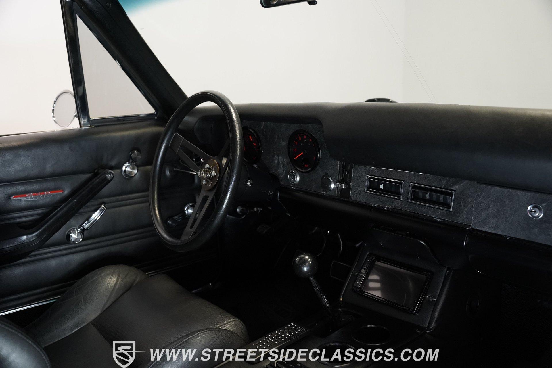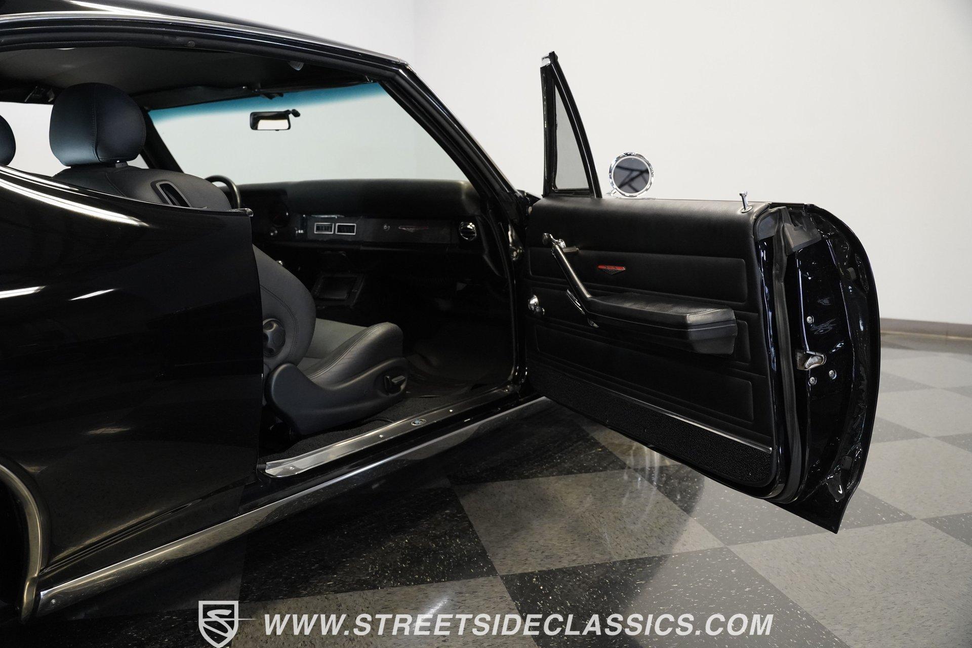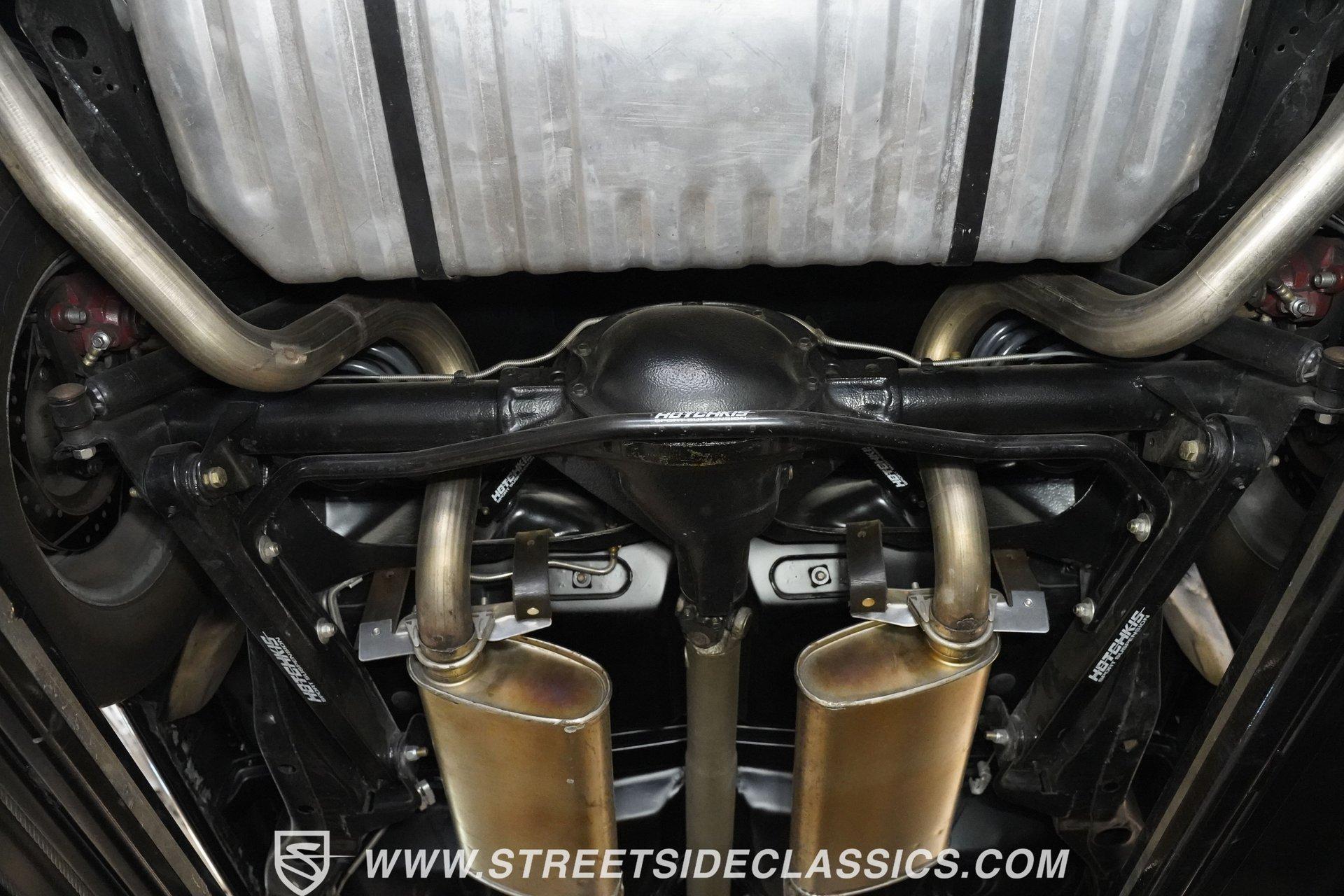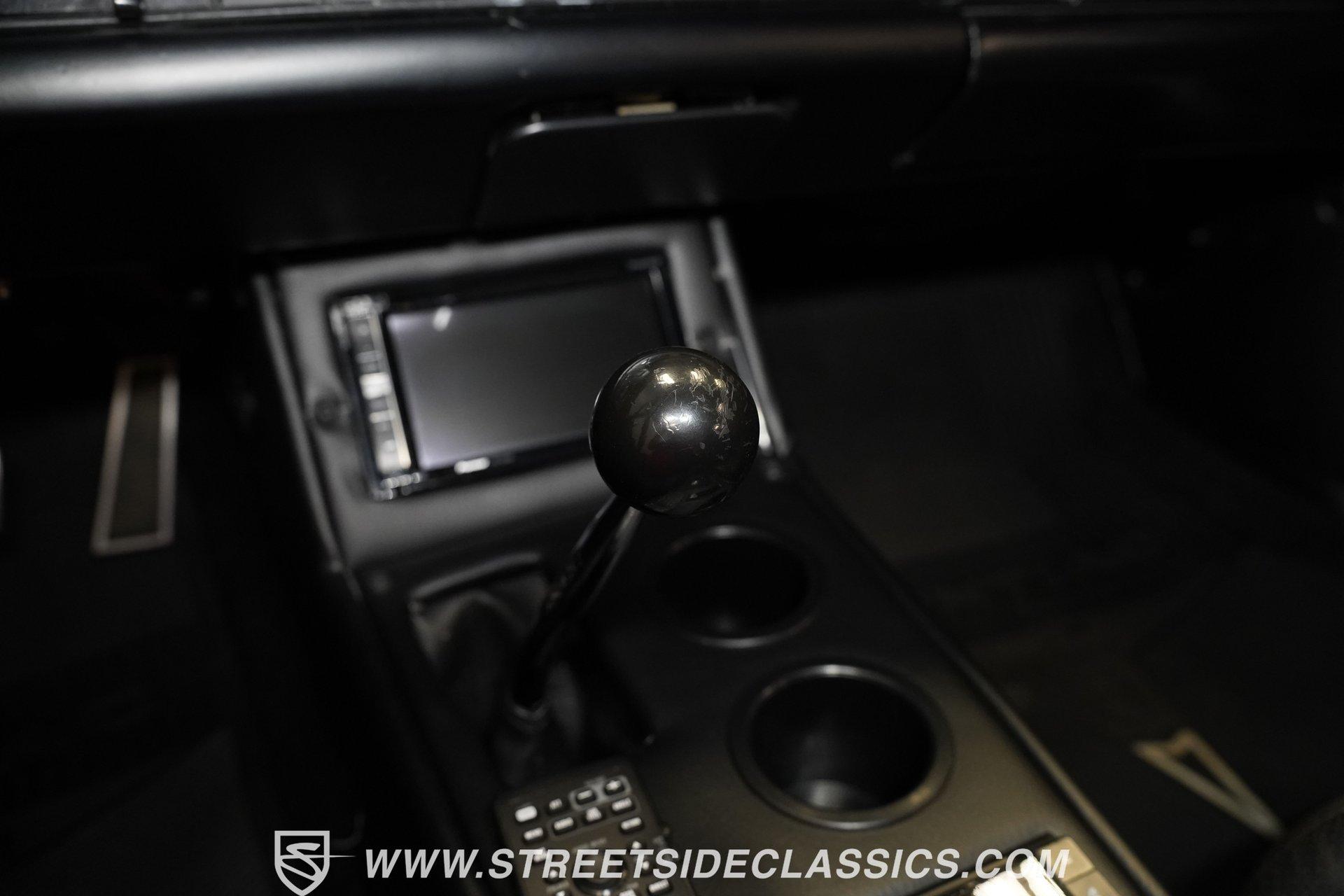 This 1968 Pontiac GTO, all muscle finished in a deep black that seems to stretch into infinity, asserts its dominance with more than just its color. Its distinctive hood, crowned with dual scoops and a hood tach, as well as a Judge style rear wing ad to the excitement. Perched on 15-inch Pontiac Rally ll wheels that anchor it firmly to the asphalt, its road presence is undeniable. The car's stance is aggressive, with BF Goodrich Radial T/A front tires sized at 205/60R15 and wider rear tires at 235/60R15, ensuring that every bit of power is translated directly to the road. This GTO makes an entrance with the unmistakable allure of American muscle. The interior, a sea of classic black, envelops you in an ambiance of vintage luxury. Luxurious leather bucket seats sourced from a late-model GTO offer a front-row seat to the road ahead, while the rear passengers enjoy the comfort of another pair of leather trimmed bucket seats. A custom console with cup holders houses JBL sound with Bluetooth controls and a Hurst shifter before sweeping up to house a Pioneer touchscreen infotainment center with remote. The custom dash face is fitted with a full set of red analog gauges by Speed Hut and a Vintage Air air conditioning system keeps the cabin cool. Underneath the hood lies the soul of the beast: a Pontiac XW code 400 V8 engine that has been bored to 461 cubic inches for enhanced for performance. The detailed engine bay is highlighted by factory-style chrome valve covers and a chrome open-element air cleaner. Power is sent to the rear wheels via a Borg-Warner T-10 4-speed manual transmission. Exhaust rumbles back through an X-pipe and dual Quiet Flow mufflers. Handling capabilities have been greatly improved with Hotchkis lowering springs, Hotchkis rear sway bar and trailing arms, a beefy front sway bar and power assisted disc brakes with drilled and slotted rotors on all four corners.