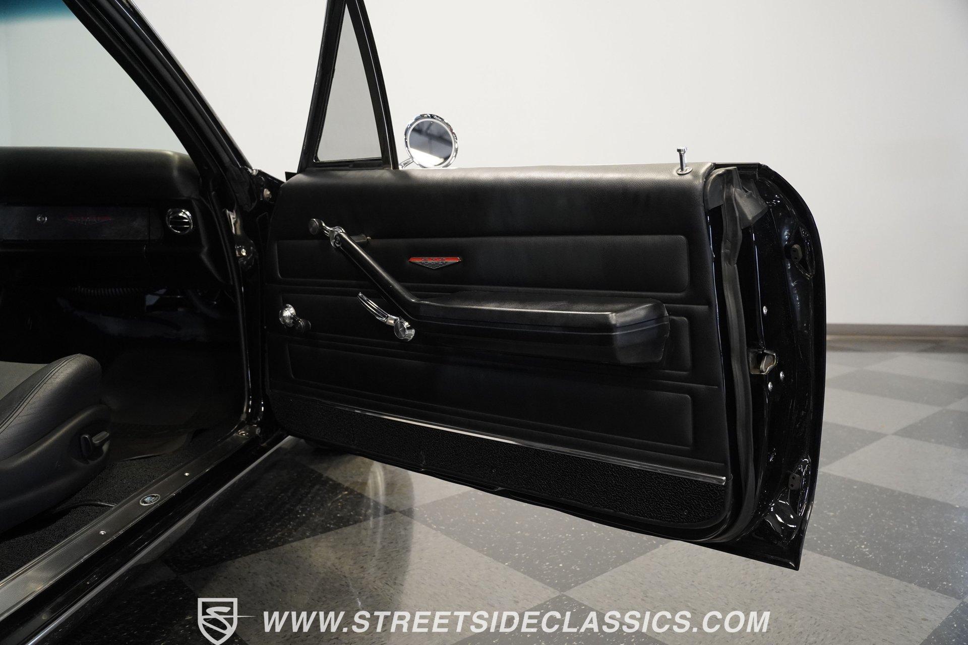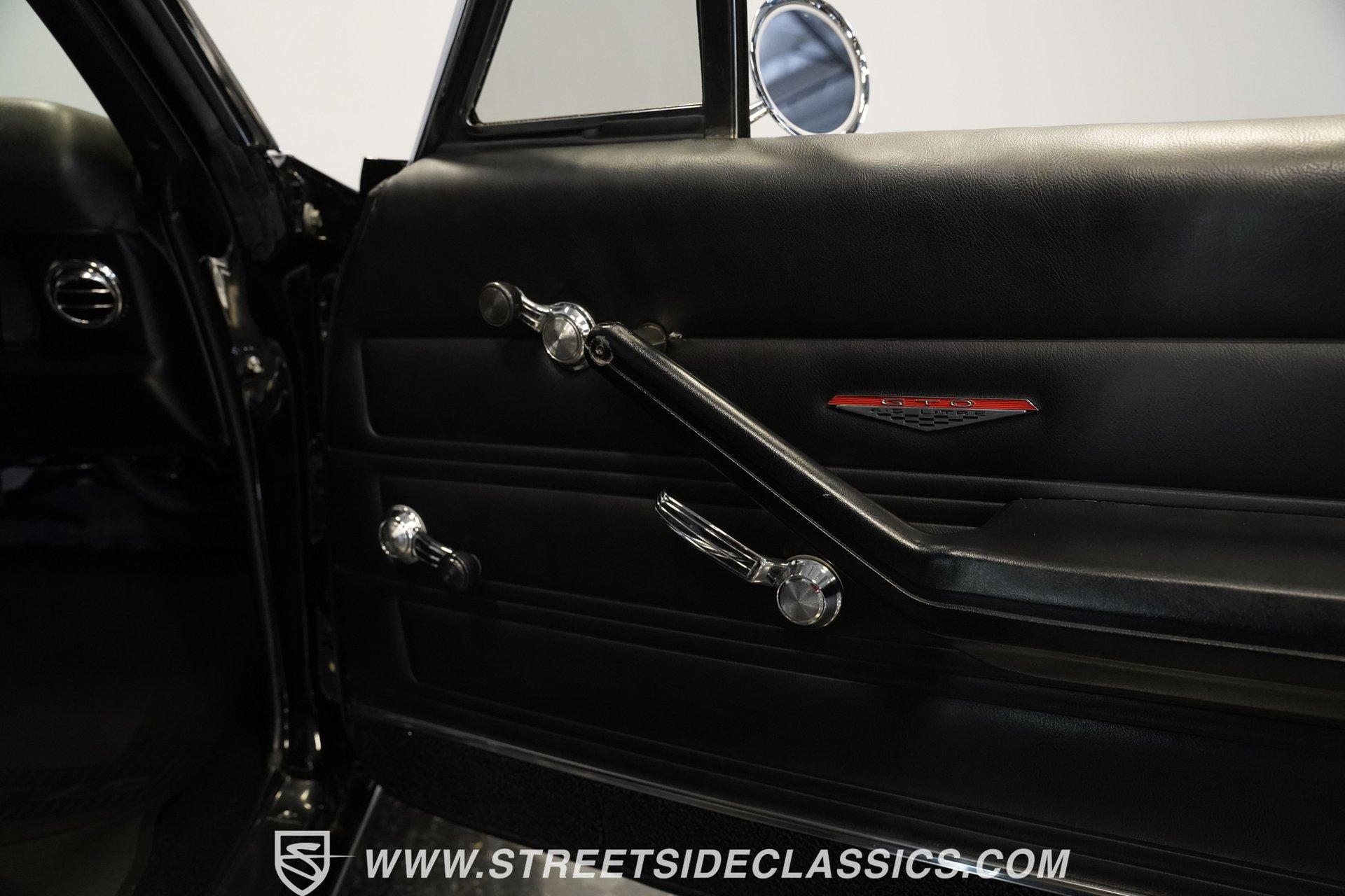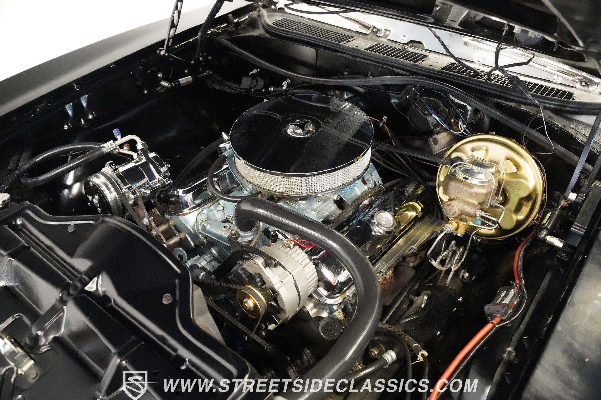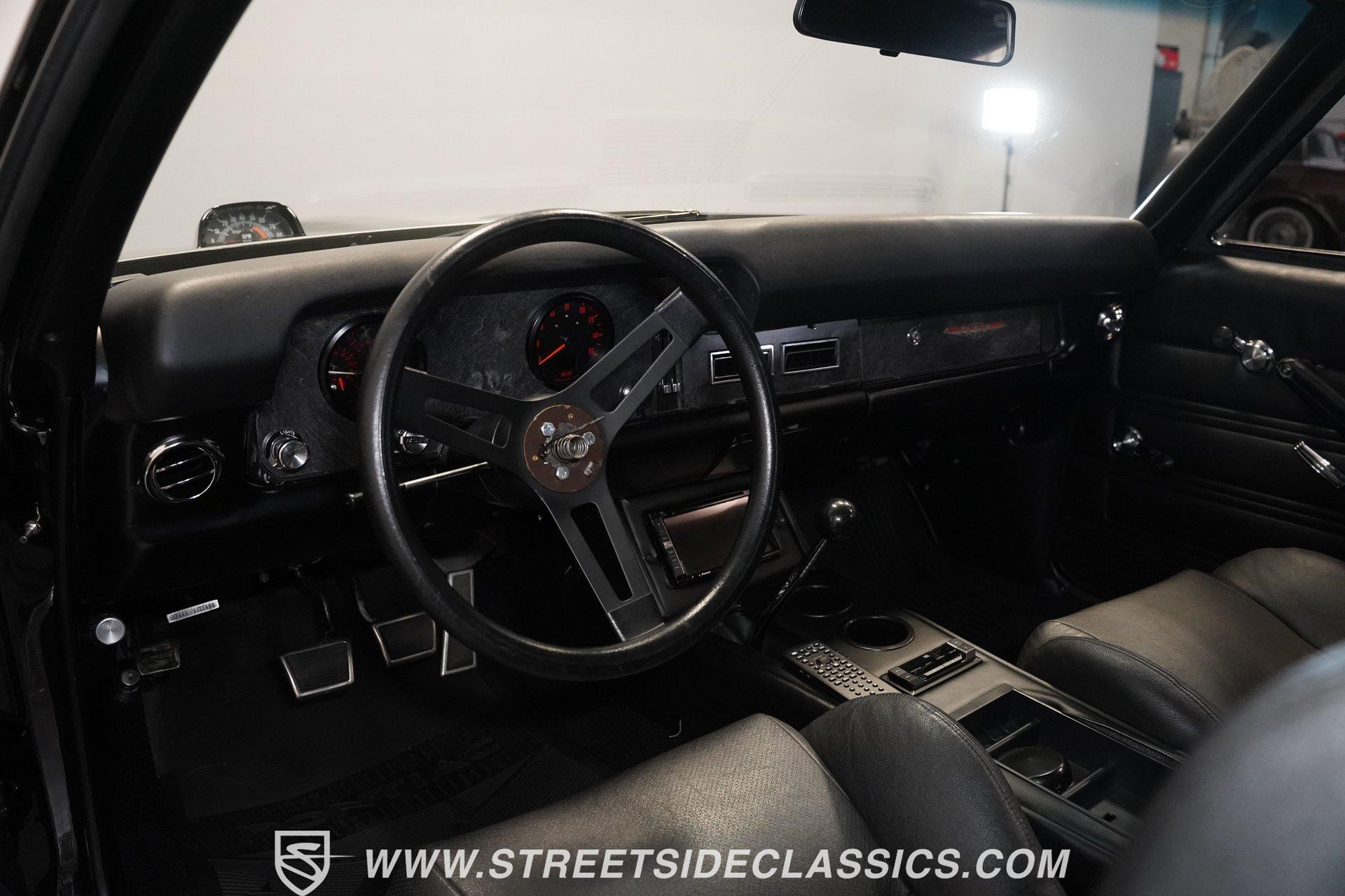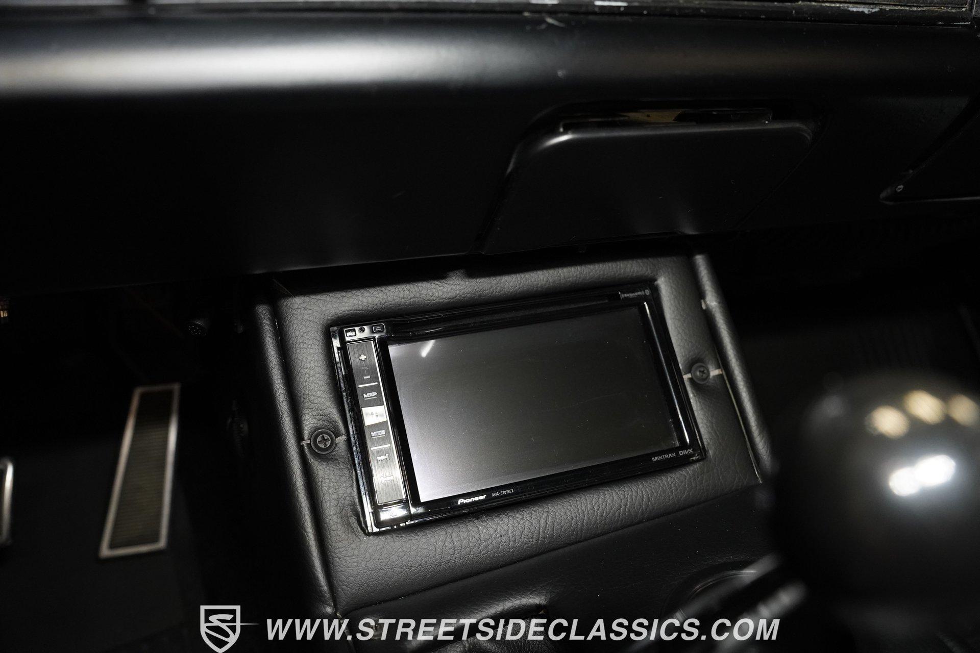 This 1968 Pontiac GTO, all muscle finished in a deep black that seems to stretch into infinity, asserts its dominance with more than just its color. Its distinctive hood, crowned with dual scoops and a hood tach, as well as a Judge style rear wing ad to the excitement. Perched on 15-inch Pontiac Rally ll wheels that anchor it firmly to the asphalt, its road presence is undeniable. The car's stance is aggressive, with BF Goodrich Radial T/A front tires sized at 205/60R15 and wider rear tires at 235/60R15, ensuring that every bit of power is translated directly to the road. This GTO makes an entrance with the unmistakable allure of American muscle. The interior, a sea of classic black, envelops you in an ambiance of vintage luxury. Luxurious leather bucket seats sourced from a late-model GTO offer a front-row seat to the road ahead, while the rear passengers enjoy the comfort of another pair of leather trimmed bucket seats. A custom console with cup holders houses JBL sound with Bluetooth controls and a Hurst shifter before sweeping up to house a Pioneer touchscreen infotainment center with remote. The custom dash face is fitted with a full set of red analog gauges by Speed Hut and a Vintage Air air conditioning system keeps the cabin cool. Underneath the hood lies the soul of the beast: a Pontiac XW code 400 V8 engine that has been bored to 461 cubic inches for enhanced for performance. The detailed engine bay is highlighted by factory-style chrome valve covers and a chrome open-element air cleaner. Power is sent to the rear wheels via a Borg-Warner T-10 4-speed manual transmission. Exhaust rumbles back through an X-pipe and dual Quiet Flow mufflers. Handling capabilities have been greatly improved with Hotchkis lowering springs, Hotchkis rear sway bar and trailing arms, a beefy front sway bar and power assisted disc brakes with drilled and slotted rotors on all four corners.