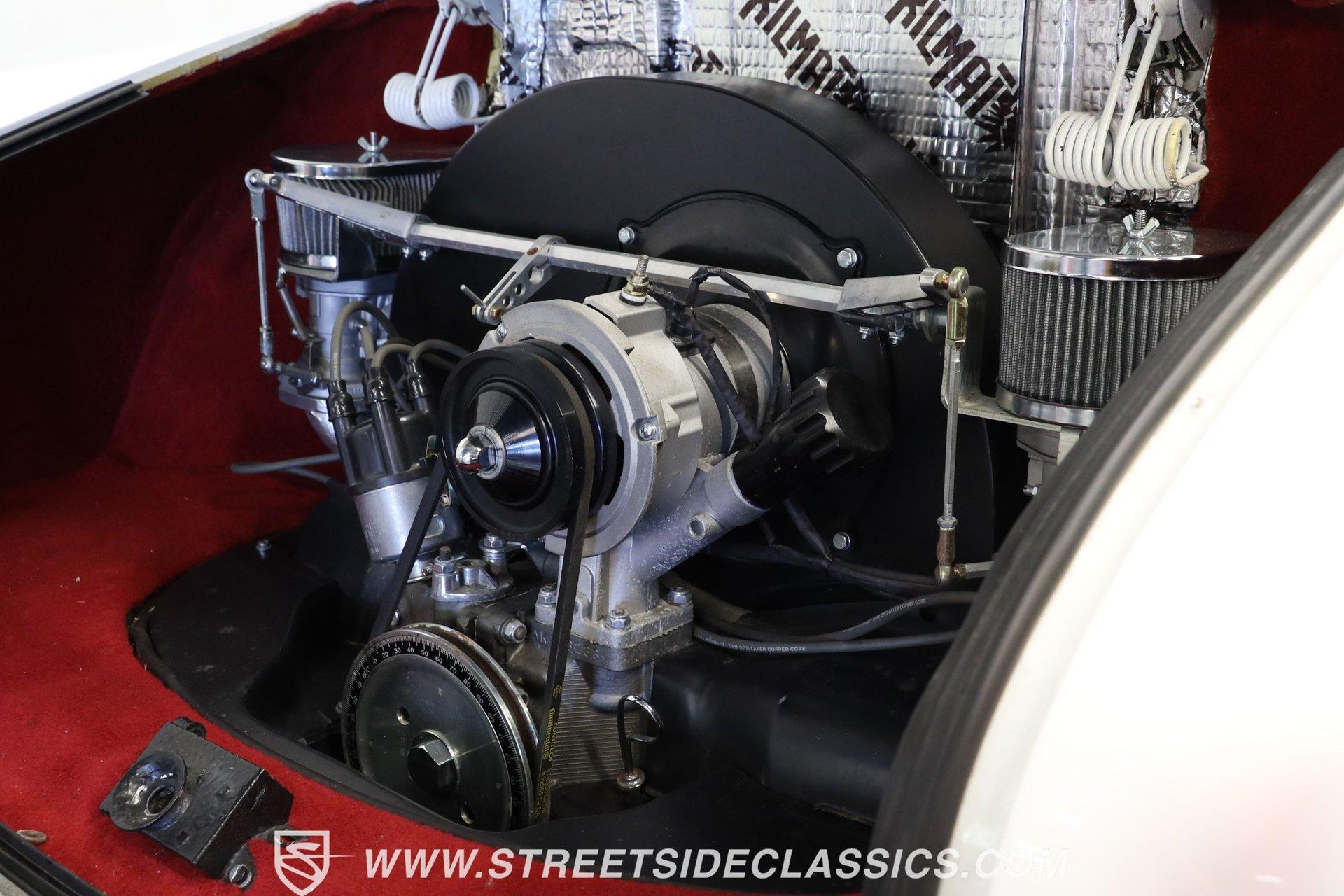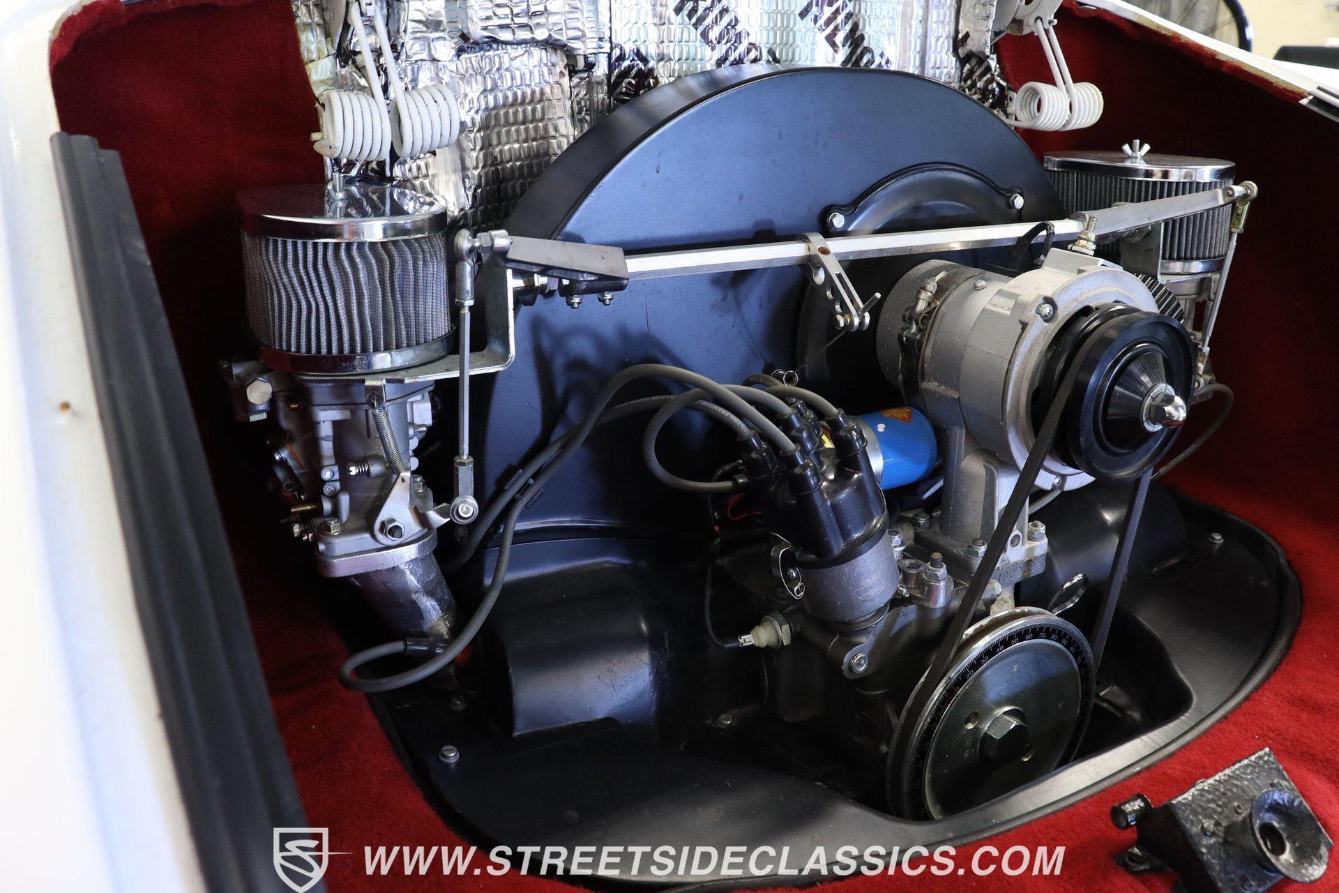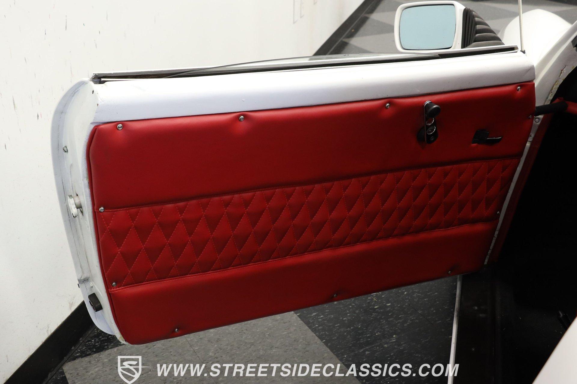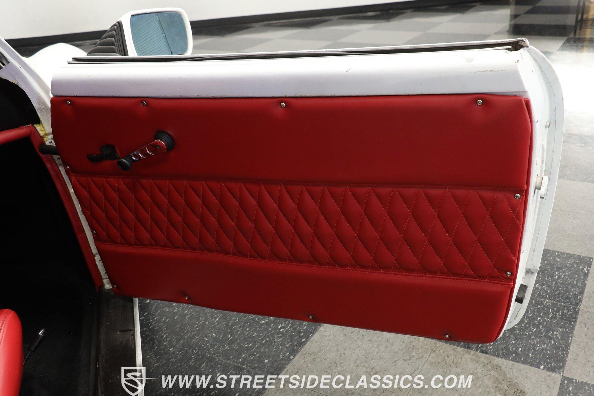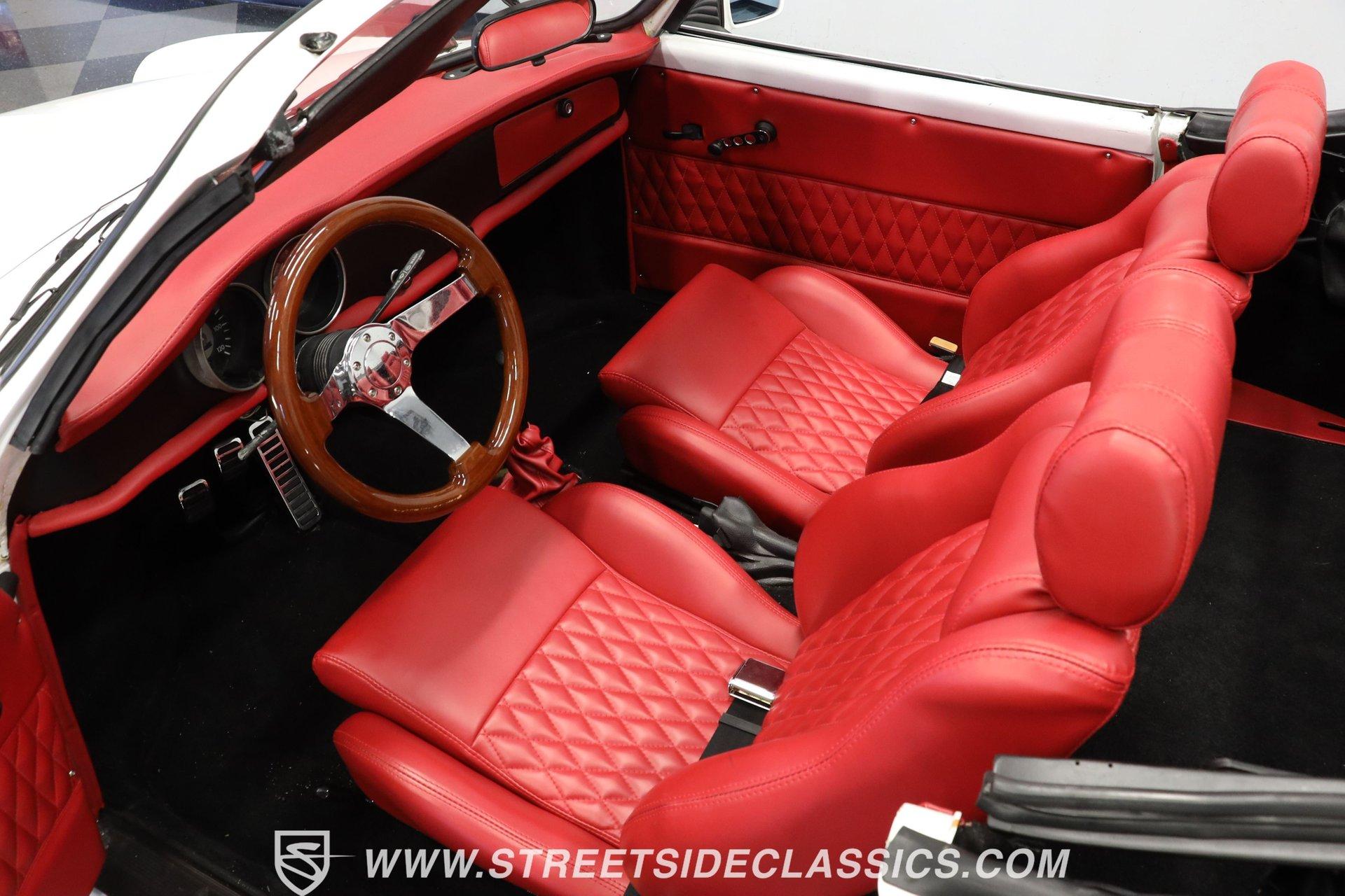 Sculpted by Italian design firm Ghia and hand-built by Karmann coachworks, this 1973 Volkswagen Karmann Ghia Convertible wears pearl white paint with exceptional gloss and shine. The athletic proportions and low stance give it a distinctive road presence. Black cloth convertible top provides open-air enjoyment when folded down. Chrome bumpers both front and rear appear almost new with very minimal wear. The 15-inch rims are fitted with radial tires (2020 date code) and finished with chrome VW hub caps. Upgraded clear headlights add a contemporary touch to the classic design. Vivid red dominates the cabin of this German classic, creating a bold contrast to the pearl white exterior. Aftermarket bucket seats with cross-stitched inserts provide both comfort and style. The dash and door panels continue the red theme for a unified look throughout. The aftermarket steering wheel adds a custom touch while maintaining control over the road. Original-style gauges display vital information clearly and effectively. A floor-mounted shifter with matching red boot allows for precise gear selection through all four speeds. At the rear sits a 1600 CC engine equipped with dual 2-barrel carburetors for increased performance. The 4-speed manual transmission gives the driver full control over power delivery and acceleration. Four-wheel disc brakes – an excellent upgrade from the factory setup – provide superior stopping capability. Manual steering offers direct road feedback for a pure driving experience. The clean engine bay shows careful maintenance and attention to detail, with all components working together for optimal performance on the road. HIGHLIGHTS: 1600 CC Engine 4-Speed Manual Transmission Dual 2-Barrel Carburetors Four-Wheel Disc Brakes Clean Engine Bay Pearl White Paint Black Cloth Convertible Top 15" Rims With Radial Tires Chrome Volkswagen Hub Caps Chrome Front And Rear Bumpers Upgraded Clear Headlights Lowered Stance Red Interior Aftermarket Bucket Seats With Cross-Stitched Inserts Aftermarket Steering Wheel Original-Style Gauges Floor-Mounted Shifter With Red Boot Matching Red Door Panels And Dash European styling with open-air fun, this 1973 Volkswagen Karmann Ghia Convertible delivers both. The distinctive pearl white finish, contrasting red interior, and upgraded mechanicals make it an excellent choice for weekend drives or car shows. Call today! We can assist you with getting an Extended Vehicle Service Plan from Freedom Warranty, which provides comprehensive coverage that can save thousands of dollars on unexpected repairs. Inquire for more details and pricing!