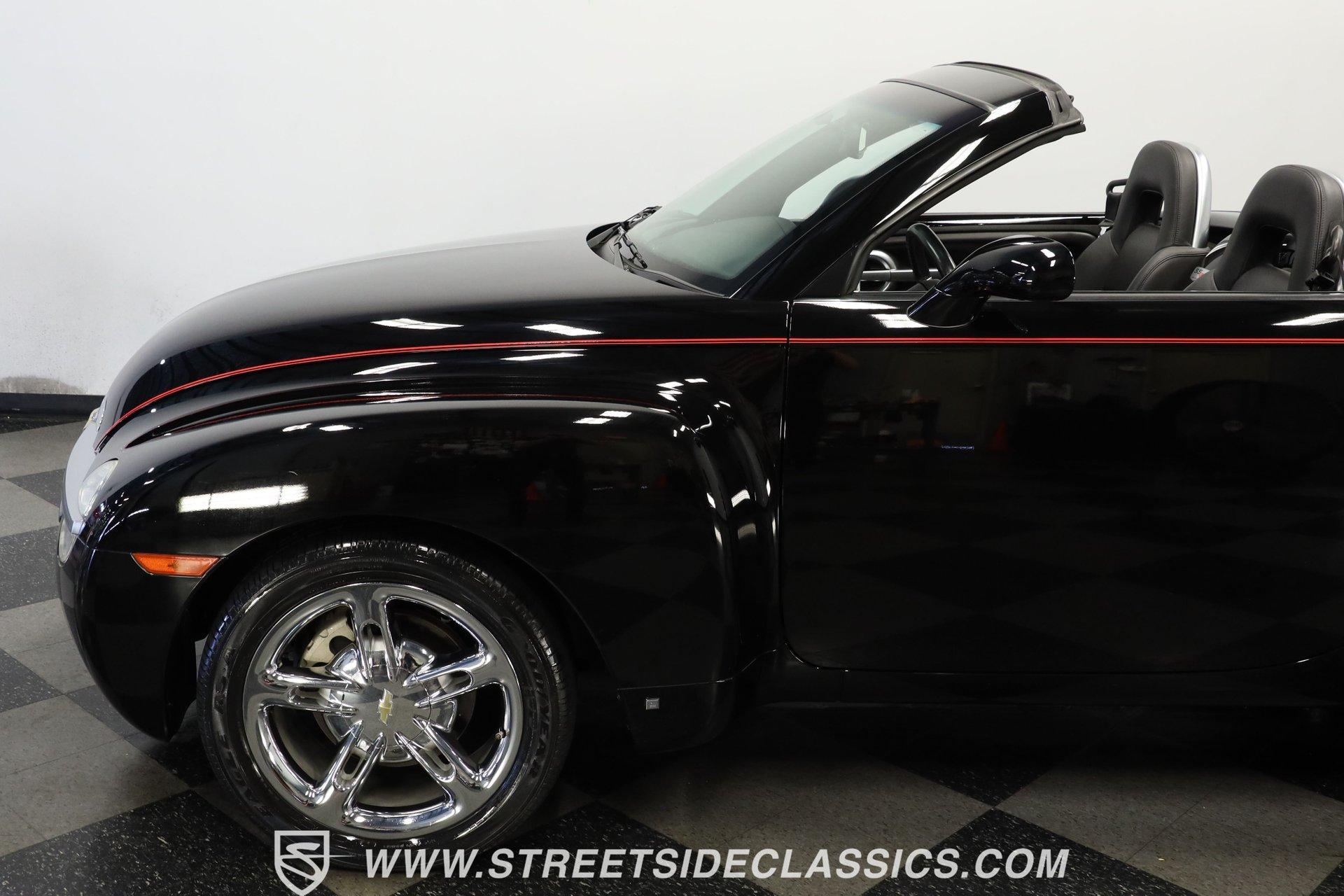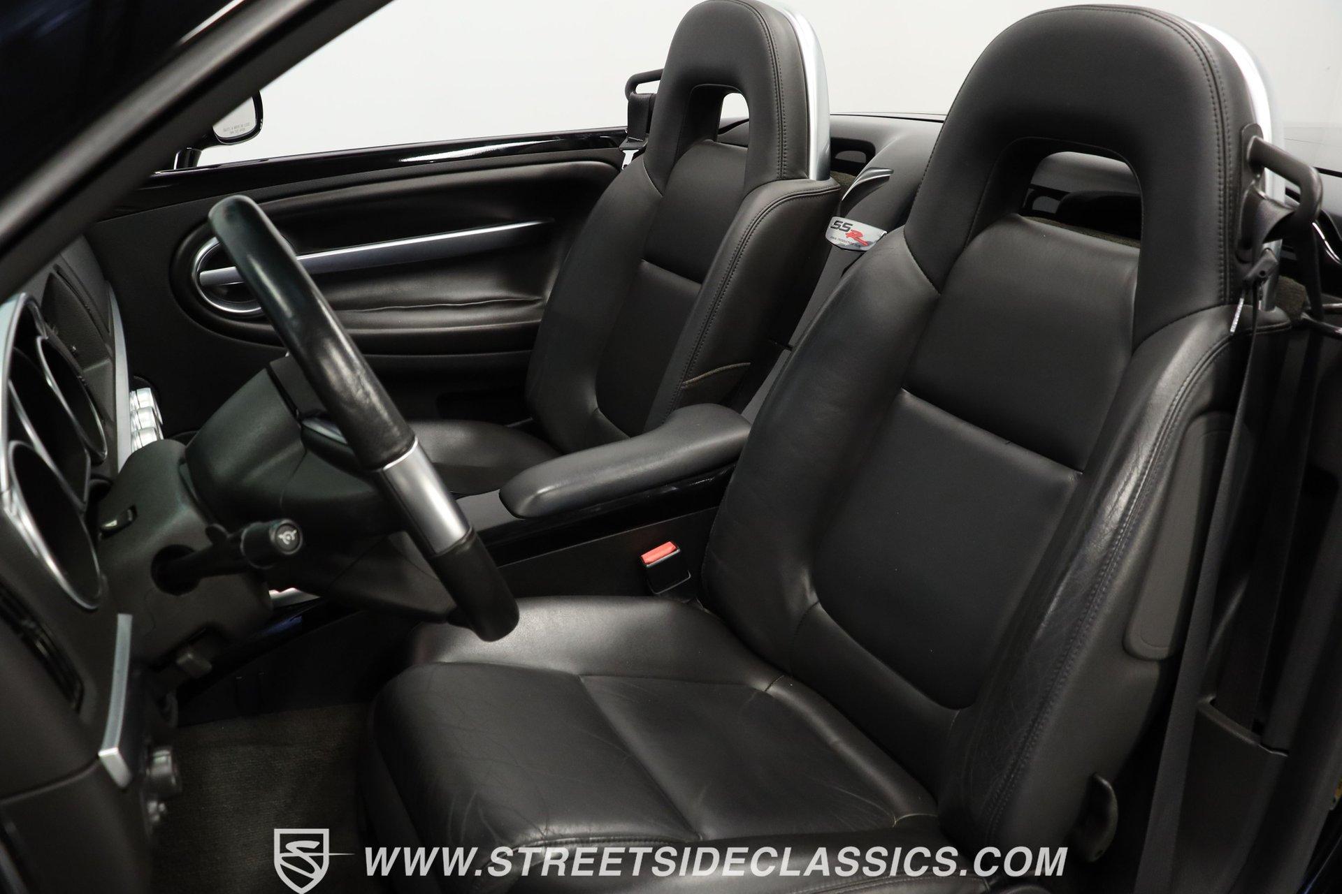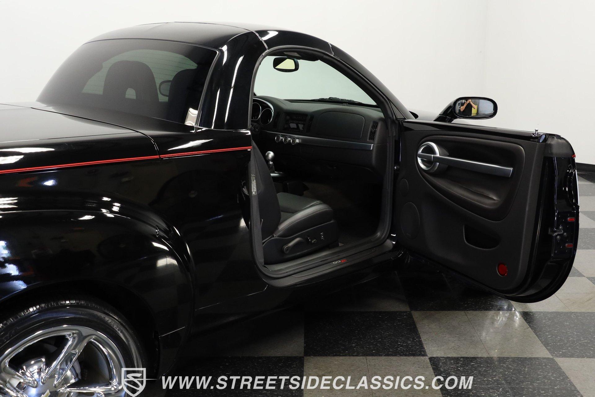 This 2005 Chevrolet SSR stands out as a rare gem that been driven by its original owner for only 29,242 since it was new. Its deep, glossy black paint still commands attention and admiration, a testament to the care this SSR has been given. The SSR's allure is further amplified by its distinctive power convertible hardtop and complemented by a smooth cargo cover. These features, along with the staggered 19" and 20" polished alloy wheels wrapped in Goodyear Eagle RS-A tires, give this vehicle a stance and presence that are hard to ignore. Once you step inside this 2006 Chevrolet SSR, it becomes clear that this isn't just any ride. Enveloped in rich black leather, every aspect of the interior, from the door panels to the dash, exudes a high level of care. The seats are a throne of comfort with 6-way power adjustments and heating for those cooler evenings. Air conditioning keeps you cool on hot summer days, cruise control ensures effortless highway cruising, and power steering offers precision handling. The automatic headlights light the road ahead as dusk sets like a night beacon. An AM/FM CD player, teamed with Bose speakers, creates an in-car concert hall experience on wheels. Underneath its sleek exterior, the 2006 Chevrolet SSR boasts a 6.0L LS2 V8 engine paired with a Tremec 6-speed manual transmission, a rare setup for this powerhouse that is complemented by a 3.73 limited slip rear end. This was the last year a 6-speed was offered in the SSR. Equipped with 4-wheel power disc brakes and power steering, it makes handling a breeze. And while the engine purrs with understated confidence, the dual exhaust tips hint at its potential roar. HIGHLIGHTS: 6.0L LS V8 Engine Tremec 6 Speed Manual Transmission 29,242 Miles from New Chrome Dual Exhaust Tips 3.73 Limited Slip Rear End 4 Wheel Power Disc Brakes Power Convertible Hardtop Red Pinstripe 19" and 20" Staggered Alloy Wheels in Goodyear Eagle Tires Black Leather Upholstery 6 Way Power and Heated Seats Bose Sound System with CD Player This 2006 Chevrolet SSR truly stands out. Its striking black exterior, low miles, luxurious cabin and powerful LS engine under the hood make it unique. Call today! We can assist you with getting an Extended Vehicle Service Plan from Freedom Warranty, which provides comprehensive coverage that can save thousands of dollars on unexpected repairs. Inquire for more details and pricing!