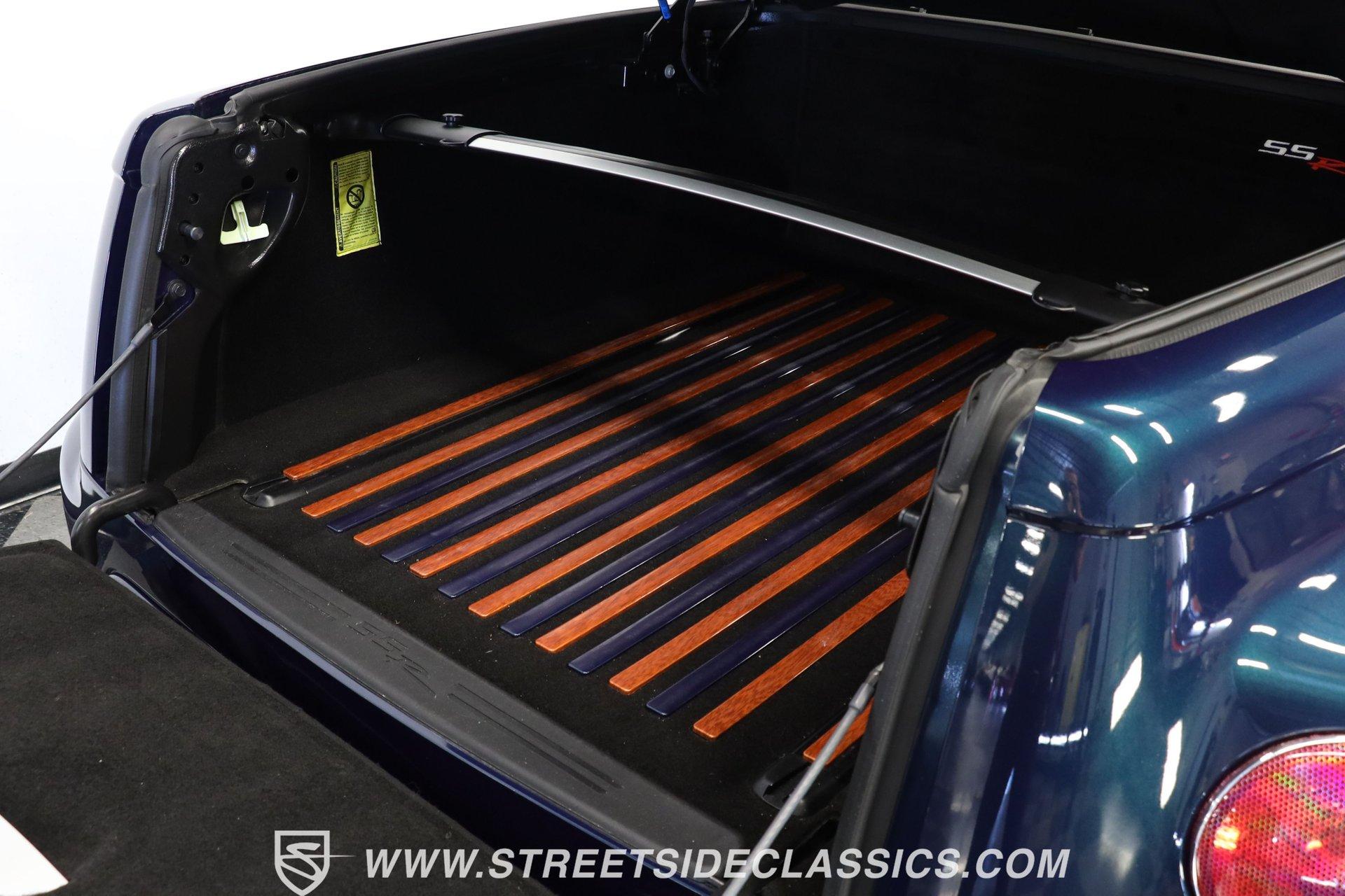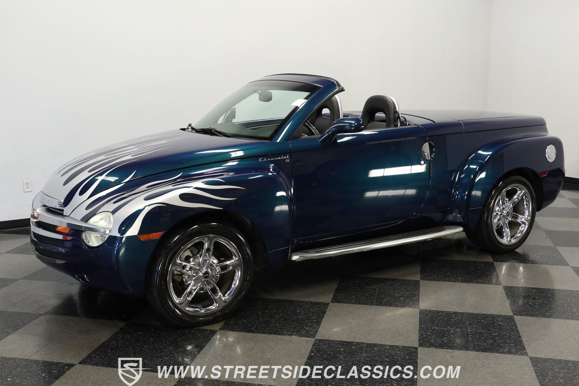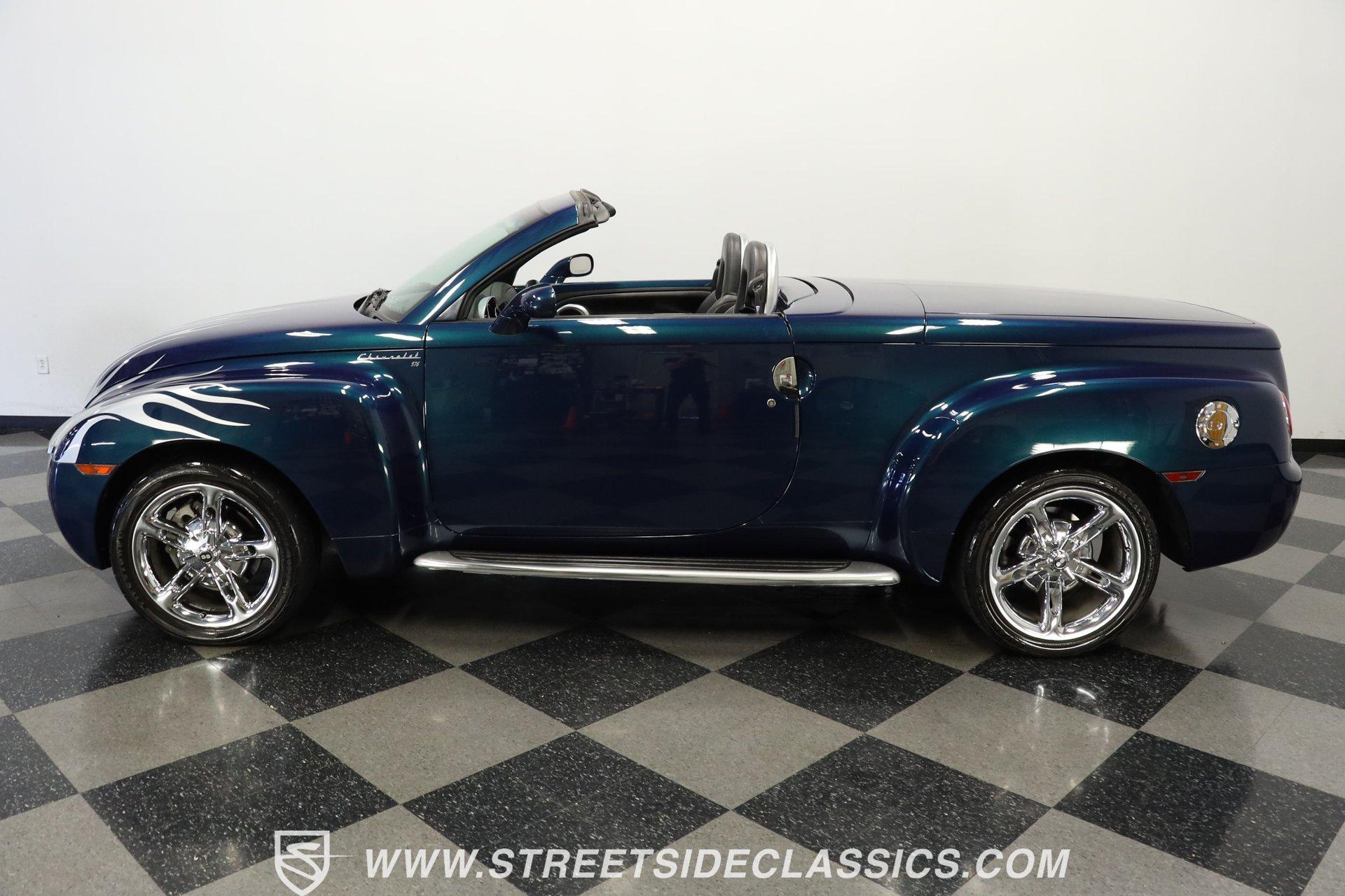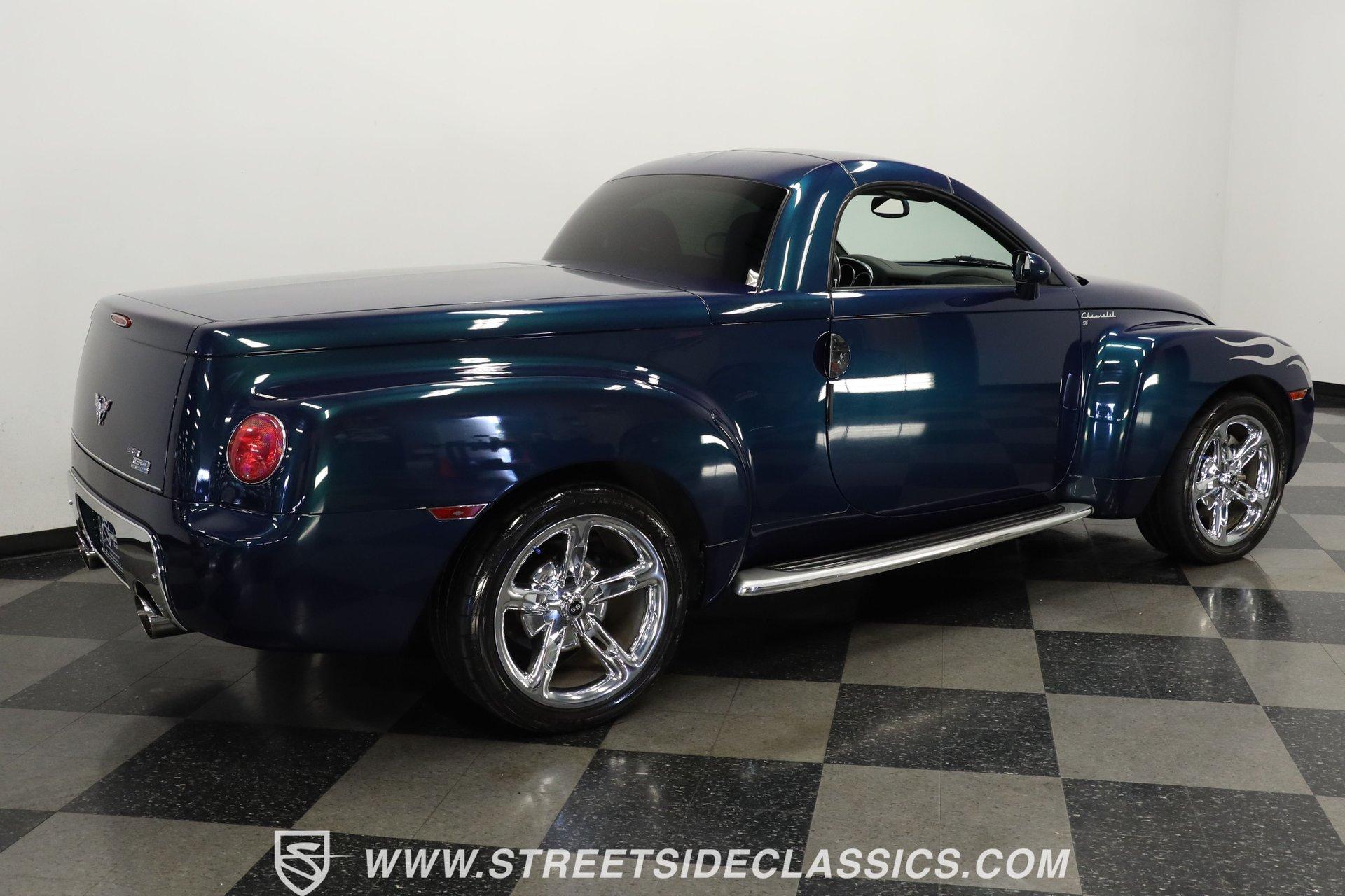If you're looking for a great-looking, fun, fast, and uncommon vehicle that also happens to be relatively practical, take a look at this 2005 Chevrolet SSR. Decked out in a very rare Aqua Blur Metallic, also known as Bermuda Blue Metallic, a color which was only made for the 2005 model year, makes this late-model muscle truck one of less than 1,300 ever made. Add to that shimmering tropical vibe a front end covered in silver flame decals, complementing the SSR's retractable hardtop, and you have a car that will turn heads everywhere it goes. Inside, we find a host of modern amenities that old-school hot rods can only dream of. A stock black leather interior featuring dual power leather heated seats, power windows, locks, and mirrors, along with an AM/FM/CD head unit, creates a warm and comfortable cabin with or without the wind blowing through your hair. A power bed cover release, air-conditioning, cruise control, and a center console highlighted by a three-pod auxiliary gauge cluster all serve to make road trips of any distance overwhelmingly enjoyable. For 2005, the SSR got a big upgrade under that trick wedge-shaped hood. Gone is the 5.3-liter Vortec V-8, and in its place we find a Corvette-derived 6.0-liter LS2 V-8 engine. Thanks to a lightweight aluminum block and heads, flat-top pistons, and a healthy 10.9:1 compression ratio, this LS2 was capable of pumping out an impressive 390 horsepower and 405 pound-feet of torque when it rolled off the assembly line two decades ago. Those ponies are routed through a heavy-duty 4L60E four-speed automatic transmission before being sent out to the 3.73-geared rear end, which transmits power to the pavement via a set of big 20-inch polished five-spoke wheels shod in massive 305/35R-20 Firestone Indy 500 tires. At the same time, a smaller set of 19-inch wheels wrapped in 275/40R-19 Firestones to give this throwback pickup the perfect staggered hot rod stance. *Rare Aqua Blur Metallic *Less Than 1300 Made *Flame Hood Decals *Retractable Hardtop *Short Bed *LS2 V8 *4L60E Four Speed Auto *3.73 Rear *Four Wheel Power Discs *Power Steering *Power Windows *Power Locks *Power Mirrors *Power Seats *Heated Seats *AC *Cruise *Owner's Manual Despite having a curb weight about a keg and a half short of 5,000 pounds, this 2005 Chevrolet SSR could run from 0-60 mph in a scant 5.5 seconds. And thanks to its body-color rear tonneau-covered bed, those kegs, or just about anything else, can fit nicely in back. While produced for only four model years, the Chevy SSR cast a brief but shining light on the autoverse, offering an incredibly unique, retro-modern muscle truck that proved "hauling" could mean more than one thing. If you want to feel what it's like to sit behind the wheel of a V-8-powered droptop truck, then don't wait another second. Call today! We can assist you with getting an Extended Vehicle Service Plan from Freedom Warranty, which provides comprehensive coverage that can save thousands of dollars on unexpected repairs. Inquire for more details and pricing!