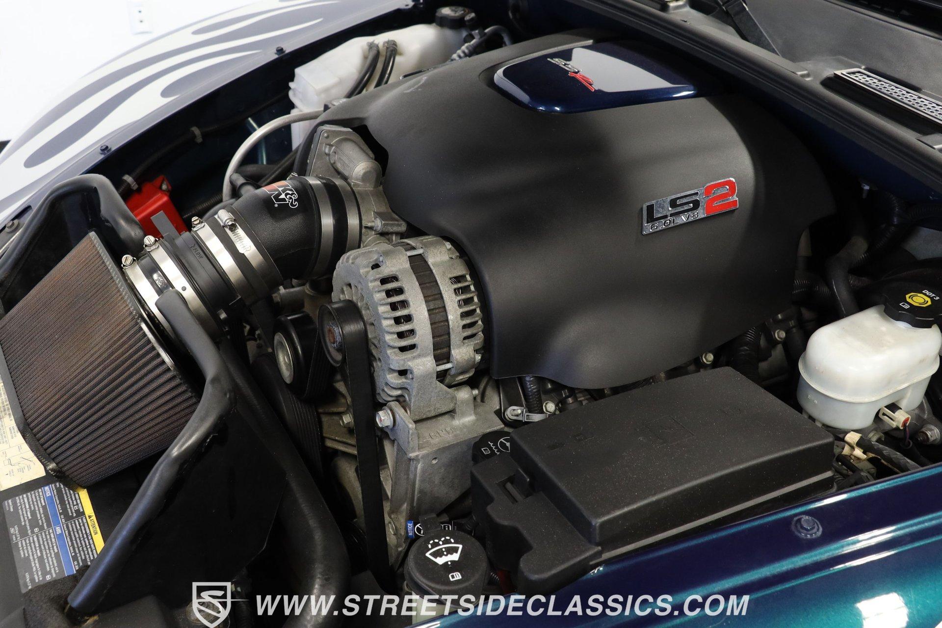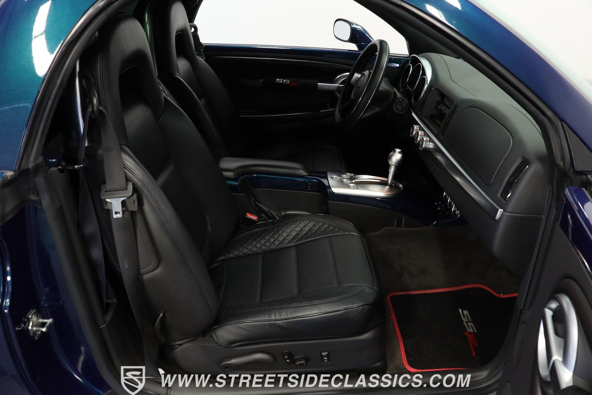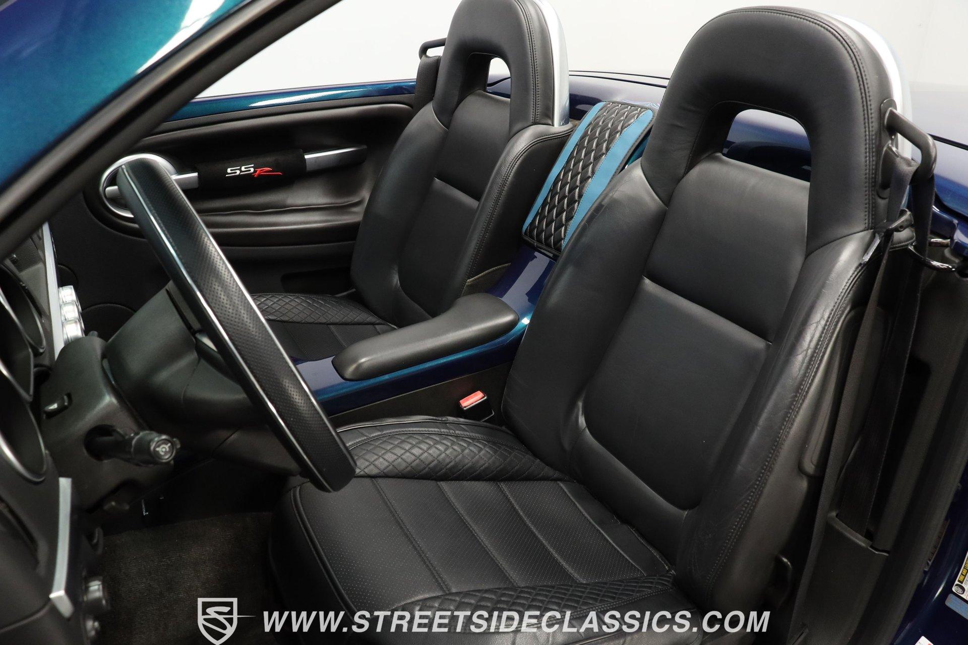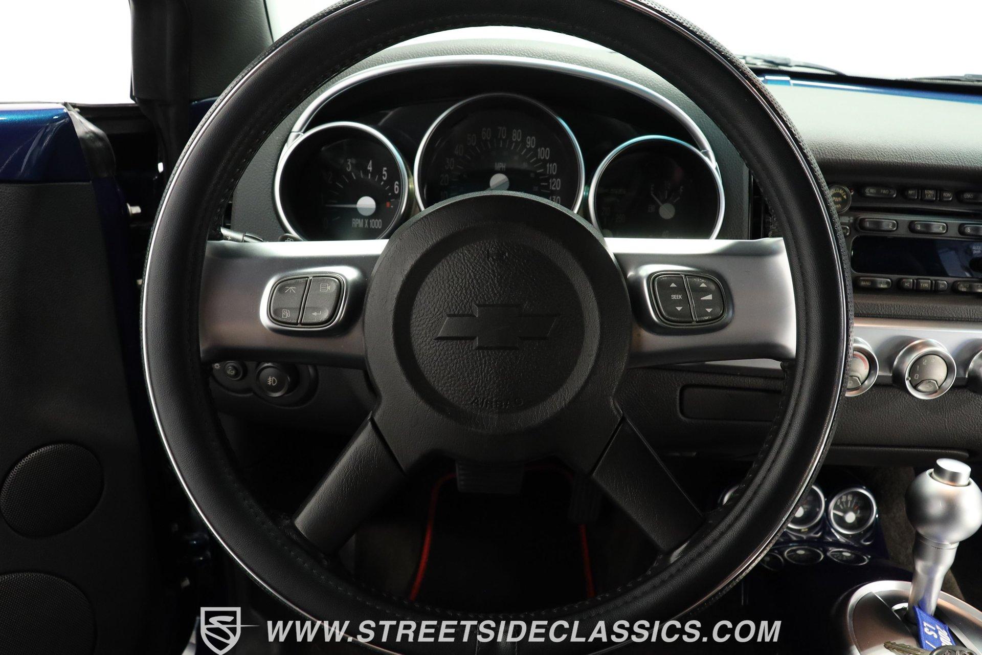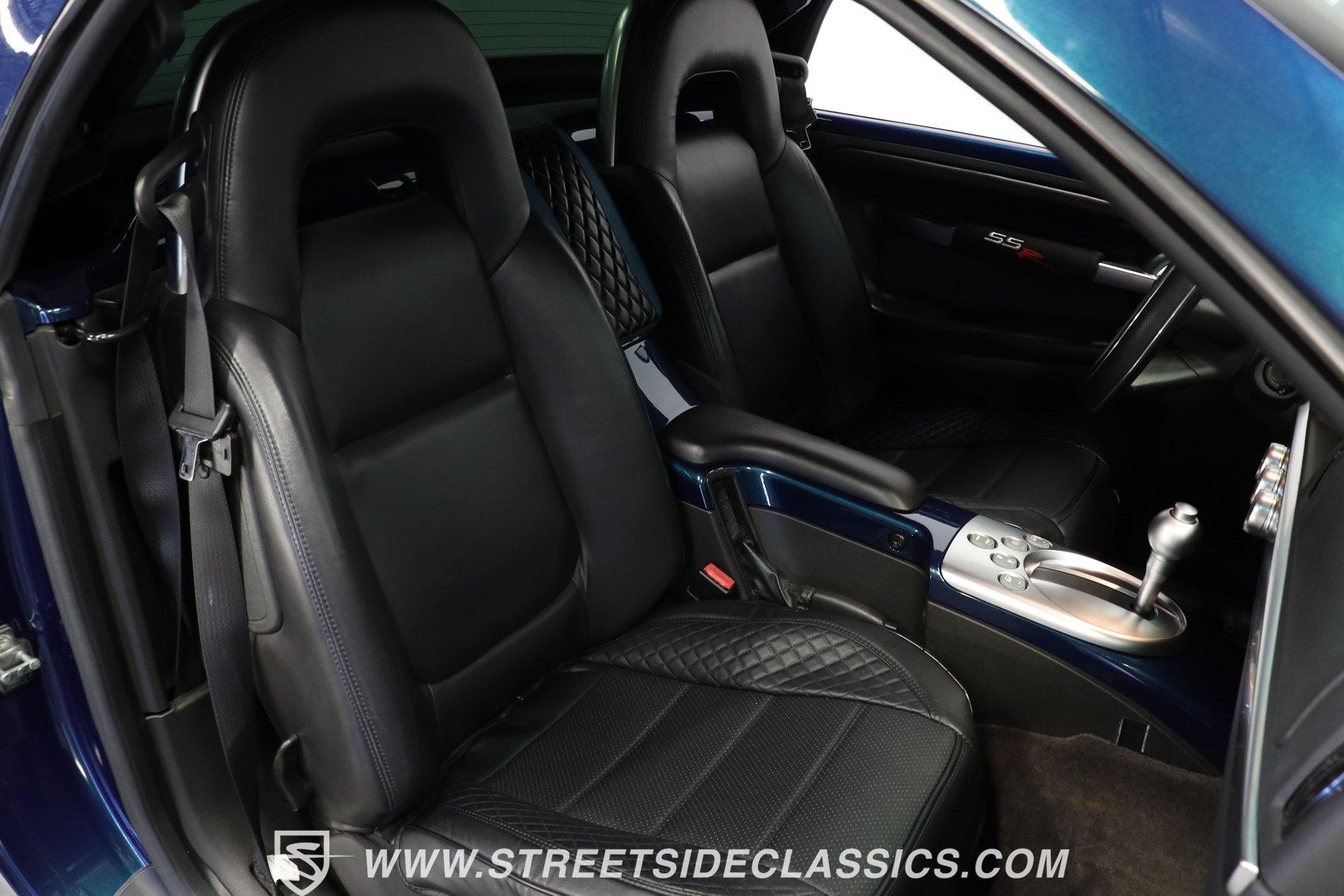 If you're looking for a great-looking, fun, fast, and uncommon vehicle that also happens to be relatively practical, take a look at this 2005 Chevrolet SSR. Decked out in a very rare Aqua Blur Metallic, also known as Bermuda Blue Metallic, a color which was only made for the 2005 model year, makes this late-model muscle truck one of less than 1,300 ever made. Add to that shimmering tropical vibe a front end covered in silver flame decals, complementing the SSR's retractable hardtop, and you have a car that will turn heads everywhere it goes. Inside, we find a host of modern amenities that old-school hot rods can only dream of. A stock black leather interior featuring dual power leather heated seats, power windows, locks, and mirrors, along with an AM/FM/CD head unit, creates a warm and comfortable cabin with or without the wind blowing through your hair. A power bed cover release, air-conditioning, cruise control, and a center console highlighted by a three-pod auxiliary gauge cluster all serve to make road trips of any distance overwhelmingly enjoyable. For 2005, the SSR got a big upgrade under that trick wedge-shaped hood. Gone is the 5.3-liter Vortec V-8, and in its place we find a Corvette-derived 6.0-liter LS2 V-8 engine. Thanks to a lightweight aluminum block and heads, flat-top pistons, and a healthy 10.9:1 compression ratio, this LS2 was capable of pumping out an impressive 390 horsepower and 405 pound-feet of torque when it rolled off the assembly line two decades ago. Those ponies are routed through a heavy-duty 4L60E four-speed automatic transmission before being sent out to the 3.73-geared rear end, which transmits power to the pavement via a set of big 20-inch polished five-spoke wheels shod in massive 305/35R-20 Firestone Indy 500 tires. At the same time, a smaller set of 19-inch wheels wrapped in 275/40R-19 Firestones to give this throwback pickup the perfect staggered hot rod stance. *Rare Aqua Blur Metallic *Less Than 1300 Made *Flame Hood Decals *Retractable Hardtop *Short Bed *LS2 V8 *4L60E Four Speed Auto *3.73 Rear *Four Wheel Power Discs *Power Steering *Power Windows *Power Locks *Power Mirrors *Power Seats *Heated Seats *AC *Cruise *Owner's Manual Despite having a curb weight about a keg and a half short of 5,000 pounds, this 2005 Chevrolet SSR could run from 0-60 mph in a scant 5.5 seconds. And thanks to its body-color rear tonneau-covered bed, those kegs, or just about anything else, can fit nicely in back. While produced for only four model years, the Chevy SSR cast a brief but shining light on the autoverse, offering an incredibly unique, retro-modern muscle truck that proved "hauling" could mean more than one thing. If you want to feel what it's like to sit behind the wheel of a V-8-powered droptop truck, then don't wait another second. Call today! We can assist you with getting an Extended Vehicle Service Plan from Freedom Warranty, which provides comprehensive coverage that can save thousands of dollars on unexpected repairs. Inquire for more details and pricing!
