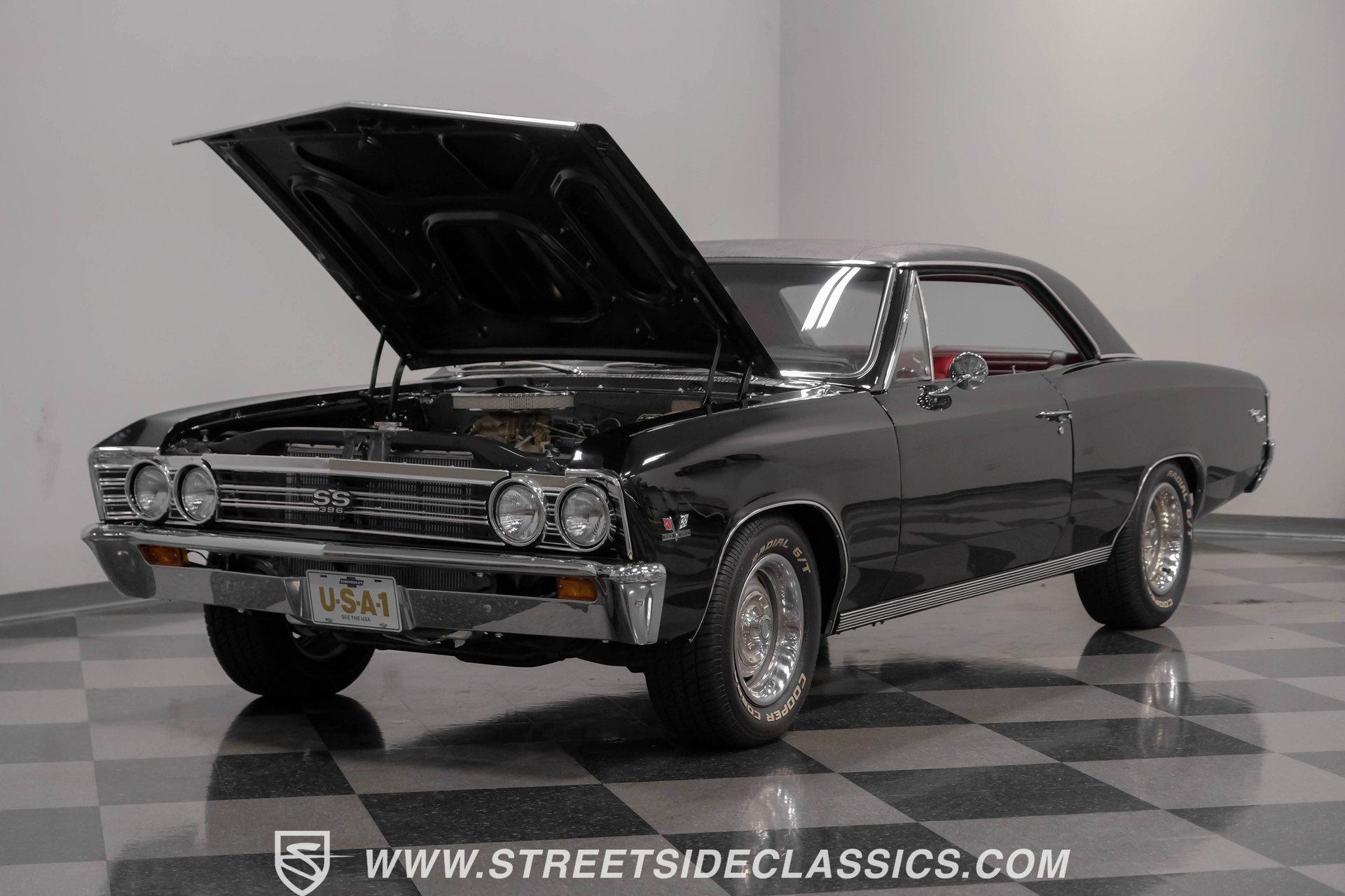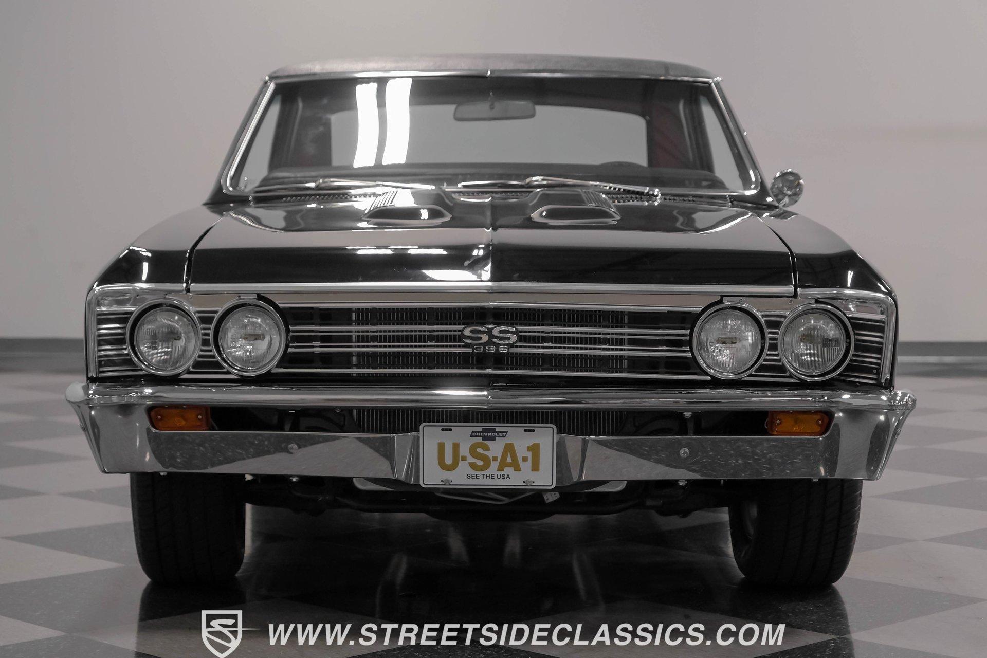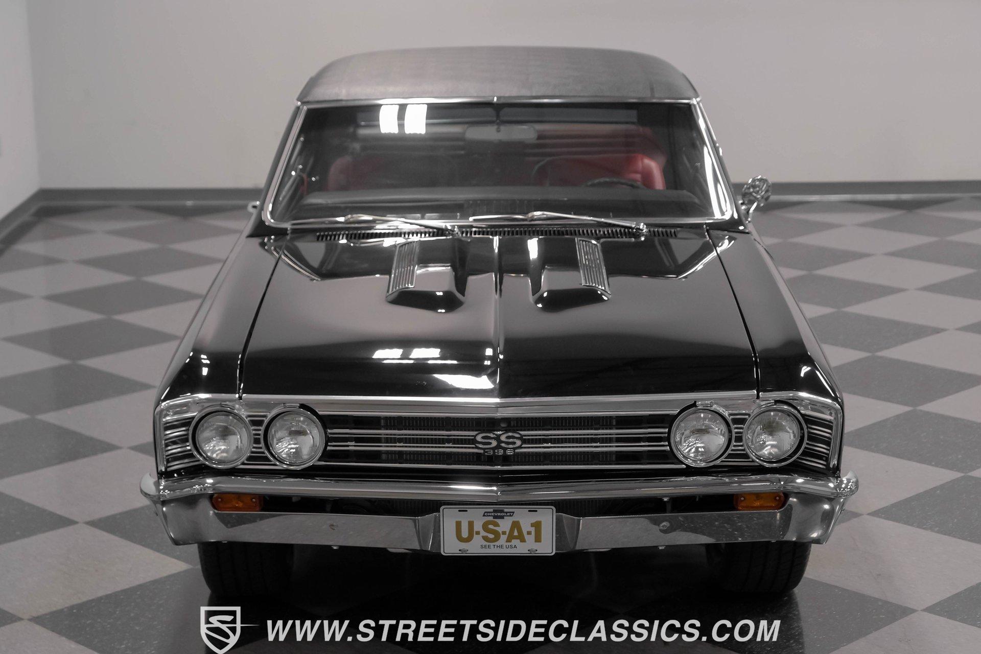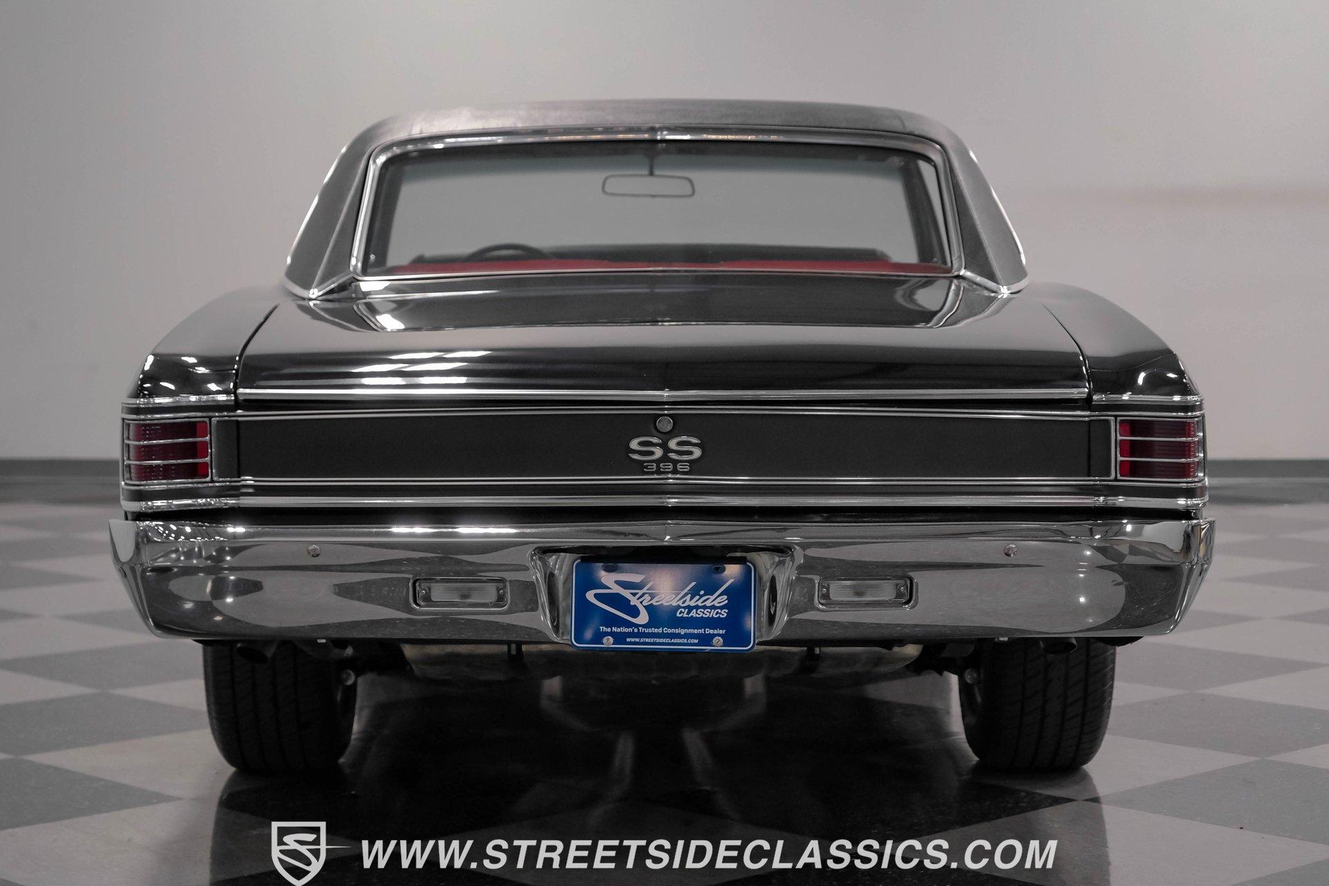 Finished in black from front to back, this 1967 Chevrolet Chevelle SS 396 Tribute looks tough and muscular. A black vinyl top adds visual dimension to the upper half while chrome bumpers provide excellent contrast. The classic 15" Rally Wheels complete the look and house 245/60R15 tires on all four corners. Clean lines and perfect proportions make this Chevelle a true example of American muscle car styling at its best. Red vinyl bucket seats create a vivid interior contrast in this Chevelle against the black dashboard. The center console houses a floor-mounted shifter along with a useful clock and additional storage. Original-style gauges monitor all vital functions from the main instrument panel. Red carpet lines the floor, adding color unity throughout the cabin. An AM/FM cassette player provides audio options while cruising, and power steering makes for easier control at all speeds. A mighty 454 V8 engine sits between the fenders of this Chevelle. The motor breathes through a Holley 4-barrel carburetor mounted on a high-rise Edelbrock intake manifold. Power flows through a TH400 3-speed automatic transmission and a sturdy 10-bolt rear end. The dual exhaust system with aftermarket mufflers gives off a proper V8 sound. Four-wheel power disc brakes with slotted and drilled rear rotors bring everything to a stop when needed. An aluminum radiator with a standard belt-driven cooling fan maintains ideal operating temperatures. HIGHLIGHTS: 454 V8 Engine 3 Speed Automatic TH400 Transmission Holley 4-Barrel Carburetor High-Rise Edelbrock Intake Power Disc Brakes With Slotted Drilled Rotors Dual Exhaust With Aftermarket Mufflers 10 Bolt Rear Axle Aluminum Radiator Black Paint Black Vinyl Top 15" Rally Wheels 245/60R15 Tires Chrome Bumpers Red Interior With Bucket Seats Floor Shifter Power Steering Center Console With Clock And Storage Original-Style Gauge Cluster AM/FM Cassette Player Red Carpet This 1967 Chevrolet Chevelle SS 396 Tribute with its classic black and red color combination stands out for all the right reasons. The big 454 V8 motor, TH400 transmission, and four-wheel disc brakes make for a solid driving package you'll want to experience firsthand. Call today! We can assist you with getting an Extended Vehicle Service Plan from Freedom Warranty, which provides comprehensive coverage that can save thousands of dollars on unexpected repairs. Inquire for more details and pricing!