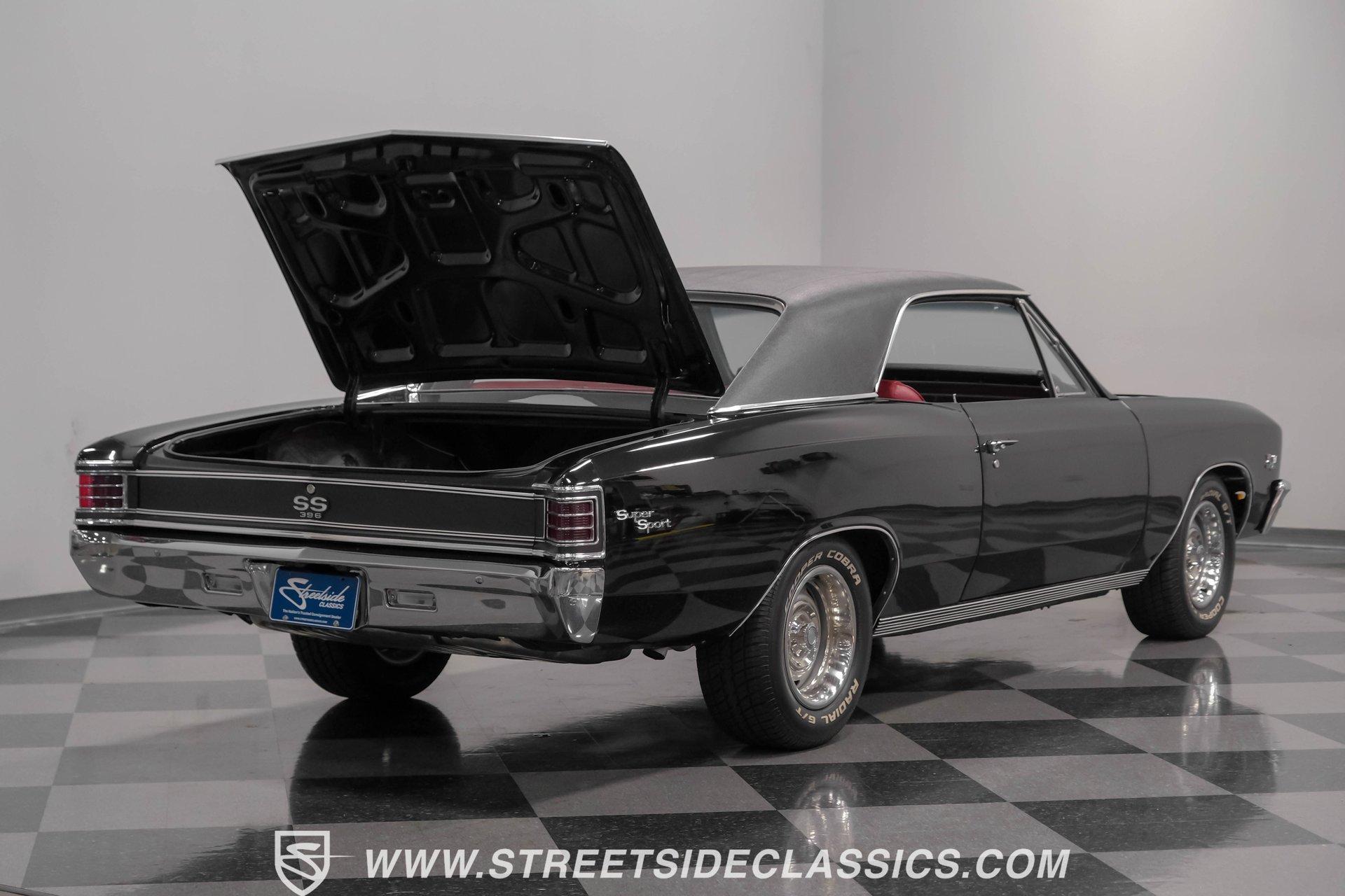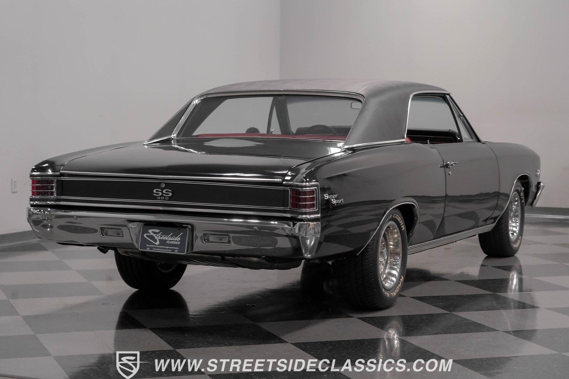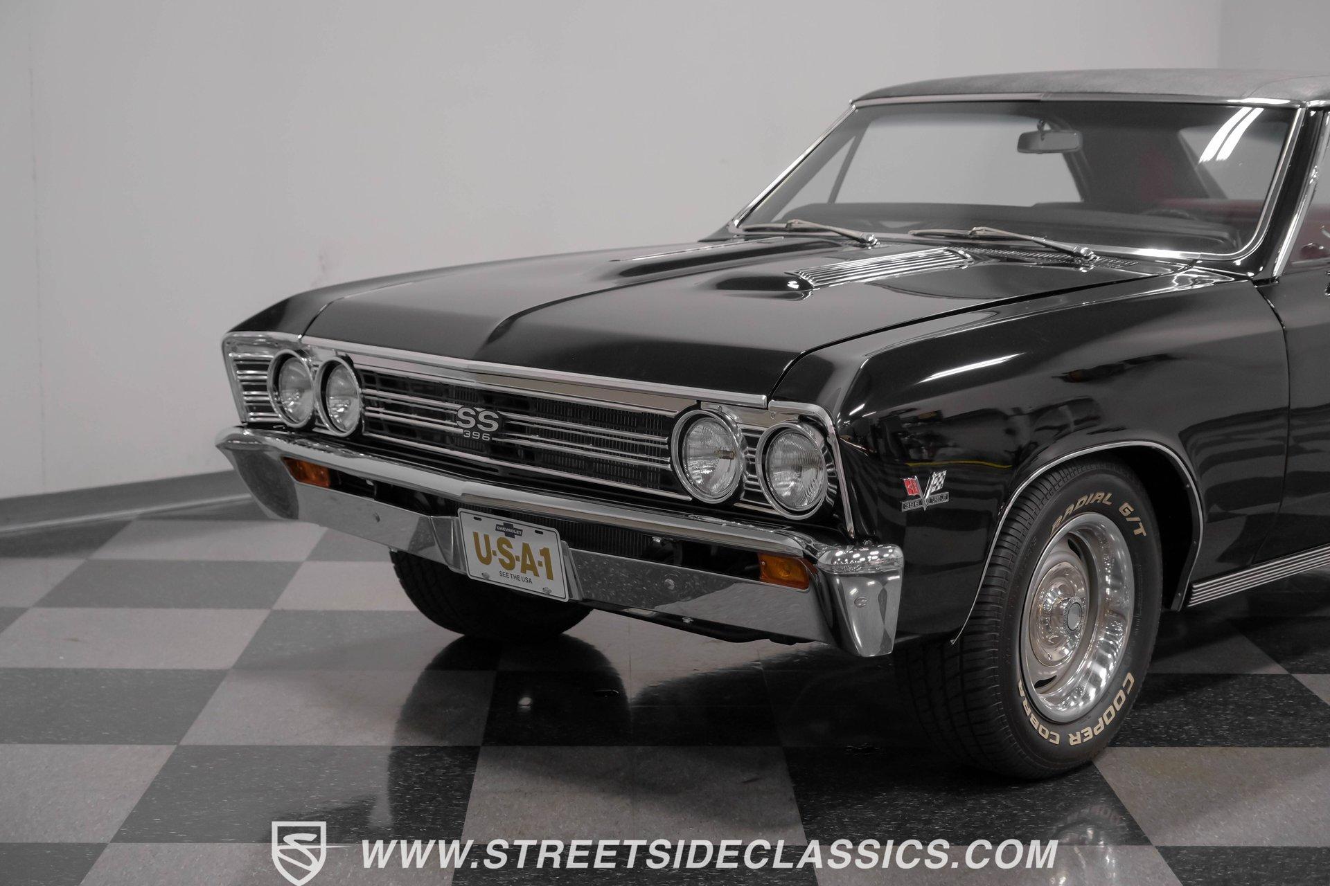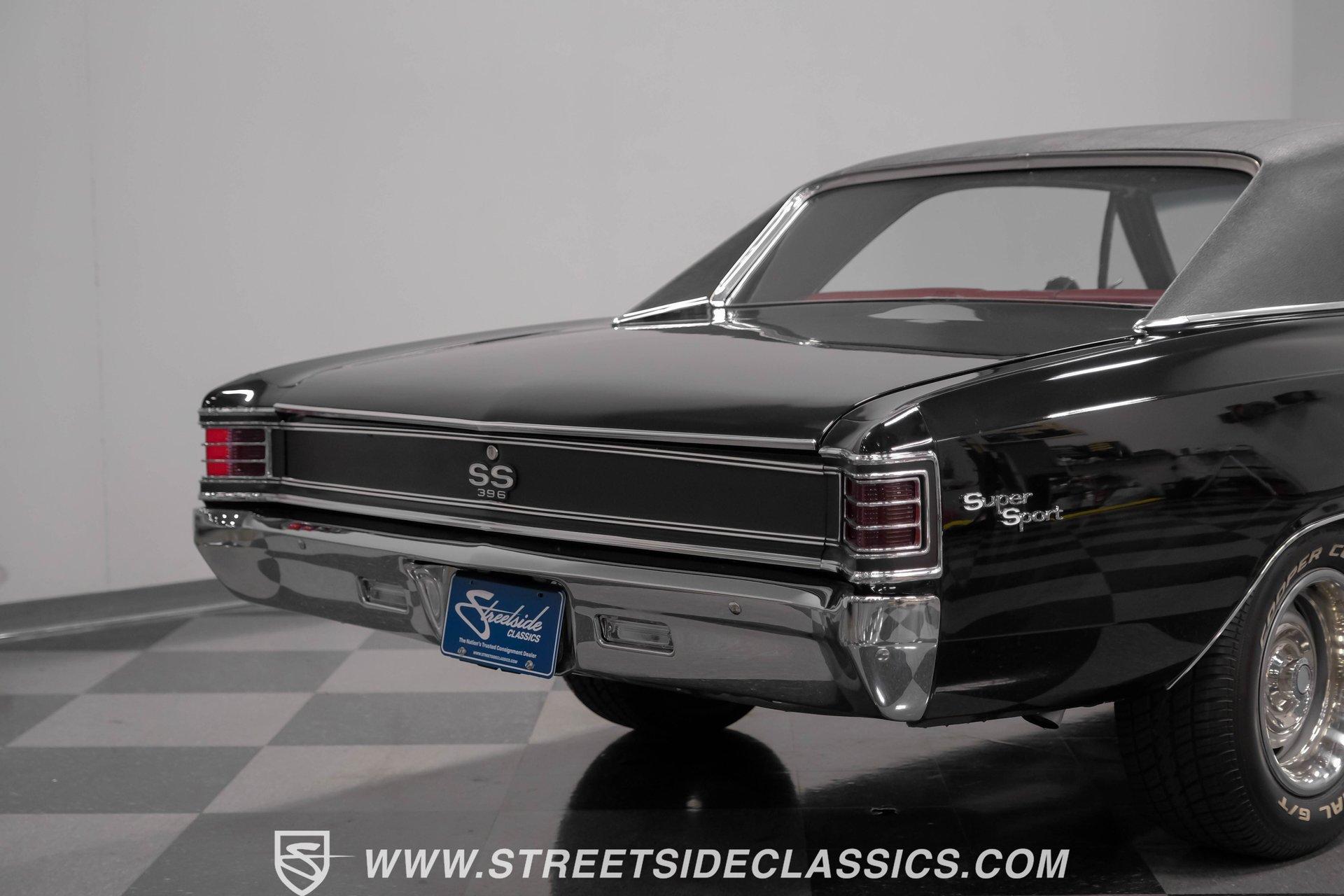 Finished in black from front to back, this 1967 Chevrolet Chevelle SS 396 Tribute looks tough and muscular. A black vinyl top adds visual dimension to the upper half while chrome bumpers provide excellent contrast. The classic 15" Rally Wheels complete the look and house 245/60R15 tires on all four corners. Clean lines and perfect proportions make this Chevelle a true example of American muscle car styling at its best. Red vinyl bucket seats create a vivid interior contrast in this Chevelle against the black dashboard. The center console houses a floor-mounted shifter along with a useful clock and additional storage. Original-style gauges monitor all vital functions from the main instrument panel. Red carpet lines the floor, adding color unity throughout the cabin. An AM/FM cassette player provides audio options while cruising, and power steering makes for easier control at all speeds. A mighty 454 V8 engine sits between the fenders of this Chevelle. The motor breathes through a Holley 4-barrel carburetor mounted on a high-rise Edelbrock intake manifold. Power flows through a TH400 3-speed automatic transmission and a sturdy 10-bolt rear end. The dual exhaust system with aftermarket mufflers gives off a proper V8 sound. Four-wheel power disc brakes with slotted and drilled rear rotors bring everything to a stop when needed. An aluminum radiator with a standard belt-driven cooling fan maintains ideal operating temperatures. HIGHLIGHTS: 454 V8 Engine 3 Speed Automatic TH400 Transmission Holley 4-Barrel Carburetor High-Rise Edelbrock Intake Power Disc Brakes With Slotted Drilled Rotors Dual Exhaust With Aftermarket Mufflers 10 Bolt Rear Axle Aluminum Radiator Black Paint Black Vinyl Top 15" Rally Wheels 245/60R15 Tires Chrome Bumpers Red Interior With Bucket Seats Floor Shifter Power Steering Center Console With Clock And Storage Original-Style Gauge Cluster AM/FM Cassette Player Red Carpet This 1967 Chevrolet Chevelle SS 396 Tribute with its classic black and red color combination stands out for all the right reasons. The big 454 V8 motor, TH400 transmission, and four-wheel disc brakes make for a solid driving package you'll want to experience firsthand. Call today! We can assist you with getting an Extended Vehicle Service Plan from Freedom Warranty, which provides comprehensive coverage that can save thousands of dollars on unexpected repairs. Inquire for more details and pricing!