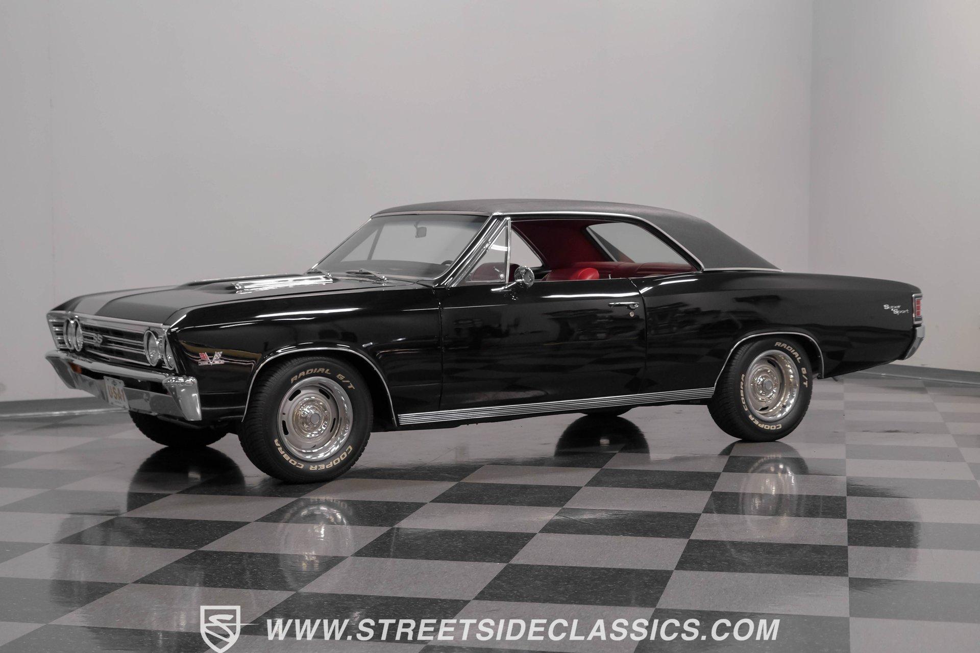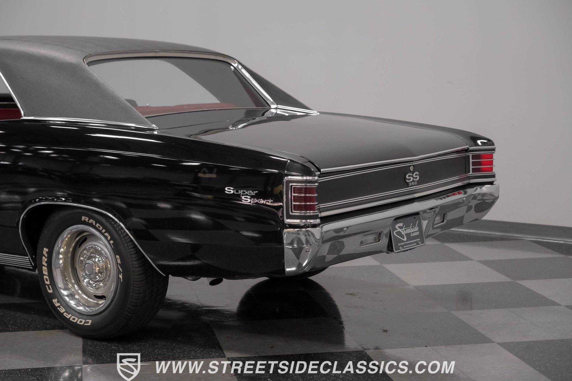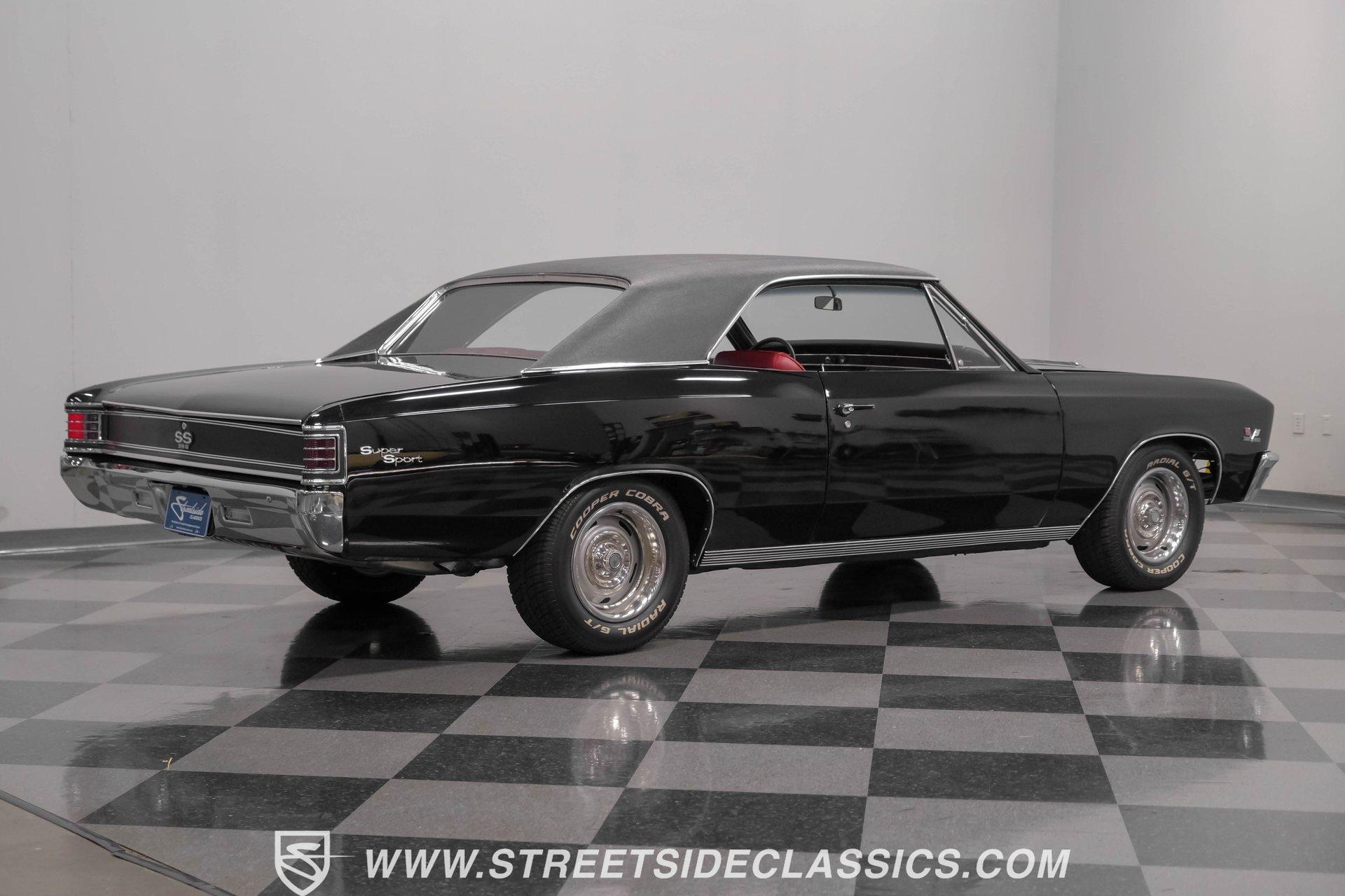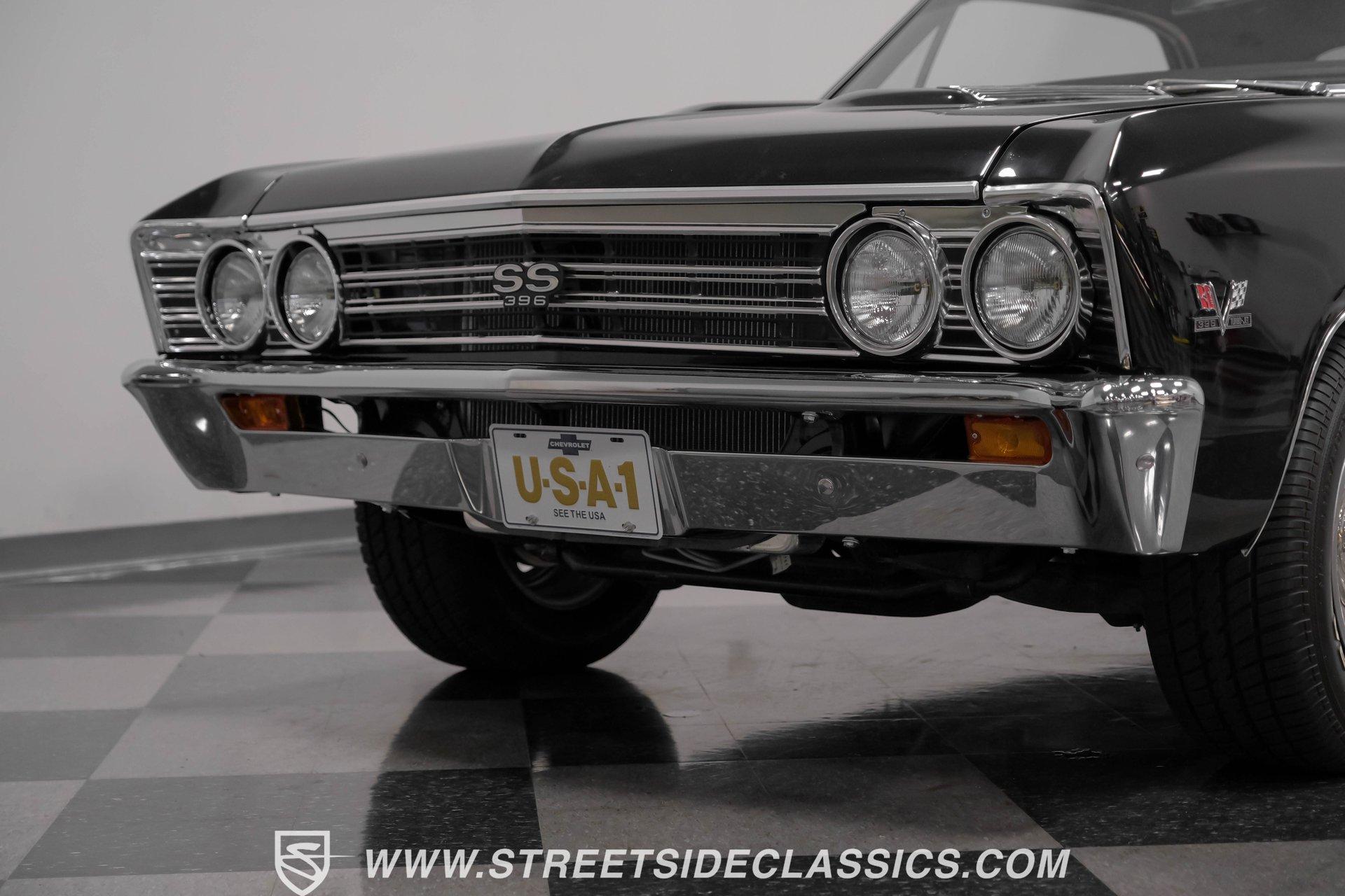 Finished in black from front to back, this 1967 Chevrolet Chevelle SS 396 Tribute looks tough and muscular. A black vinyl top adds visual dimension to the upper half while chrome bumpers provide excellent contrast. The classic 15" Rally Wheels complete the look and house 245/60R15 tires on all four corners. Clean lines and perfect proportions make this Chevelle a true example of American muscle car styling at its best. Red vinyl bucket seats create a vivid interior contrast in this Chevelle against the black dashboard. The center console houses a floor-mounted shifter along with a useful clock and additional storage. Original-style gauges monitor all vital functions from the main instrument panel. Red carpet lines the floor, adding color unity throughout the cabin. An AM/FM cassette player provides audio options while cruising, and power steering makes for easier control at all speeds. A mighty 454 V8 engine sits between the fenders of this Chevelle. The motor breathes through a Holley 4-barrel carburetor mounted on a high-rise Edelbrock intake manifold. Power flows through a TH400 3-speed automatic transmission and a sturdy 10-bolt rear end. The dual exhaust system with aftermarket mufflers gives off a proper V8 sound. Four-wheel power disc brakes with slotted and drilled rear rotors bring everything to a stop when needed. An aluminum radiator with a standard belt-driven cooling fan maintains ideal operating temperatures. HIGHLIGHTS: 454 V8 Engine 3 Speed Automatic TH400 Transmission Holley 4-Barrel Carburetor High-Rise Edelbrock Intake Power Disc Brakes With Slotted Drilled Rotors Dual Exhaust With Aftermarket Mufflers 10 Bolt Rear Axle Aluminum Radiator Black Paint Black Vinyl Top 15" Rally Wheels 245/60R15 Tires Chrome Bumpers Red Interior With Bucket Seats Floor Shifter Power Steering Center Console With Clock And Storage Original-Style Gauge Cluster AM/FM Cassette Player Red Carpet This 1967 Chevrolet Chevelle SS 396 Tribute with its classic black and red color combination stands out for all the right reasons. The big 454 V8 motor, TH400 transmission, and four-wheel disc brakes make for a solid driving package you'll want to experience firsthand. Call today! We can assist you with getting an Extended Vehicle Service Plan from Freedom Warranty, which provides comprehensive coverage that can save thousands of dollars on unexpected repairs. Inquire for more details and pricing!