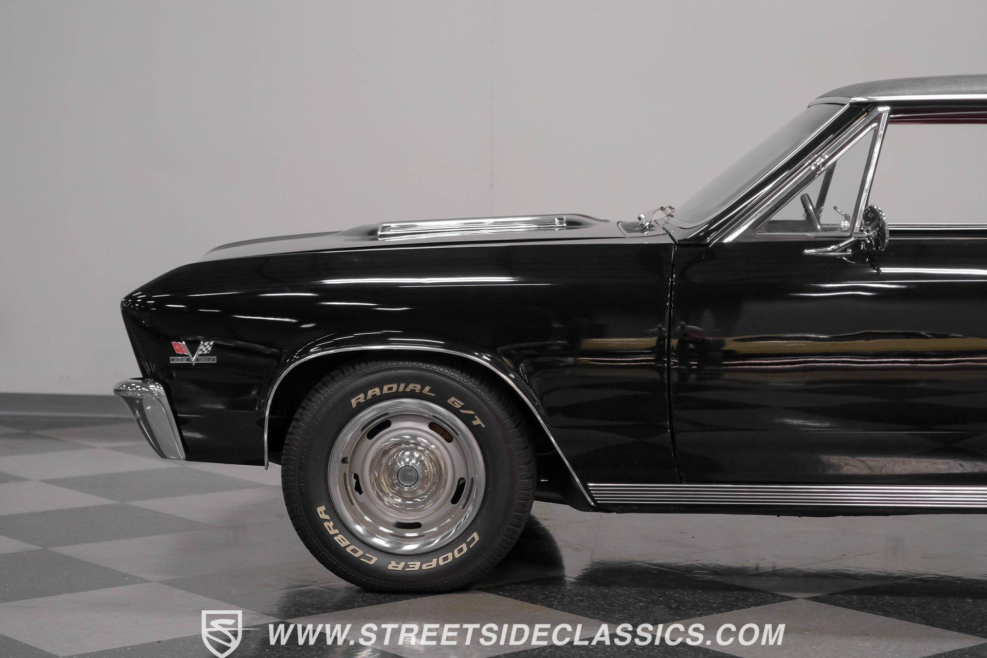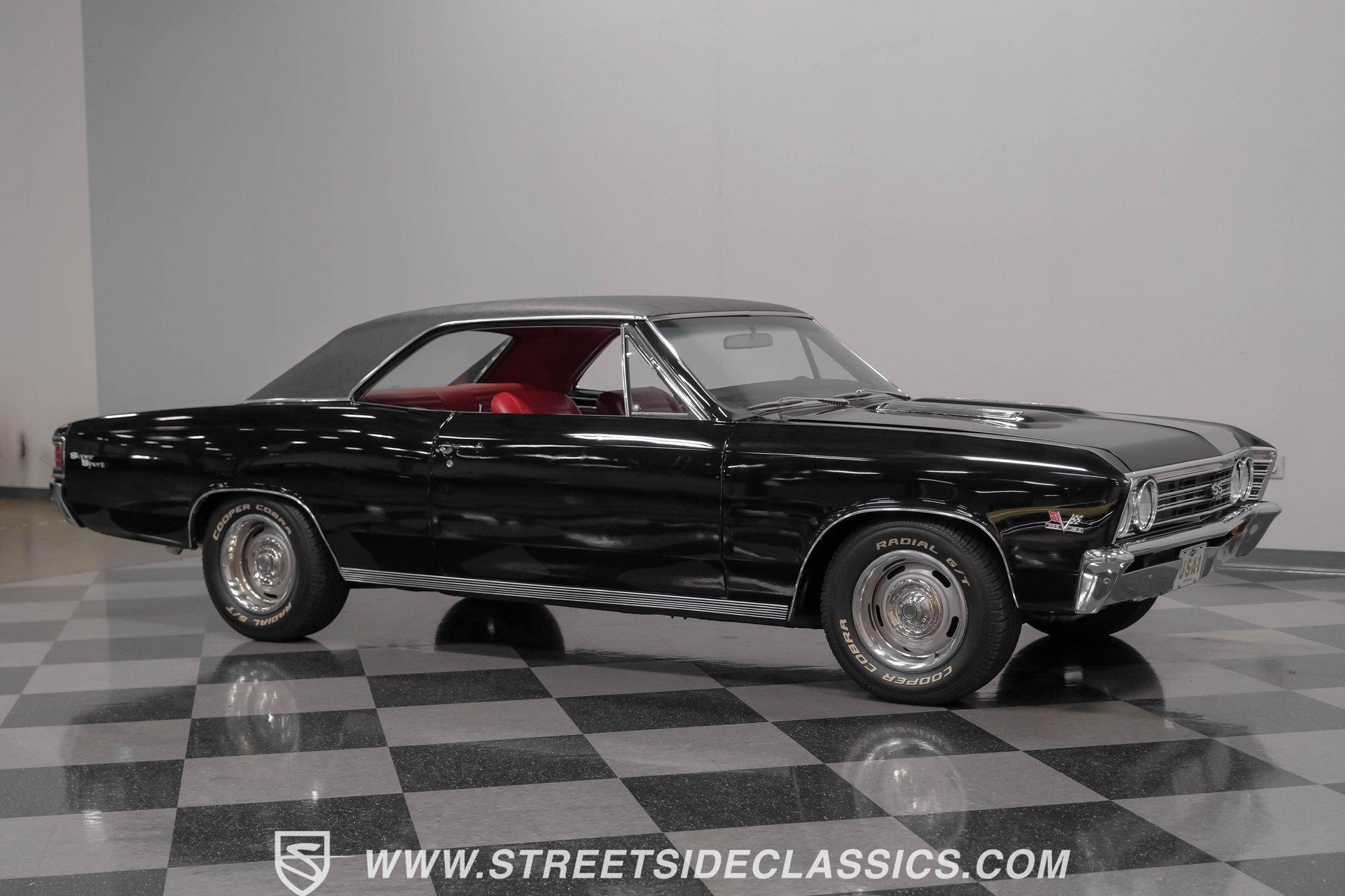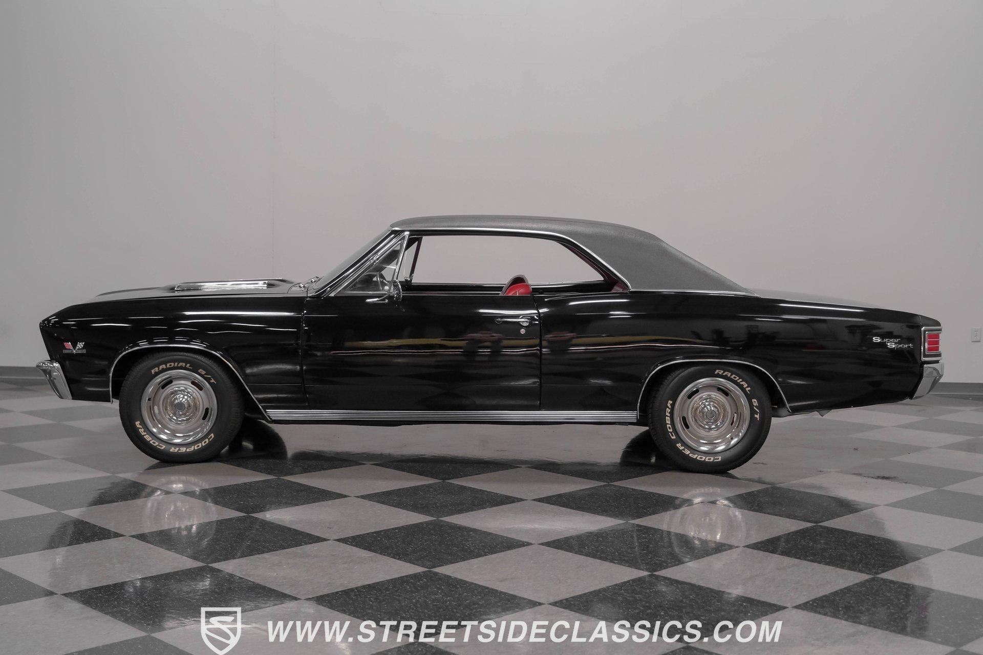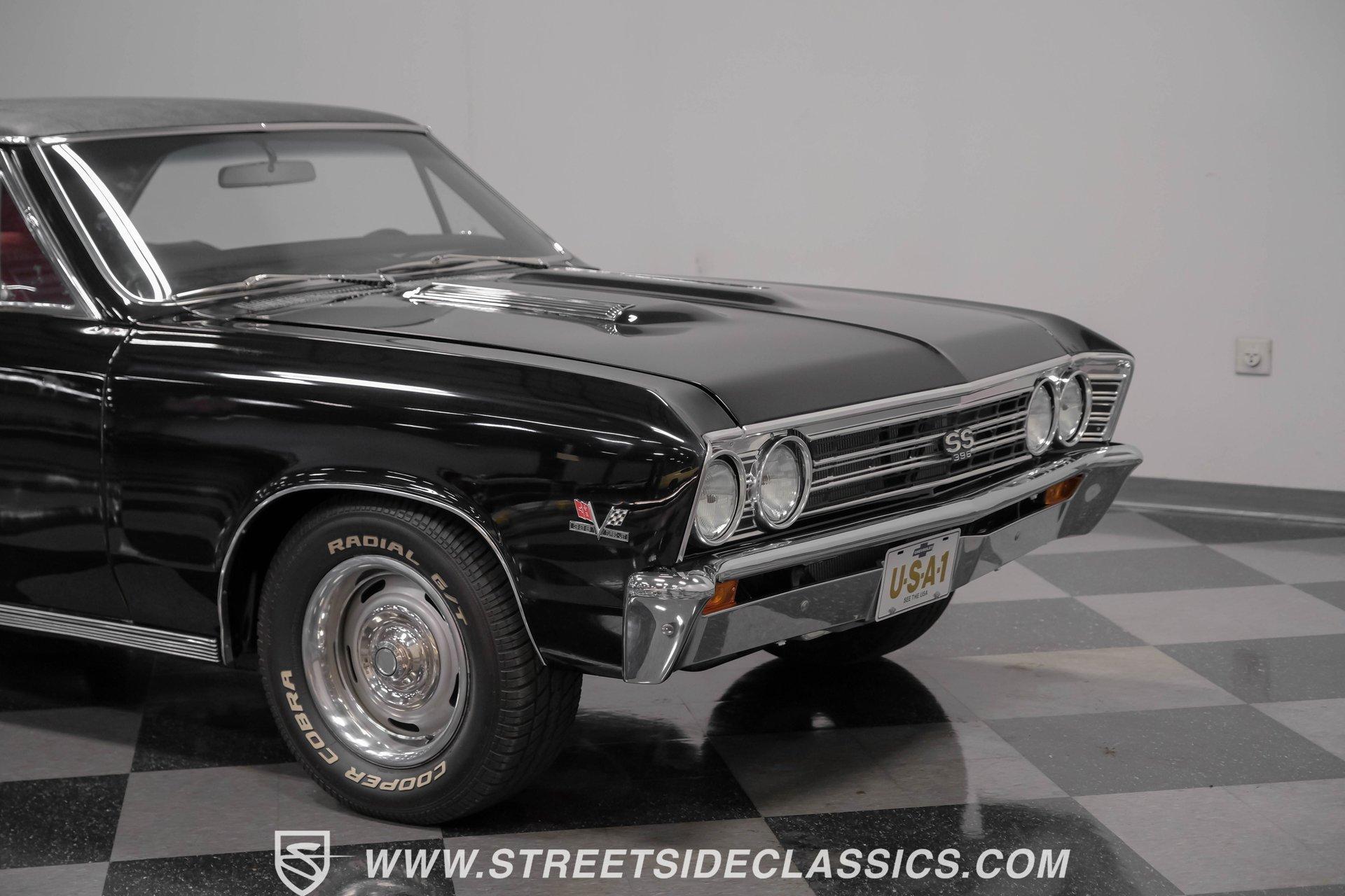 Finished in black from front to back, this 1967 Chevrolet Chevelle SS 396 Tribute looks tough and muscular. A black vinyl top adds visual dimension to the upper half while chrome bumpers provide excellent contrast. The classic 15" Rally Wheels complete the look and house 245/60R15 tires on all four corners. Clean lines and perfect proportions make this Chevelle a true example of American muscle car styling at its best. Red vinyl bucket seats create a vivid interior contrast in this Chevelle against the black dashboard. The center console houses a floor-mounted shifter along with a useful clock and additional storage. Original-style gauges monitor all vital functions from the main instrument panel. Red carpet lines the floor, adding color unity throughout the cabin. An AM/FM cassette player provides audio options while cruising, and power steering makes for easier control at all speeds. A mighty 454 V8 engine sits between the fenders of this Chevelle. The motor breathes through a Holley 4-barrel carburetor mounted on a high-rise Edelbrock intake manifold. Power flows through a TH400 3-speed automatic transmission and a sturdy 10-bolt rear end. The dual exhaust system with aftermarket mufflers gives off a proper V8 sound. Four-wheel power disc brakes with slotted and drilled rear rotors bring everything to a stop when needed. An aluminum radiator with a standard belt-driven cooling fan maintains ideal operating temperatures. HIGHLIGHTS: 454 V8 Engine 3 Speed Automatic TH400 Transmission Holley 4-Barrel Carburetor High-Rise Edelbrock Intake Power Disc Brakes With Slotted Drilled Rotors Dual Exhaust With Aftermarket Mufflers 10 Bolt Rear Axle Aluminum Radiator Black Paint Black Vinyl Top 15" Rally Wheels 245/60R15 Tires Chrome Bumpers Red Interior With Bucket Seats Floor Shifter Power Steering Center Console With Clock And Storage Original-Style Gauge Cluster AM/FM Cassette Player Red Carpet This 1967 Chevrolet Chevelle SS 396 Tribute with its classic black and red color combination stands out for all the right reasons. The big 454 V8 motor, TH400 transmission, and four-wheel disc brakes make for a solid driving package you'll want to experience firsthand. Call today! We can assist you with getting an Extended Vehicle Service Plan from Freedom Warranty, which provides comprehensive coverage that can save thousands of dollars on unexpected repairs. Inquire for more details and pricing!