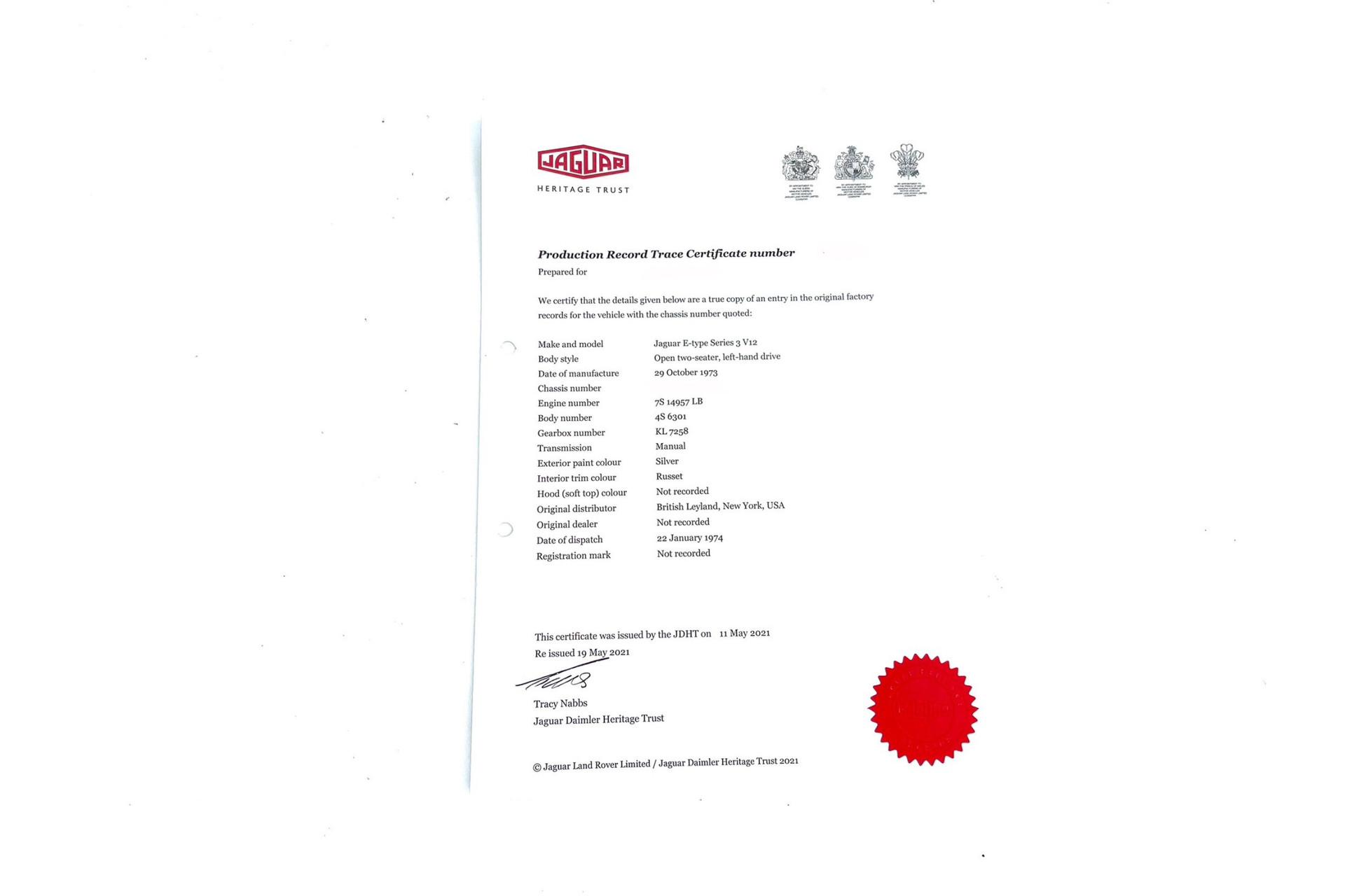 Under the bonnet sits the original matching-numbers V12 engine, a power unit that gives the E-Type its characteristic smoothness and performance. Power steering and factory air-conditioning add to the comfort, making it as pleasant to drive as it is exciting.
