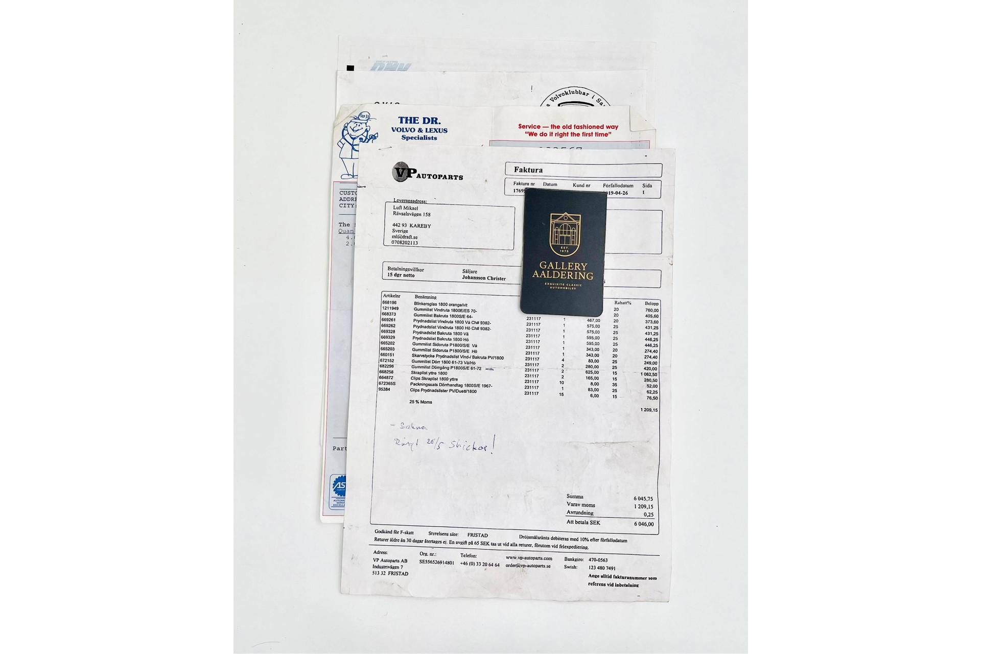The interior of this Volvo P1800E is truly fantastic. The seats have been reupholstered with high-quality beige leather, which looks stunning and is very comfortable. The carpets are also in excellent condition. The interior is otherwise authentic and beautiful, with the correct Smiths gauges and a neat dashboard that is in great shape. The extensive documentation shows that the car has always received the necessary maintenance, which can be seen in the accompanying invoices.