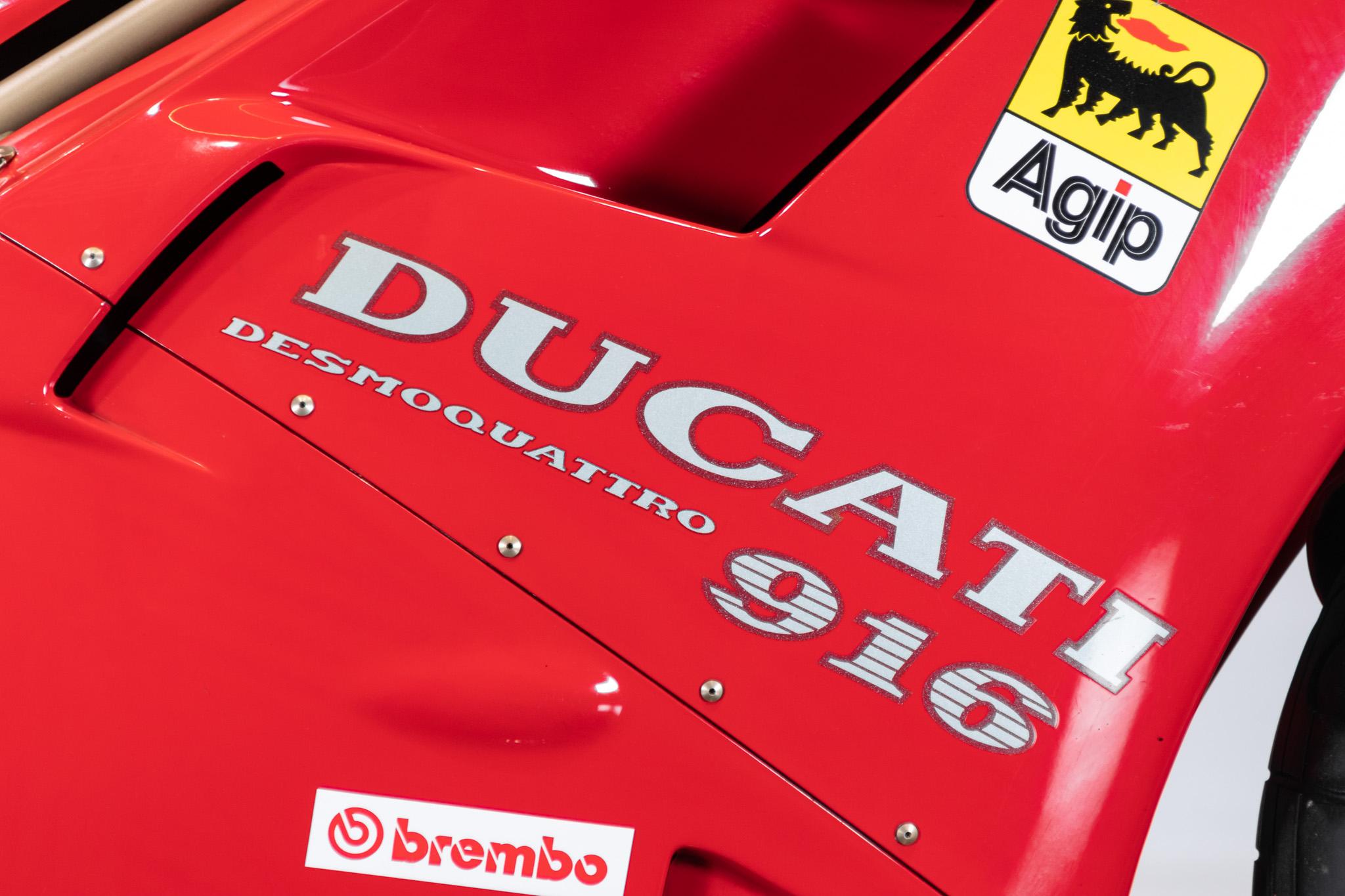 La Ducati 916 è un capolavoro di design di Tamburini: il cuore della moto rimase il bicilindrico a distribuzione desmodromica bialbero a quattro valvole per cilindro ideato da Massimo Bordi.