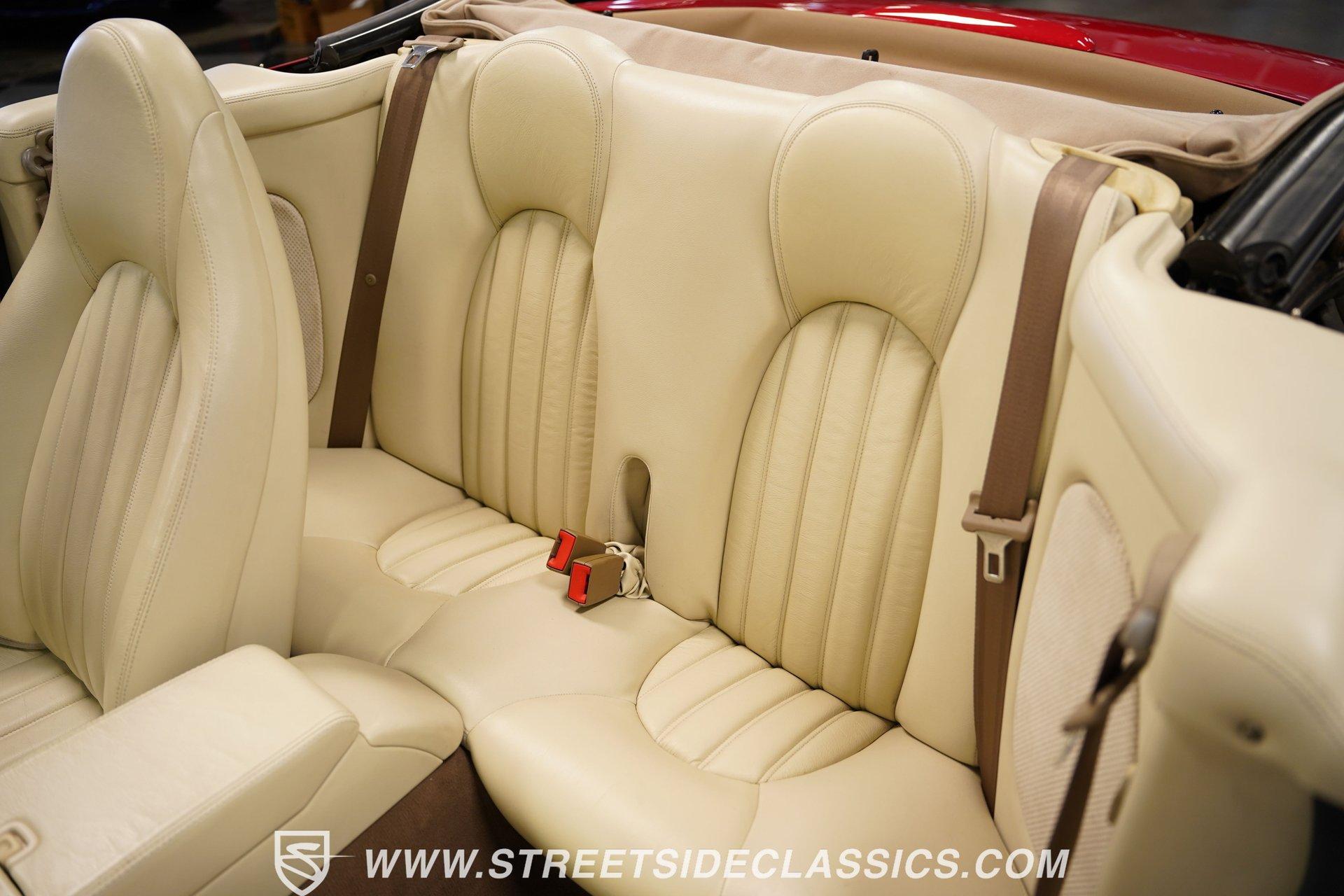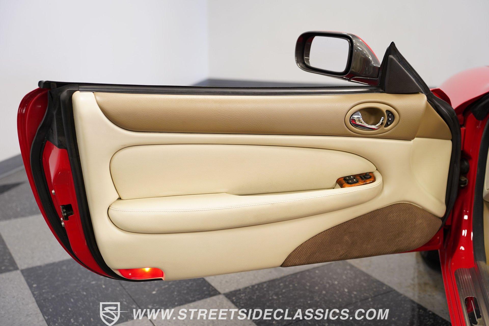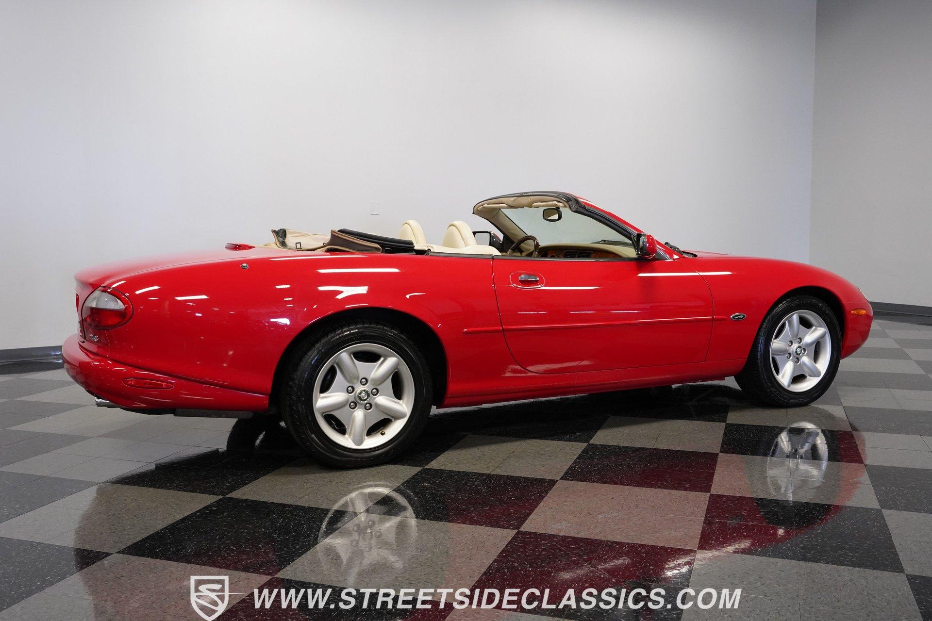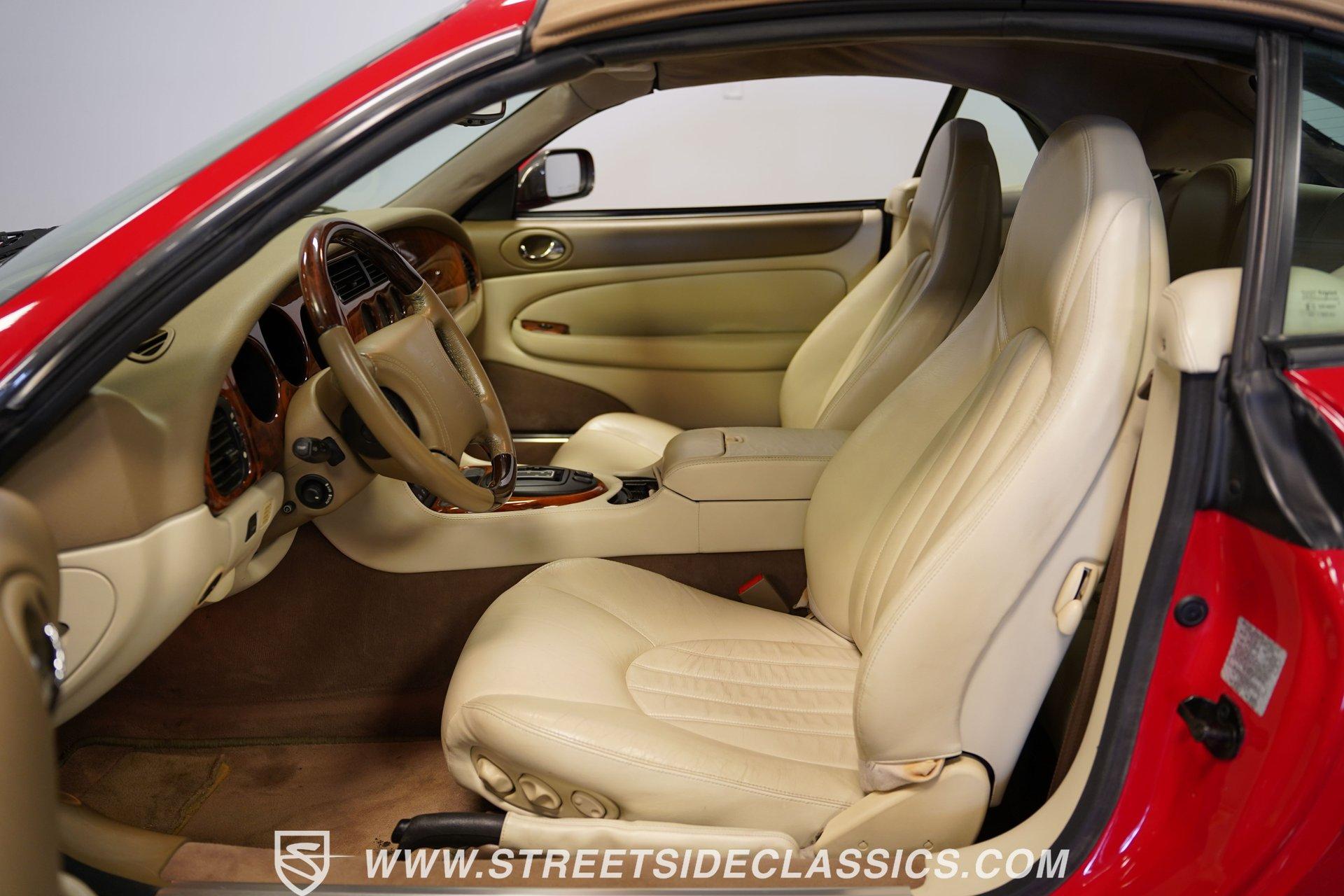 If refined elegance in a sporty drop-top package sounds like the ideal car to add as the next car to your collection, then let us introduce you to this 1999 Jaguar XK8 Convertible. Decked out in its original Phoenix Red paint, this Jag has just 85,348 actual miles on its odometer, meaning there is plenty of life left to enjoy open-air driving in this grand tourer in the lap of luxury. Inside, we find an Ivory colored leather interior. A plush set of power bucket seat keep both the driver and passenger comfortable on even the longest of road trips. Beautiful woodgrain trim on the center console, dashboard, and the four-spoke power-assisted steering wheel offers a big splash of contrast. A big 170 mph speedometer sits front and center of the driver, with a 7,000 rpm tachometer and combination fuel/temperature gauge on either side of it. A trio of auxiliary gauges, including an analog clock, sits above the push-button HVAC controls and AM/FM/Cassette head unit with remote CD changer mounted in the trunk. Under the signature front-hinged hood, we find a big 4.0-liter, 32-valve, DOHC V-8 engine. When new, this motor was capable of pumping out a healthy 290 horsepower at 6,100 rpm and matching 290 pound-feet of torque at 4,250 rpm. That power is routed through a ZF five-speed automatic transmission before being sent to the rear wheels, where a set of five-spoke alloy factory wheels featuring a Jaguar emblem center cap, shod in 245/50ZR-17 Michelin Pilot Sport A/S tires, awaits to put those ponies to the pavement. Despite weighing nearly two tons, this Jaguar was capable of sprinting from 0 to 60 mph in less than seven seconds. HIGHLIGHTS: *85,348 Actual Miles *Original Phoenix Red Paint *Power Top *Ivory Leather Interior *Power Seats *Power Windows *Power Mirrors *Power Telescopic Wheel *Power Steering *Air Conditioning *Cruise Control *Four Wheel Disc Brakes *ABS *Receipts *Owner's Manual Developed as a true grand touring sports car, the 1999 Jaguar XK8 Convertible rides on a double-wishbone independent suspension at both the front and rear, with the drop-top version receiving structural reinforcements to maintain rigidity and handling at near-coupe levels. Vented 12.1-inch rotors sit at all four corners, providing plenty of braking power to allow this XK8 to be as much fun around the twists and turns as it is on an empty on-ramp. If you've been looking for a head-turning car that is fun, comfortable, and luxuriously sporty, this is the car for you. Don't wait, call today!