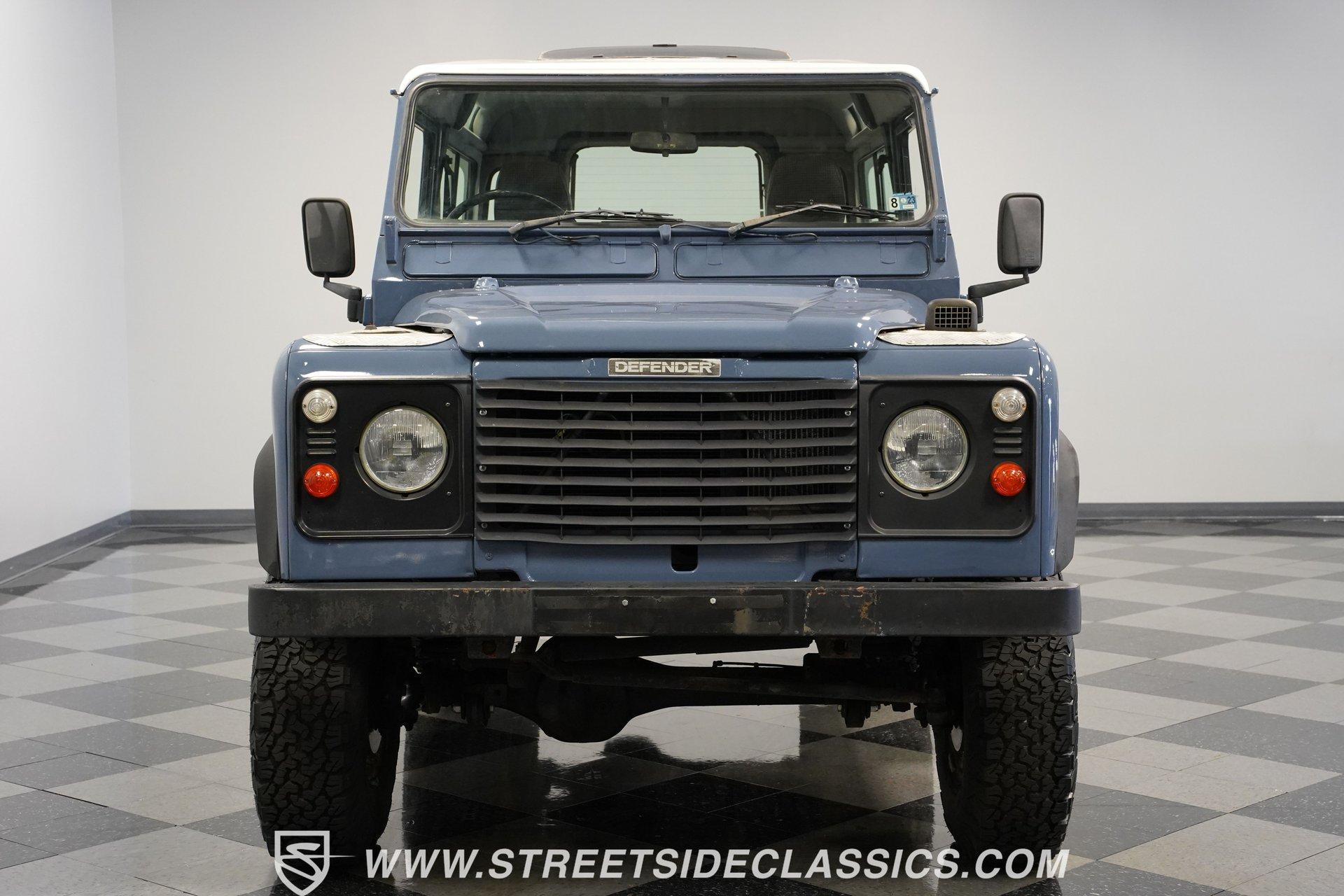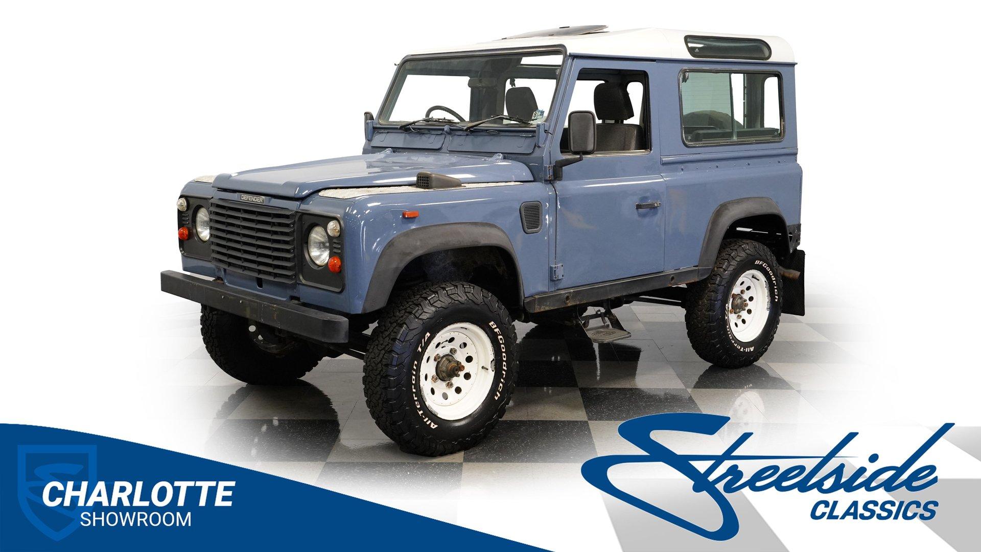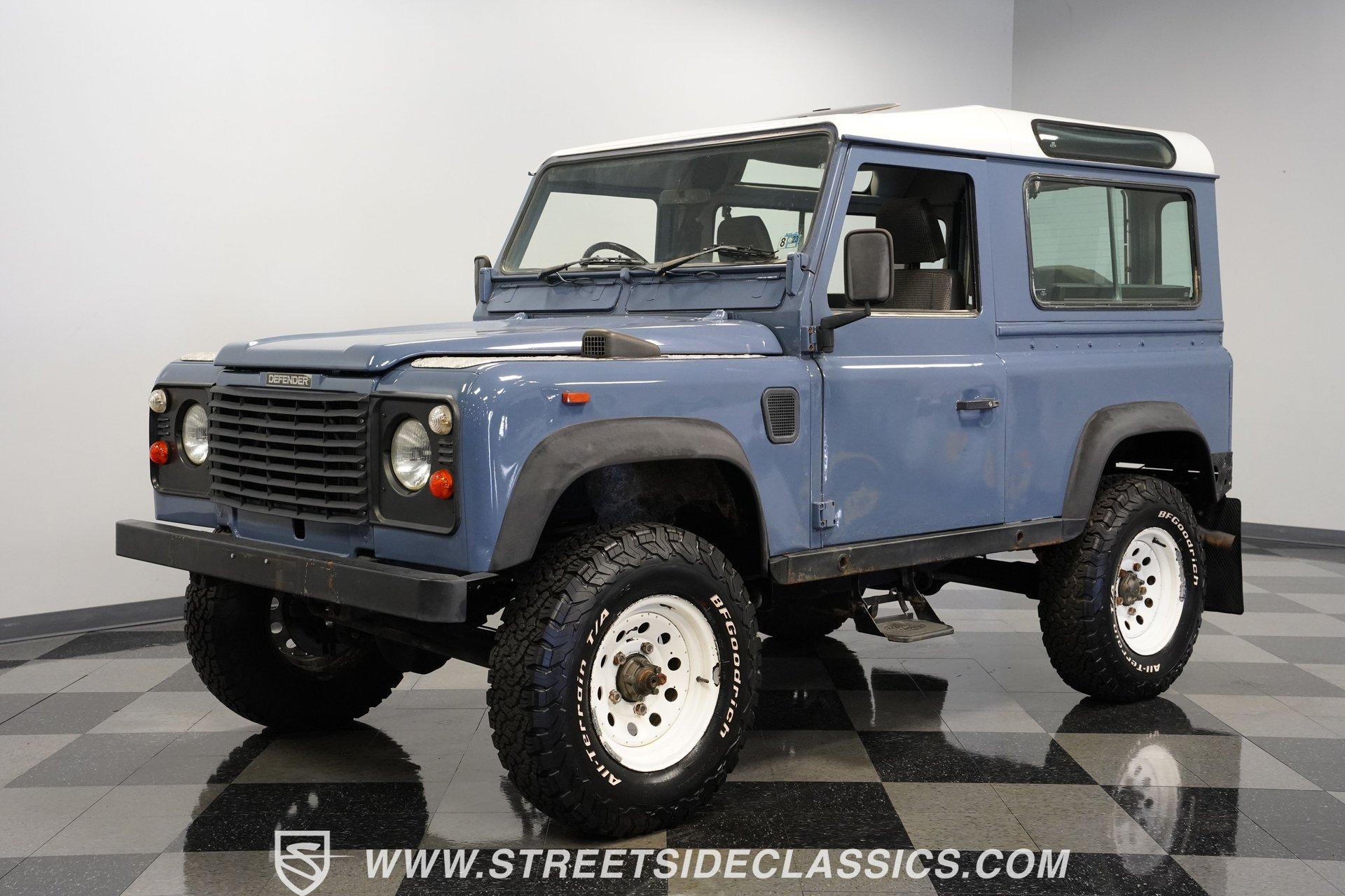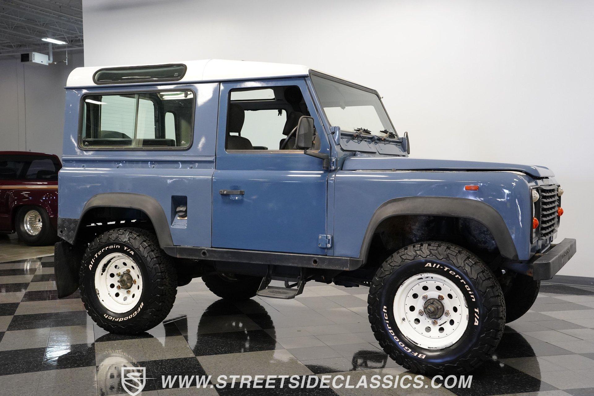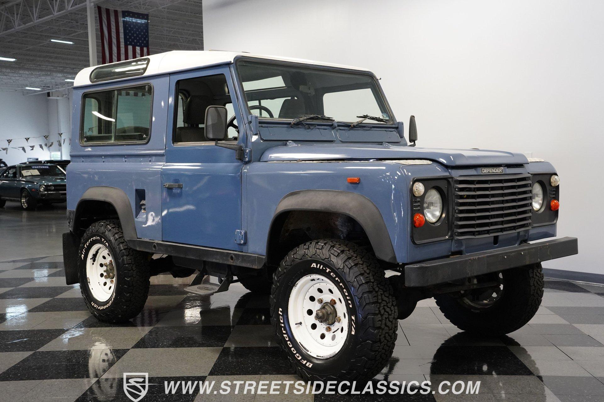 Authoring some of the most sought-after SUVs ever made, there is a long line of enthusiasts eager to get their hands on a classic Land Rover. Today, we bring you this right-hand-drive 1991 Land Rover Defender 90. Decked out in proud Arles Blue and complemented by a white top, this Defender is equipped with sidesteps, a sunroof, and the confidence to tackle an African safari. Inside, we find a utilitarian grey cloth interior featuring a pair of bucket seats separated by a center locking console. A simple, four-spoke, power-assisted steering wheel sits just ahead of a large 110 mph speedometer and smaller fuel and temperature gauges, with a litany of warning lights ready to fill up the rest of the dashboard. An upgraded Kenwood AM/FM/AUX head unit offers up satellite and Bluetooth connectivity. In back, the optional side-mounted bench seating allows for a group outing, and a wealth of cargo space that is easily accessed by the massive rear door. Under the hood, we are treated to a 2.5-liter 200 Tdi Turbo Diesel inline-four-cylinder engine. From the factory, this motor made approximately 107 horsepower at 3,900 rpm and 188 pound-feet of torque at a low 1,800 rpm. That turbocharged power is routed through a tried-and-true five-speed manual transmission before being sent out to either the rear or all four corners, where 16-inch steel wheels wait, shod in BF Goodrich All-Terrain T/A tires measuring 235/85R-16. HIGHLIGHTS: *Four Wheel Drive *Sunroof *Side Bench Rear Seats *2.5 Liter Turbo Diesel *Five Speed Manual *Solid Axle Suspension *Bilstein Shocks *Steel Wheels *BFG All Terrain Tires *Power Brakes *Four Wheel Discs *Power Steering *Kenwood Head Unit *Satellite Radio *Bluetooth *Receipts This 1991 Land Rover Defender 90 rides on a rugged solid-axle suspension at both the front and rear. Coil springs are complemented by upgraded Bilstein shocks to give this beast a little softer touch on solid roadways. Power disc brakes at all four corners inspire confidence to scrub off speed on the highway or fording a river. Classic Land Rovers like this Defender attract a special kind of enthusiast. Those who have experienced one of these vehicles even just once are usually hooked on its exceptional off-road capabilities, charismatic yet straightforward design, and engaging feedback. If you haven't experienced what it's like to sit behind the wheel of a true historical automotive icon, then this is the truck you've been waiting for. Don't wait, call today!