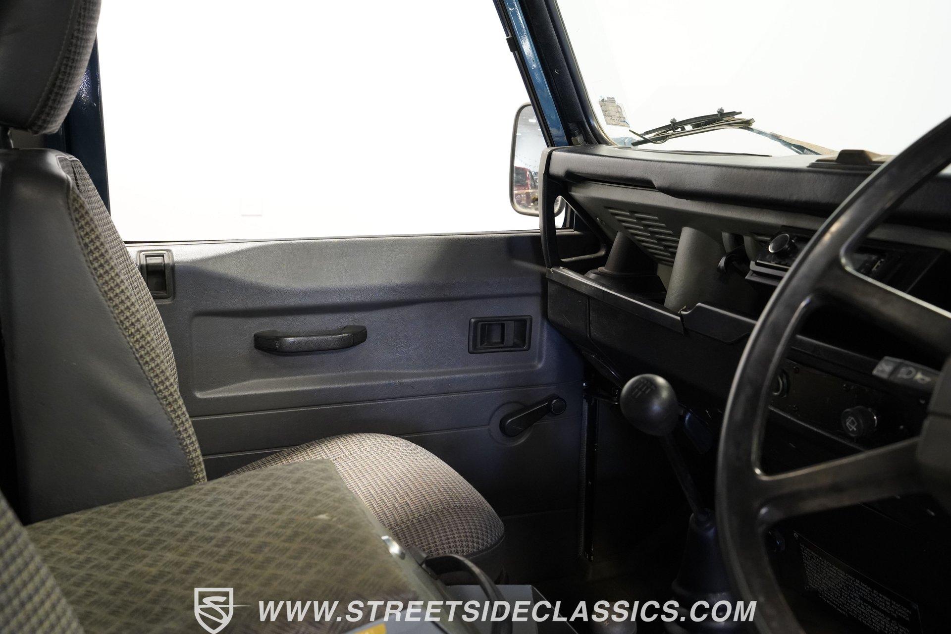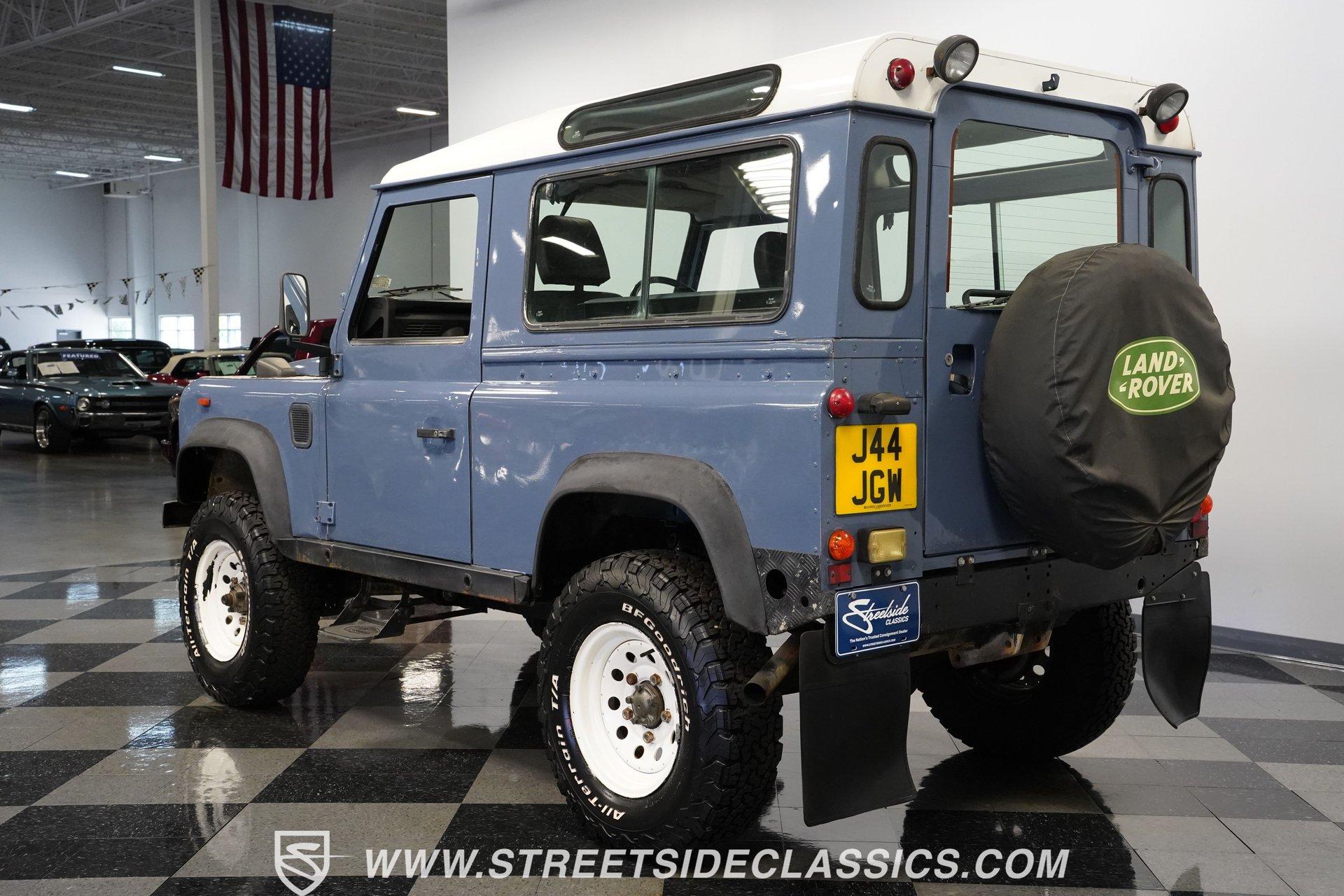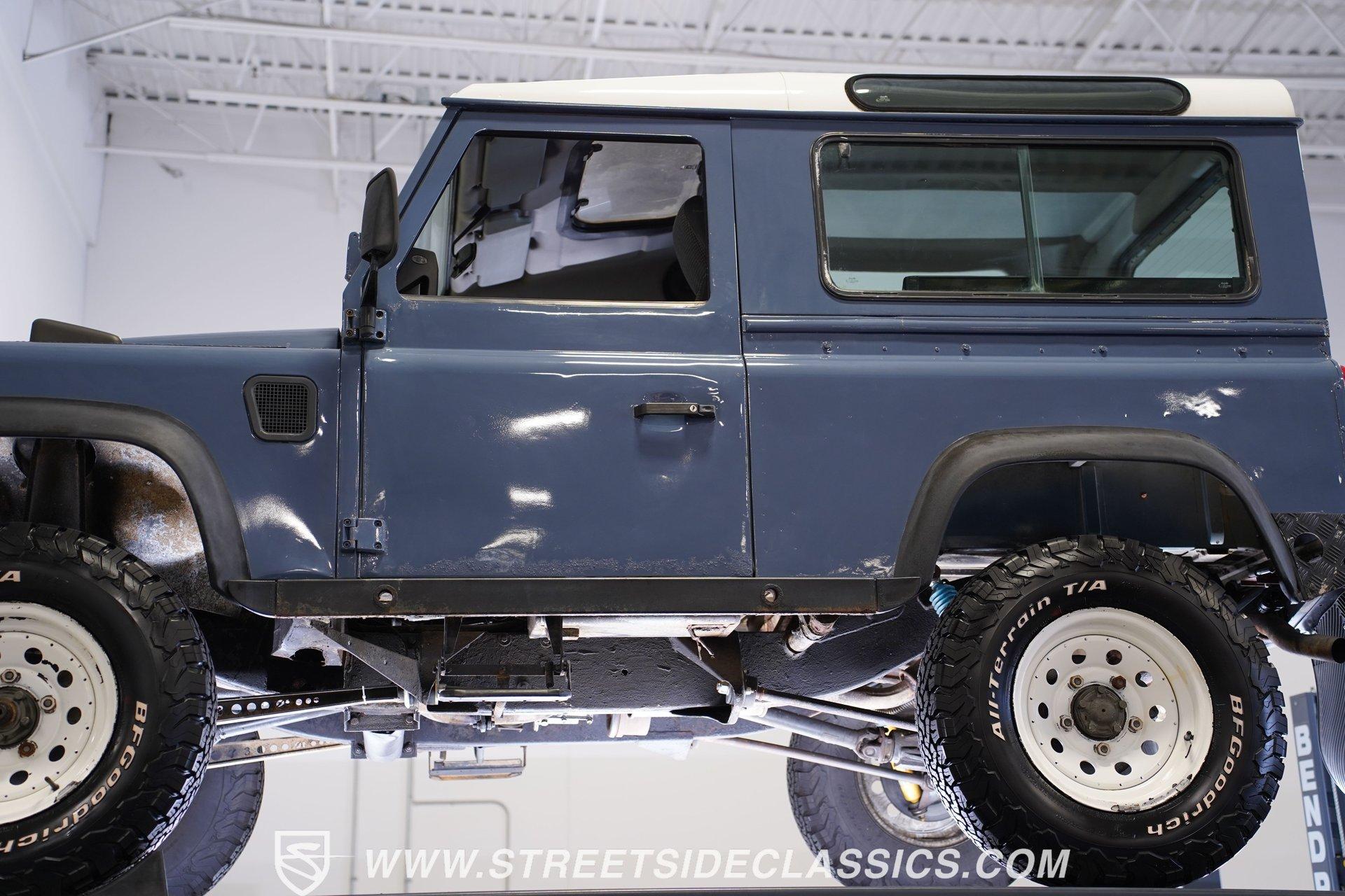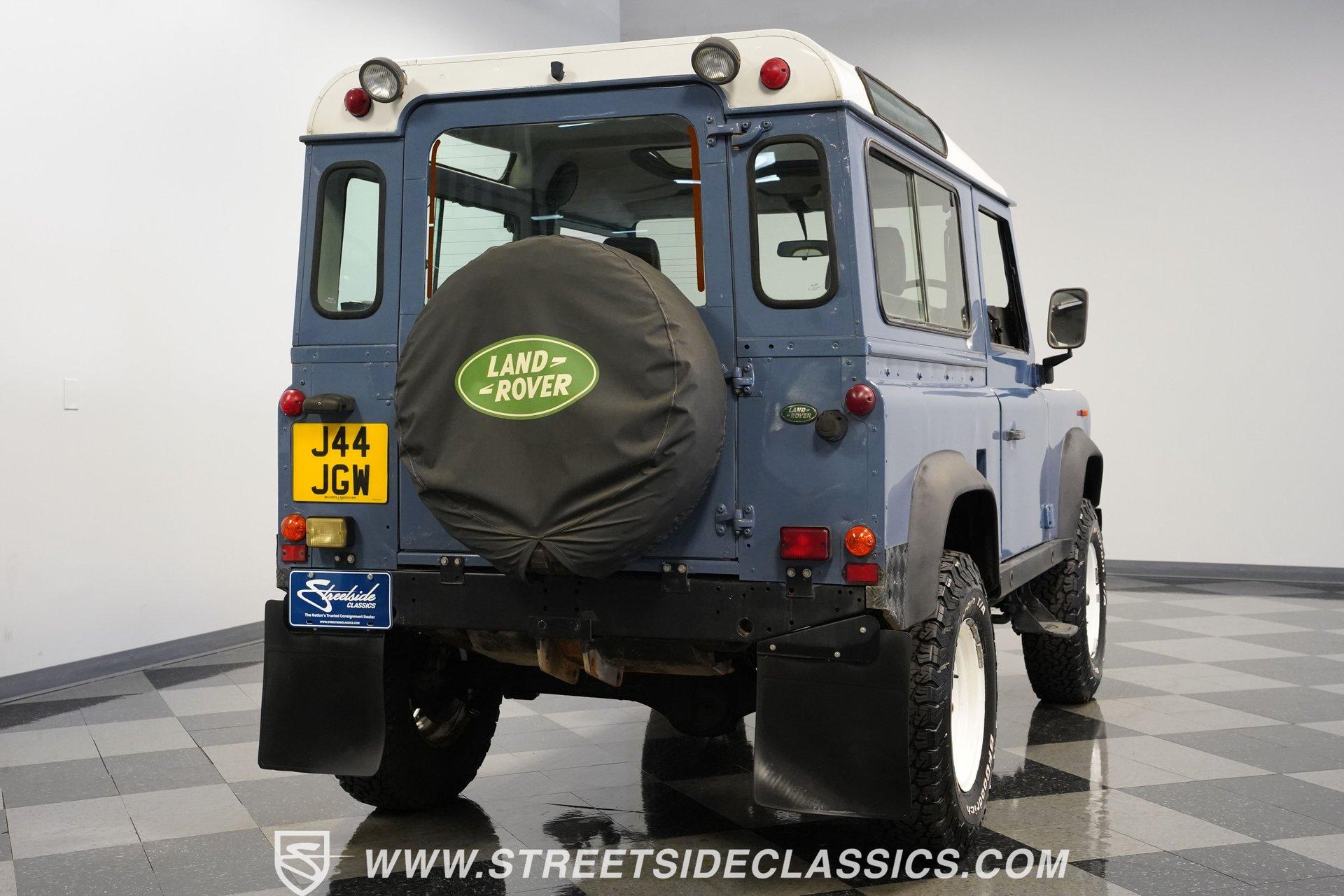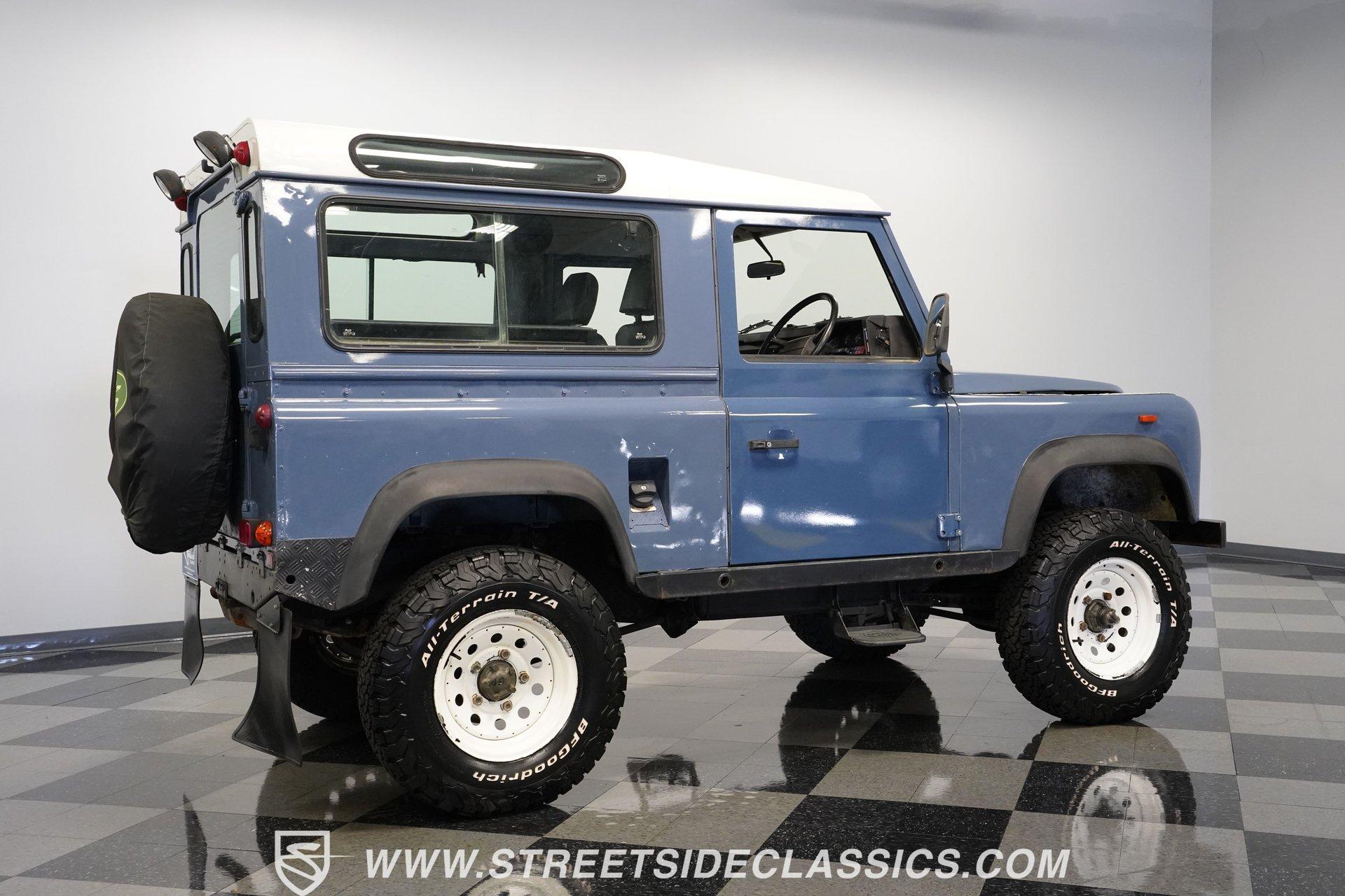 Authoring some of the most sought-after SUVs ever made, there is a long line of enthusiasts eager to get their hands on a classic Land Rover. Today, we bring you this right-hand-drive 1991 Land Rover Defender 90. Decked out in proud Arles Blue and complemented by a white top, this Defender is equipped with sidesteps, a sunroof, and the confidence to tackle an African safari. Inside, we find a utilitarian grey cloth interior featuring a pair of bucket seats separated by a center locking console. A simple, four-spoke, power-assisted steering wheel sits just ahead of a large 110 mph speedometer and smaller fuel and temperature gauges, with a litany of warning lights ready to fill up the rest of the dashboard. An upgraded Kenwood AM/FM/AUX head unit offers up satellite and Bluetooth connectivity. In back, the optional side-mounted bench seating allows for a group outing, and a wealth of cargo space that is easily accessed by the massive rear door. Under the hood, we are treated to a 2.5-liter 200 Tdi Turbo Diesel inline-four-cylinder engine. From the factory, this motor made approximately 107 horsepower at 3,900 rpm and 188 pound-feet of torque at a low 1,800 rpm. That turbocharged power is routed through a tried-and-true five-speed manual transmission before being sent out to either the rear or all four corners, where 16-inch steel wheels wait, shod in BF Goodrich All-Terrain T/A tires measuring 235/85R-16. HIGHLIGHTS: *Four Wheel Drive *Sunroof *Side Bench Rear Seats *2.5 Liter Turbo Diesel *Five Speed Manual *Solid Axle Suspension *Bilstein Shocks *Steel Wheels *BFG All Terrain Tires *Power Brakes *Four Wheel Discs *Power Steering *Kenwood Head Unit *Satellite Radio *Bluetooth *Receipts This 1991 Land Rover Defender 90 rides on a rugged solid-axle suspension at both the front and rear. Coil springs are complemented by upgraded Bilstein shocks to give this beast a little softer touch on solid roadways. Power disc brakes at all four corners inspire confidence to scrub off speed on the highway or fording a river. Classic Land Rovers like this Defender attract a special kind of enthusiast. Those who have experienced one of these vehicles even just once are usually hooked on its exceptional off-road capabilities, charismatic yet straightforward design, and engaging feedback. If you haven't experienced what it's like to sit behind the wheel of a true historical automotive icon, then this is the truck you've been waiting for. Don't wait, call today!