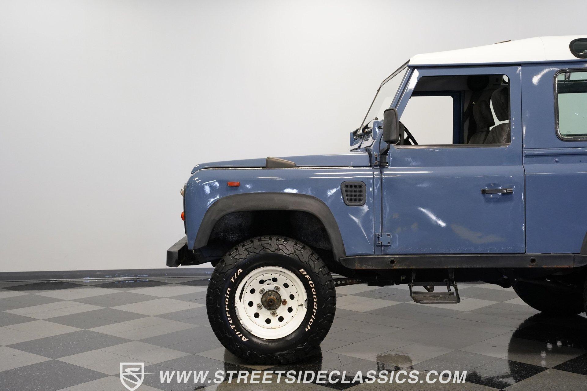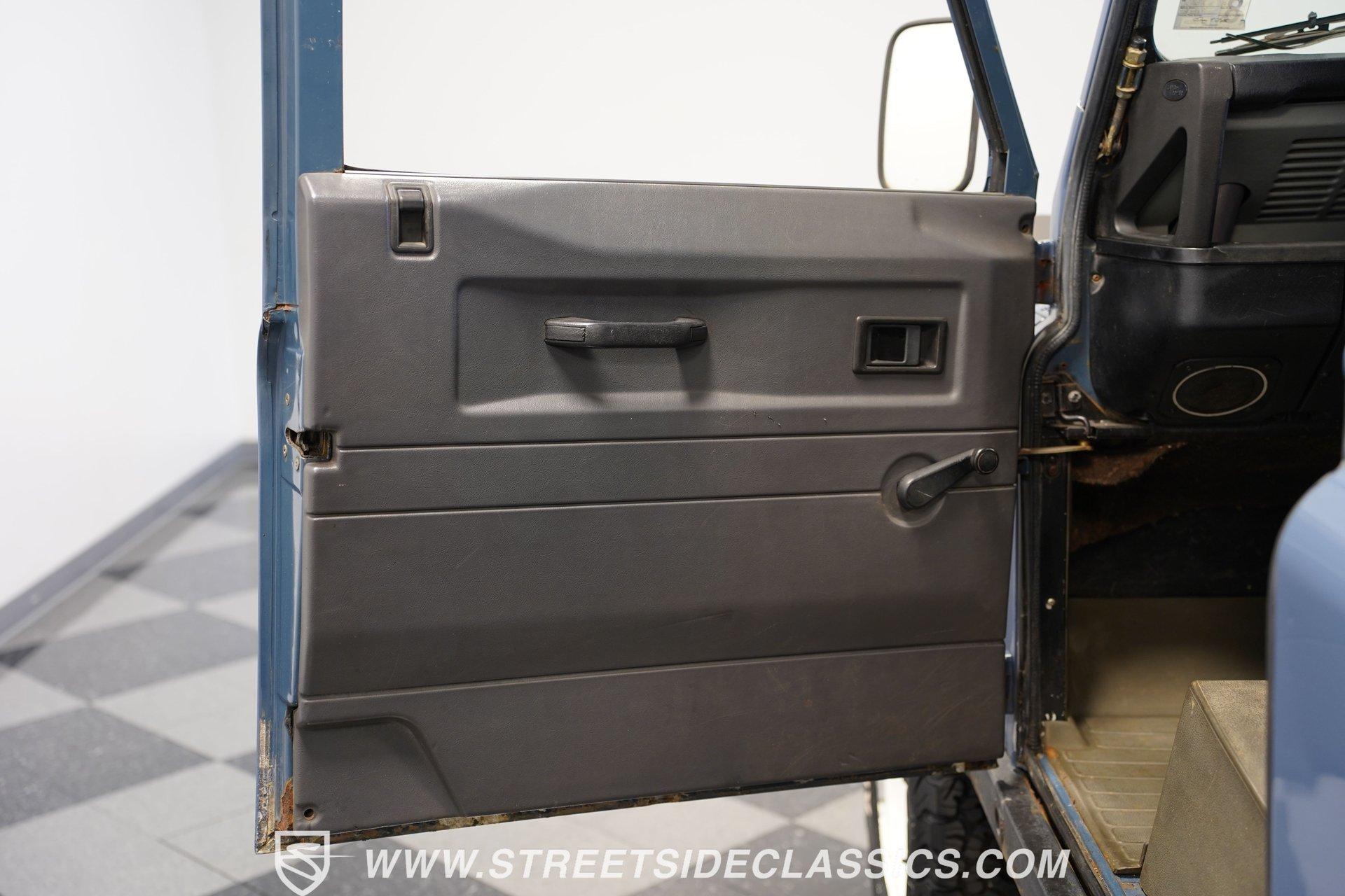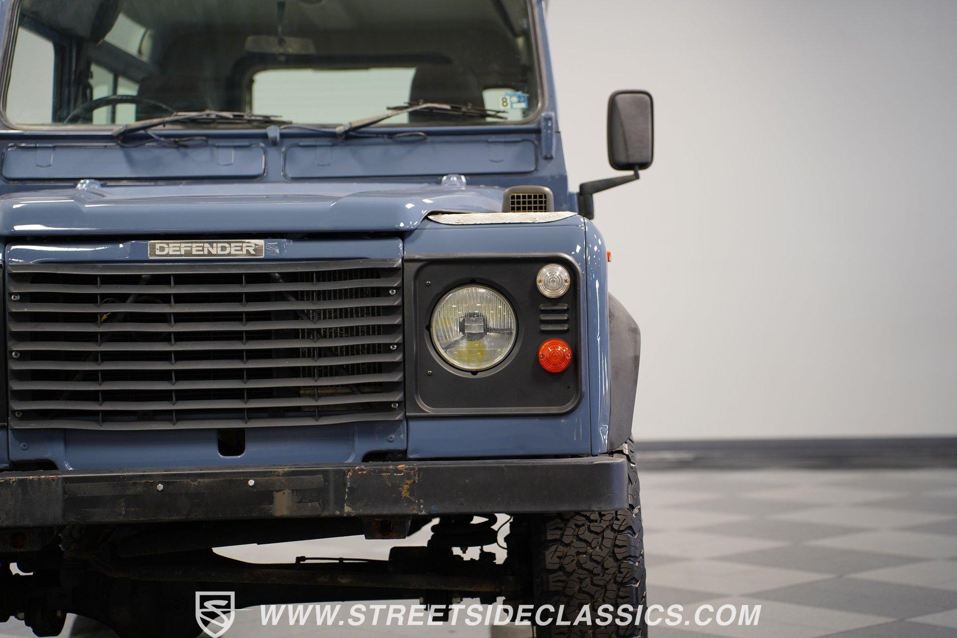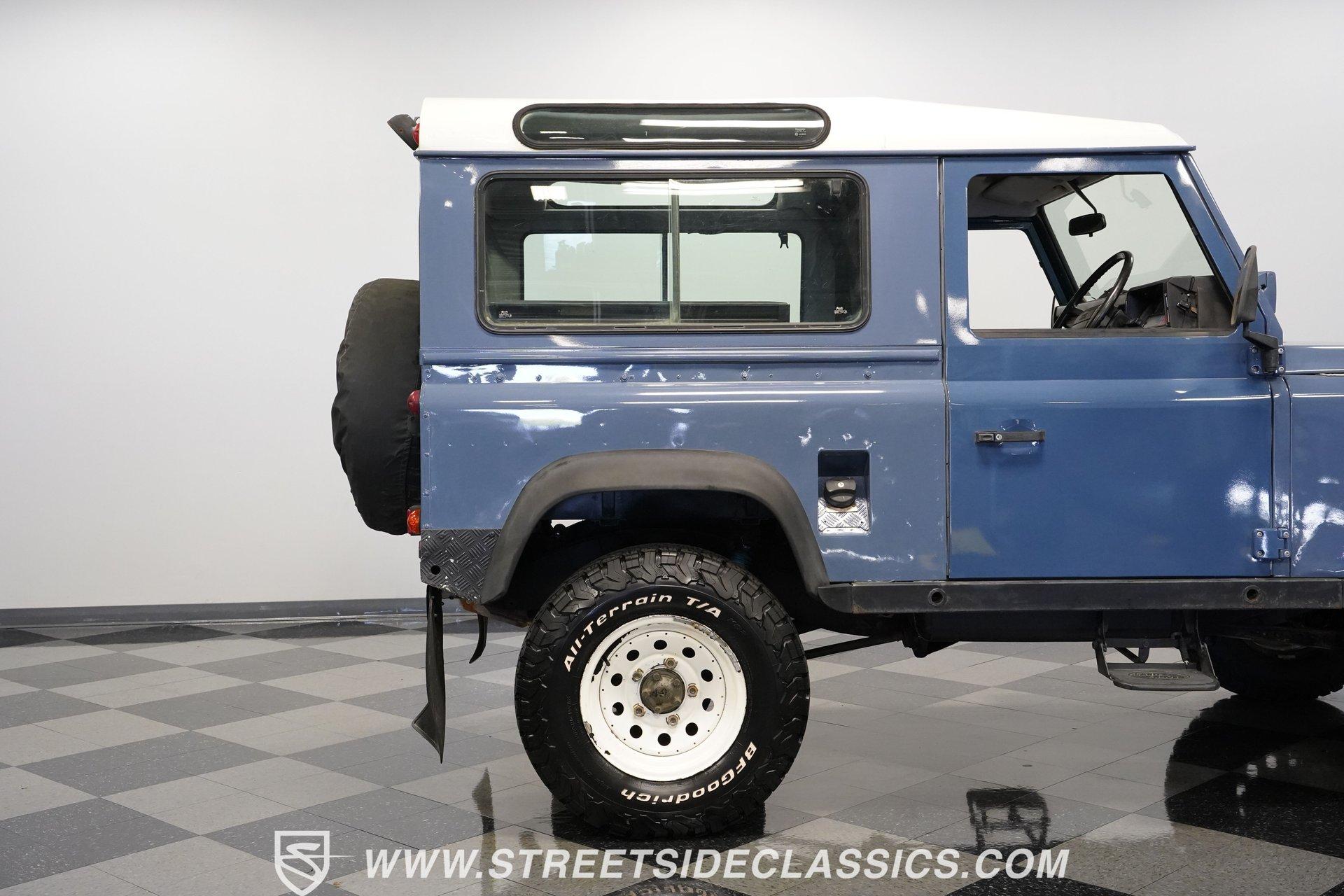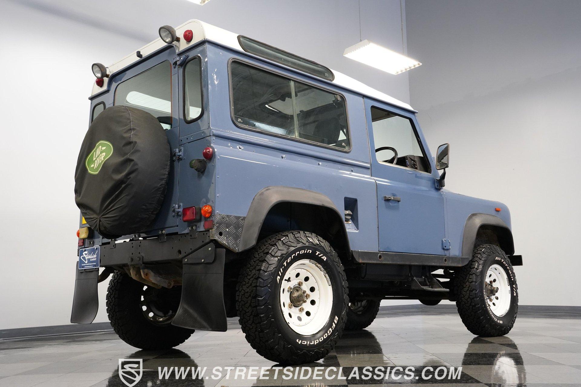 Authoring some of the most sought-after SUVs ever made, there is a long line of enthusiasts eager to get their hands on a classic Land Rover. Today, we bring you this right-hand-drive 1991 Land Rover Defender 90. Decked out in proud Arles Blue and complemented by a white top, this Defender is equipped with sidesteps, a sunroof, and the confidence to tackle an African safari. Inside, we find a utilitarian grey cloth interior featuring a pair of bucket seats separated by a center locking console. A simple, four-spoke, power-assisted steering wheel sits just ahead of a large 110 mph speedometer and smaller fuel and temperature gauges, with a litany of warning lights ready to fill up the rest of the dashboard. An upgraded Kenwood AM/FM/AUX head unit offers up satellite and Bluetooth connectivity. In back, the optional side-mounted bench seating allows for a group outing, and a wealth of cargo space that is easily accessed by the massive rear door. Under the hood, we are treated to a 2.5-liter 200 Tdi Turbo Diesel inline-four-cylinder engine. From the factory, this motor made approximately 107 horsepower at 3,900 rpm and 188 pound-feet of torque at a low 1,800 rpm. That turbocharged power is routed through a tried-and-true five-speed manual transmission before being sent out to either the rear or all four corners, where 16-inch steel wheels wait, shod in BF Goodrich All-Terrain T/A tires measuring 235/85R-16. HIGHLIGHTS: *Four Wheel Drive *Sunroof *Side Bench Rear Seats *2.5 Liter Turbo Diesel *Five Speed Manual *Solid Axle Suspension *Bilstein Shocks *Steel Wheels *BFG All Terrain Tires *Power Brakes *Four Wheel Discs *Power Steering *Kenwood Head Unit *Satellite Radio *Bluetooth *Receipts This 1991 Land Rover Defender 90 rides on a rugged solid-axle suspension at both the front and rear. Coil springs are complemented by upgraded Bilstein shocks to give this beast a little softer touch on solid roadways. Power disc brakes at all four corners inspire confidence to scrub off speed on the highway or fording a river. Classic Land Rovers like this Defender attract a special kind of enthusiast. Those who have experienced one of these vehicles even just once are usually hooked on its exceptional off-road capabilities, charismatic yet straightforward design, and engaging feedback. If you haven't experienced what it's like to sit behind the wheel of a true historical automotive icon, then this is the truck you've been waiting for. Don't wait, call today!