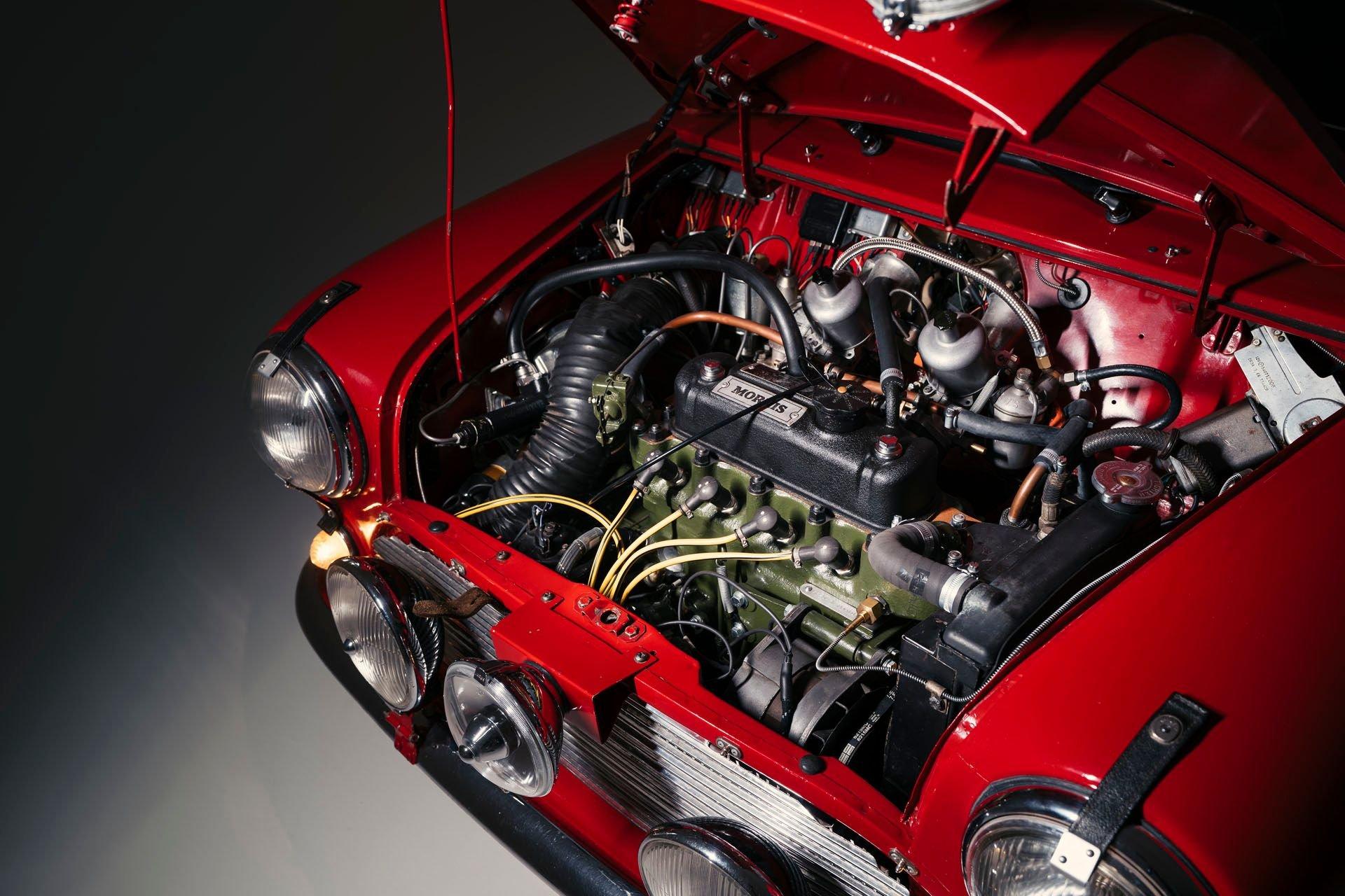 Engine No. 9F-SAY-35510 The Mini Mk I enjoyed a prolific rally racing venture in the 1960s, with the British Motor Corporation Competition Department churning out rally-prepped Coopers and Cooper S’ to dominate rallies on a world stage. Thanks to their nimble handling and excellent power-to-weight ratio, as well as the blossoming legends of Timo Mäkinen, Rauno Aaltonen, and Paddy Hopkirk at the wheel, Minis put their far more powerful rivals to shame. The Mini Cooper won the prestigious Monte Carlo Rally in 1964, 1965, and 1967- only missing out on a consecutive win in 1966 because the top three Minis were disqualified for non-compliant headlight bulbs. Mini’s tenure on the top step would close the chapter on the small car era of rallying, with more potent performance cars such as the Porsche 911 and Alpine A110 grabbing the spotlight at the start of the World Rally Championship by the 1970s. This 1963 Morris Mini Cooper S, given the 8 EMO registration number, was originally built as a works rally car for the BMC Competition Department and first fitted with a 1,071 cc S motor. It was specially prepared for the 1963 RAC International Rally of Great Britain, where it placed second in the Touring Car class and fourth overall in the hands of Paddy Hopkirk and Henry Liddon. This was particularly impressive for 8 EMO’s first result, as most of its class competitors sported engines up to 600 cc larger in displacement. In 1964, the car was primarily used as a reconnaissance vehicle for the Tulip, Alpine, and Monte Carlo rallies, the last in which another Mini driven by the Hopkirk/Liddon duo took BMC’s inaugural overall win. During this period, 8 EMO was also used as a practice car for the Tour de France road race and served as a test and development vehicle- most notably for BMC's Hydrolastic wet suspension system. The Mini’s next big moment was meant to come when it entered the 1965 Monte Carlo Rally, taking part in the Group III class with veteran BMC rally driver and BBC broadcaster Raymond Baxter set to drive. Although it was fitted with a fresh catalogue of adjustments including a smaller 971 cc S motor, the car suffered an engine failure and was unable to make it to the start line in Minsk in time, forcing 8 EMO and crew to withdraw. The Mini concluded its competition run with its participation in the 1965 International Police Rally where it was lent to John Gott, former BMC rally team captain and Chief Constable of Northamptonshire, and driven by Raymond Baxter. Sporting a fresh 1,275 cc motor, 8 EMO had now been factory fitted with the full catalog of Cooper S power plants. It was also used during that year’s BMC Team Car Performance Evaluation Day at Silverstone, where it was tested by Hopkirk, Mäkinen, and Aaltonen, as well as Formula One rookie Jackie Stewart. The car resumed reconnaissance duties for the infamous 1966 Monte Carlo event, which would be its last professional rally venture. 8 EMO then sold to the primary BMC dealership Oswald Tillotson in Lancashire. It was used by privateer rally driver Geoff Halliwell in numerous local rally events and the Harewood Hillclimb in 1968. The car changed hands between owners in Cheshire and North Wales, where it was painted green, before disappearing until 1983. An expert in BMC Competition cars and the founder of the ex-Abingdon works Minis Register commissioned a multiple-year restoration of 8 EMO, fitting it with its original red and white livery and a 1,275 cc motor. The car was featured in EVO Magazine’s December 1998 issue (its second ever issue) and was reunited with both Paddy Hopkirk and Raymond Baxter before Hopkirk’s passing. It has participated in countless car shows and historic rallies, where it has won a variety of awards for its provenance. It continues to be eligible for vintage rally events such as the Rallye Monte-Carlo Historique. 8 EMO underwent an extensive restoration in June 2024 at Mini racing specialist Mondo Sport in England. Its motor and transmission were removed and sent to seasoned Mini race engine builder Swiftune, and its wiring loom was replaced by vintage racing wiring specialist Sileck Auto Electrical. Mondo fitted the car with new brake discs, brake pads, and AP brake calipers. The Mini’s wheels were powder coated Old English White and shod in new Dunlop R7 tires. Mondo replaced a wide variety of components including the front and rear suspensions, wheel bearings, shock absorbers, and fuel pump. The bucket seats were also restored but the original upholstery was left intact, preserving the stories told between driver and co-driver- including Liddon’s cigarette burn marks. This well-documented Morris Mini Cooper S Rally is offered now with a respectable competition history, an all-star cast list of racing drivers who have been behind the wheel, and a recent exhaustive restoration. Clad in the red and white livery from its first race at the 1963 RAC Rally, this Mini is a well-preserved example of BMC’s triumphs during the 1960s rally era.