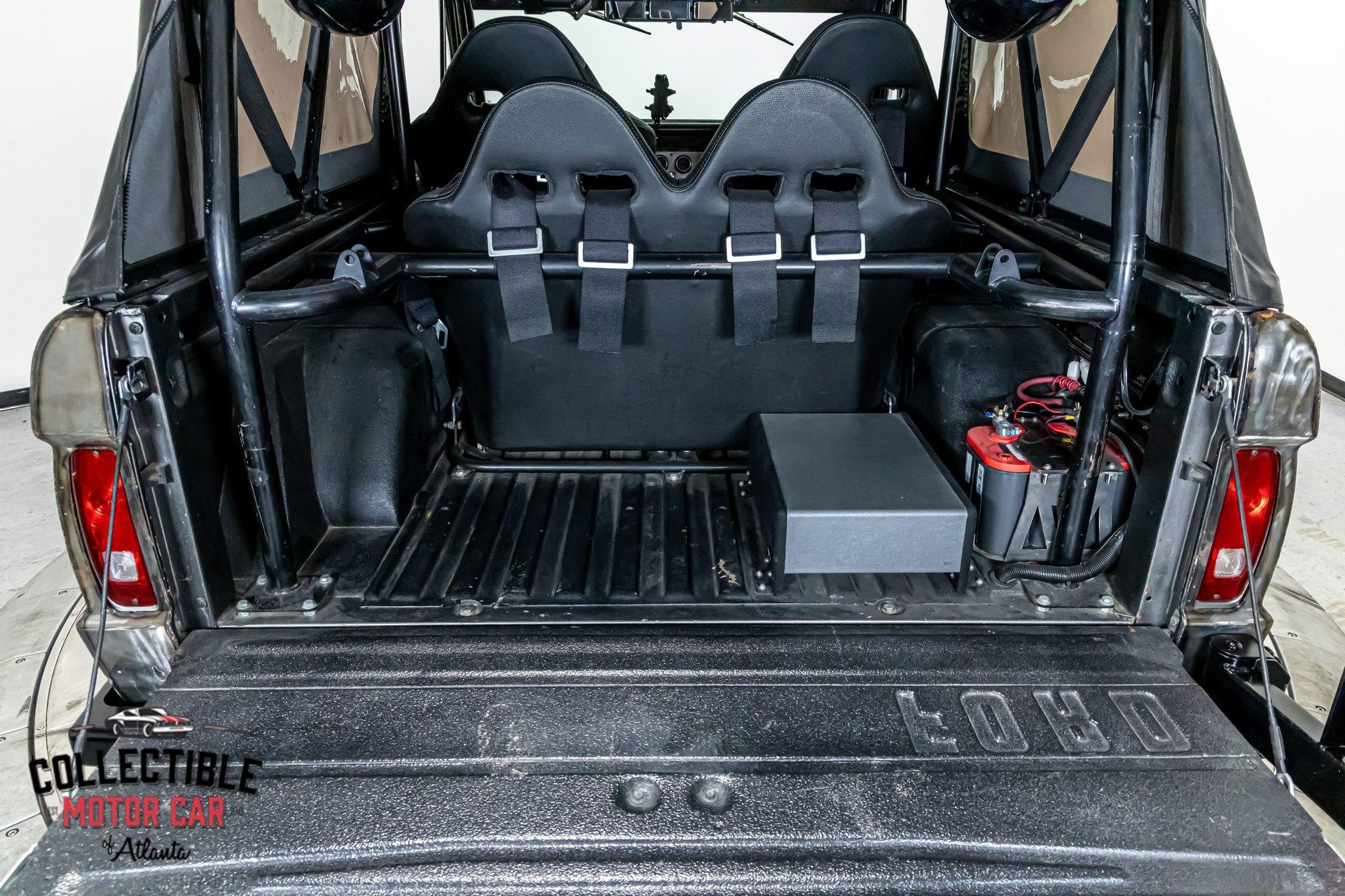 1971 Ford Bronco – Complete Frame-Off Restoration | 450 HP 393 Stroker V8 This 1971 Ford Bronco is a no-expense-spared, frame-off restoration built by West Coast Broncos, featuring a powder-coated frame, all Grade 8 hardware, and reinforced shock tower supports for ultimate durability. Finished in Galaxy Gray, this Bronco is not just a showpiece but an off-road beast, boasting top-tier performance upgrades and modernized drivability. High-Performance Drivetrain: ? Ford 351 Windsor Stroked to 393ci (450 HP) – Built by Bob Lambeck & Valley Head Service Wiesco Pistons, Scat Forged H-Beam Rods, Scat Forged Crank Edelbrock Top End with CNC Heads Holley Sniper EFI 4BBL for modern fuel delivery Full MSD 6AL Ignition System for reliable spark ⚙ 700R4 4-Speed Automatic Transmission Smooth shifting with performance tuning ? Atlas 2 Transfer Case (3.8:1) with Dual Independent Twin Stick Shifters Maximum control for extreme off-roading ? Ford 9” Rear End with 35-Spline Chrome Axles & Yukon 4.11 Gears Built for strength and durability ? ARB Front & Rear Air Lockers Superior traction at the push of a button Cooling & Fuel System: Ron Davis Radiator with Fan Shroud for optimal cooling External Oil & Transmission Cooling Fans Sherman 23-Gallon Tank with EFI Components for long adventures Suspension & Steering: Custom Extreme Front Shock Hoops with Single Shock Towers Four-Link Rear Suspension with 5.5” Lift Coils Fox Bypass Front Shocks with 2.5” Reservoirs for ultimate off-road capability PSC Ram-Assisted Steering Shocks & Tom’s Rock Crawler Steering Box RCV Hubs & 1310 CV Front and Rear Driveshafts Braking & Safety Features: Hydroboost Brake Booster Front Disc & Rear Hub Brakes Pitman Drop-Down Arms & Stainless Brake Lines Beard RX-T1 Seats with 5-Point Harnesses Full Custom Family Roll Cage with Frame Tie-In Connections Interior & Electronics: Ford Racing Dash Gauges & Complete Heater Box Custom-Built Console & Dash by StrangeFab Metal Crafts Painless Wiring Harness for reliability Winters Sidewinder Shifter for precise gear control Black Billet Bezels for a refined look Phone: 770-738-7111 Address: 1750 Enterprise Way Suite 109 Marietta GA 30067 Hours of Operation: Monday- Friday - 9-5pm Saturday - Appointment Only Sunday - Closed