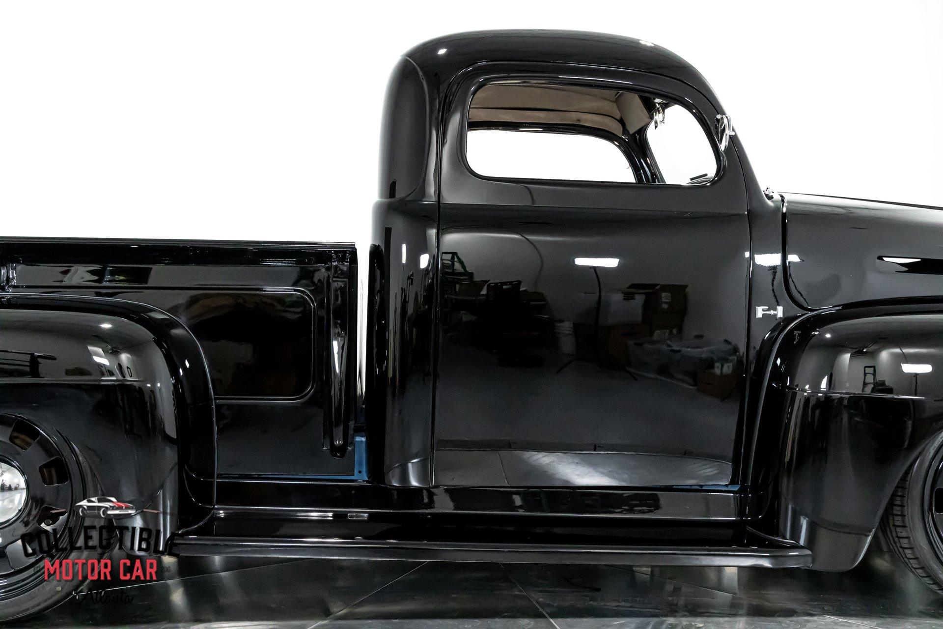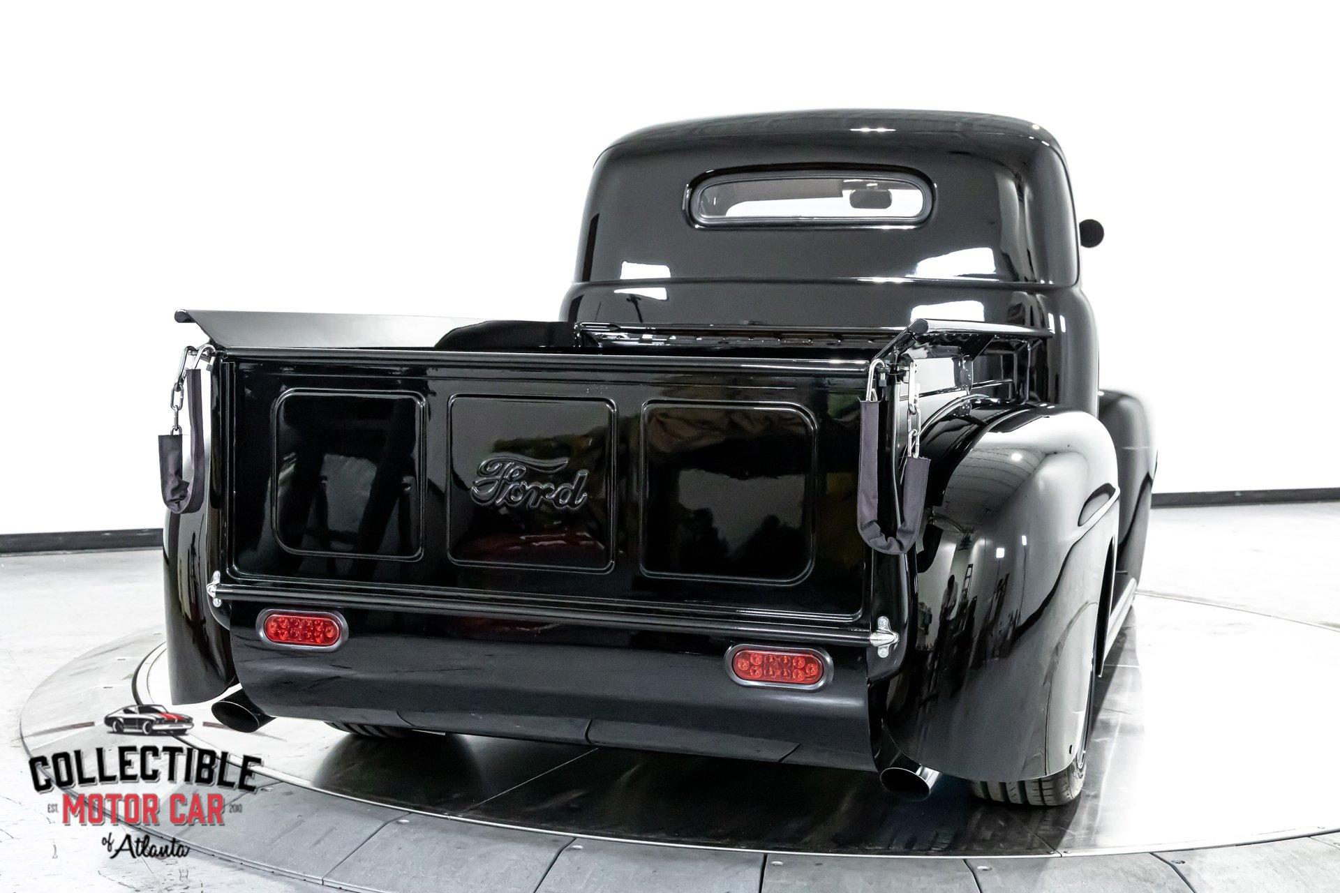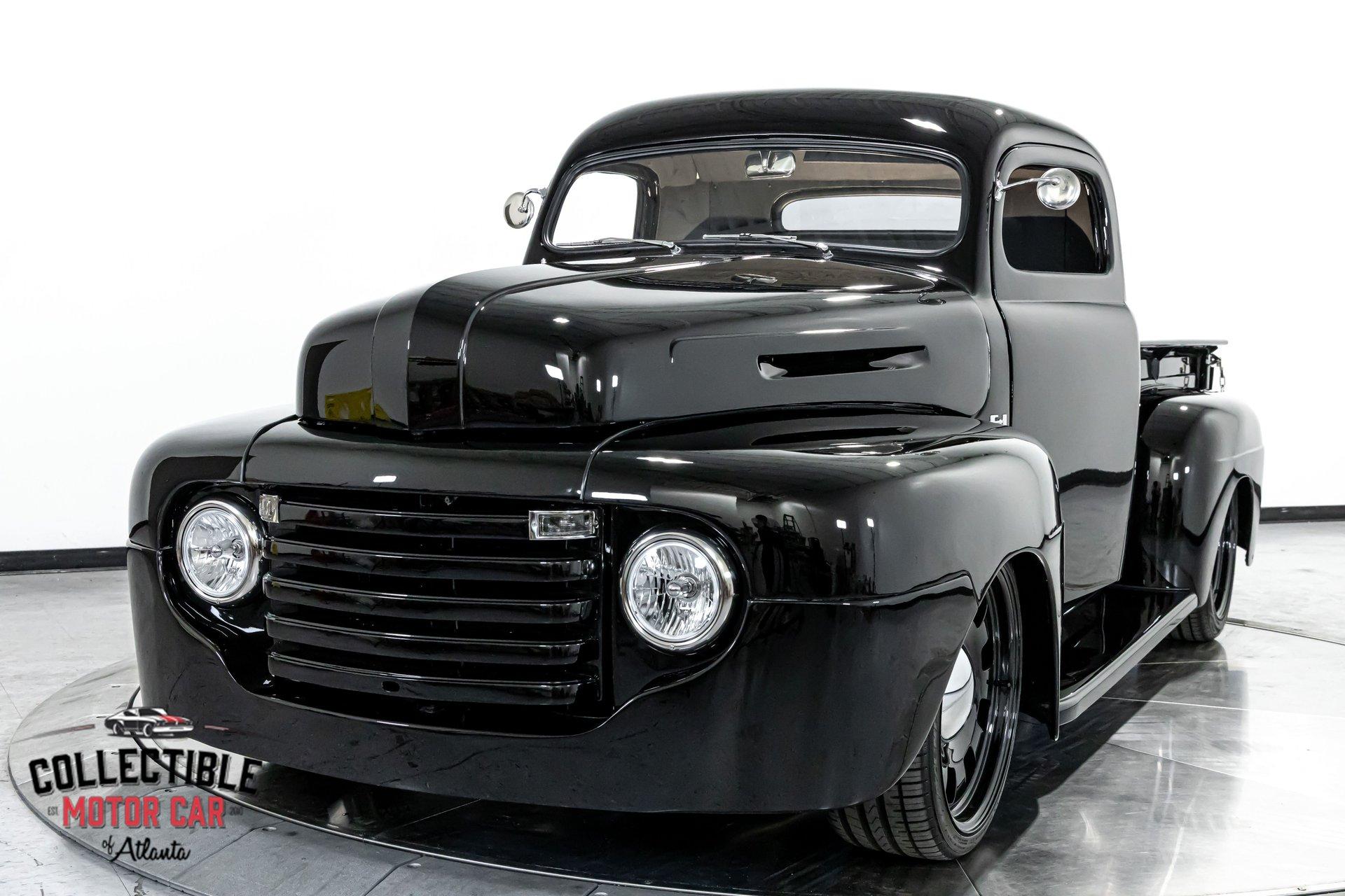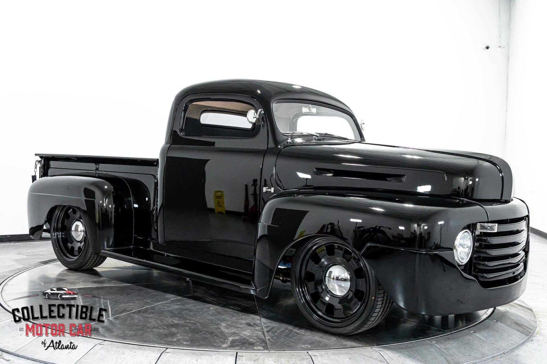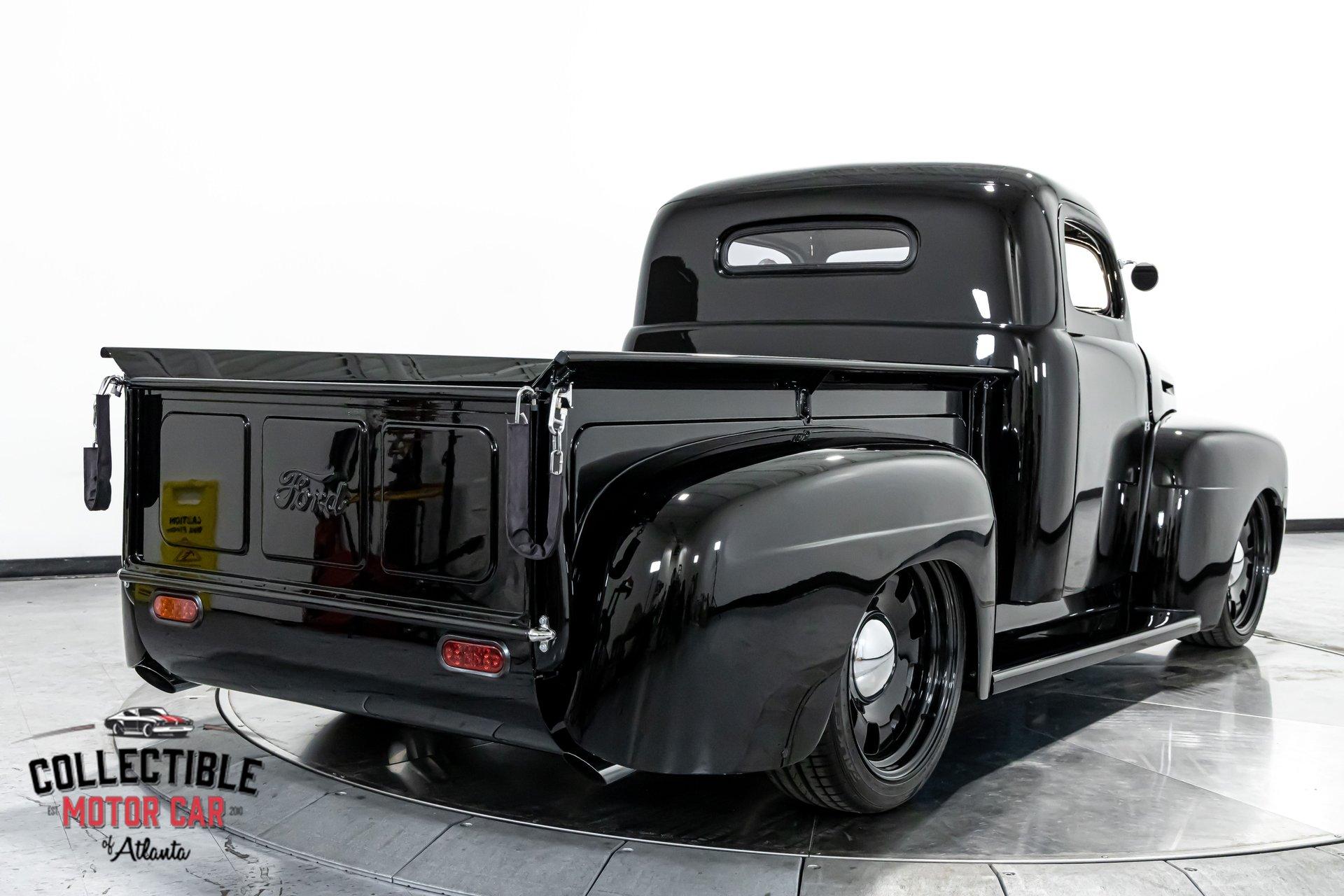 1949 Ford F1 Pickup Restomod SPECIFICATIONS: Engine: Modified Flathead V-8 Transmission: Automatic Exterior Color: Black Interior Color: Black Make: Ford Model: F1 Body Style: Pickup HIGHLIGHTS: Custom-built Flathead V-8 engine for enhanced performance Smooth-shifting automatic transmission Distinctively chopped top Stylish suicide doors for a classic custom appearance Stunning mirrored firewall showcasing the engine bay Custom interior featuring luxurious leather bench seating THE STORY: Introduced in 1948, Ford's F1 lineup quickly became a symbol of reliability and post-war innovation. This extraordinary 1949 Ford F1 Pickup has undergone a meticulous transformation, evolving from a reliable workhorse into a head-turning custom masterpiece. Sporting a chopped roofline and suicide doors, this truck exudes an unmistakably classic hot rod attitude. At the heart of this restomod is a carefully modified Flathead V-8 engine, equipped with a downdraft carburetor and a dual exhaust system for maximum power and an unforgettable exhaust note. The mirrored firewall beautifully frames the engine, highlighted by a chrome-laden bay and striking blue accents that contrast sharply against the truck’s glossy black exterior. The refined exterior maintains classic F1 aesthetics, complemented by modern custom touches. Detroit steel wheels in gloss black set an aggressive stance, perfectly matched by the waterfall grille, F1 badging, and elegantly integrated dual side mirrors. Wraparound bumpers lend a sleek, streamlined look, while the polished, body-colored wood bed with relocated fuel filler showcases the attention to detail and craftsmanship. Inside, the cabin blends vintage charm with contemporary luxury, featuring an upgraded steering wheel, premium tinted glass, and a custom leather bench seat, creating a comfortable and sophisticated driving experience. This 1949 Ford F1 Restomod Pickup offers a captivating combination of historical significance, bold customization, and exceptional craftsmanship, making it a standout vehicle for any classic automotive enthusiast. Phone 770-738-7111 Address 1750 Enterprise Way Suite 109Marietta, GA 30067 Hours of Operation Monday- Friday - 9-5pm Saturday - 9-3pm (Appointment only) Sunday - Closed