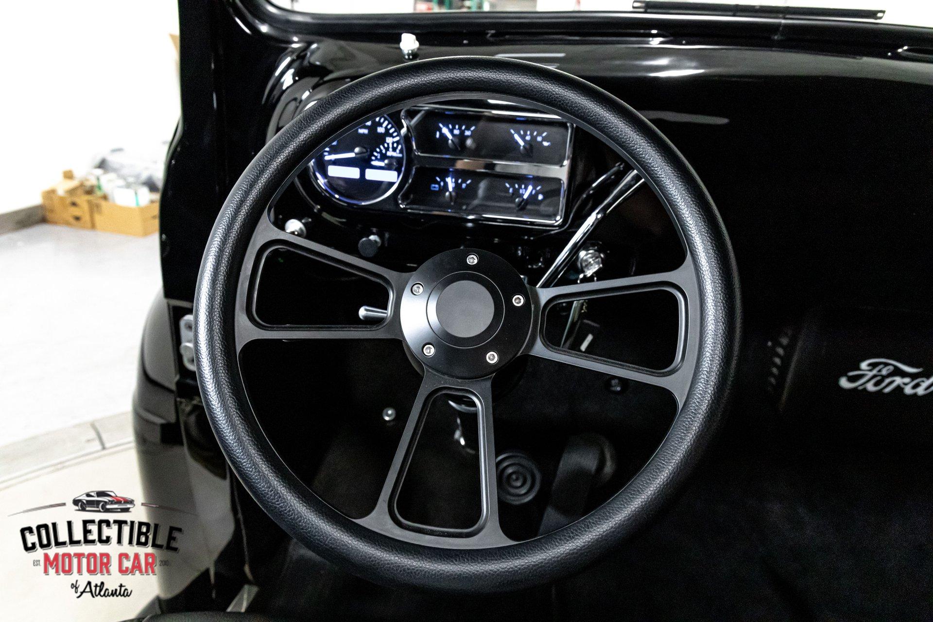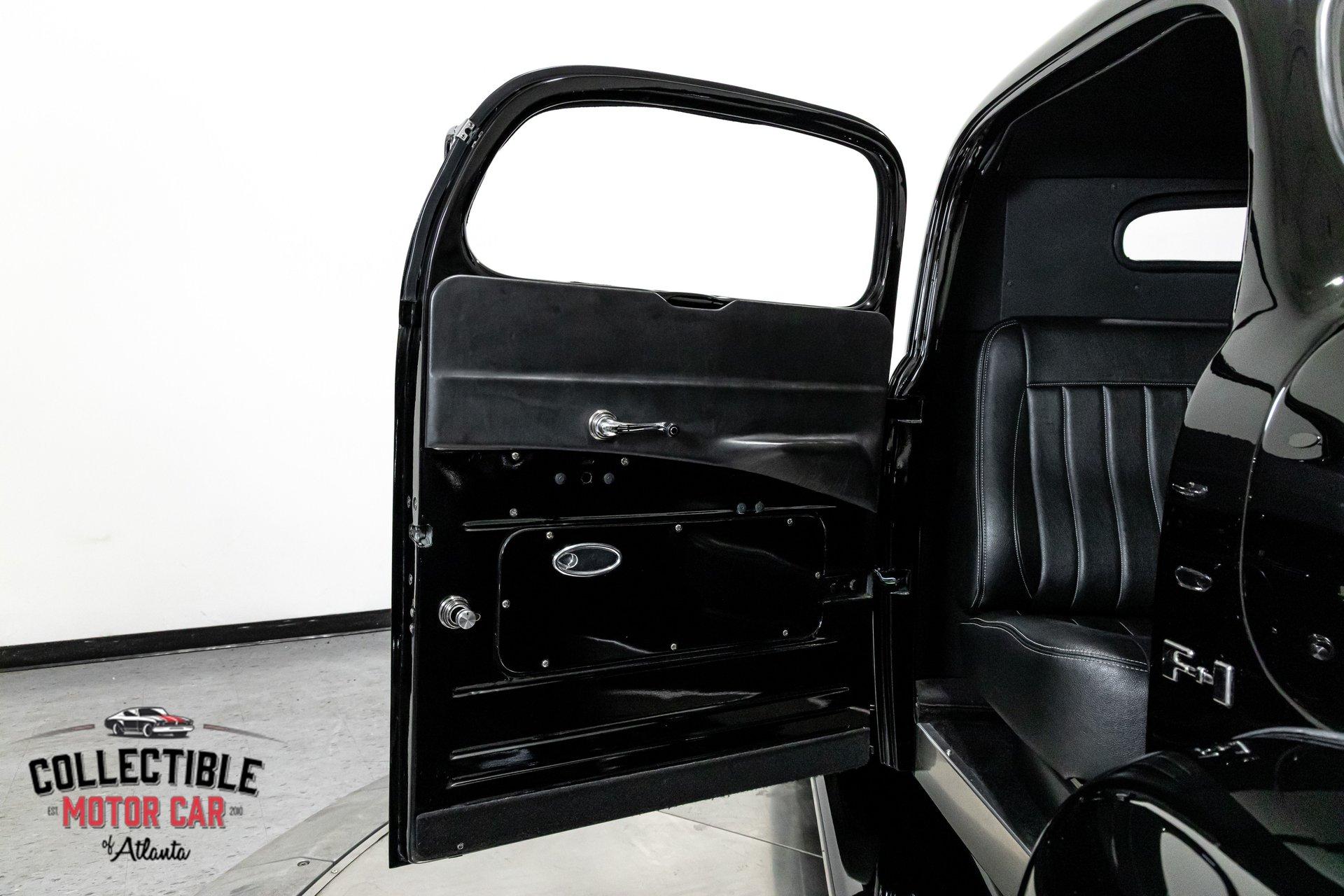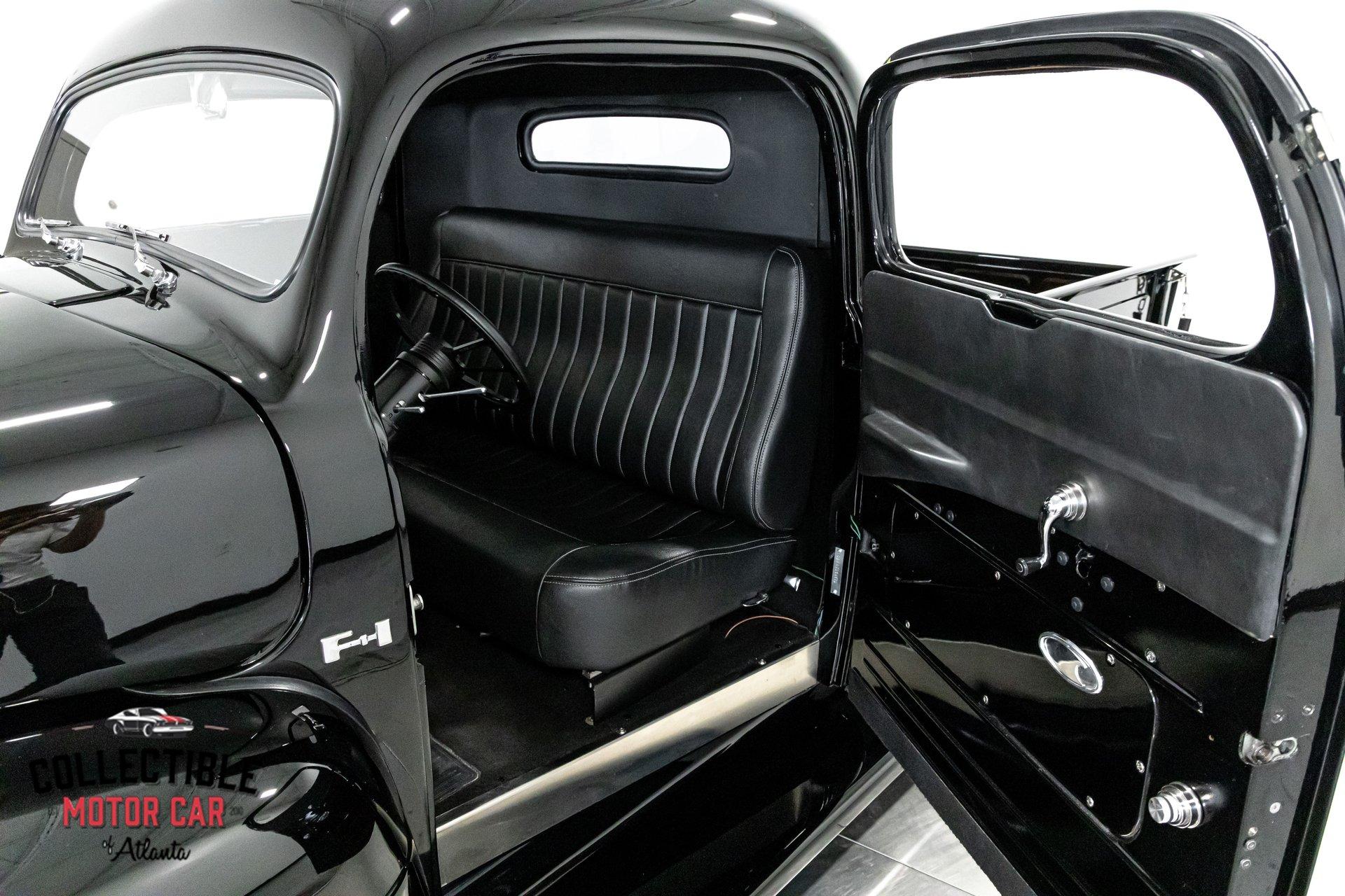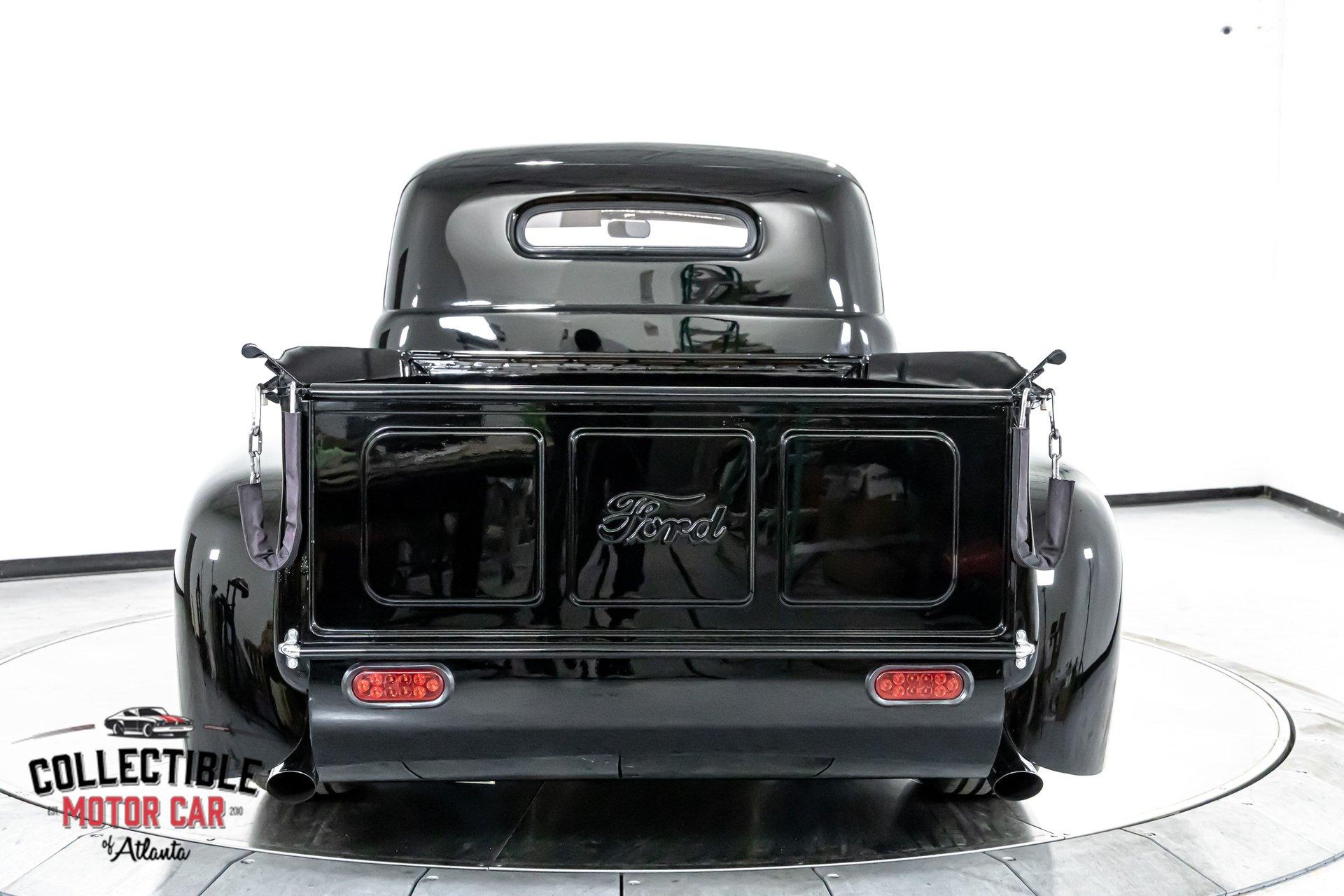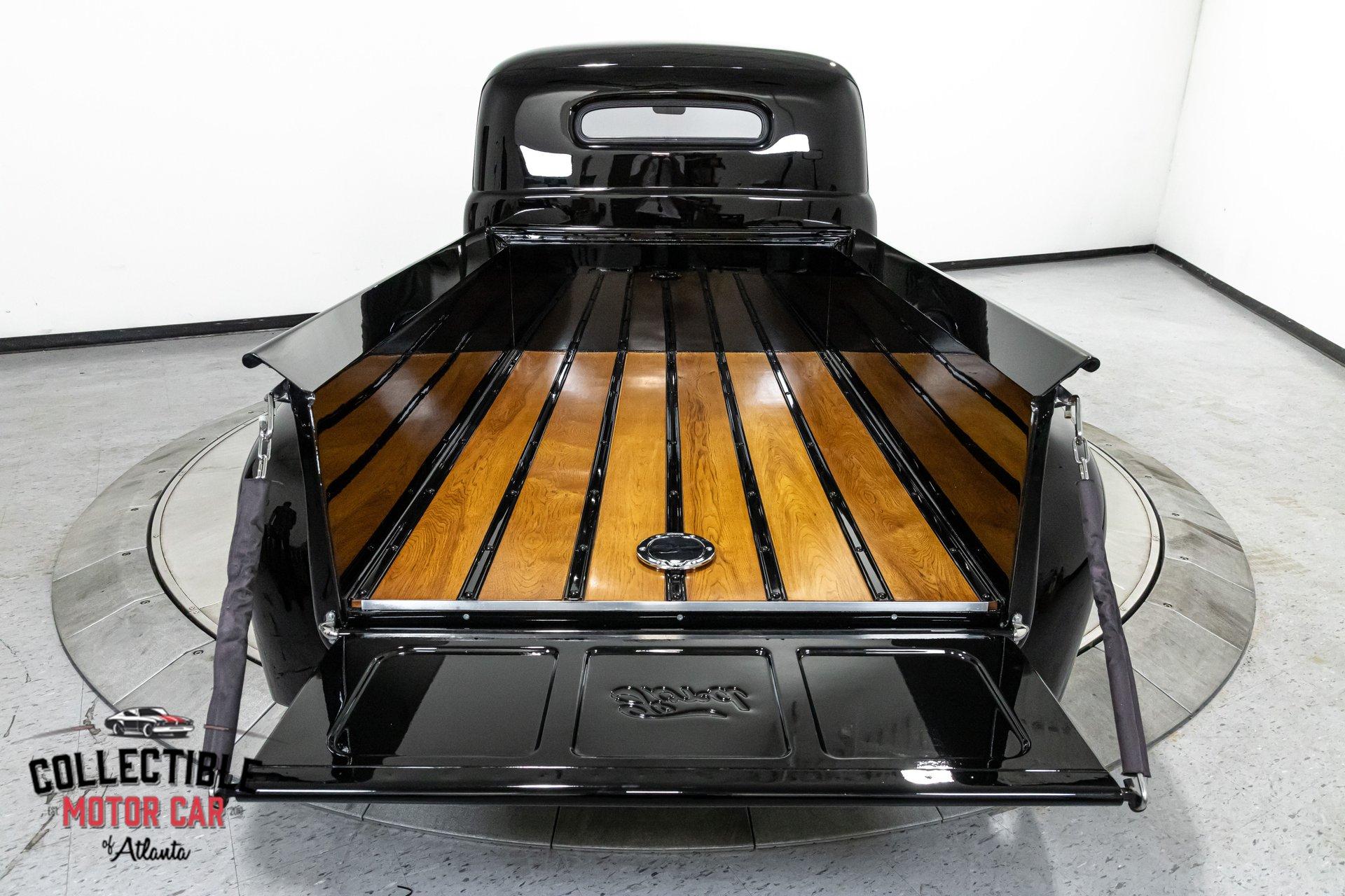1949 Ford F1 Pickup Restomod SPECIFICATIONS: Engine: Modified Flathead V-8 Transmission: Automatic Exterior Color: Black Interior Color: Black Make: Ford Model: F1 Body Style: Pickup HIGHLIGHTS: Custom-built Flathead V-8 engine for enhanced performance Smooth-shifting automatic transmission Distinctively chopped top Stylish suicide doors for a classic custom appearance Stunning mirrored firewall showcasing the engine bay Custom interior featuring luxurious leather bench seating THE STORY: Introduced in 1948, Ford's F1 lineup quickly became a symbol of reliability and post-war innovation. This extraordinary 1949 Ford F1 Pickup has undergone a meticulous transformation, evolving from a reliable workhorse into a head-turning custom masterpiece. Sporting a chopped roofline and suicide doors, this truck exudes an unmistakably classic hot rod attitude. At the heart of this restomod is a carefully modified Flathead V-8 engine, equipped with a downdraft carburetor and a dual exhaust system for maximum power and an unforgettable exhaust note. The mirrored firewall beautifully frames the engine, highlighted by a chrome-laden bay and striking blue accents that contrast sharply against the truck’s glossy black exterior. The refined exterior maintains classic F1 aesthetics, complemented by modern custom touches. Detroit steel wheels in gloss black set an aggressive stance, perfectly matched by the waterfall grille, F1 badging, and elegantly integrated dual side mirrors. Wraparound bumpers lend a sleek, streamlined look, while the polished, body-colored wood bed with relocated fuel filler showcases the attention to detail and craftsmanship. Inside, the cabin blends vintage charm with contemporary luxury, featuring an upgraded steering wheel, premium tinted glass, and a custom leather bench seat, creating a comfortable and sophisticated driving experience. This 1949 Ford F1 Restomod Pickup offers a captivating combination of historical significance, bold customization, and exceptional craftsmanship, making it a standout vehicle for any classic automotive enthusiast. Phone 770-738-7111 Address 1750 Enterprise Way Suite 109Marietta, GA 30067 Hours of Operation Monday- Friday - 9-5pm Saturday - 9-3pm (Appointment only) Sunday - Closed