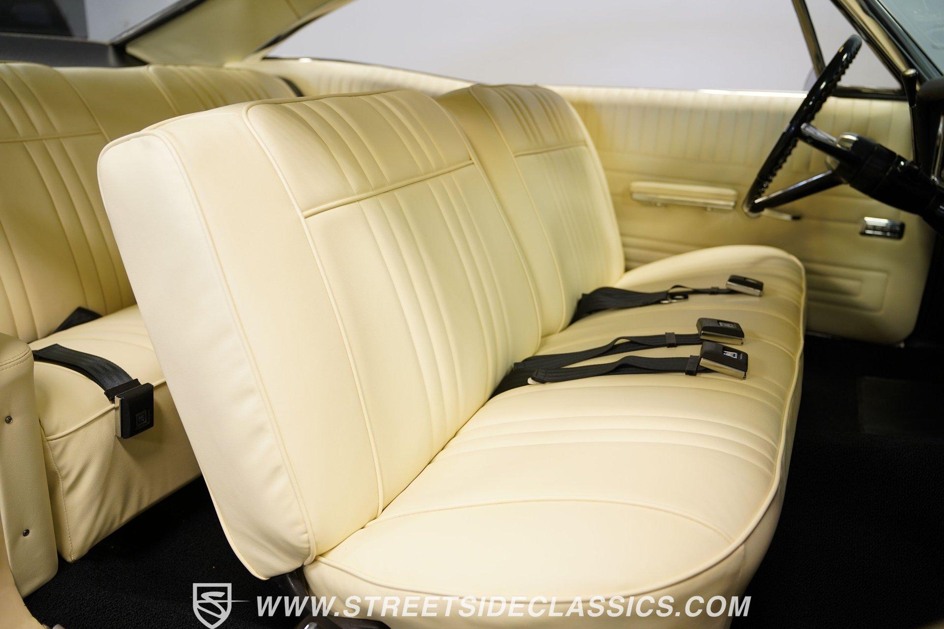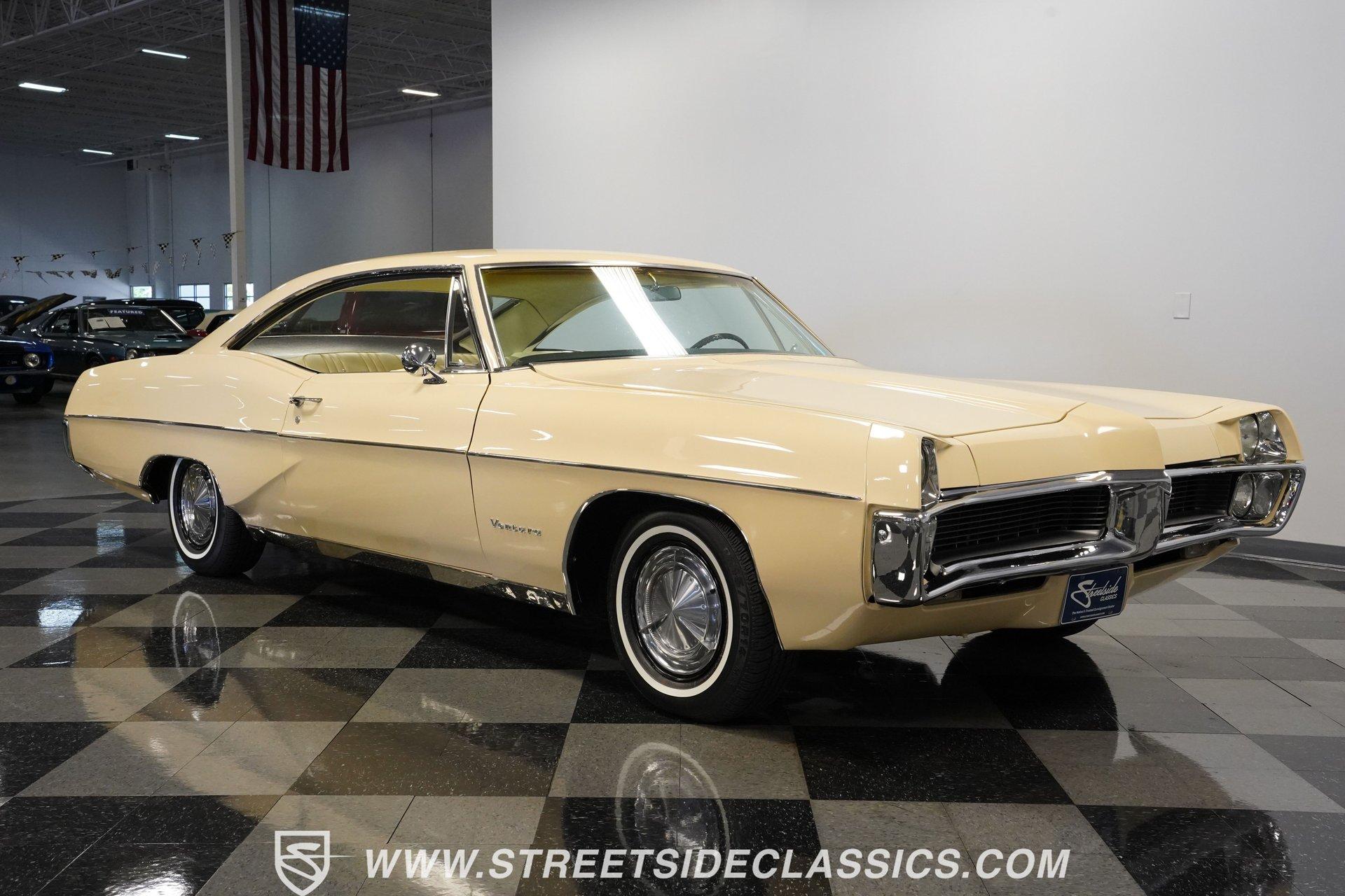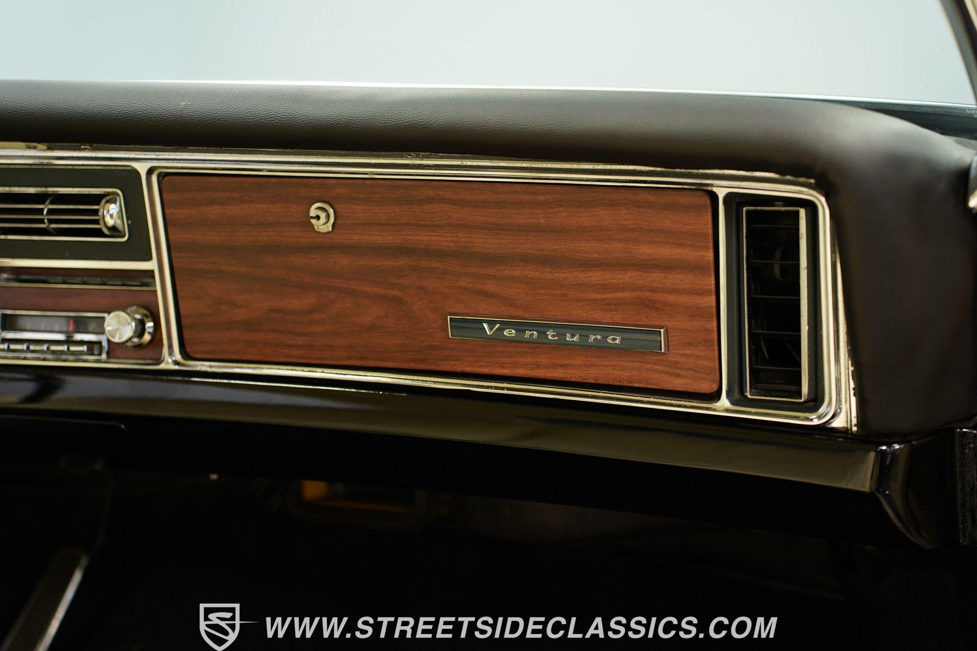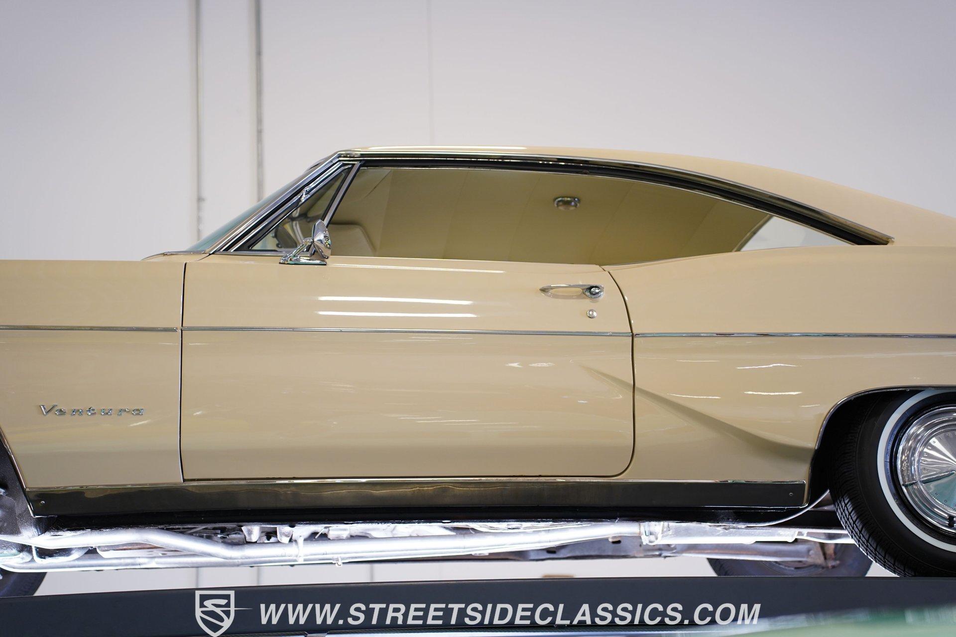 Exceptionally rare Ventura model distinguishes this 1967 Pontiac Catalina, displaying an attractive cream finish from a full bare-metal respray completed during its 2023/24 restoration. Additional exterior upgrades include meticulously restored chrome work across bumpers, trim pieces, and all factory lettering. The 14" steel wheels received professional powder coating before being fitted with P215/70R14 whitewall tires and factory PMD hubcaps. Dual exhaust exits through polished chrome tips, while brand new weather seals have been installed throughout the entire body. Open any door to discover a completely refreshed cabin featuring all-new white vinyl upholstery across the bench seats, door panels, headliner, and sun visors. Black OEM carpet creates a strong visual foundation against the bright white interior elements. The dashboard received new bezels and houses both the factory gauge cluster and an added temperature gauge for enhanced monitoring. All windows operate via power, with newly installed controls for both front and rear passengers. Added conveniences include new OEM GM seat belts and freshly installed rear inset ashtrays. Lifting the massive hood reveals a 400 cubic inch V8 engine (YD suffix code indicating the 290 horsepower variant) mated to a TH400 three-speed automatic transmission. The mechanical package includes power steering for easy maneuverability and power drum brakes for solid stopping ability. Fuel delivery comes via a single two-barrel carburetor, while exhaust gases exit through a dual system equipped with Xlerator mufflers. Factory-style suspension components maintain proper ride height, and a sturdy Pontiac 10-bolt rear end handles the power distribution to the rear wheels. HIGHLIGHTS: 400 Cubic Inch V8 Engine (290 Horsepower) TH400 3-Speed Automatic Transmission Single 2-Barrel Carburetor Power Drum Brakes Factory-Style Suspension Pontiac 10-Bolt Rear End Dual Exhaust With Xlerator Mufflers Stock Style Manifolds Full Bare-Metal Respray In Cream Restored Chrome Work (Bumpers, Trim, Lettering) 14" Powder Coated Steel Wheels P215/70R14 Whitewall Tires Original PMD 14" Hubcaps Chrome Dual Exhaust Tips New Weather Seals Throughout Ventura Badging White Interior With Upholstery Throughout OEM Black Carpet Power Windows New Window Controls Front And Rear Dashboard Mounted Temperature Gauge New Dashboard Bezels Power Steering New OEM GM Seat Belts New Inset Rear Ashtrays Featured In Classic American Magazine For collectors seeking an uncommon Pontiac model, this 1967 Catalina Ventura delivers an impressive combination of size, style, and performance. From its comprehensive restoration to its powerful 400 V8 engine, this full-size cruiser stands ready for shows, weekend drives, or adding to any distinguished collection. Call today!