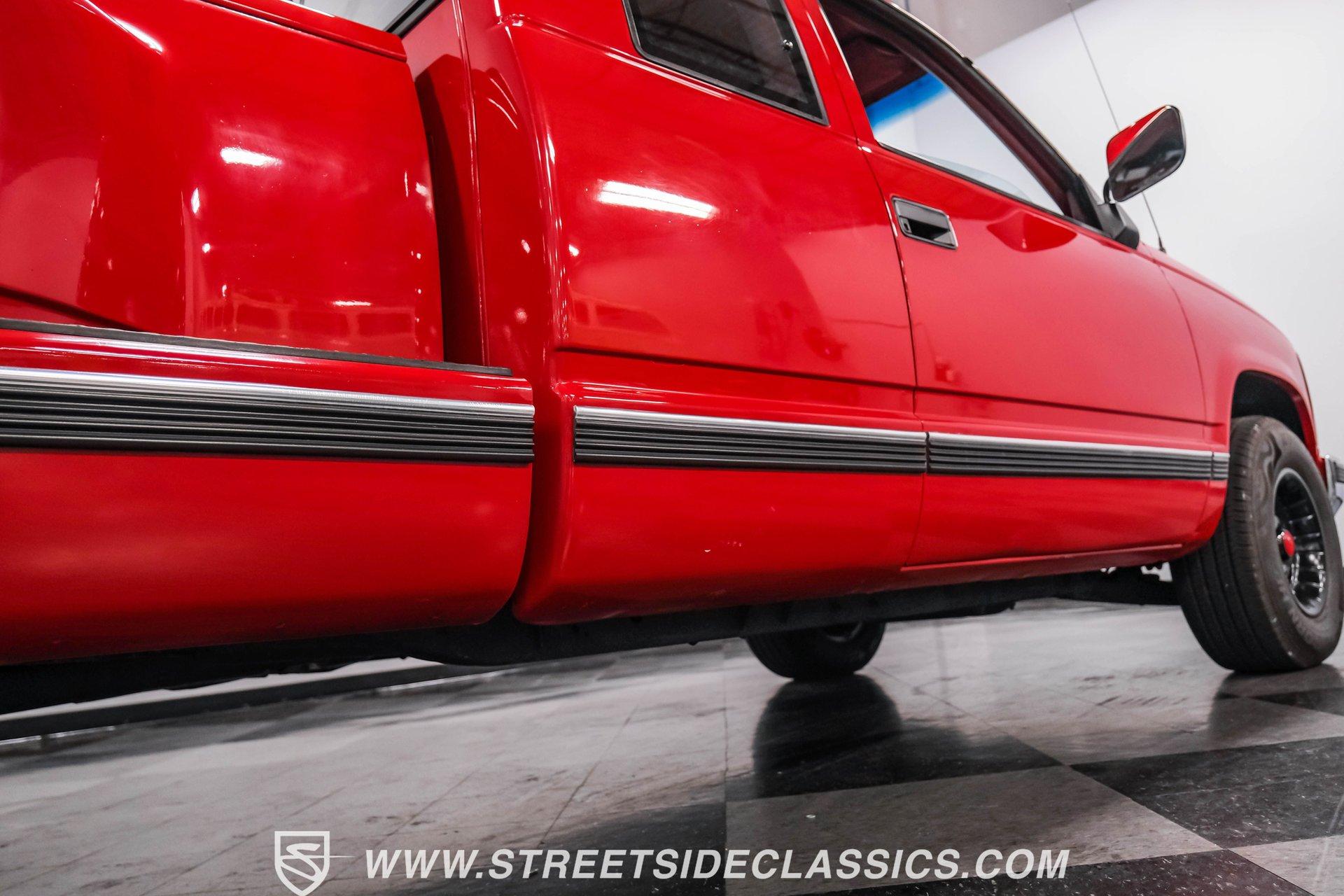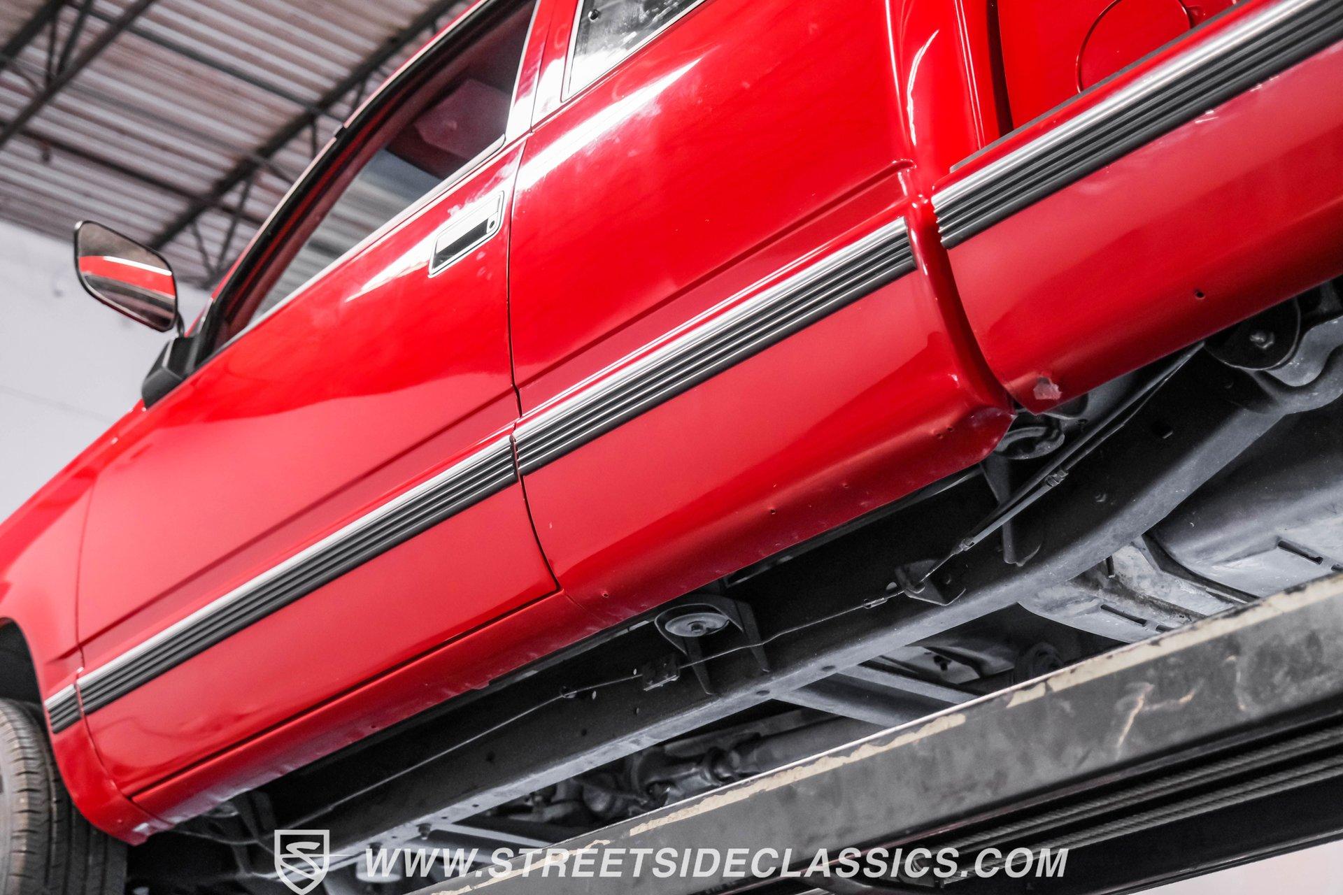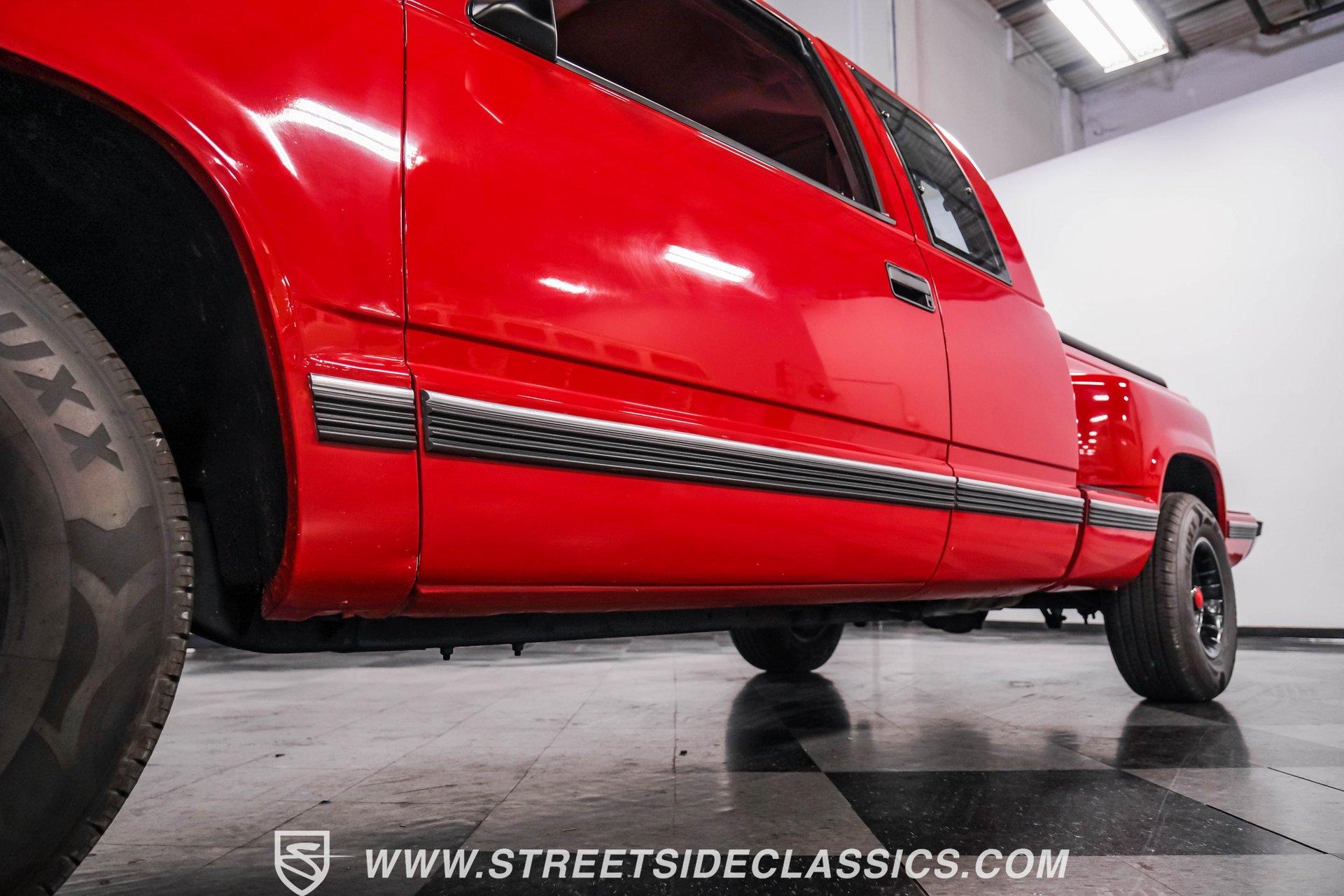 Refreshed in late 2024 this 1991 GMC Sierra 1500 Extended Cab is finished in red and rides on black 15-inch Centerline wheels with red center caps and 255/70R15 Evoluxx Capricorn HP tires. The step-side short bed is matched with a rear chrome bumper and newer tailgate trim. The front grille wears its GMC badge proudly between clear headlights, while the chrome front bumper adds a classic contrast. A spray-in bedliner, sliding rear window, and black mirrors round out the utility-minded exterior. Red velour cloth wraps the bucket seats inside, divided by a folding center armrest and original center-style console. Factory-style carpets and door panels continue the red theme throughout, complemented by a matching dash with a column-mounted shifter. An overhead console adds a little extra storage, while the Panasonic AM/FM cassette stereo keeps things rooted in the early '90s. Power locks, power windows, tilt steering, and factory air conditioning were part of the original package equipment. A 5.0L V8 pulled from a 1992 Caprice and inspected prior to installation now lives under the hood, with approximately 126k miles on the engine itself. A 700R4 4-speed automatic transmission sends power rearward through a 10-bolt rear axle. Suspension is handled by coil springs and a sway bar up front, with leaf springs and shocks in the rear. Power disc brakes are included, and the exhaust exits through a dual-to-single-to-dual setup fitted with glasspack-style mufflers. HIGHLIGHTS 5.0L V8 From 1992 Caprice 700R4 4-Speed Automatic Transmission Electronic Fuel Injection Power Disc Brakes Dual-To-Single-To-Dual Glasspack Exhaust 10-Bolt Rear Axle Red Paint (2024 Full Repaint) 15" Black Centerline Wheels With Red Center Caps 255/70R15 Evoluxx Capricorn HP Tires Step-Side Short Bed Spray-In Bedliner Sliding Rear Glass Window Red Interior With Bucket Seats Folding Center Armrest And Center Console Overhead Console Panasonic AM/FM Cassette Stereo Power Windows, Door Locks Tilt Steering Power Steering Air Conditioning Plenty of work has been done to bring this 1991 GMC Sierra 1500 Extended Cab back into daily-driver form, with style and utility intact. Strong equipment, refreshed cosmetics, and just enough retro personality make it worth a closer look. Call today!