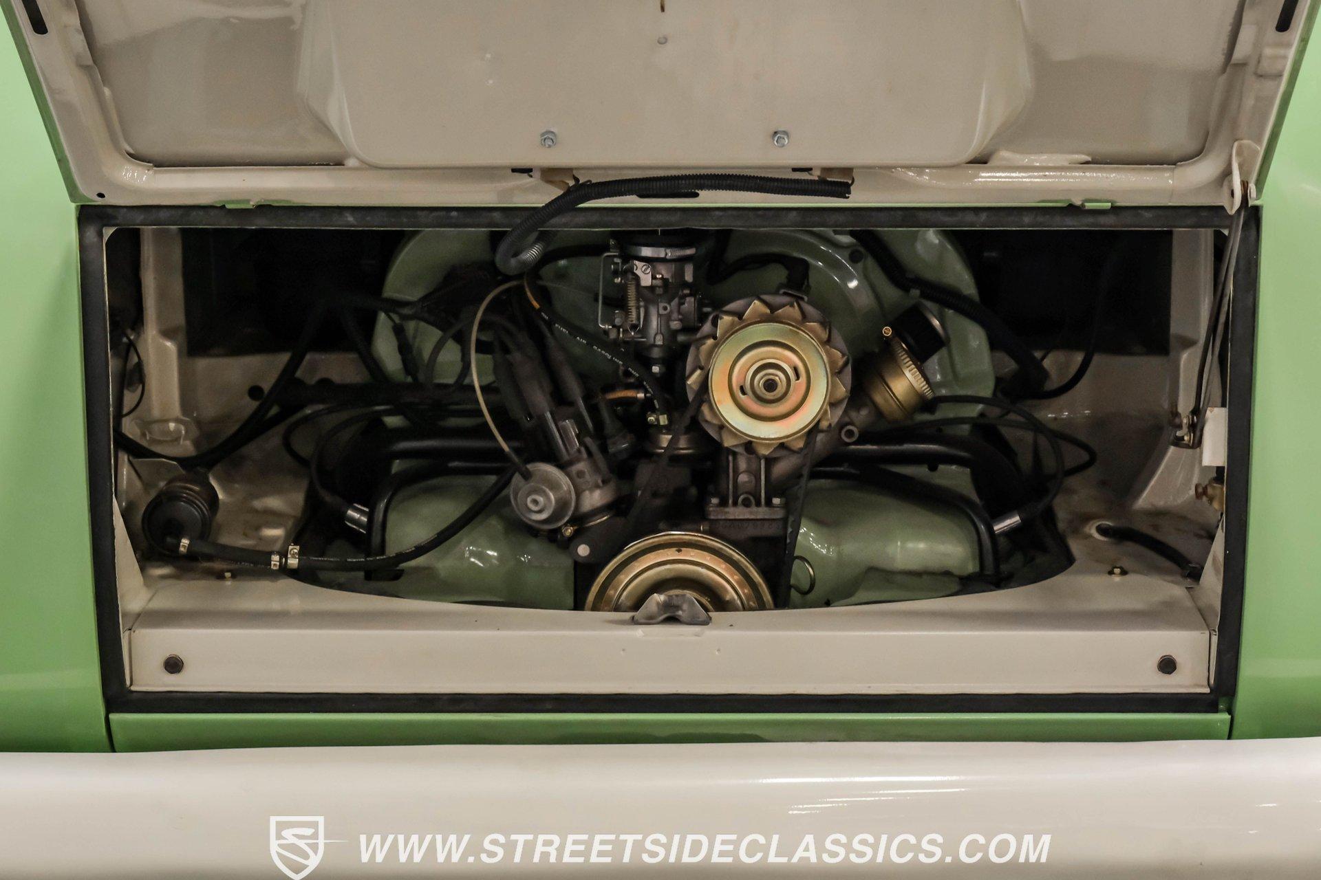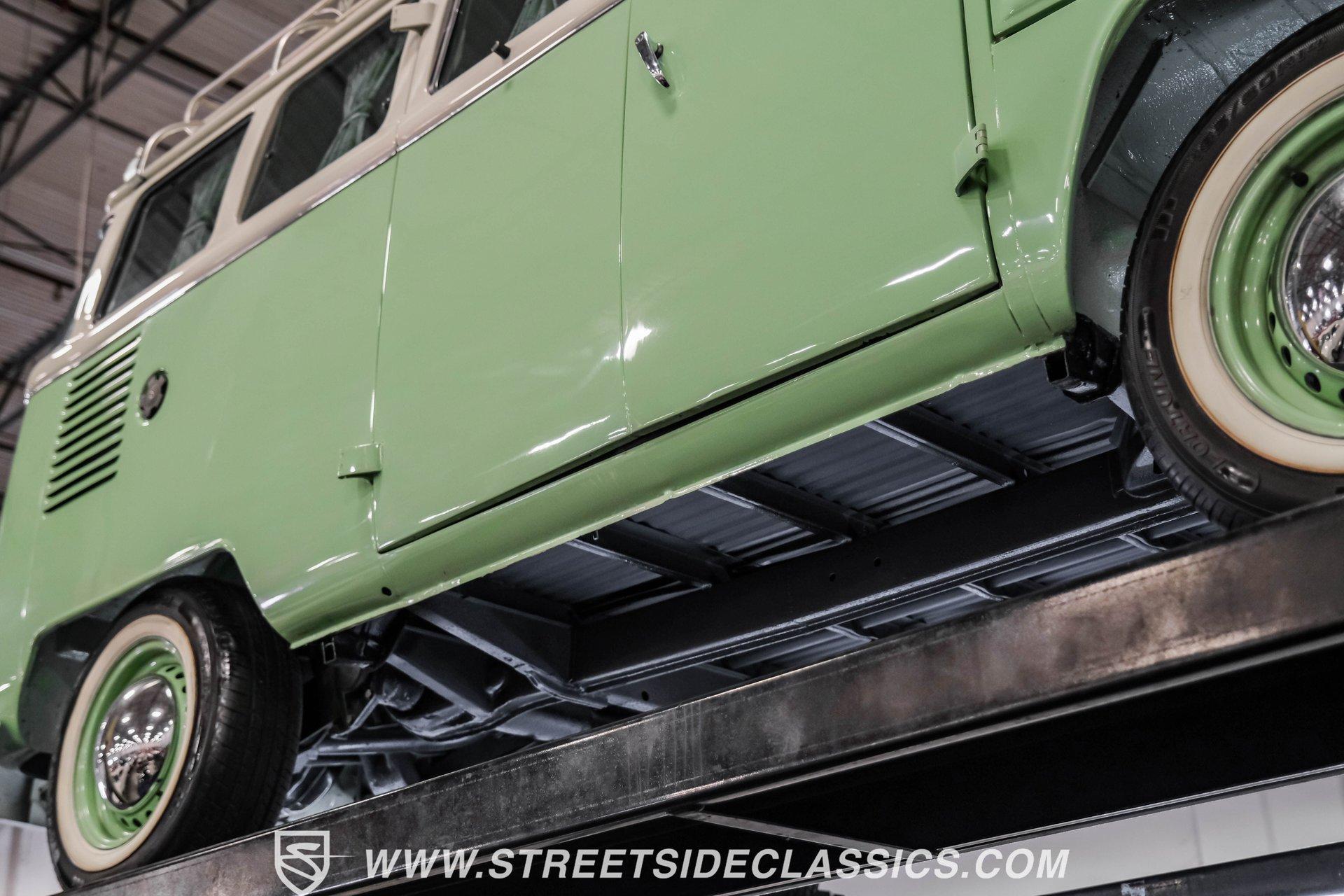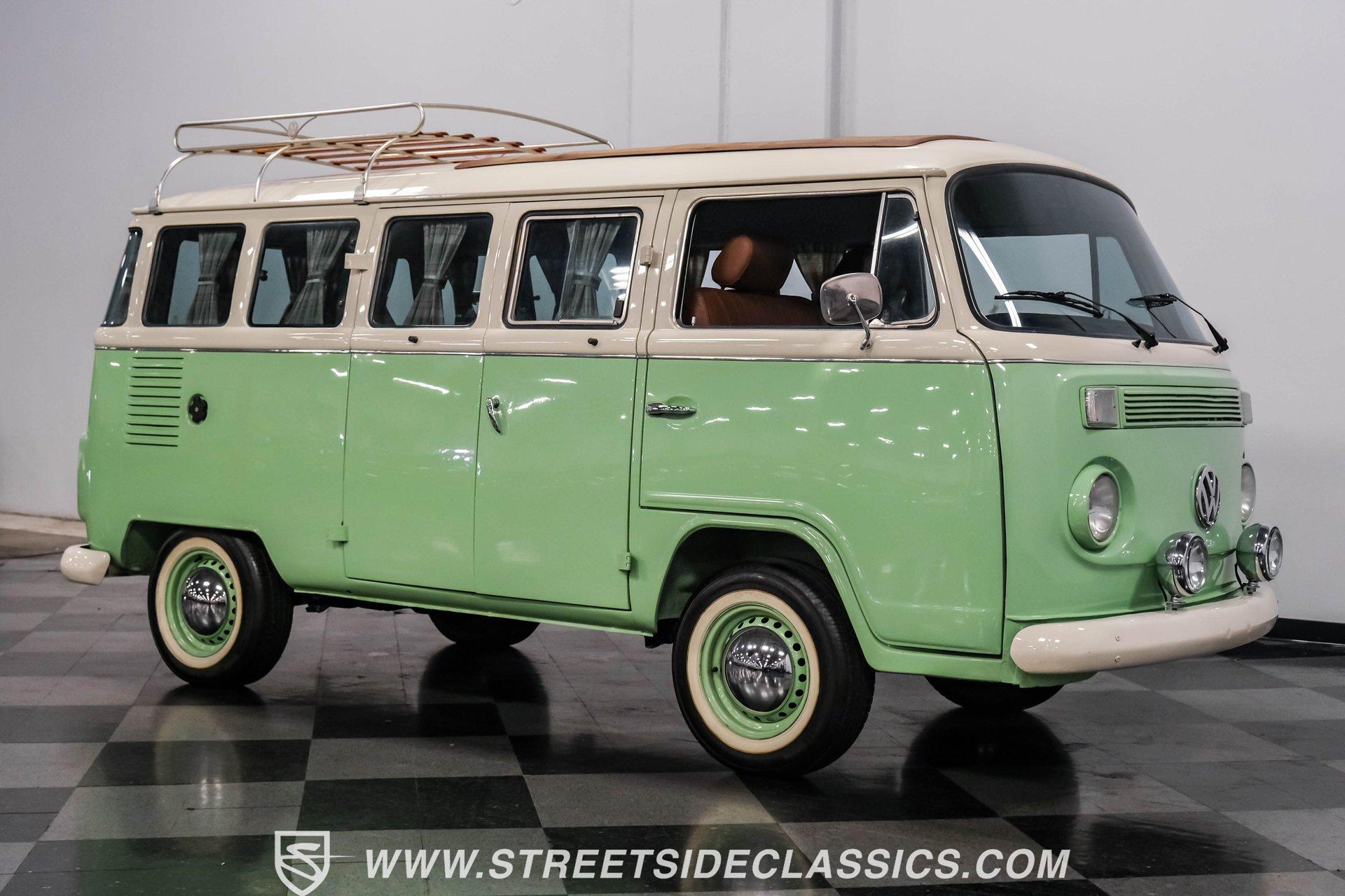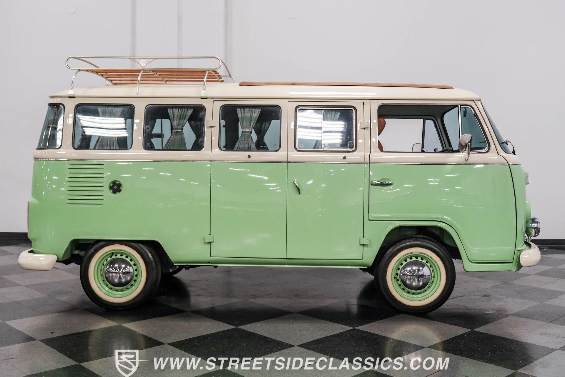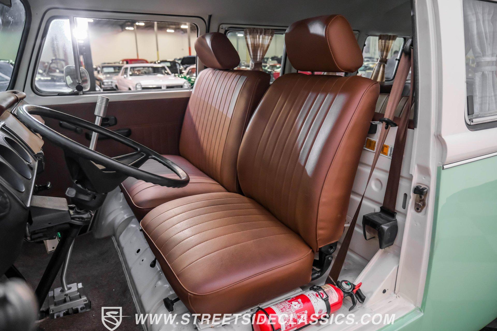With a look that blends generations, this 1994 Volkswagen Type 2 13 Window Deluxe Bus wears Light Green and Cream paint with that unmistakable South American-market combo-late-model front sheet metal paired with early-style panoramic glass. The roof rack and matching ladder accent the wraparound rear window and rounded bodywork. Rolling on color-keyed 14" steel wheels wrapped in 185/80R14 tires with whitewall trim, this vehicle captures that split-window silhouette with a unique twist. Subtle trim, painted bumpers, and chrome trim round out the retro vibe with just the right attitude. Brown vinyl covers all three bench rows in this well-trimmed interior, built to seat up to nine across split-bench configurations. Matching door panels, a dash pad, and fresh carpet tie it all together while accent drapes ride just inside the side glass. The spare tire cover adds a finished look at the rear. An aftermarket tall floor shifter punctuates the utilitarian cabin with a bit of attitude, and the original-style layout retains its functionality without overcomplication. There's no radio onboard, just the mechanical rhythm of a machine doing what it was built to do. A 1600cc gasoline engine powers this vehicle, backed by a 4-speed manual gearbox. Fuel delivery is handled via a 1-barrel carburetor, and the factory-style exhaust exits through a single muffler. Suspension is fully independent, front and rear, with power disc brakes up front. The drivetrain is built around a transaxle rear layout, keeping the floor flat and weight centered. It's basic, honest, and mechanically sound-everything it needs to be. HIGHLIGHTS 1600cc Gasoline Engine 4-Speed Manual Transaxle Power Front Disc Brakes Factory-Style Exhaust System Light Green & Cream Paint 14" Color-Keyed Steel Wheels 185/80R14 Tires With Whitewall Trim Roof Rack With Ladder 13 Window Brown Interior With Split-Bench Front Seat Reupholstered Seats And Matching Door Panels Dash Pad And Fresh Carpet Brazilian Market Model With its iconic layout, sharp color combo, and a mechanical package that's as honest as it gets, this 1994 Volkswagen Type 2 13 Window Deluxe Bus brings nostalgic design and simple mechanics together in one distinct package. Call today!