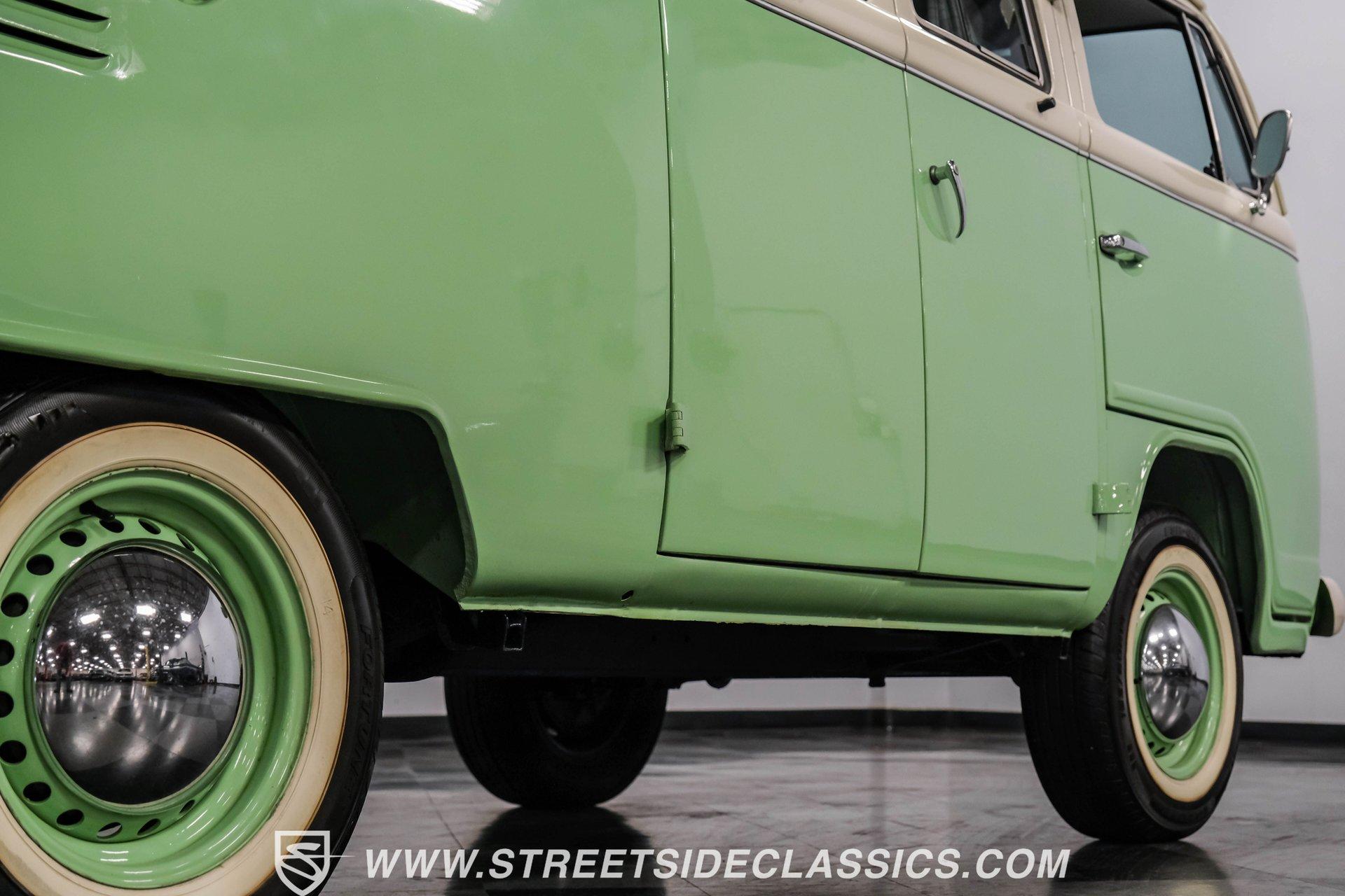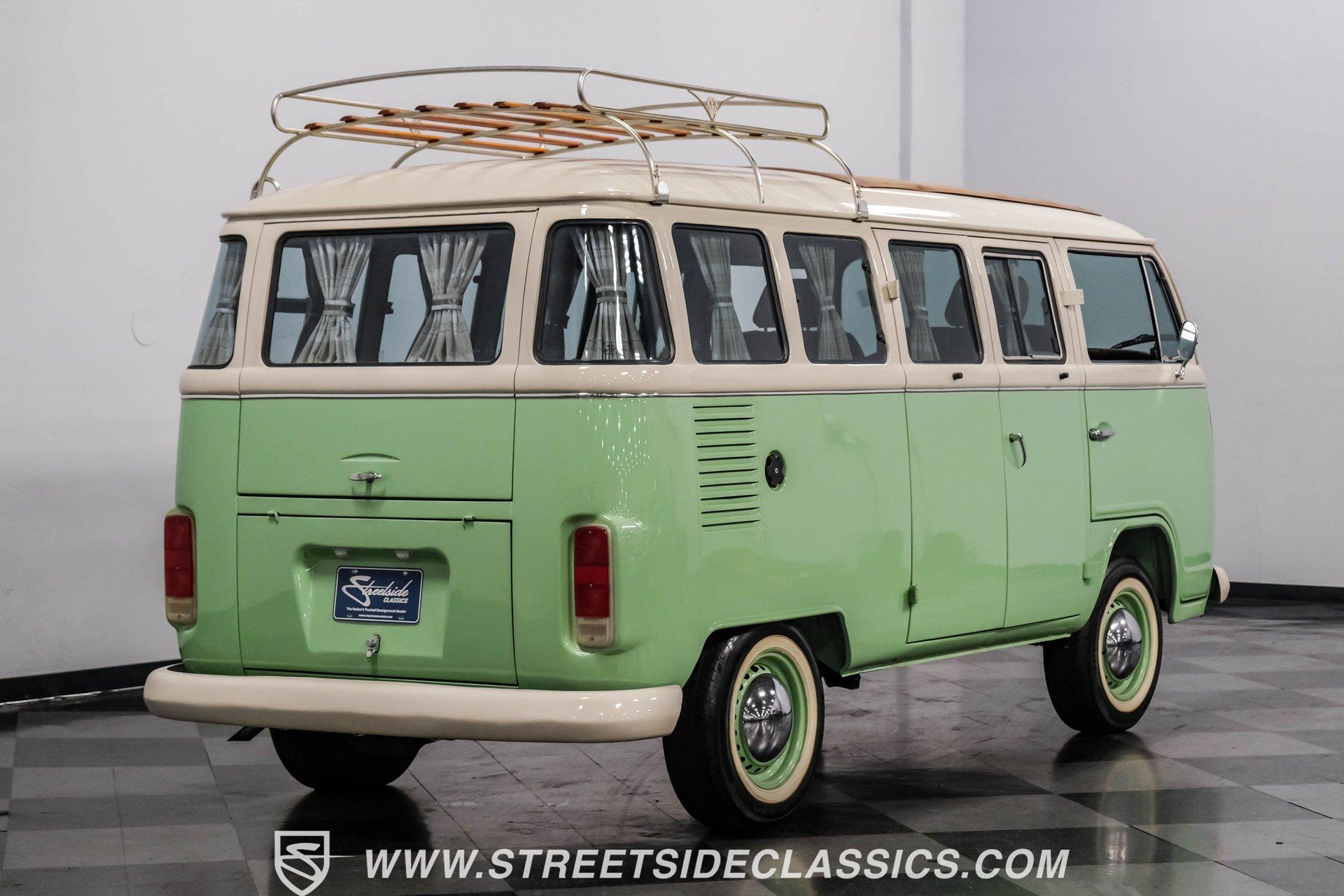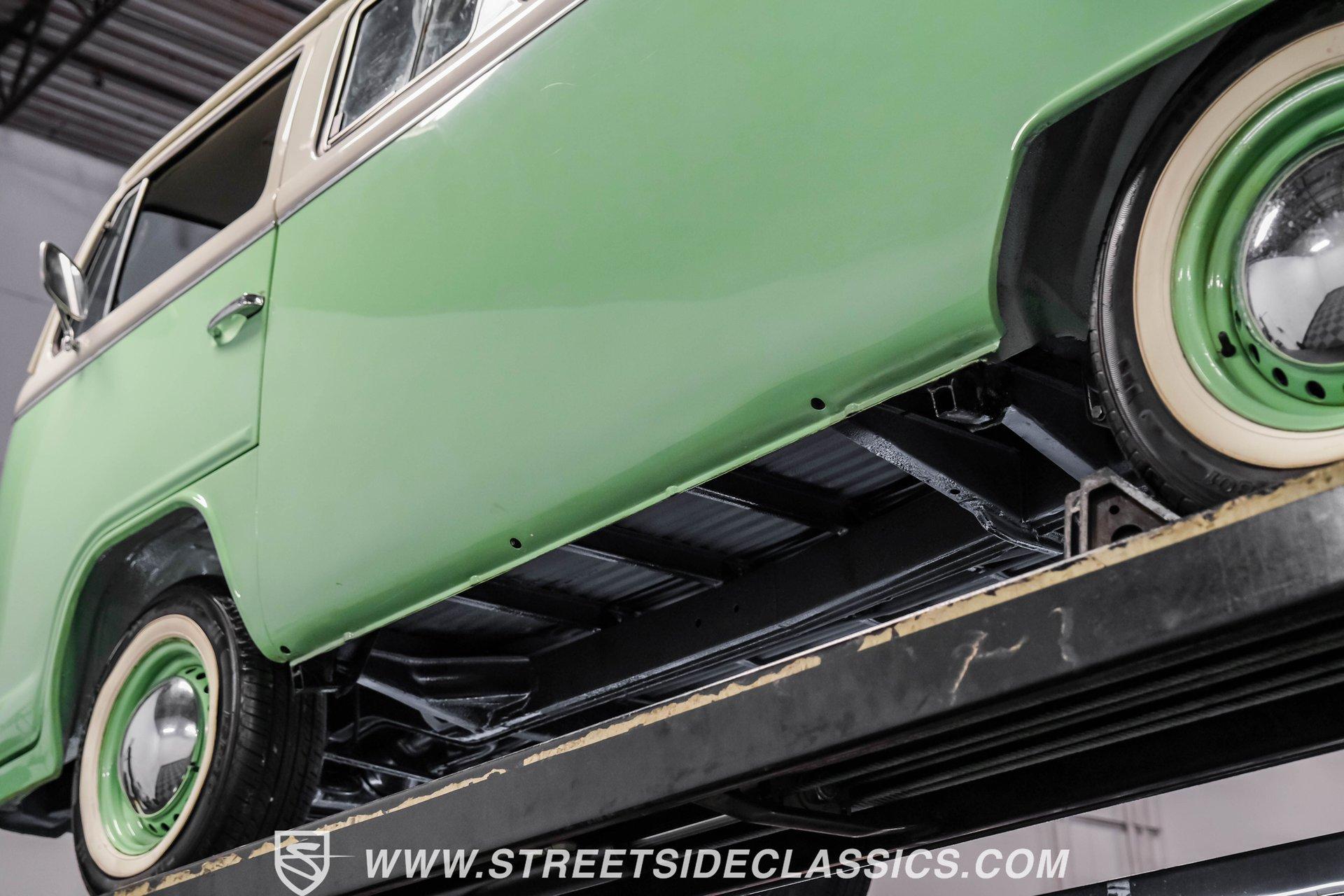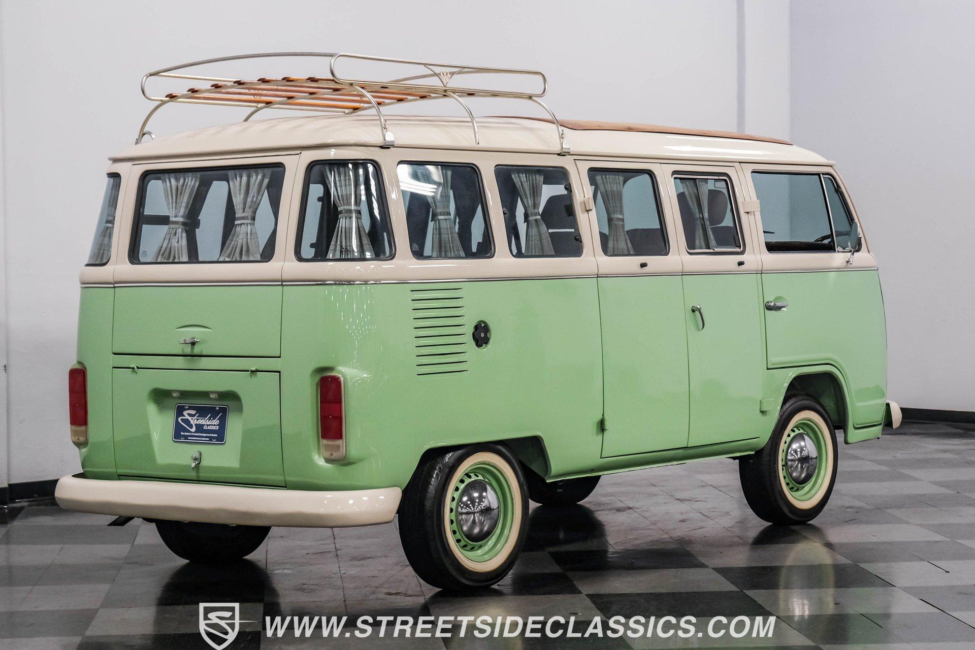 With a look that blends generations, this 1994 Volkswagen Type 2 13 Window Deluxe Bus wears Light Green and Cream paint with that unmistakable South American-market combo-late-model front sheet metal paired with early-style panoramic glass. The roof rack and matching ladder accent the wraparound rear window and rounded bodywork. Rolling on color-keyed 14" steel wheels wrapped in 185/80R14 tires with whitewall trim, this vehicle captures that split-window silhouette with a unique twist. Subtle trim, painted bumpers, and chrome trim round out the retro vibe with just the right attitude. Brown vinyl covers all three bench rows in this well-trimmed interior, built to seat up to nine across split-bench configurations. Matching door panels, a dash pad, and fresh carpet tie it all together while accent drapes ride just inside the side glass. The spare tire cover adds a finished look at the rear. An aftermarket tall floor shifter punctuates the utilitarian cabin with a bit of attitude, and the original-style layout retains its functionality without overcomplication. There's no radio onboard, just the mechanical rhythm of a machine doing what it was built to do. A 1600cc gasoline engine powers this vehicle, backed by a 4-speed manual gearbox. Fuel delivery is handled via a 1-barrel carburetor, and the factory-style exhaust exits through a single muffler. Suspension is fully independent, front and rear, with power disc brakes up front. The drivetrain is built around a transaxle rear layout, keeping the floor flat and weight centered. It's basic, honest, and mechanically sound-everything it needs to be. HIGHLIGHTS 1600cc Gasoline Engine 4-Speed Manual Transaxle Power Front Disc Brakes Factory-Style Exhaust System Light Green & Cream Paint 14" Color-Keyed Steel Wheels 185/80R14 Tires With Whitewall Trim Roof Rack With Ladder 13 Window Brown Interior With Split-Bench Front Seat Reupholstered Seats And Matching Door Panels Dash Pad And Fresh Carpet Brazilian Market Model With its iconic layout, sharp color combo, and a mechanical package that's as honest as it gets, this 1994 Volkswagen Type 2 13 Window Deluxe Bus brings nostalgic design and simple mechanics together in one distinct package. Call today!