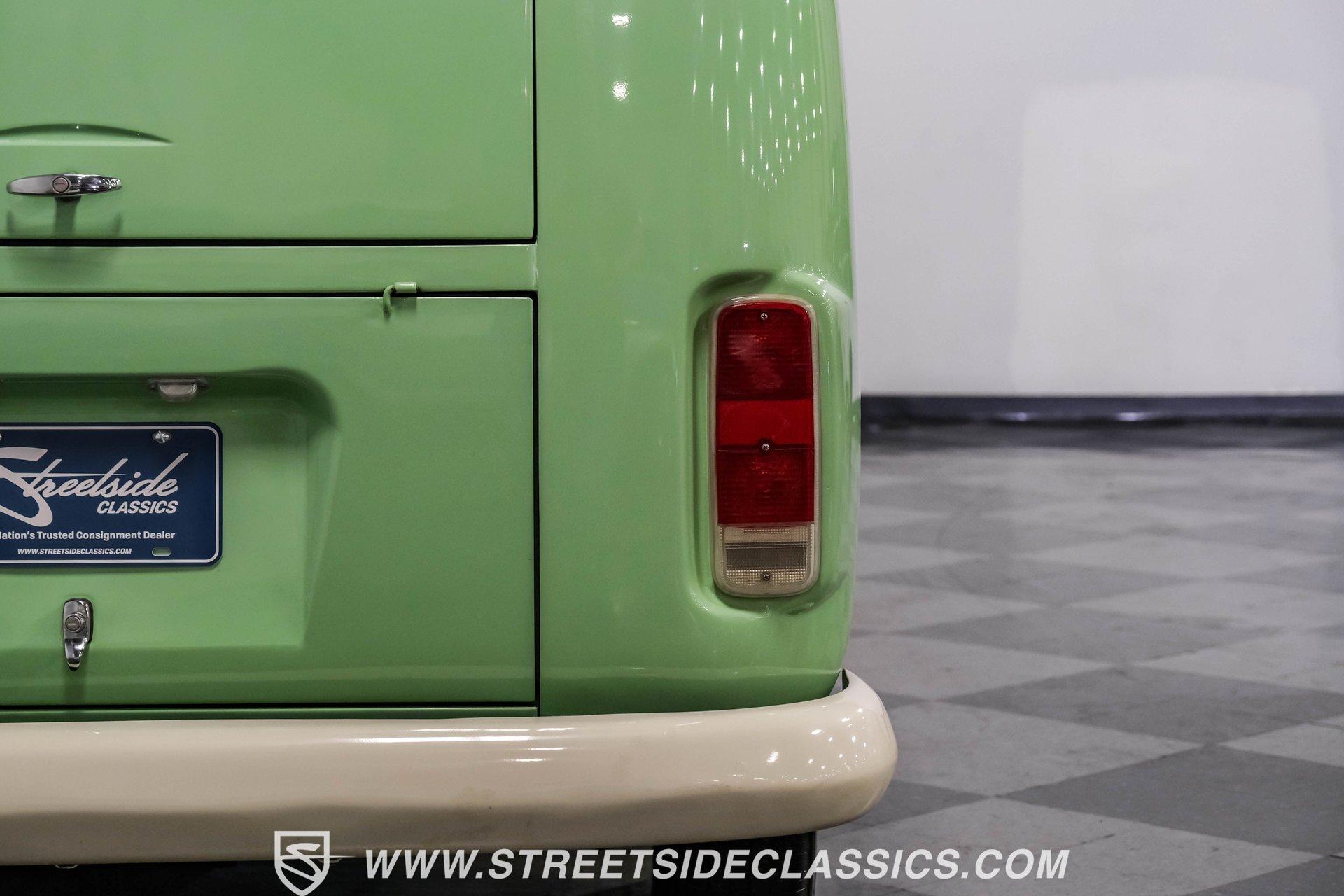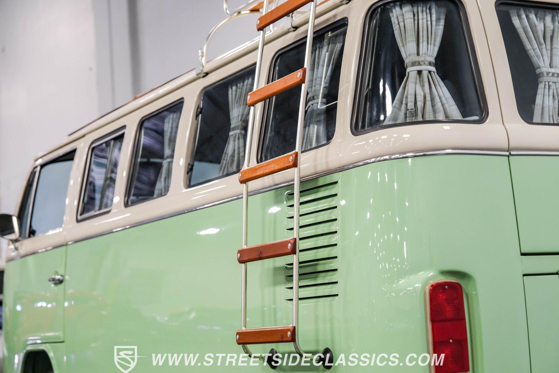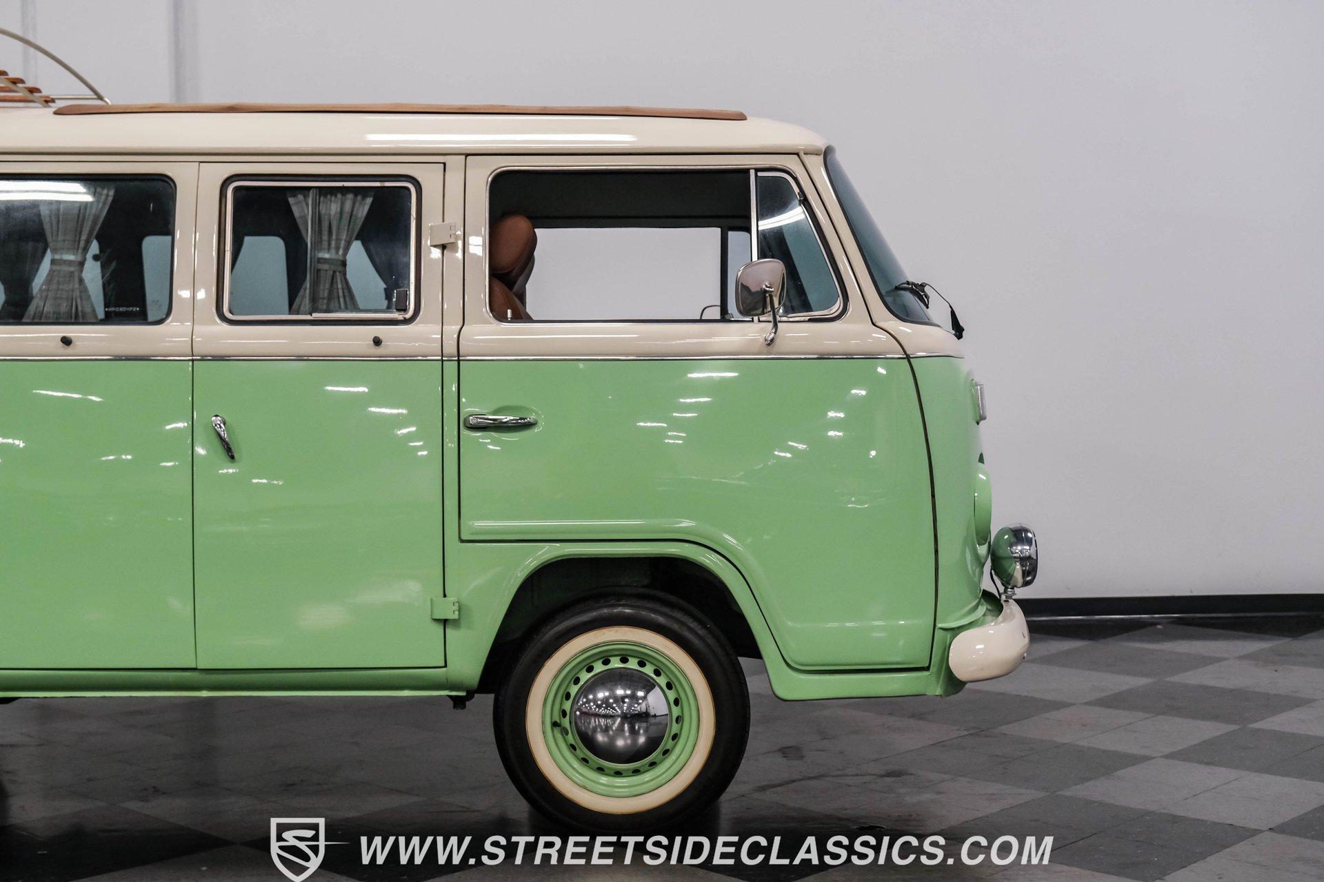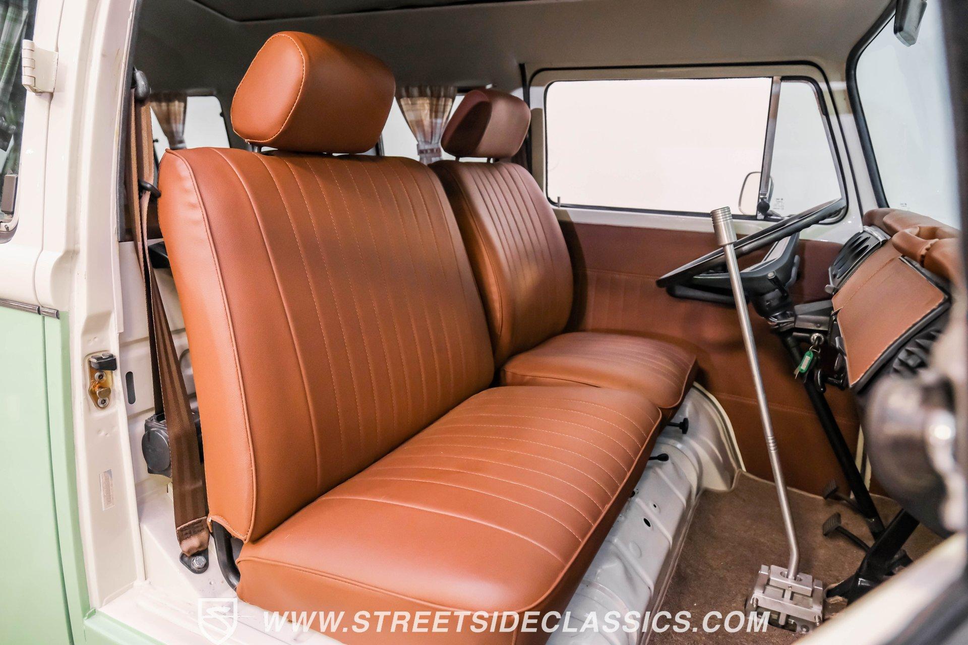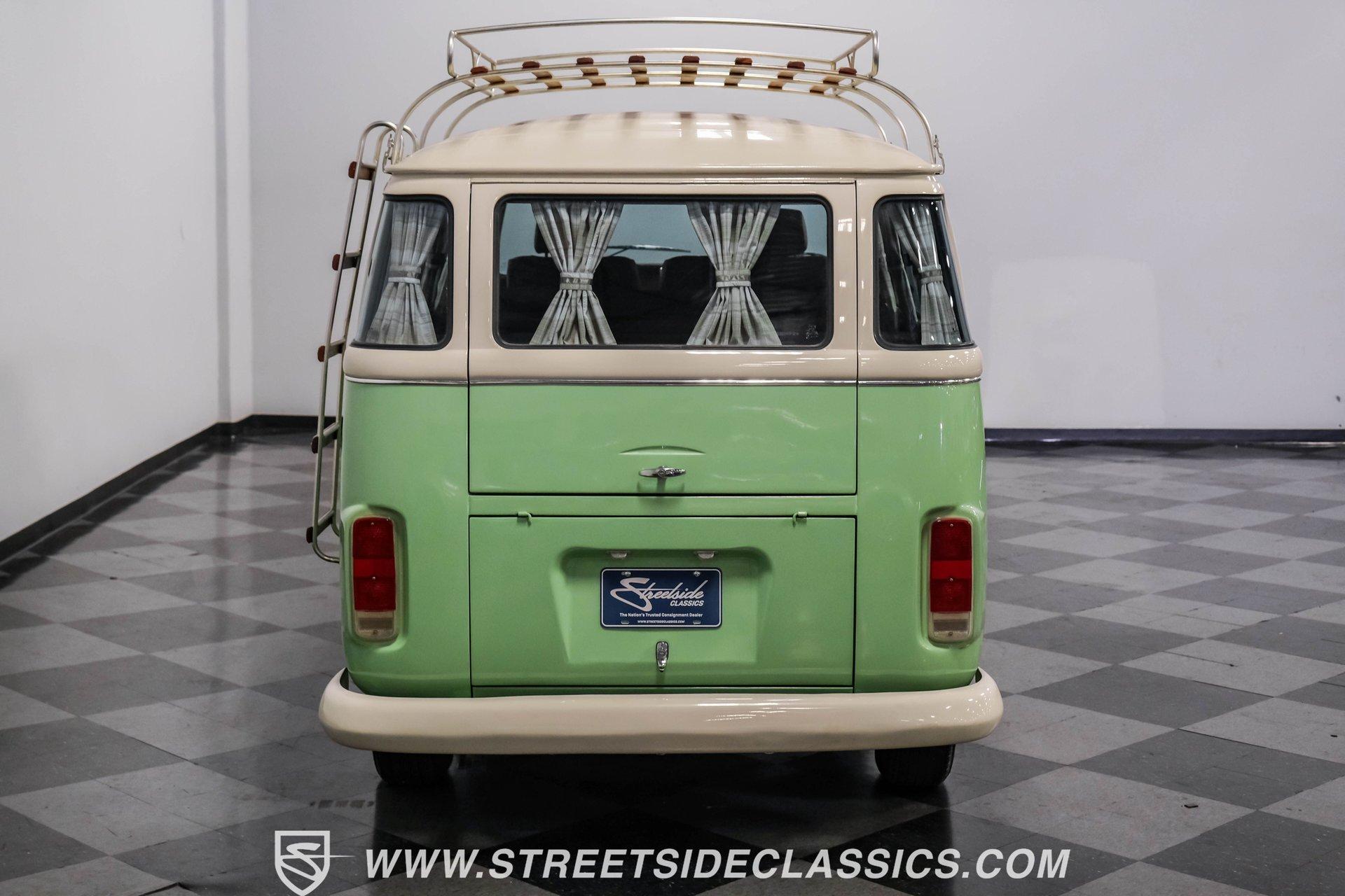 With a look that blends generations, this 1994 Volkswagen Type 2 13 Window Deluxe Bus wears Light Green and Cream paint with that unmistakable South American-market combo-late-model front sheet metal paired with early-style panoramic glass. The roof rack and matching ladder accent the wraparound rear window and rounded bodywork. Rolling on color-keyed 14" steel wheels wrapped in 185/80R14 tires with whitewall trim, this vehicle captures that split-window silhouette with a unique twist. Subtle trim, painted bumpers, and chrome trim round out the retro vibe with just the right attitude. Brown vinyl covers all three bench rows in this well-trimmed interior, built to seat up to nine across split-bench configurations. Matching door panels, a dash pad, and fresh carpet tie it all together while accent drapes ride just inside the side glass. The spare tire cover adds a finished look at the rear. An aftermarket tall floor shifter punctuates the utilitarian cabin with a bit of attitude, and the original-style layout retains its functionality without overcomplication. There's no radio onboard, just the mechanical rhythm of a machine doing what it was built to do. A 1600cc gasoline engine powers this vehicle, backed by a 4-speed manual gearbox. Fuel delivery is handled via a 1-barrel carburetor, and the factory-style exhaust exits through a single muffler. Suspension is fully independent, front and rear, with power disc brakes up front. The drivetrain is built around a transaxle rear layout, keeping the floor flat and weight centered. It's basic, honest, and mechanically sound-everything it needs to be. HIGHLIGHTS 1600cc Gasoline Engine 4-Speed Manual Transaxle Power Front Disc Brakes Factory-Style Exhaust System Light Green & Cream Paint 14" Color-Keyed Steel Wheels 185/80R14 Tires With Whitewall Trim Roof Rack With Ladder 13 Window Brown Interior With Split-Bench Front Seat Reupholstered Seats And Matching Door Panels Dash Pad And Fresh Carpet Brazilian Market Model With its iconic layout, sharp color combo, and a mechanical package that's as honest as it gets, this 1994 Volkswagen Type 2 13 Window Deluxe Bus brings nostalgic design and simple mechanics together in one distinct package. Call today!